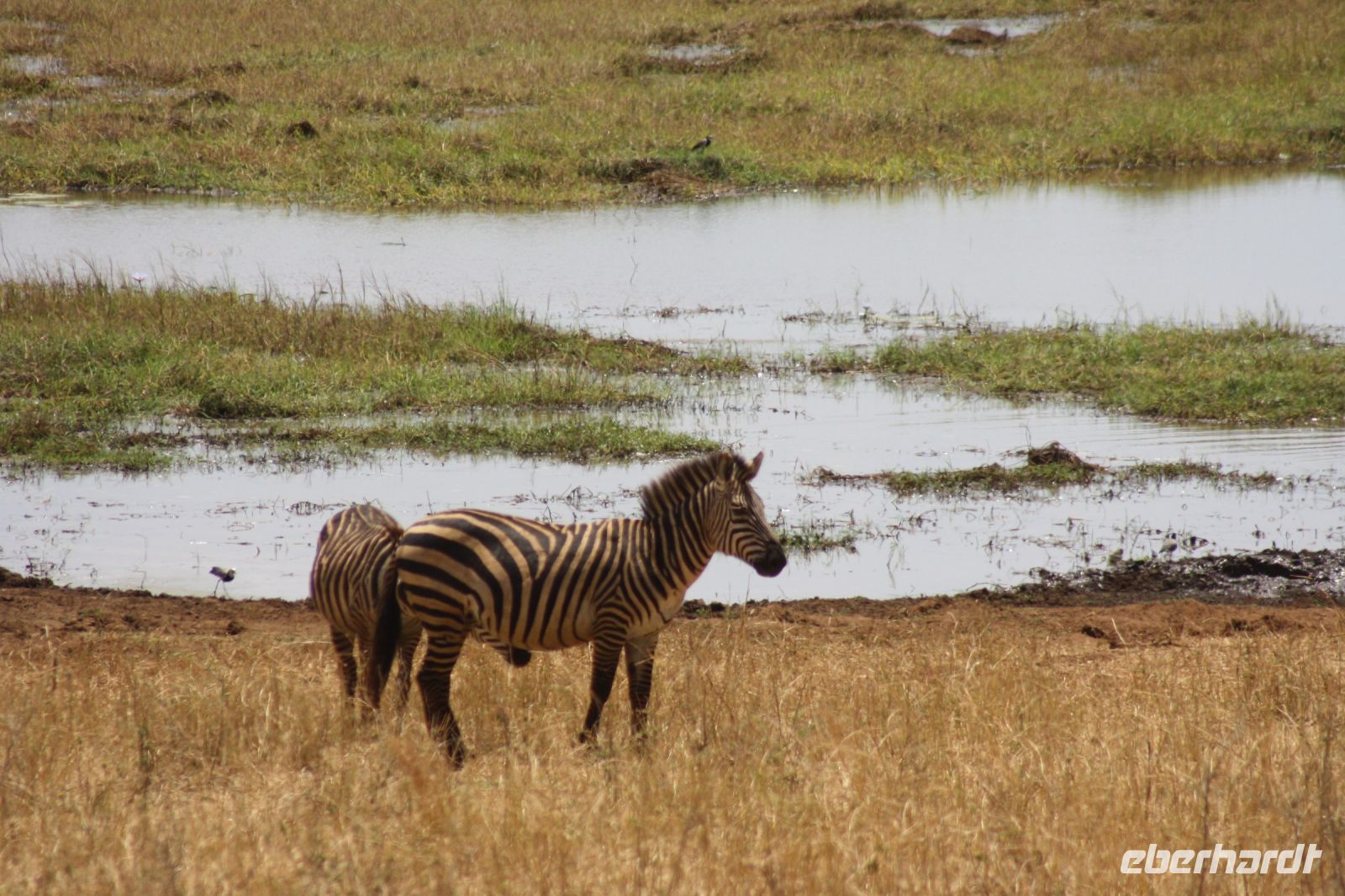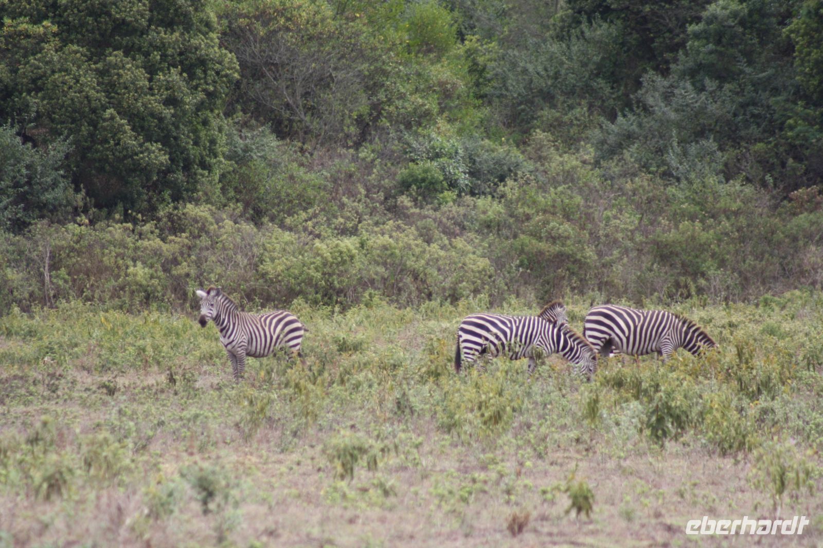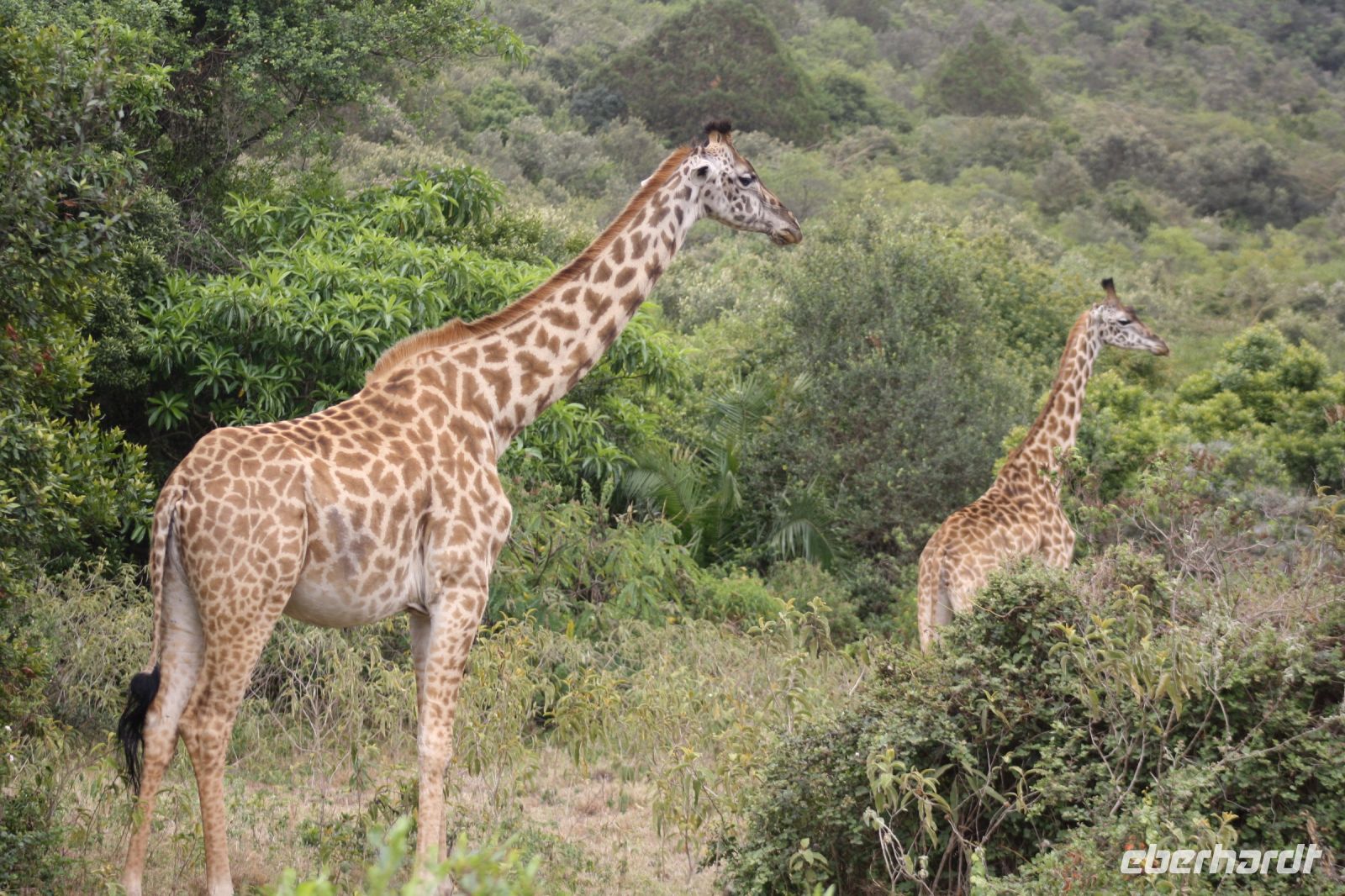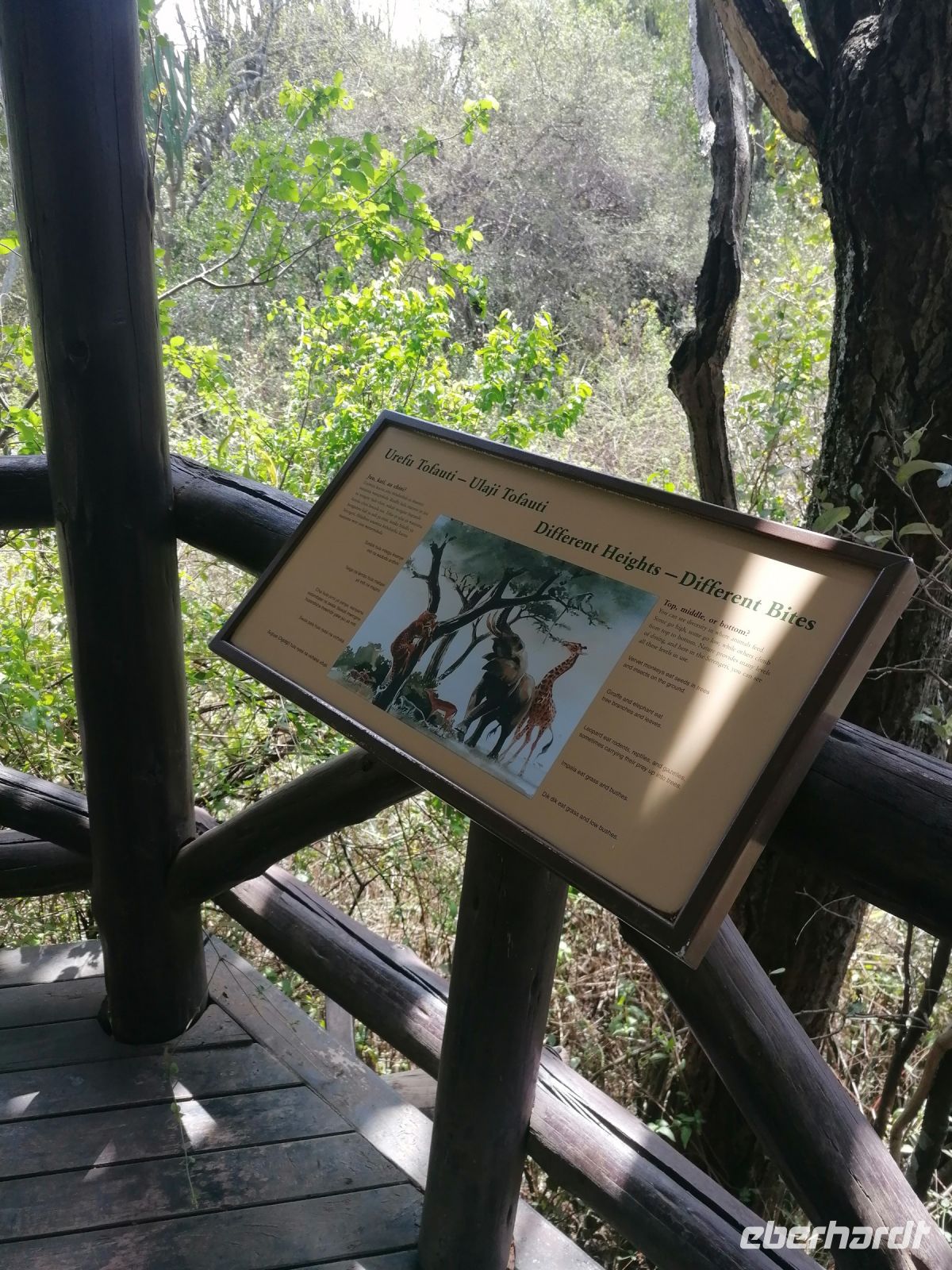 Nach dem Frühstück traf Karim pünktlich in der Lodge ein. Gemeinsam wollten wir den Arusha Nationalpark besuchen und auf unsere erste Pirschfahrt gehen. Gespannt begutachteten wir unseren Jeep, der in den nächsten 10 Tagen unseren fahrbaren Untersatz darstellen sollte. Von außen und von Innen sah alles super. Also konnte es losgehen. Der Nationalpark ist ca. 30 Km von Arusha Stadt entfernt und ist mit sein 3.000 Km² einer der kleinsten, aber von der Landschaft her einer der Vielfältigsten des Landes. Direkt nach dem Eingangstor konnten wir kämpfende Zebras, Büffel und Warzenschweine entdecken. Auch Giraffen, die in einer großen Anzahl hier beheimatet sind, konnten wir nach nur wenigen Minuten entdecken. Der Park ist vor allem auch für seinen Bestand an Pavianen und grüne Meerkatze bekannt. Eine Pavianfamilie hatte sogar ein kleines Baby mit dabei, was unsere Kameras natürlich glühen ließ. Der Arusha Nationalpark wurde bereits 1960 gegründet und 7 Jahre später wurde der Mount Meru hinzugefügt. Nach einer zweistündigen Fahrt trafen wir auf unseren Ranger, der gemeinsam mit seiner Trainee-Partnerin uns auf eine kleine Wanderung begleiteten. Während der Wanderung erklärte uns der Guide eine Menge über den Nationalpark und wir konnten weitere Tiere von der Nähe sehen. Wir spazierten durch den Park und schlenderten an Giraffen, Warzenschweine, Wasserböcke und Büffel vorbei und kamen dabei den Giraffen doch sehr nah. Gegen Ende des Spazierganges konnten wir auch ein Hippo in der Ferne entdecken und die Nilschwalbe fotografieren. Nach der Wanderung hatten wir uns eine Pause verdient und wir stärkten uns mit unser Picknick Lunch Box. Im Anschluss fuhren wir tiefer in den Nationalpark hinein und erblickten weitere Zebras, Buschböcke und eine Warzenschweinfamilie mit Kleinkind. Immer wieder sahen wir Giraffenfamilien, die gemeinsam in den Bäumen fraßen. Als wir den kleinen Krater erreichten trafen wir erneut auf Wasserböcke, Giraffen und Pavian. Auch die Vogelwelt war hier sehr präsent, denn wir erspähten Kiebitze, Ibisse Enten und Pelikane am Momella See. Der zweithöchste Berg Tansania - der Mount Meru zeigte sich am Nachmittag auch in seiner vollen Pracht. Leider ließ sich jedoch der großen Bruder Kilimanjaro nicht blicken. Auf dem Heimweg entdecken wir weitere Zebras und Giraffen und einige Zebramangusten, die neugierig in den Jeep blickten. Ein schöner erster Tag im Arusha Nationalpark neigte sich dem Ende entgegen und wir speisten ein letztes Mal gemeinsam in der Rivertrees Lodge zu Abend.