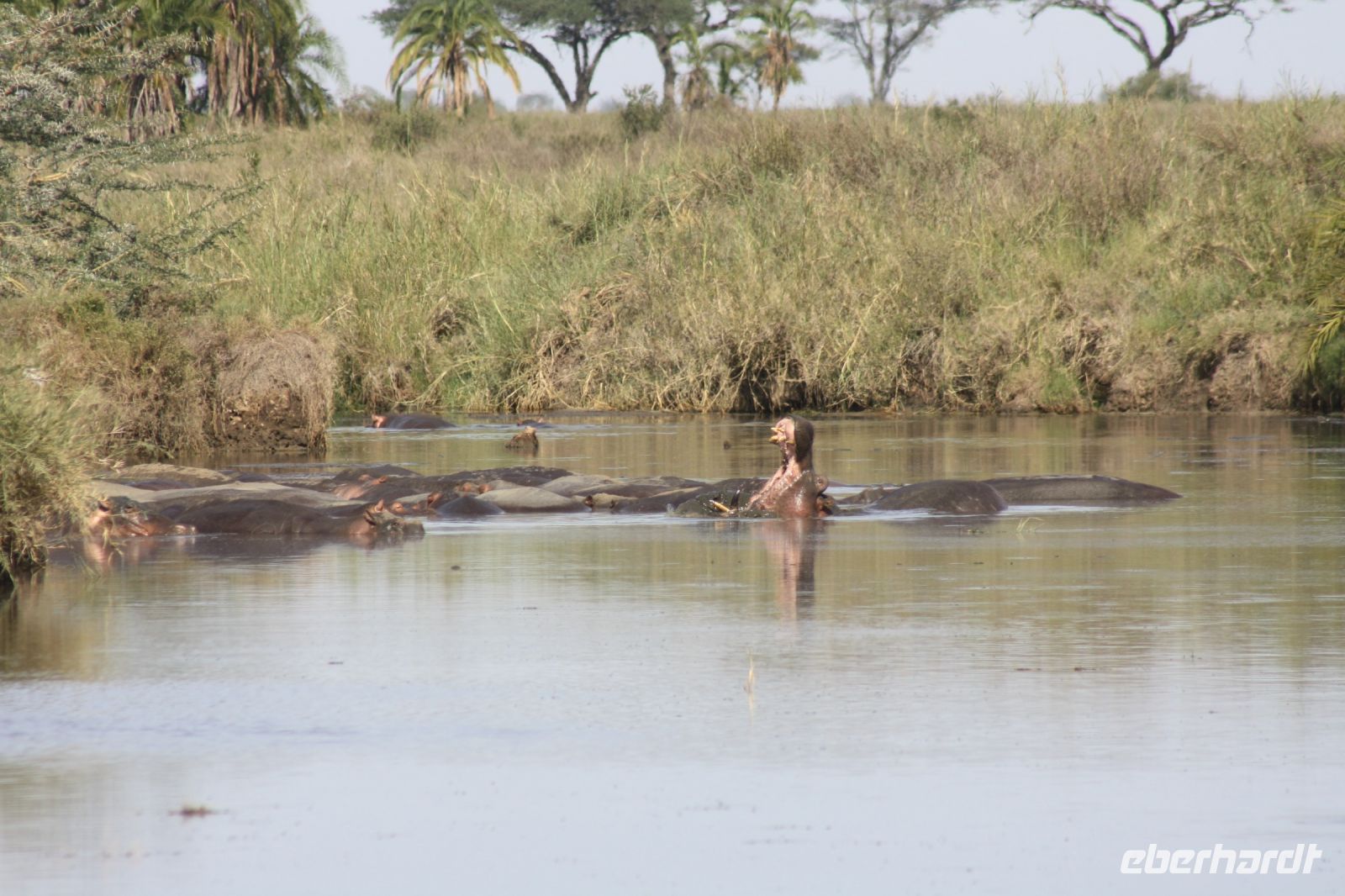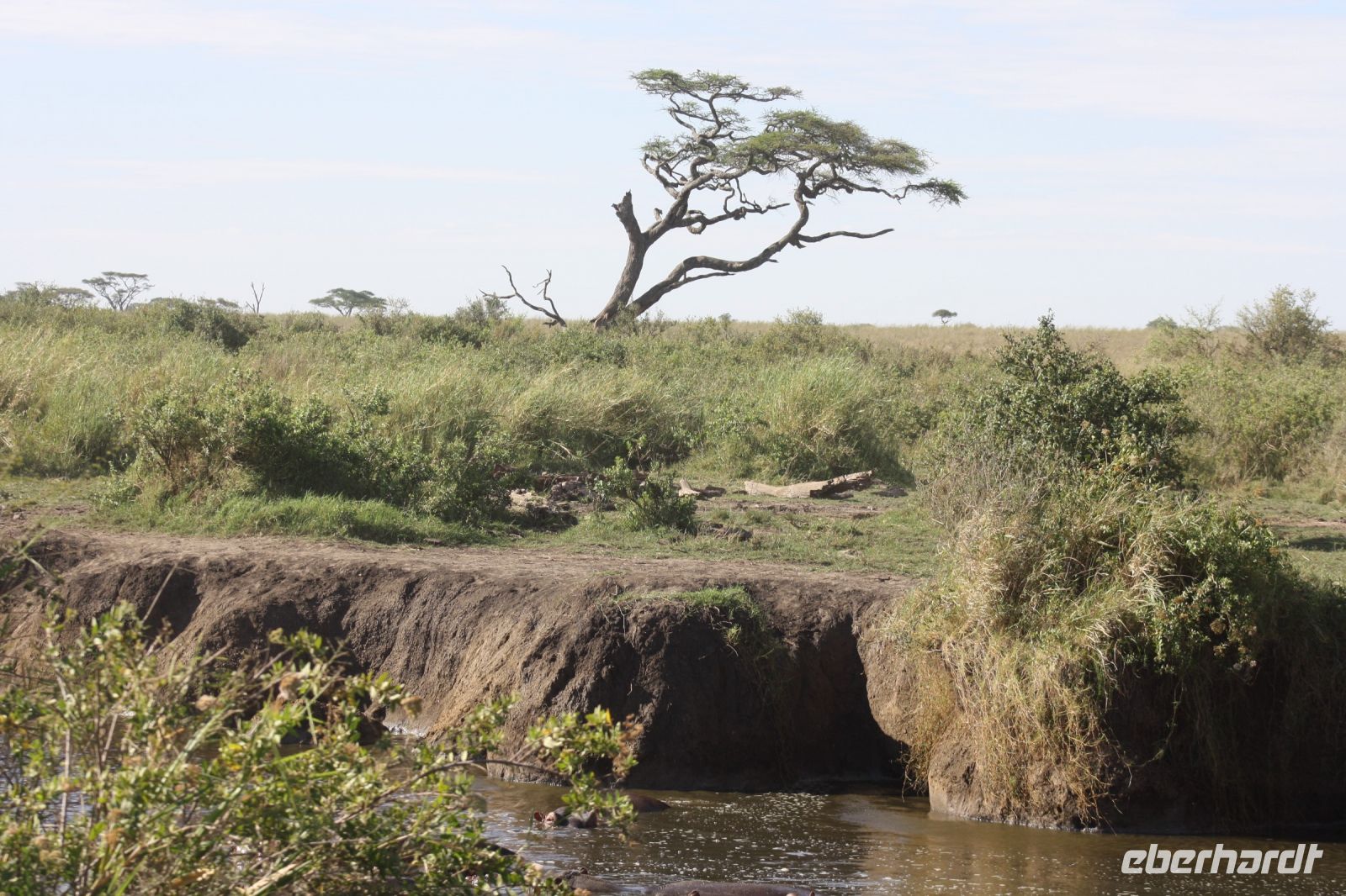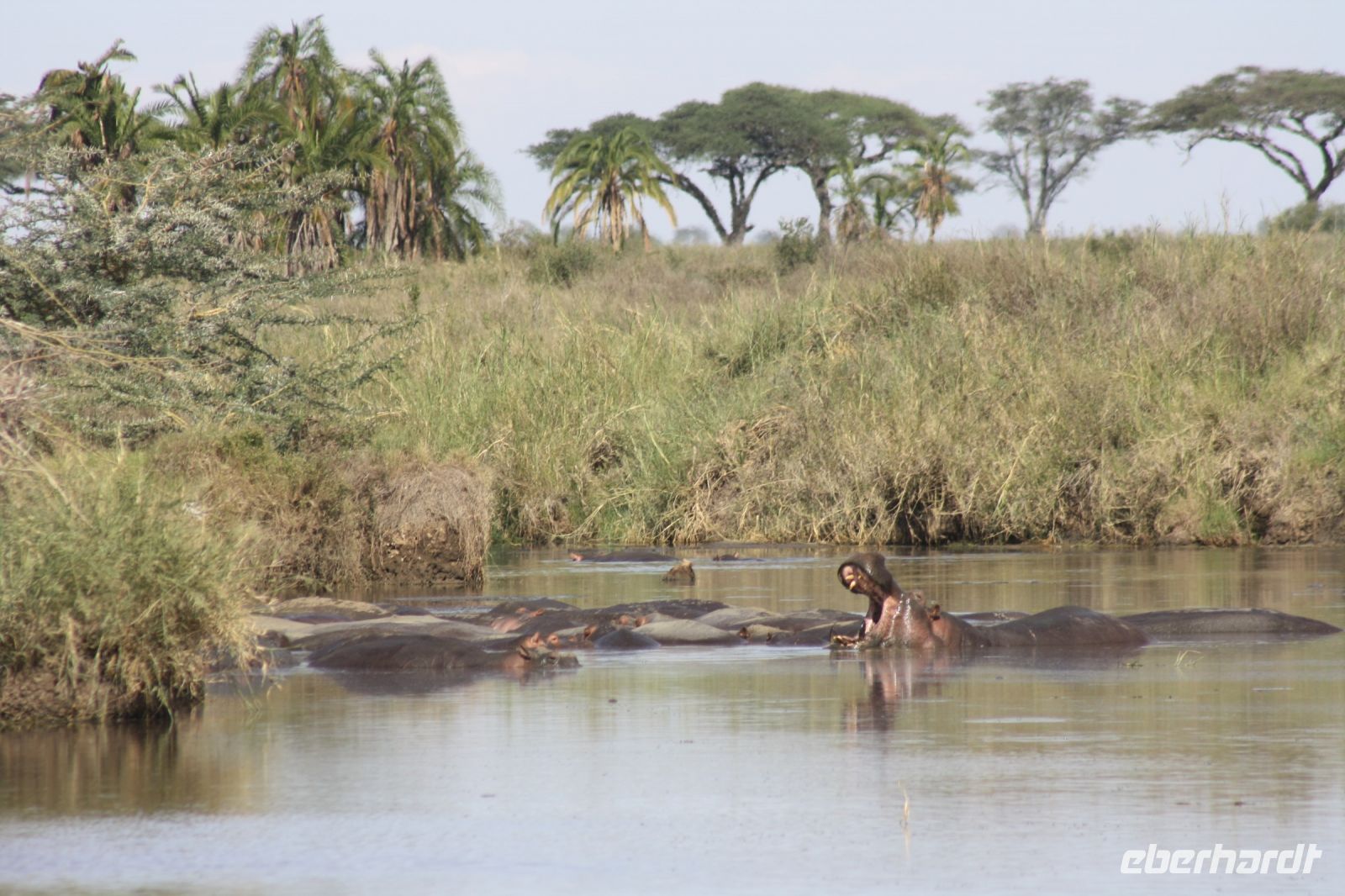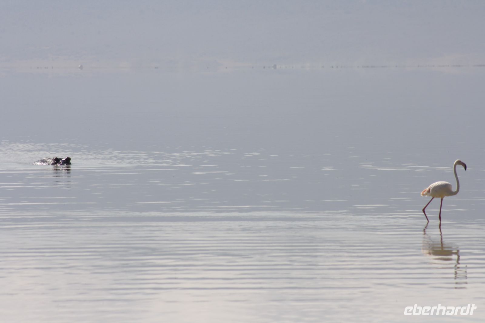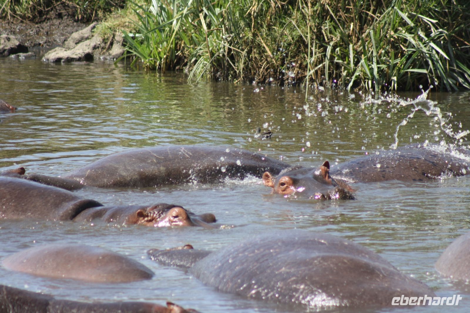 Leider stand heute ein letztes gemeinsames frühes Frühstück auf dem Programm. Leider mussten wir heute Abschied von unserem Lieblingscamp nehmen, wo wir mit viel Herzlichkeit und Gemütlichkeit empfangen wurden. Bevor wir zum Flughafen fuhren, stand noch eine abschließende Pirschfahrt an. Bereits vom Frühstück aus konnten wir einen Hippo entdecken, der an unserem Camp vorbei spaziert. Ein Heißluftballon grüßte uns aus der Ferne und wir bekamen bereits Fernweh.