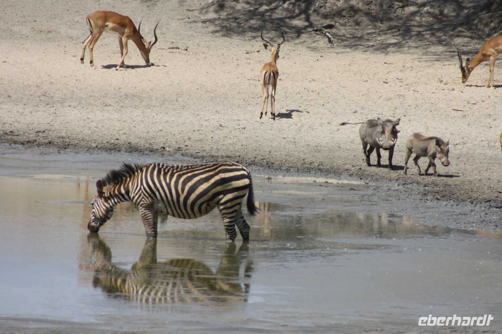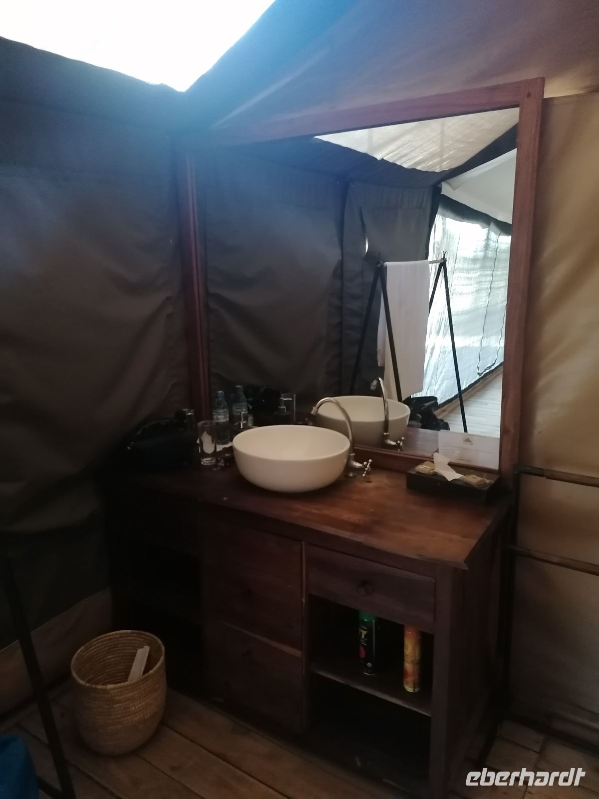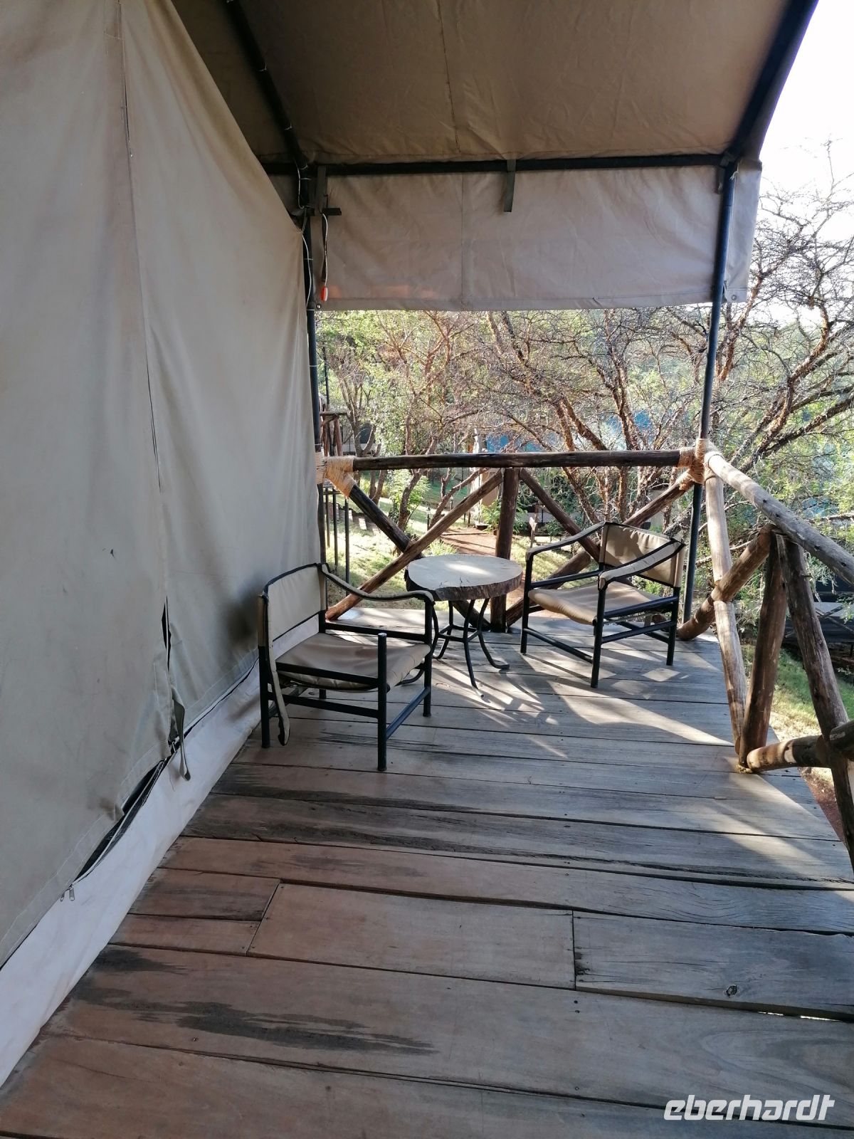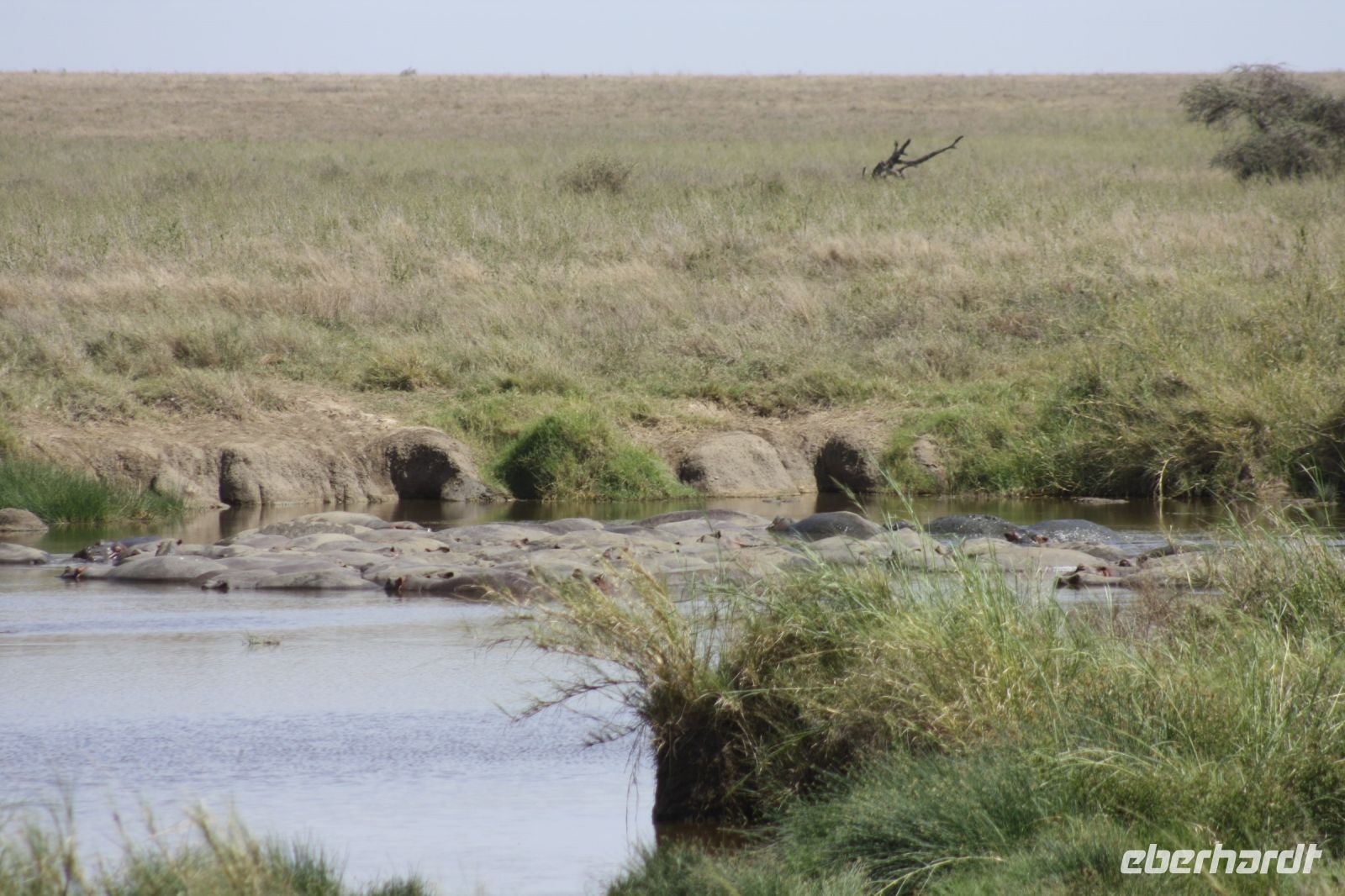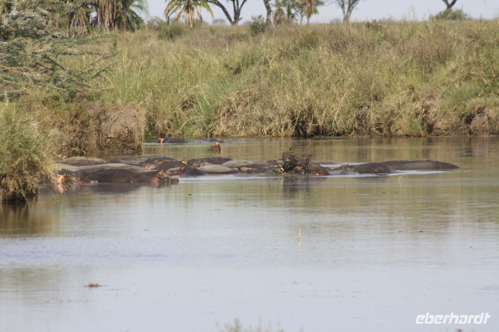 Leider stand heute ein letztes gemeinsames frühes Frühstück auf dem Programm. Leider mussten wir heute Abschied von unserem Lieblingscamp nehmen, wo wir mit viel Herzlichkeit und Gemütlichkeit empfangen wurden. Bevor wir zum Flughafen fuhren, stand noch eine abschließende Pirschfahrt an. Bereits vom Frühstück aus konnten wir einen Hippo entdecken, der an unserem Camp vorbei spaziert. Ein Heißluftballon grüßte uns aus der Ferne und wir bekamen bereits Fernweh.