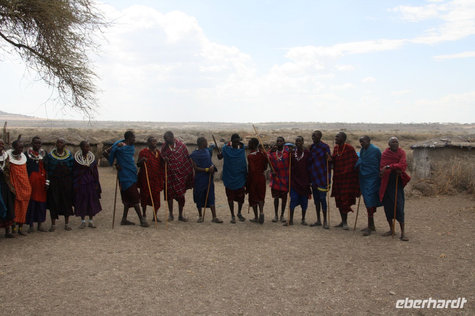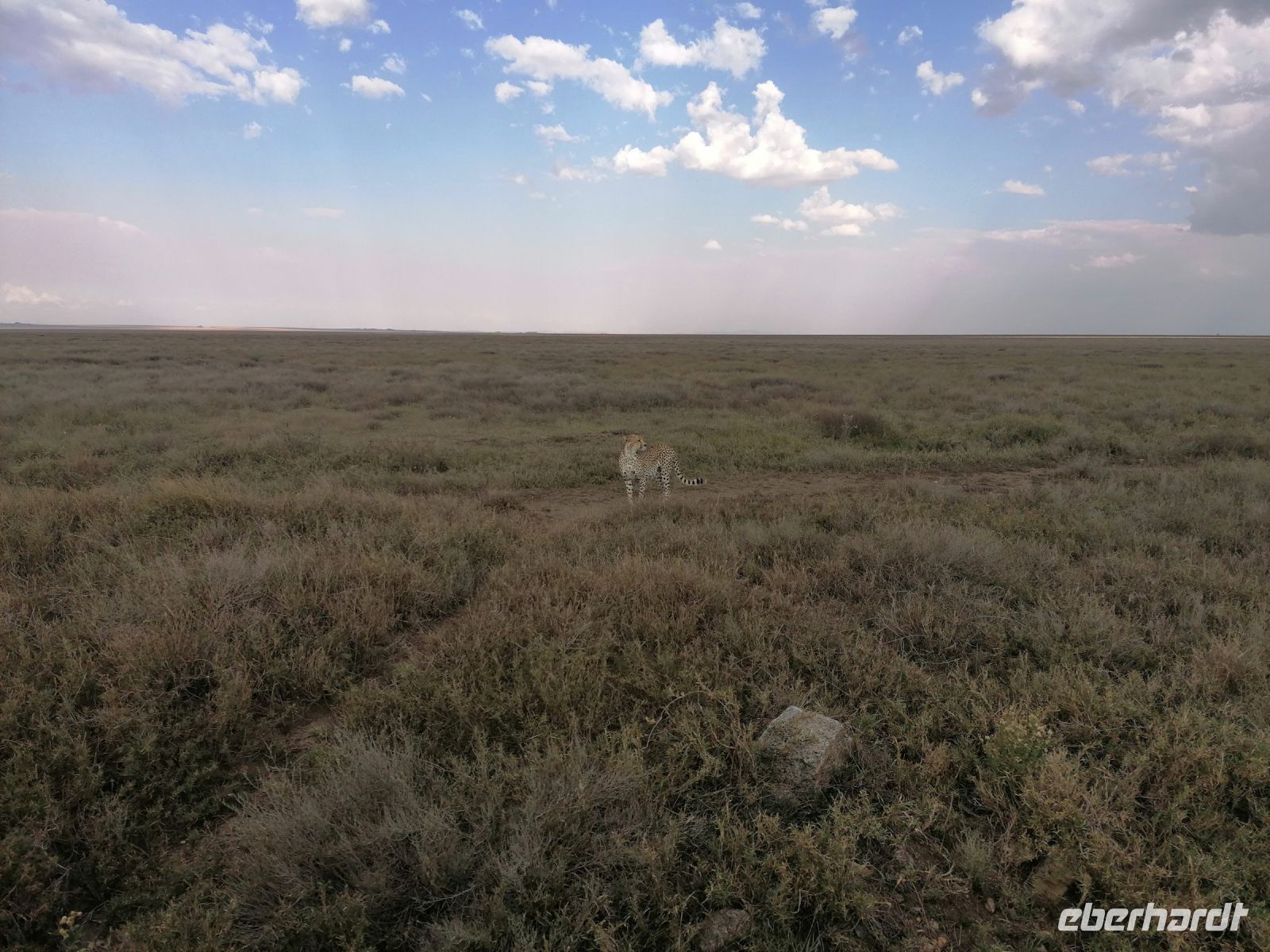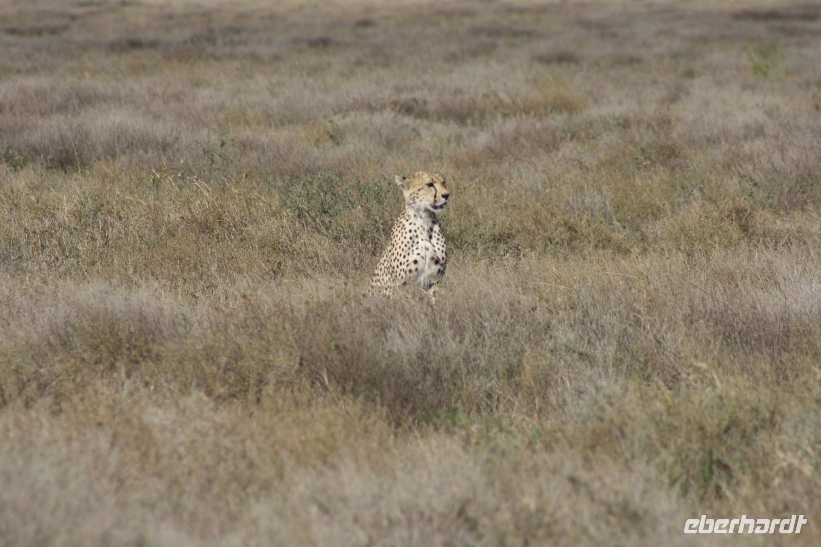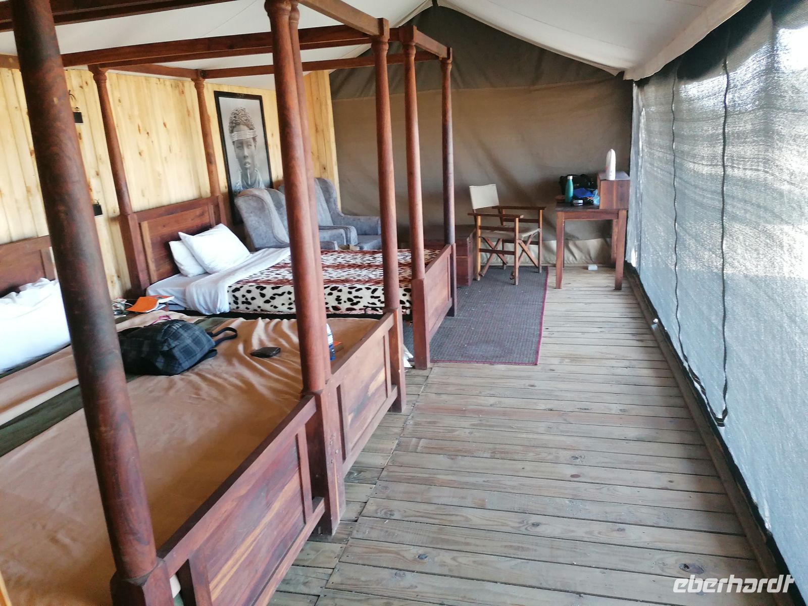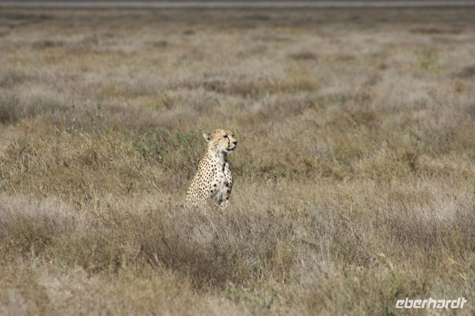 Am letzten in unserem Zeltcamp musste wir zunächst einmal mit einem Stromausfall kämpfen. Nichtsdestotrotz erhielten wir heißen Kaffee und warmes Frühstück. Unser Weg führt uns nochmal in Richtung Ngorongoro Krater und wir hielten kurz am Wochenmarkt. Die Stände werden gerade aufgebaut und Menschen aus den naheliegenden Dörfern erreichten den Markplatz, um zu handeln oder zu verkaufen. Nachdem wir den Markt verlassen hatten, versorgten wir uns an einem weiteren Souvenir Laden mit Mitbringsel. Der Weg verlief nochmal oberhalb des Ngorongoro Kraters bis nach Olduveit. Bereits an der Straße wurde ein neues großes Monument und ein neuer Eingang zum Olduveit Visitor Center gebaut. In der Region wurde bei Ausgrabungen primitive Werkzeuge, Fußabdrücke und menschliche Überreste gefunden. Man fand heraus, dass die ersten Menschen bereits vor 3 Millionen Jahren in der Region wohnten. Das neu angelegte Museum zeigte uns die Geschichte und Entwicklung der Menschheit, die bereits in der frühen Zeit zusammenlebten. Von einem angelegten Bühnen hatten wir einen fantastischen Blick in die beeindruckende tiefe Schlucht, wo die Ausgrabungen erfolgten. Hier konnten wir auch unsere Mittagspause und die Lunchbox genießen. Am Anschluss besuchten wir ein Dorf der Masai. Die Mitglieder dieses Stammes leben immer noch völlig traditionell in ihren Dörfern und hausten in Lehmhütten. Die Kinder und Männer arbeiten als Hirten und kümmern sich um die Tiere. Die Frau kochen, sammeln Holz und suchen nach Wasser. Wir werden zunächst von den Dorfbewohnern in ihrer bunten Kleidung und dem üppigen Perlenschmuck mit einem traditionellen Lied empfangen. Im Anschluss folgte eine Vorführung des Tanzes, womit die Männer mit den typischen hohen Sprüngen der bekannt wurden. Nach dem Tanz werden wir durch das Dorf geführt. Der Sohn des Häuptlings lud uns in seine Lehmhütte ein und wir könnten einen Eindruck gewinnen, wie die Masai auf kleinsten Raum lebten. Zum Schluss besuchten wir noch den Kindergarten des Dorfes. Hier lernen die 3-5jährigen Kinder bereits das Alphabet und die Zahlen bis Einhundert. Auch die Kinder begrüßen uns mit einem fröhlichen Lied und erwärmten unsere Herzen. Am Nachmittag erreichten wir das südliche Tor der Serengeti. Den Ort den die Masai den großen endlosen Weit nennen. Endlich waren wir im Serengeti Nationalpark angekommen. Wir freuten uns auf die nächsten Tage. Nach nur wenigen Kilometern fielen wir fast schon aus den Sitzen. Was ein Glück, denn als ersten Tier in der Serengeti sahen wir 2 männlichen Geparden. Die männliche Geparden sind meist in Gruppen zusammen, wobei die Weibchen immer alleine spazieren. Im Anschluss trafen wir auf großen Gruppen von Antilopen und Zebras. Ein Riesenkorid, der schwerste fliegende Vogel in Afrika blickten uns vom Wegrand an und Elefant fraßen in aller Ruhe in unserer Nähe. Nach nur wenigen Minuten waren wir stark beeindruckt von der Serengeti. Kurze Zeit später entdeckten wir zwei schlafende Löwen, die vermutlich gerade gegessen hatte. Im Hintergrund lauerten Hyänen und hofften sich einen Teil der Beute erbeuten zu können. Auf dem Weg zur Lodge konnten wir vier Löwinnen und 1 Löwe unterm Baum entdecken. Auch diese hatte gefressen, aber guckten ab und zu in die Kamera. Am Abend erreichten wir unser Camp, wo wir freundlich und herzlich empfangen wurden.