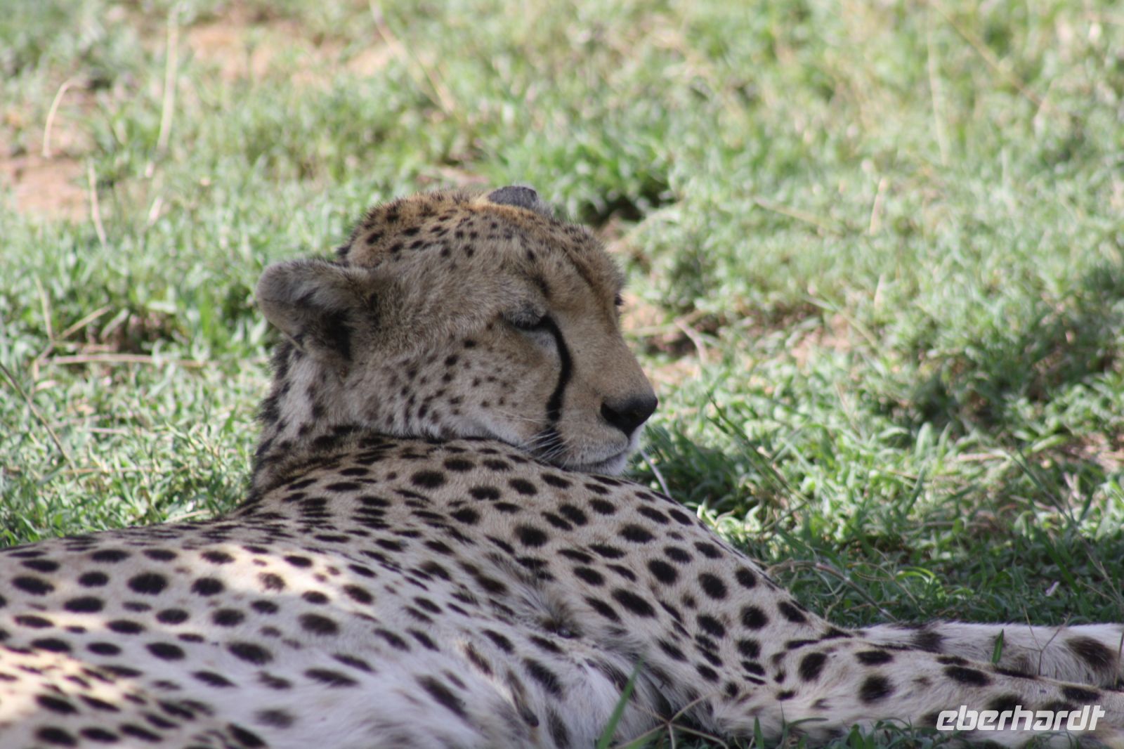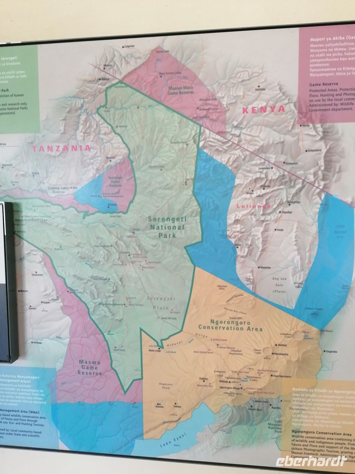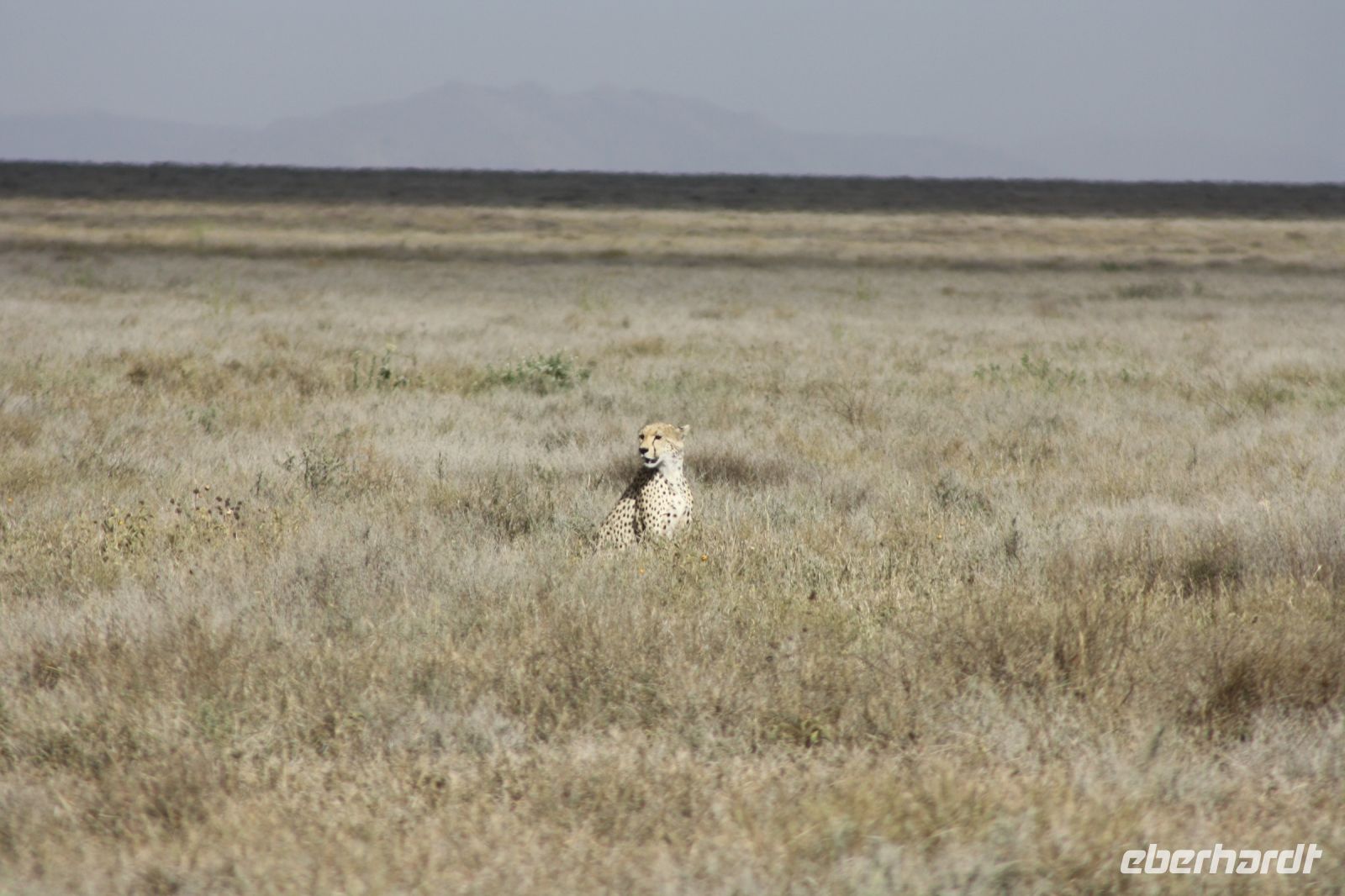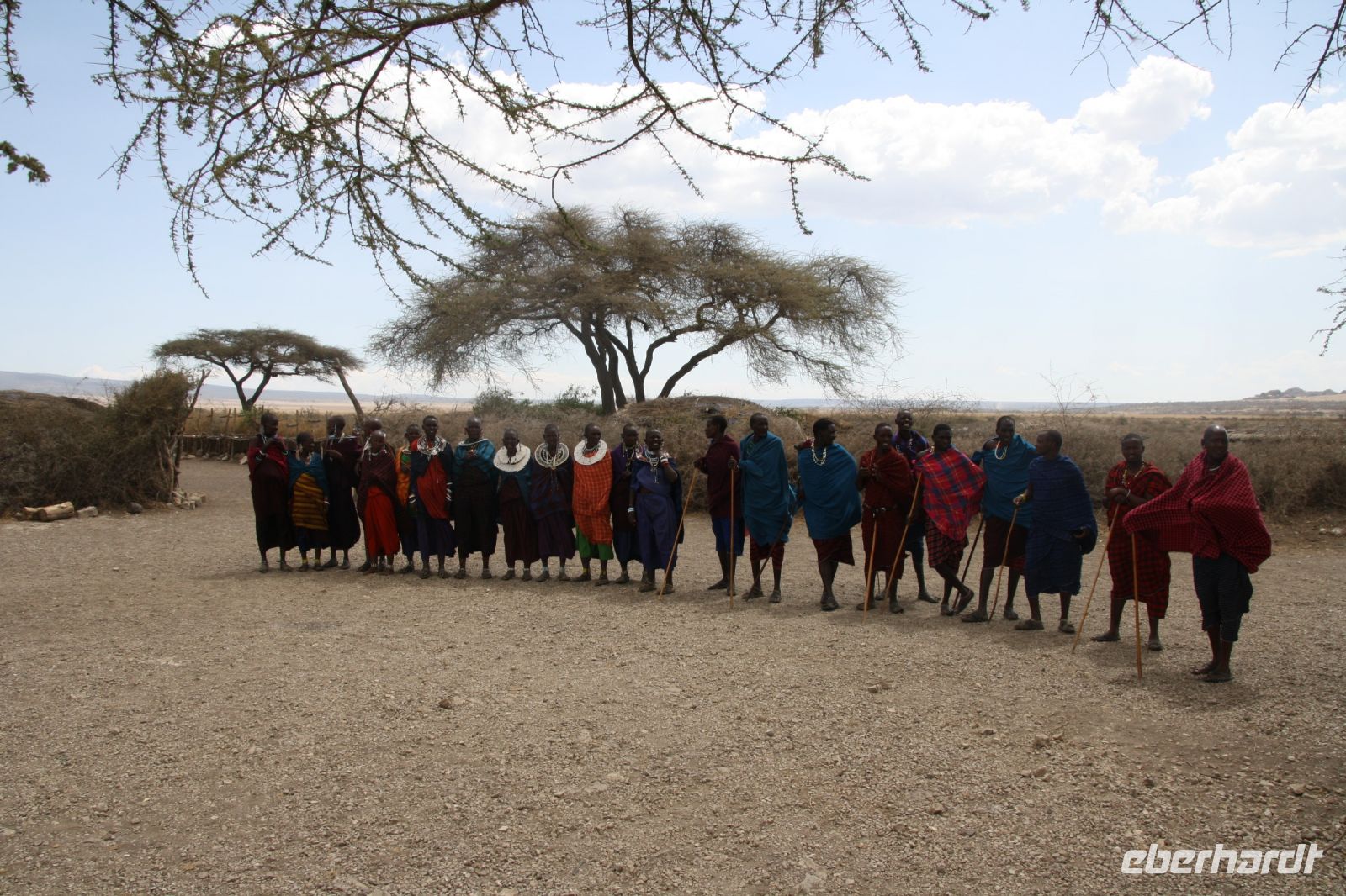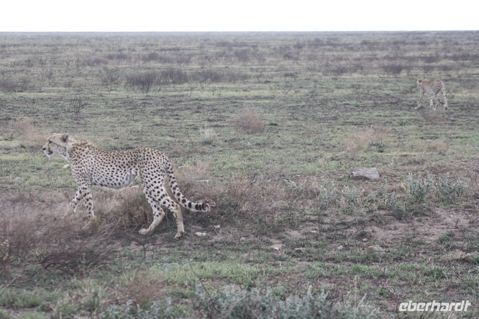 Am letzten in unserem Zeltcamp musste wir zunächst einmal mit einem Stromausfall kämpfen. Nichtsdestotrotz erhielten wir heißen Kaffee und warmes Frühstück. Unser Weg führt uns nochmal in Richtung Ngorongoro Krater und wir hielten kurz am Wochenmarkt. Die Stände werden gerade aufgebaut und Menschen aus den naheliegenden Dörfern erreichten den Markplatz, um zu handeln oder zu verkaufen. Nachdem wir den Markt verlassen hatten, versorgten wir uns an einem weiteren Souvenir Laden mit Mitbringsel. Der Weg verlief nochmal oberhalb des Ngorongoro Kraters bis nach Olduveit. Bereits an der Straße wurde ein neues großes Monument und ein neuer Eingang zum Olduveit Visitor Center gebaut. In der Region wurde bei Ausgrabungen primitive Werkzeuge, Fußabdrücke und menschliche Überreste gefunden. Man fand heraus, dass die ersten Menschen bereits vor 3 Millionen Jahren in der Region wohnten. Das neu angelegte Museum zeigte uns die Geschichte und Entwicklung der Menschheit, die bereits in der frühen Zeit zusammenlebten. Von einem angelegten Bühnen hatten wir einen fantastischen Blick in die beeindruckende tiefe Schlucht, wo die Ausgrabungen erfolgten. Hier konnten wir auch unsere Mittagspause und die Lunchbox genießen. Am Anschluss besuchten wir ein Dorf der Masai. Die Mitglieder dieses Stammes leben immer noch völlig traditionell in ihren Dörfern und hausten in Lehmhütten. Die Kinder und Männer arbeiten als Hirten und kümmern sich um die Tiere. Die Frau kochen, sammeln Holz und suchen nach Wasser. Wir werden zunächst von den Dorfbewohnern in ihrer bunten Kleidung und dem üppigen Perlenschmuck mit einem traditionellen Lied empfangen. Im Anschluss folgte eine Vorführung des Tanzes, womit die Männer mit den typischen hohen Sprüngen der bekannt wurden. Nach dem Tanz werden wir durch das Dorf geführt. Der Sohn des Häuptlings lud uns in seine Lehmhütte ein und wir könnten einen Eindruck gewinnen, wie die Masai auf kleinsten Raum lebten. Zum Schluss besuchten wir noch den Kindergarten des Dorfes. Hier lernen die 3-5jährigen Kinder bereits das Alphabet und die Zahlen bis Einhundert. Auch die Kinder begrüßen uns mit einem fröhlichen Lied und erwärmten unsere Herzen. Am Nachmittag erreichten wir das südliche Tor der Serengeti. Den Ort den die Masai den großen endlosen Weit nennen. Endlich waren wir im Serengeti Nationalpark angekommen. Wir freuten uns auf die nächsten Tage. Nach nur wenigen Kilometern fielen wir fast schon aus den Sitzen. Was ein Glück, denn als ersten Tier in der Serengeti sahen wir 2 männlichen Geparden. Die männliche Geparden sind meist in Gruppen zusammen, wobei die Weibchen immer alleine spazieren. Im Anschluss trafen wir auf großen Gruppen von Antilopen und Zebras. Ein Riesenkorid, der schwerste fliegende Vogel in Afrika blickten uns vom Wegrand an und Elefant fraßen in aller Ruhe in unserer Nähe. Nach nur wenigen Minuten waren wir stark beeindruckt von der Serengeti. Kurze Zeit später entdeckten wir zwei schlafende Löwen, die vermutlich gerade gegessen hatte. Im Hintergrund lauerten Hyänen und hofften sich einen Teil der Beute erbeuten zu können. Auf dem Weg zur Lodge konnten wir vier Löwinnen und 1 Löwe unterm Baum entdecken. Auch diese hatte gefressen, aber guckten ab und zu in die Kamera. Am Abend erreichten wir unser Camp, wo wir freundlich und herzlich empfangen wurden.
