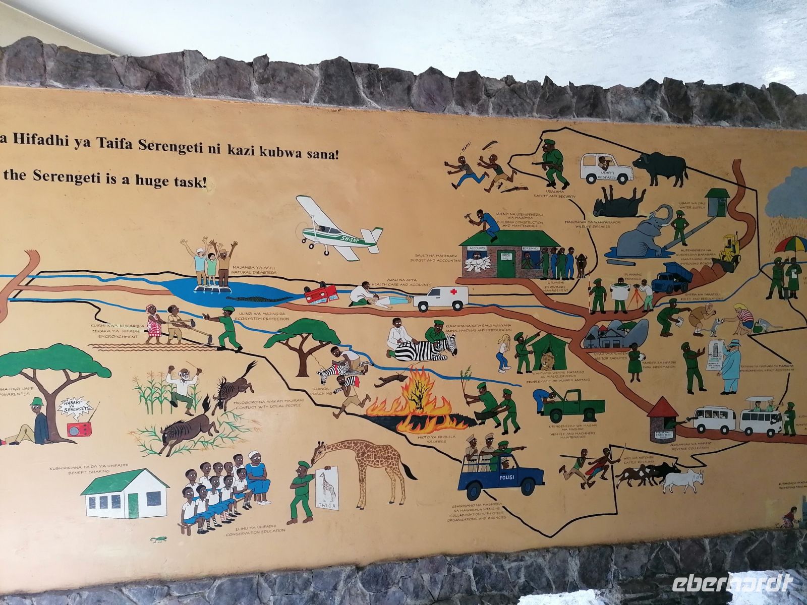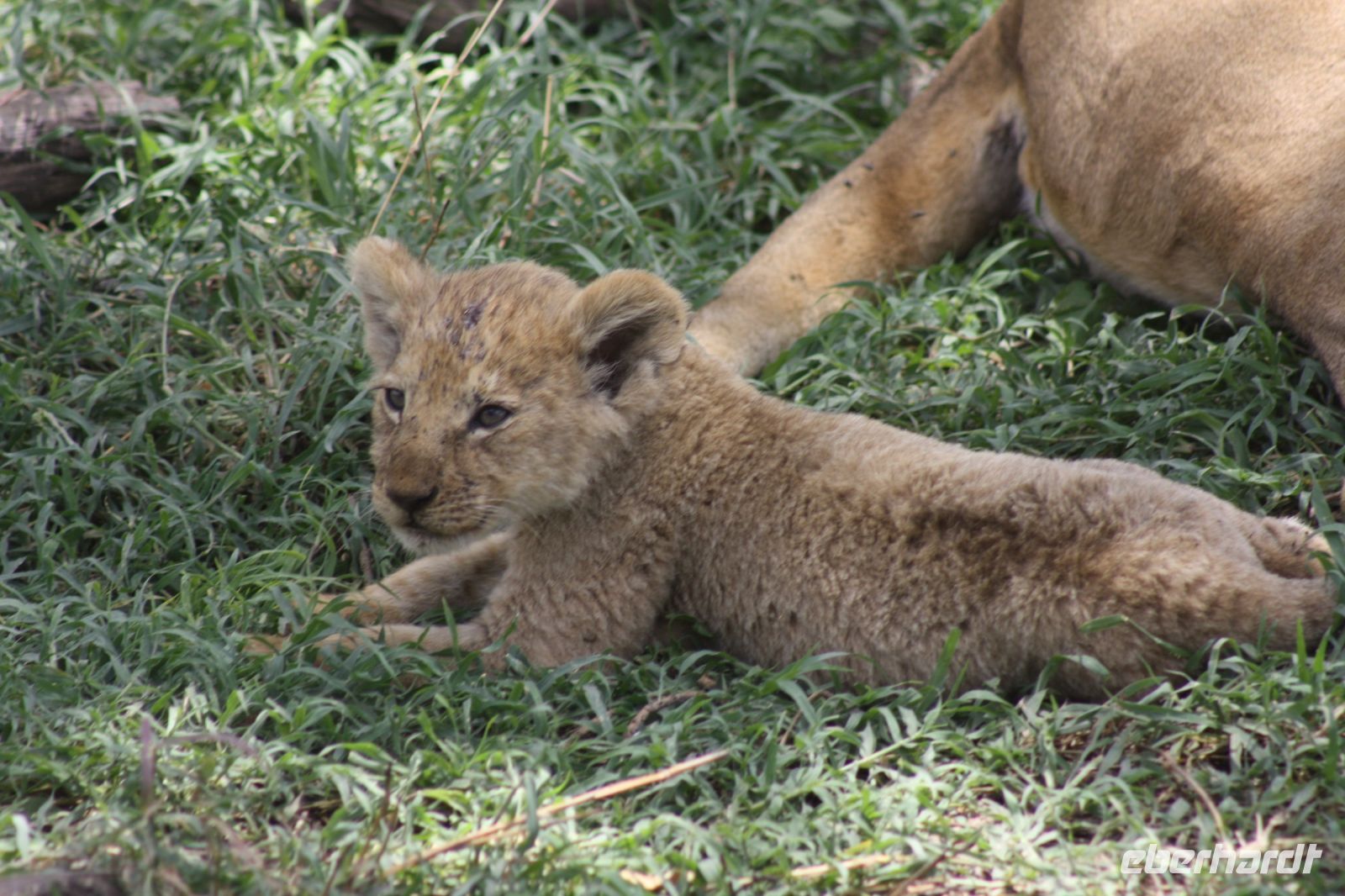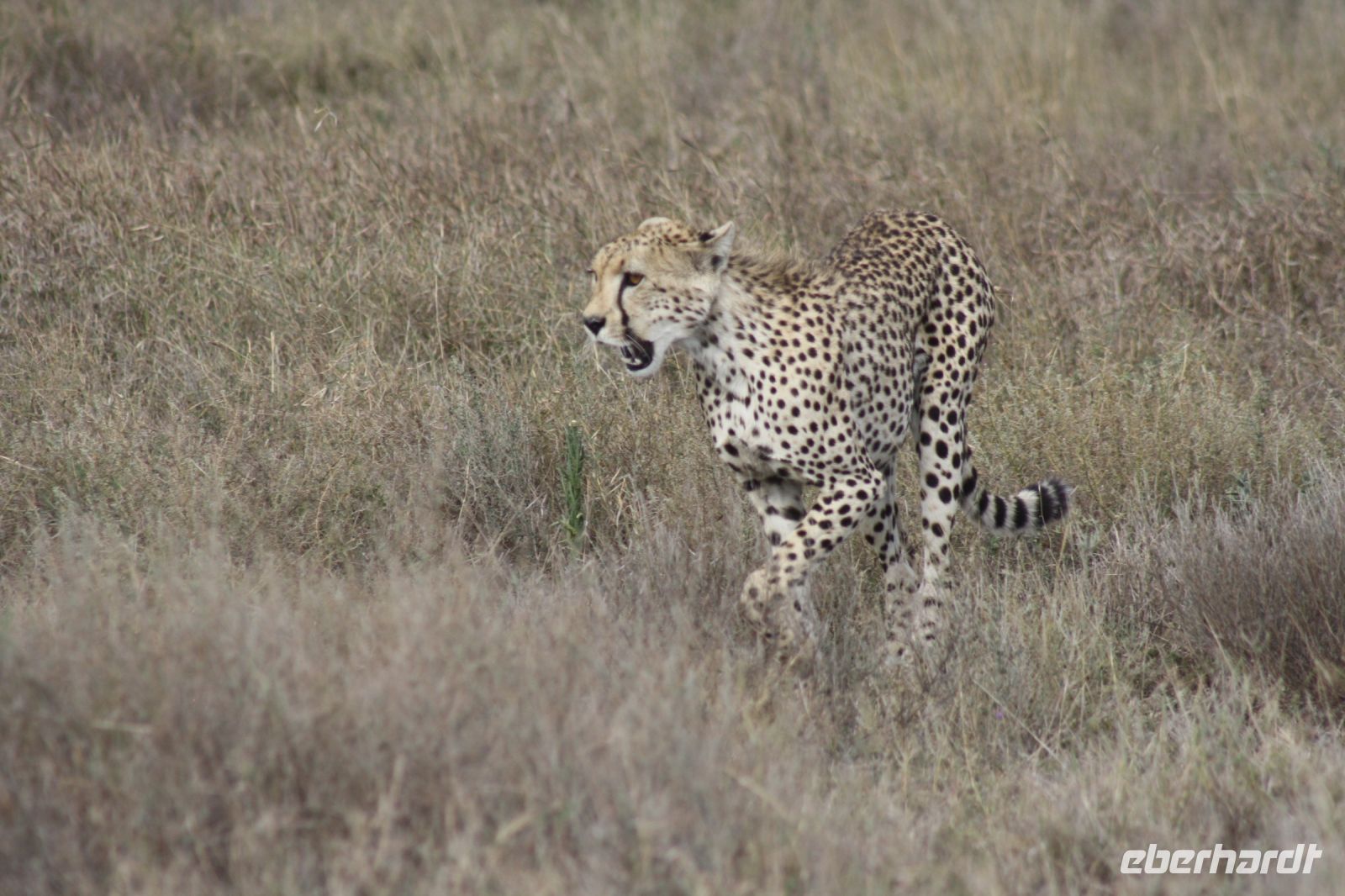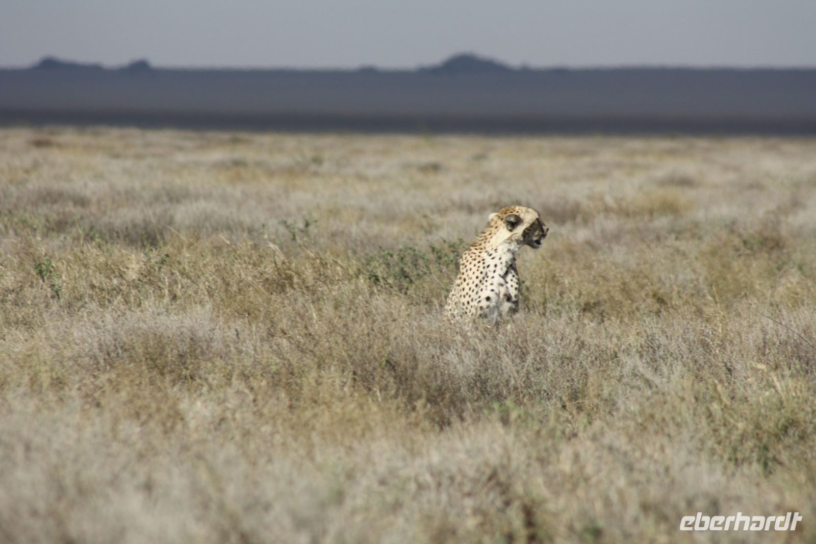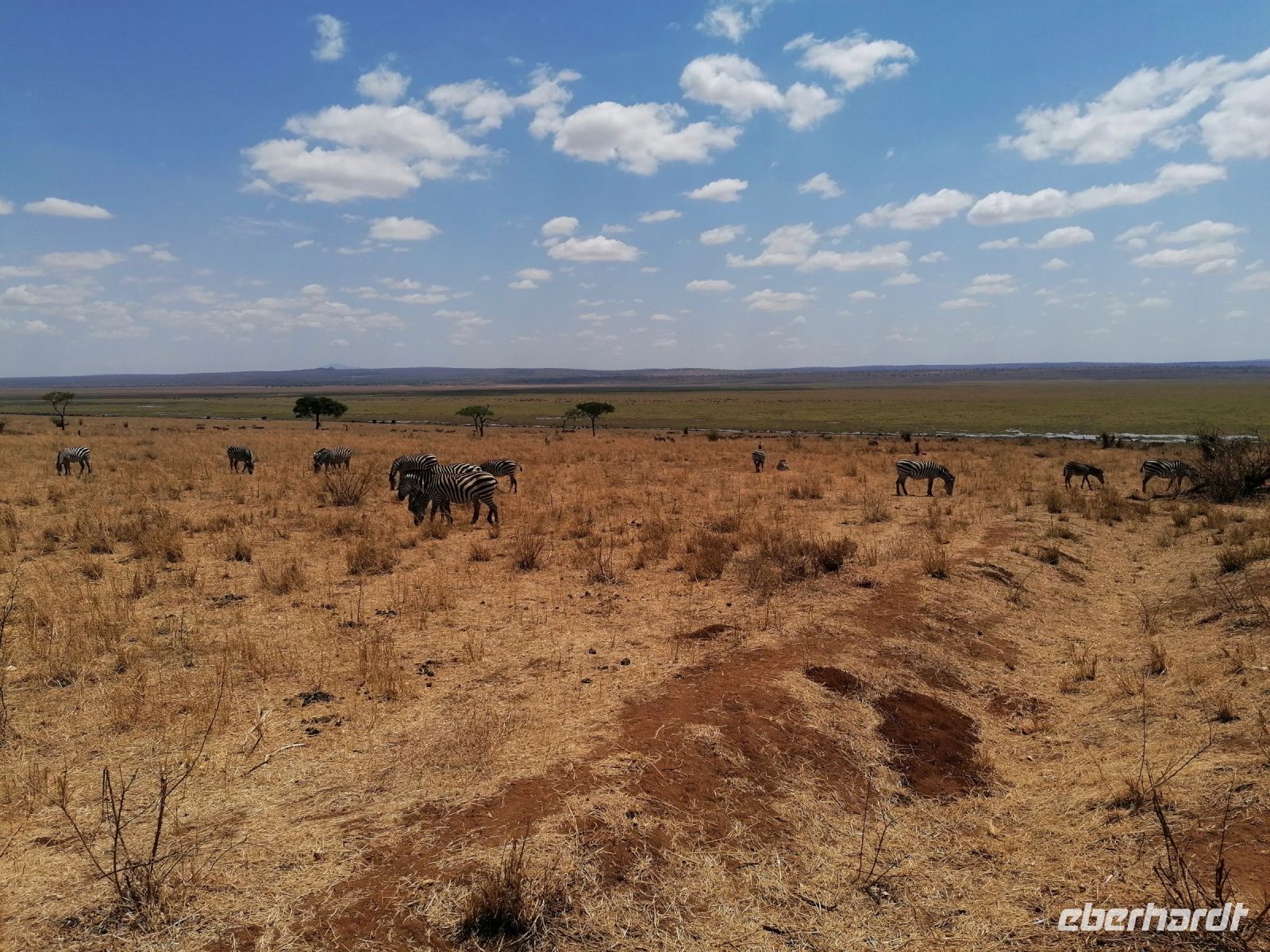 Am letzten in unserem Zeltcamp musste wir zunächst einmal mit einem Stromausfall kämpfen. Nichtsdestotrotz erhielten wir heißen Kaffee und warmes Frühstück. Unser Weg führt uns nochmal in Richtung Ngorongoro Krater und wir hielten kurz am Wochenmarkt. Die Stände werden gerade aufgebaut und Menschen aus den naheliegenden Dörfern erreichten den Markplatz, um zu handeln oder zu verkaufen. Nachdem wir den Markt verlassen hatten, versorgten wir uns an einem weiteren Souvenir Laden mit Mitbringsel. Der Weg verlief nochmal oberhalb des Ngorongoro Kraters bis nach Olduveit. Bereits an der Straße wurde ein neues großes Monument und ein neuer Eingang zum Olduveit Visitor Center gebaut. In der Region wurde bei Ausgrabungen primitive Werkzeuge, Fußabdrücke und menschliche Überreste gefunden. Man fand heraus, dass die ersten Menschen bereits vor 3 Millionen Jahren in der Region wohnten. Das neu angelegte Museum zeigte uns die Geschichte und Entwicklung der Menschheit, die bereits in der frühen Zeit zusammenlebten. Von einem angelegten Bühnen hatten wir einen fantastischen Blick in die beeindruckende tiefe Schlucht, wo die Ausgrabungen erfolgten. Hier konnten wir auch unsere Mittagspause und die Lunchbox genießen. Am Anschluss besuchten wir ein Dorf der Masai. Die Mitglieder dieses Stammes leben immer noch völlig traditionell in ihren Dörfern und hausten in Lehmhütten. Die Kinder und Männer arbeiten als Hirten und kümmern sich um die Tiere. Die Frau kochen, sammeln Holz und suchen nach Wasser. Wir werden zunächst von den Dorfbewohnern in ihrer bunten Kleidung und dem üppigen Perlenschmuck mit einem traditionellen Lied empfangen. Im Anschluss folgte eine Vorführung des Tanzes, womit die Männer mit den typischen hohen Sprüngen der bekannt wurden. Nach dem Tanz werden wir durch das Dorf geführt. Der Sohn des Häuptlings lud uns in seine Lehmhütte ein und wir könnten einen Eindruck gewinnen, wie die Masai auf kleinsten Raum lebten. Zum Schluss besuchten wir noch den Kindergarten des Dorfes. Hier lernen die 3-5jährigen Kinder bereits das Alphabet und die Zahlen bis Einhundert. Auch die Kinder begrüßen uns mit einem fröhlichen Lied und erwärmten unsere Herzen. Am Nachmittag erreichten wir das südliche Tor der Serengeti. Den Ort den die Masai den großen endlosen Weit nennen. Endlich waren wir im Serengeti Nationalpark angekommen. Wir freuten uns auf die nächsten Tage. Nach nur wenigen Kilometern fielen wir fast schon aus den Sitzen. Was ein Glück, denn als ersten Tier in der Serengeti sahen wir 2 männlichen Geparden. Die männliche Geparden sind meist in Gruppen zusammen, wobei die Weibchen immer alleine spazieren. Im Anschluss trafen wir auf großen Gruppen von Antilopen und Zebras. Ein Riesenkorid, der schwerste fliegende Vogel in Afrika blickten uns vom Wegrand an und Elefant fraßen in aller Ruhe in unserer Nähe. Nach nur wenigen Minuten waren wir stark beeindruckt von der Serengeti. Kurze Zeit später entdeckten wir zwei schlafende Löwen, die vermutlich gerade gegessen hatte. Im Hintergrund lauerten Hyänen und hofften sich einen Teil der Beute erbeuten zu können. Auf dem Weg zur Lodge konnten wir vier Löwinnen und 1 Löwe unterm Baum entdecken. Auch diese hatte gefressen, aber guckten ab und zu in die Kamera. Am Abend erreichten wir unser Camp, wo wir freundlich und herzlich empfangen wurden.