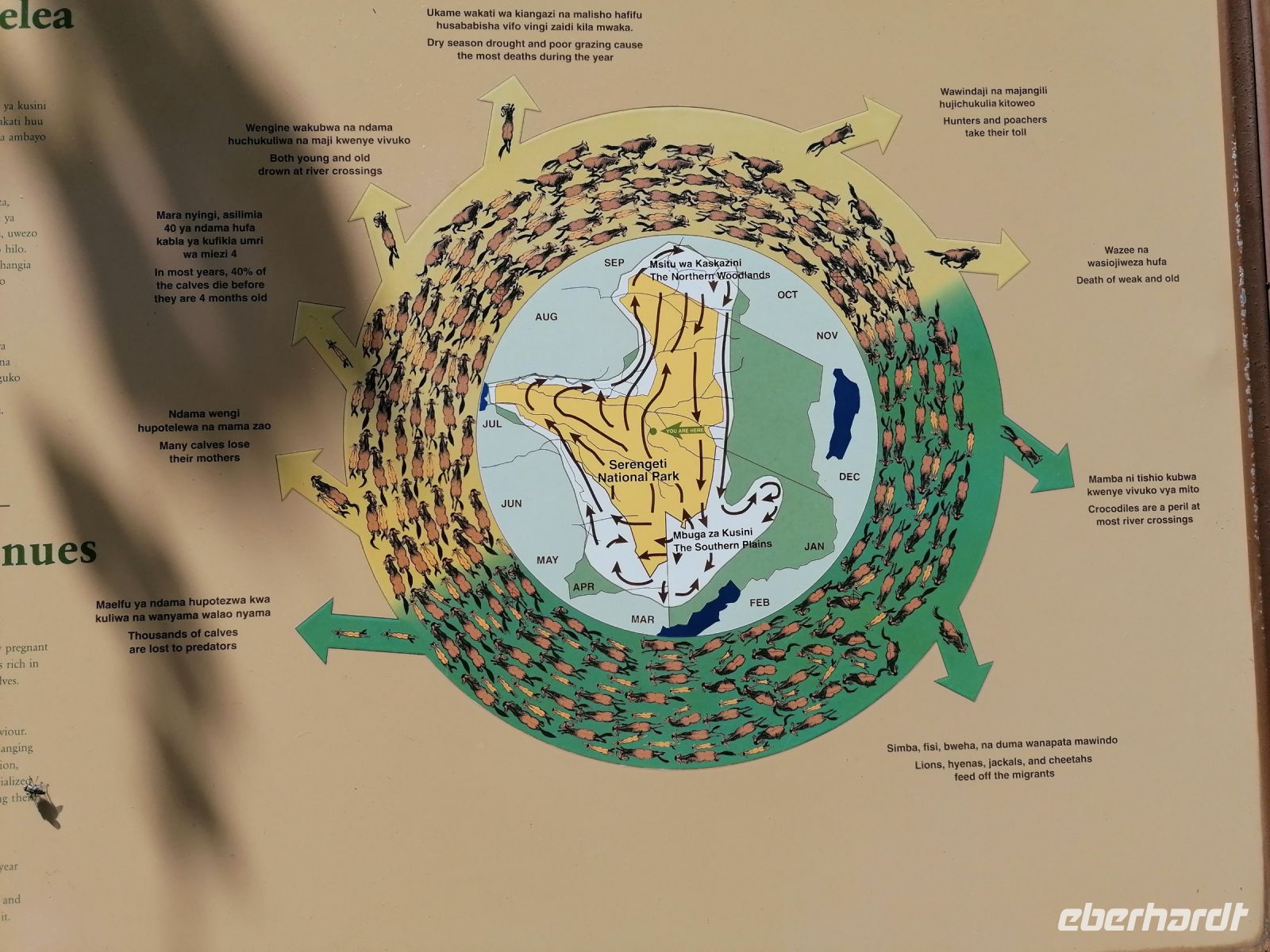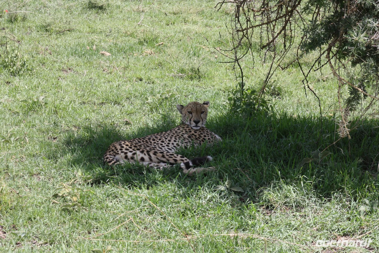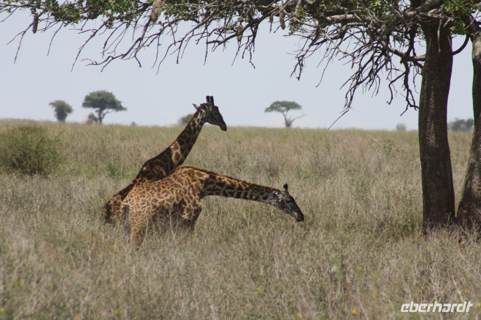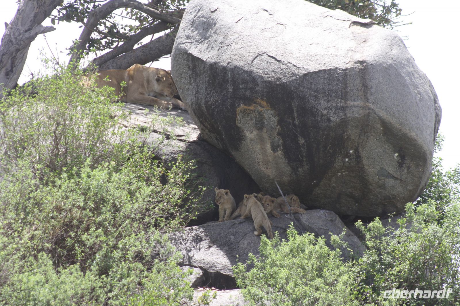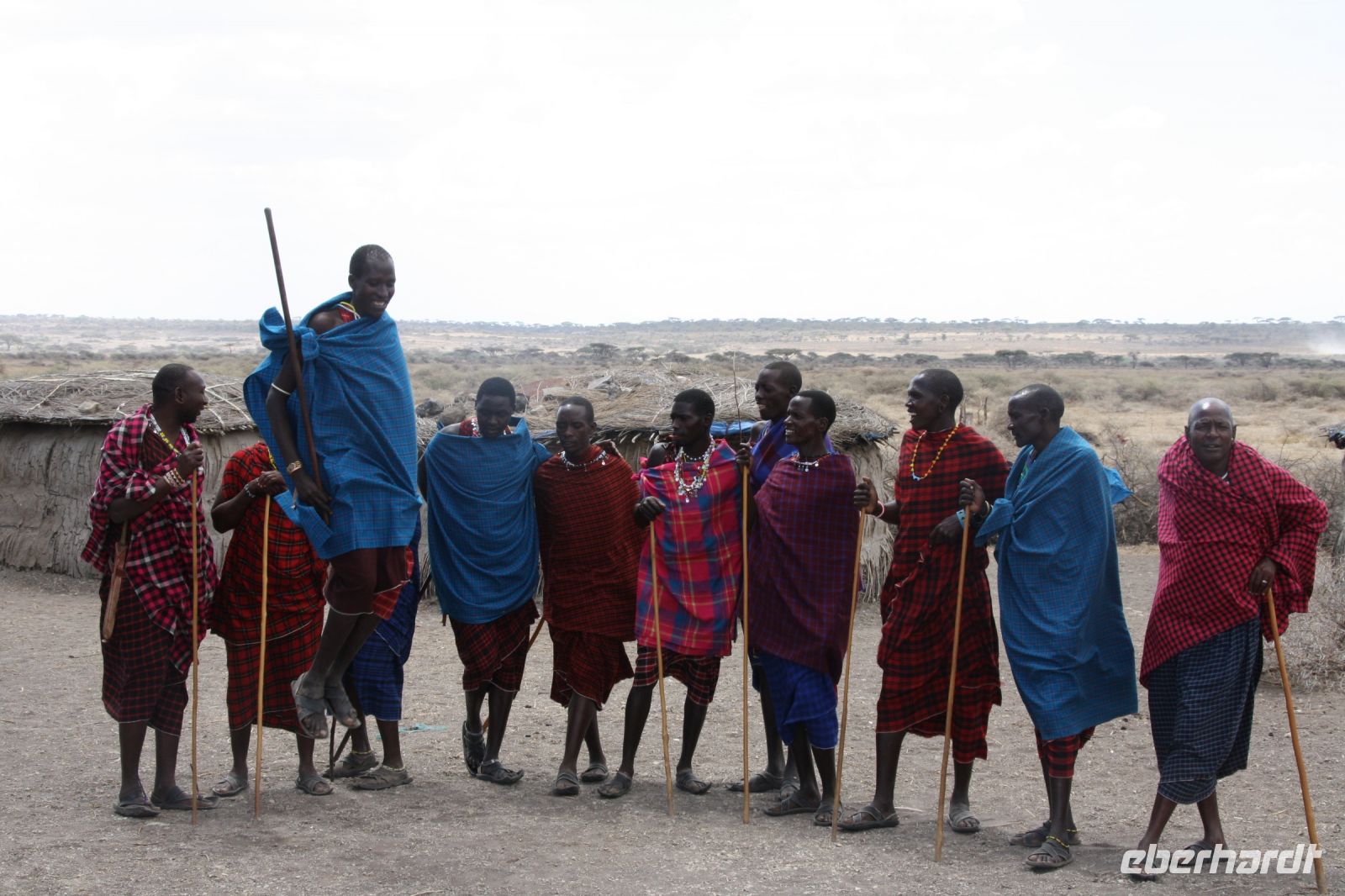 Am letzten in unserem Zeltcamp musste wir zunächst einmal mit einem Stromausfall kämpfen. Nichtsdestotrotz erhielten wir heißen Kaffee und warmes Frühstück. Unser Weg führt uns nochmal in Richtung Ngorongoro Krater und wir hielten kurz am Wochenmarkt. Die Stände werden gerade aufgebaut und Menschen aus den naheliegenden Dörfern erreichten den Markplatz, um zu handeln oder zu verkaufen. Nachdem wir den Markt verlassen hatten, versorgten wir uns an einem weiteren Souvenir Laden mit Mitbringsel. Der Weg verlief nochmal oberhalb des Ngorongoro Kraters bis nach Olduveit. Bereits an der Straße wurde ein neues großes Monument und ein neuer Eingang zum Olduveit Visitor Center gebaut. In der Region wurde bei Ausgrabungen primitive Werkzeuge, Fußabdrücke und menschliche Überreste gefunden. Man fand heraus, dass die ersten Menschen bereits vor 3 Millionen Jahren in der Region wohnten. Das neu angelegte Museum zeigte uns die Geschichte und Entwicklung der Menschheit, die bereits in der frühen Zeit zusammenlebten. Von einem angelegten Bühnen hatten wir einen fantastischen Blick in die beeindruckende tiefe Schlucht, wo die Ausgrabungen erfolgten. Hier konnten wir auch unsere Mittagspause und die Lunchbox genießen. Am Anschluss besuchten wir ein Dorf der Masai. Die Mitglieder dieses Stammes leben immer noch völlig traditionell in ihren Dörfern und hausten in Lehmhütten. Die Kinder und Männer arbeiten als Hirten und kümmern sich um die Tiere. Die Frau kochen, sammeln Holz und suchen nach Wasser. Wir werden zunächst von den Dorfbewohnern in ihrer bunten Kleidung und dem üppigen Perlenschmuck mit einem traditionellen Lied empfangen. Im Anschluss folgte eine Vorführung des Tanzes, womit die Männer mit den typischen hohen Sprüngen der bekannt wurden. Nach dem Tanz werden wir durch das Dorf geführt. Der Sohn des Häuptlings lud uns in seine Lehmhütte ein und wir könnten einen Eindruck gewinnen, wie die Masai auf kleinsten Raum lebten. Zum Schluss besuchten wir noch den Kindergarten des Dorfes. Hier lernen die 3-5jährigen Kinder bereits das Alphabet und die Zahlen bis Einhundert. Auch die Kinder begrüßen uns mit einem fröhlichen Lied und erwärmten unsere Herzen. Am Nachmittag erreichten wir das südliche Tor der Serengeti. Den Ort den die Masai den großen endlosen Weit nennen. Endlich waren wir im Serengeti Nationalpark angekommen. Wir freuten uns auf die nächsten Tage. Nach nur wenigen Kilometern fielen wir fast schon aus den Sitzen. Was ein Glück, denn als ersten Tier in der Serengeti sahen wir 2 männlichen Geparden. Die männliche Geparden sind meist in Gruppen zusammen, wobei die Weibchen immer alleine spazieren. Im Anschluss trafen wir auf großen Gruppen von Antilopen und Zebras. Ein Riesenkorid, der schwerste fliegende Vogel in Afrika blickten uns vom Wegrand an und Elefant fraßen in aller Ruhe in unserer Nähe. Nach nur wenigen Minuten waren wir stark beeindruckt von der Serengeti. Kurze Zeit später entdeckten wir zwei schlafende Löwen, die vermutlich gerade gegessen hatte. Im Hintergrund lauerten Hyänen und hofften sich einen Teil der Beute erbeuten zu können. Auf dem Weg zur Lodge konnten wir vier Löwinnen und 1 Löwe unterm Baum entdecken. Auch diese hatte gefressen, aber guckten ab und zu in die Kamera. Am Abend erreichten wir unser Camp, wo wir freundlich und herzlich empfangen wurden.