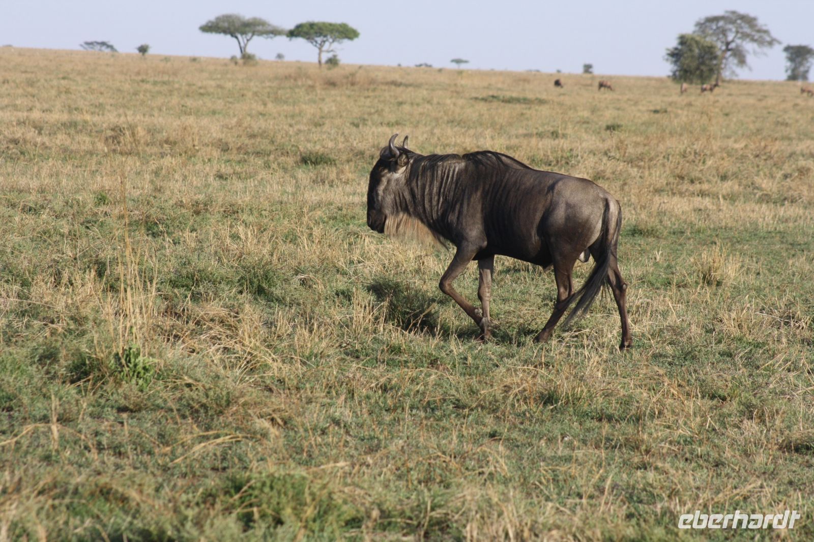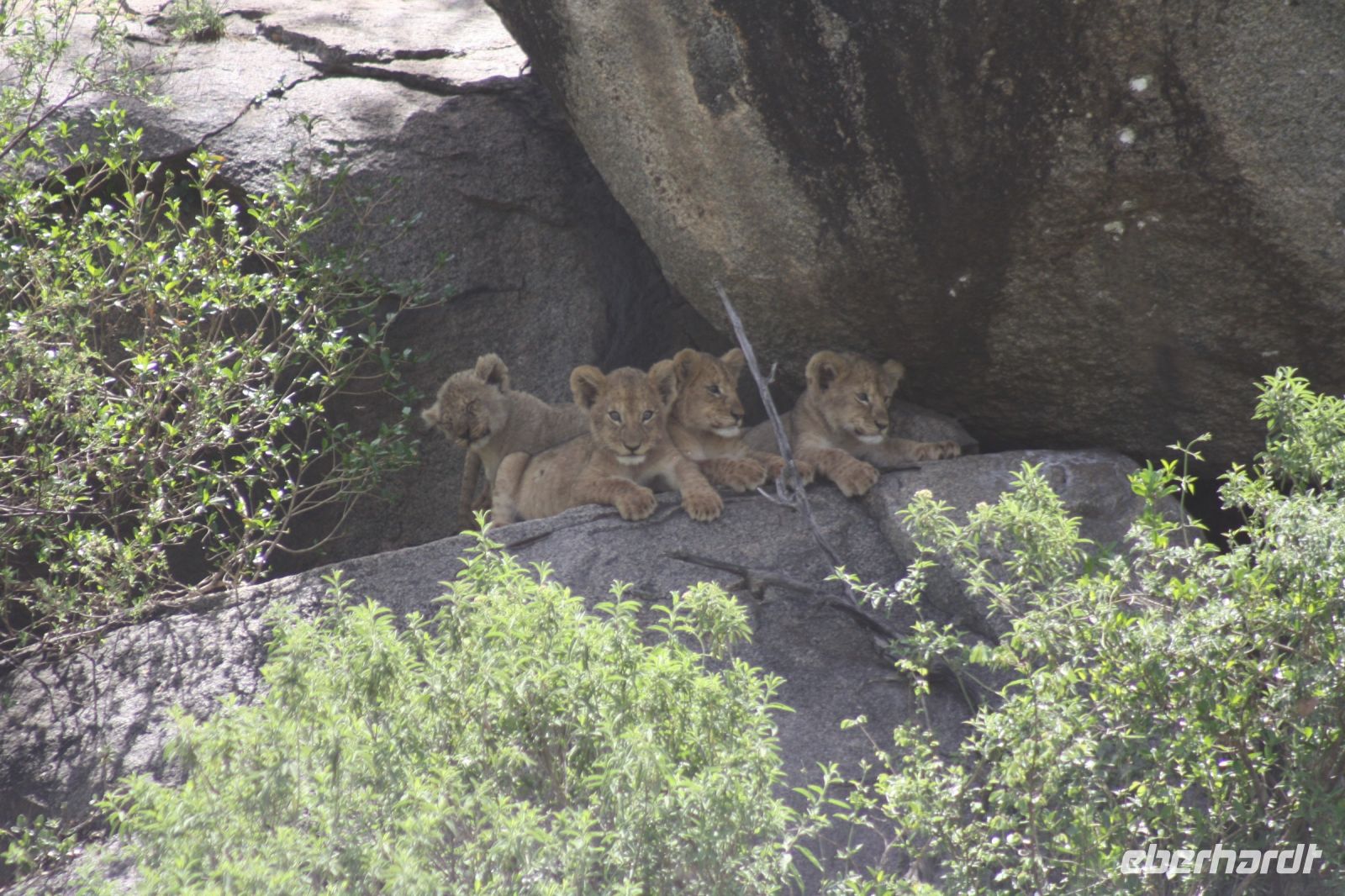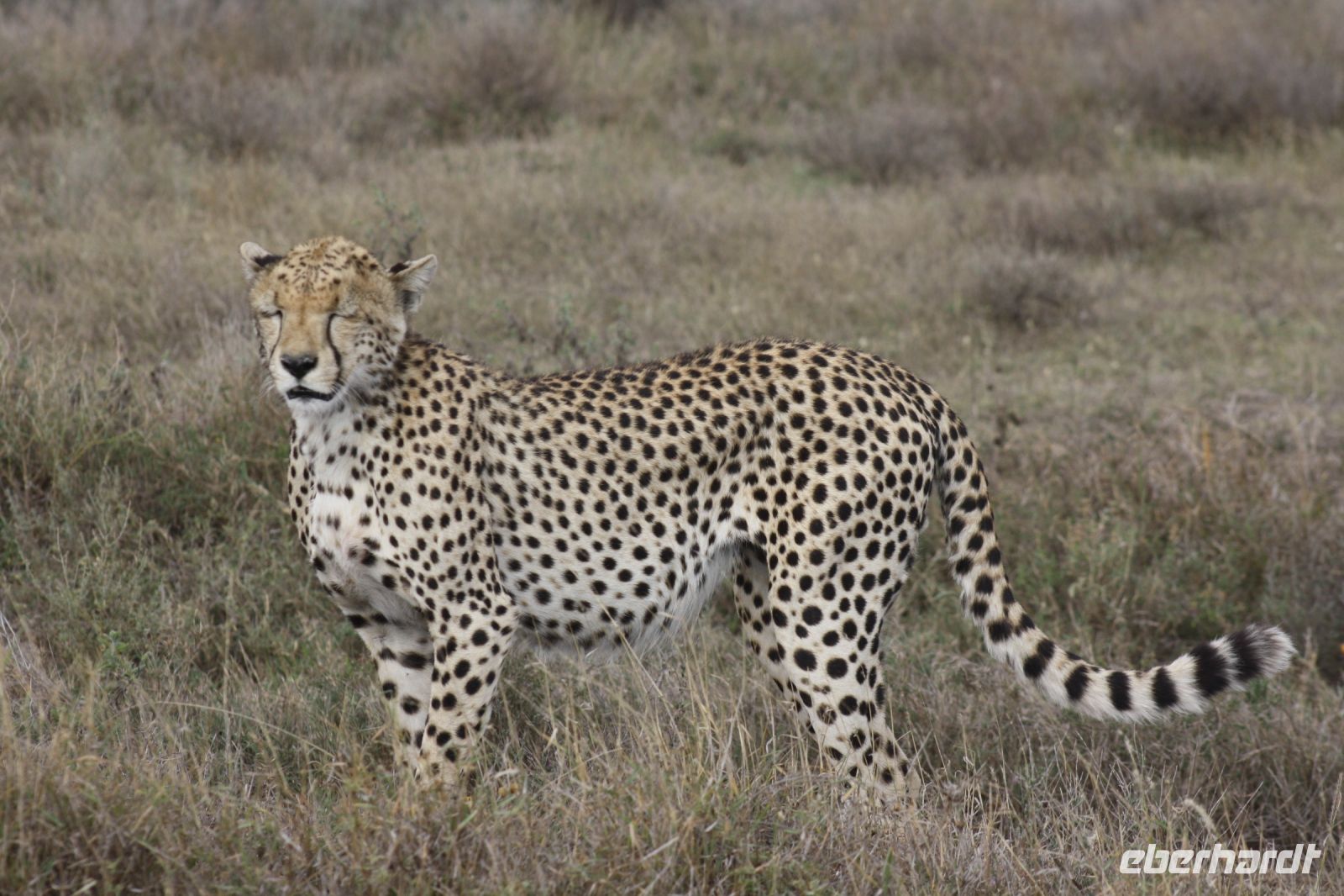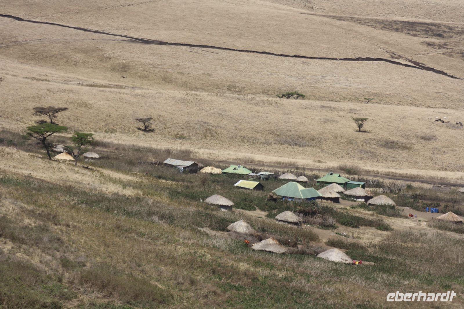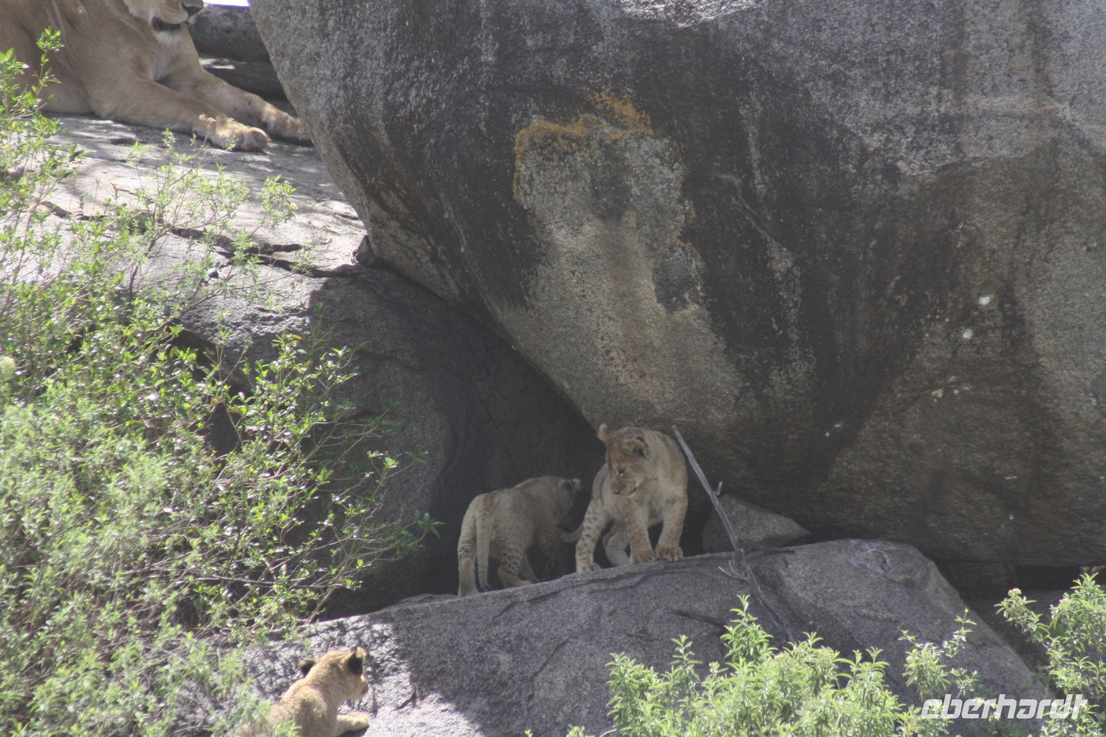 Am letzten in unserem Zeltcamp musste wir zunächst einmal mit einem Stromausfall kämpfen. Nichtsdestotrotz erhielten wir heißen Kaffee und warmes Frühstück. Unser Weg führt uns nochmal in Richtung Ngorongoro Krater und wir hielten kurz am Wochenmarkt. Die Stände werden gerade aufgebaut und Menschen aus den naheliegenden Dörfern erreichten den Markplatz, um zu handeln oder zu verkaufen. Nachdem wir den Markt verlassen hatten, versorgten wir uns an einem weiteren Souvenir Laden mit Mitbringsel. Der Weg verlief nochmal oberhalb des Ngorongoro Kraters bis nach Olduveit. Bereits an der Straße wurde ein neues großes Monument und ein neuer Eingang zum Olduveit Visitor Center gebaut. In der Region wurde bei Ausgrabungen primitive Werkzeuge, Fußabdrücke und menschliche Überreste gefunden. Man fand heraus, dass die ersten Menschen bereits vor 3 Millionen Jahren in der Region wohnten. Das neu angelegte Museum zeigte uns die Geschichte und Entwicklung der Menschheit, die bereits in der frühen Zeit zusammenlebten. Von einem angelegten Bühnen hatten wir einen fantastischen Blick in die beeindruckende tiefe Schlucht, wo die Ausgrabungen erfolgten. Hier konnten wir auch unsere Mittagspause und die Lunchbox genießen. Am Anschluss besuchten wir ein Dorf der Masai. Die Mitglieder dieses Stammes leben immer noch völlig traditionell in ihren Dörfern und hausten in Lehmhütten. Die Kinder und Männer arbeiten als Hirten und kümmern sich um die Tiere. Die Frau kochen, sammeln Holz und suchen nach Wasser. Wir werden zunächst von den Dorfbewohnern in ihrer bunten Kleidung und dem üppigen Perlenschmuck mit einem traditionellen Lied empfangen. Im Anschluss folgte eine Vorführung des Tanzes, womit die Männer mit den typischen hohen Sprüngen der bekannt wurden. Nach dem Tanz werden wir durch das Dorf geführt. Der Sohn des Häuptlings lud uns in seine Lehmhütte ein und wir könnten einen Eindruck gewinnen, wie die Masai auf kleinsten Raum lebten. Zum Schluss besuchten wir noch den Kindergarten des Dorfes. Hier lernen die 3-5jährigen Kinder bereits das Alphabet und die Zahlen bis Einhundert. Auch die Kinder begrüßen uns mit einem fröhlichen Lied und erwärmten unsere Herzen. Am Nachmittag erreichten wir das südliche Tor der Serengeti. Den Ort den die Masai den großen endlosen Weit nennen. Endlich waren wir im Serengeti Nationalpark angekommen. Wir freuten uns auf die nächsten Tage. Nach nur wenigen Kilometern fielen wir fast schon aus den Sitzen. Was ein Glück, denn als ersten Tier in der Serengeti sahen wir 2 männlichen Geparden. Die männliche Geparden sind meist in Gruppen zusammen, wobei die Weibchen immer alleine spazieren. Im Anschluss trafen wir auf großen Gruppen von Antilopen und Zebras. Ein Riesenkorid, der schwerste fliegende Vogel in Afrika blickten uns vom Wegrand an und Elefant fraßen in aller Ruhe in unserer Nähe. Nach nur wenigen Minuten waren wir stark beeindruckt von der Serengeti. Kurze Zeit später entdeckten wir zwei schlafende Löwen, die vermutlich gerade gegessen hatte. Im Hintergrund lauerten Hyänen und hofften sich einen Teil der Beute erbeuten zu können. Auf dem Weg zur Lodge konnten wir vier Löwinnen und 1 Löwe unterm Baum entdecken. Auch diese hatte gefressen, aber guckten ab und zu in die Kamera. Am Abend erreichten wir unser Camp, wo wir freundlich und herzlich empfangen wurden.