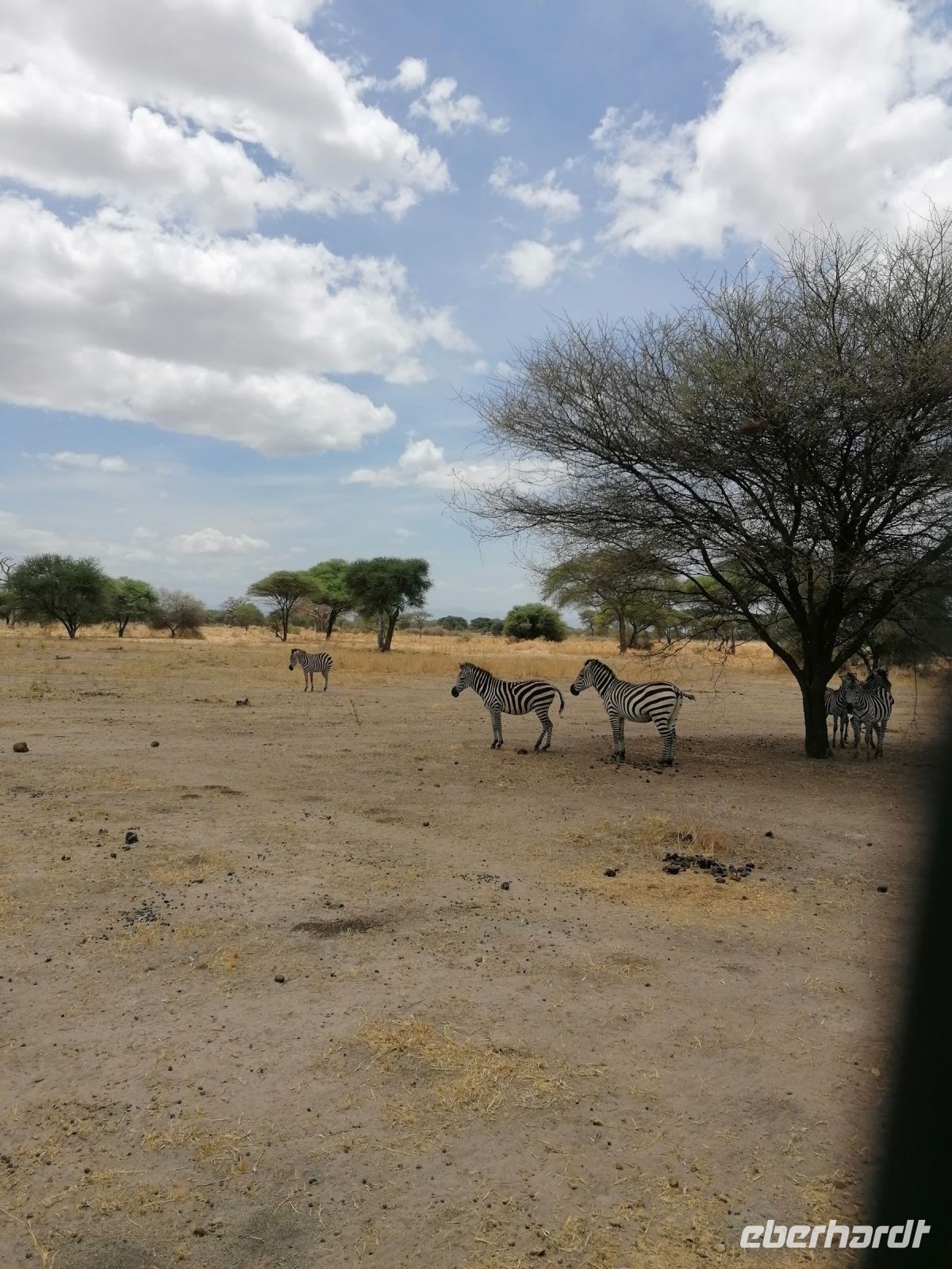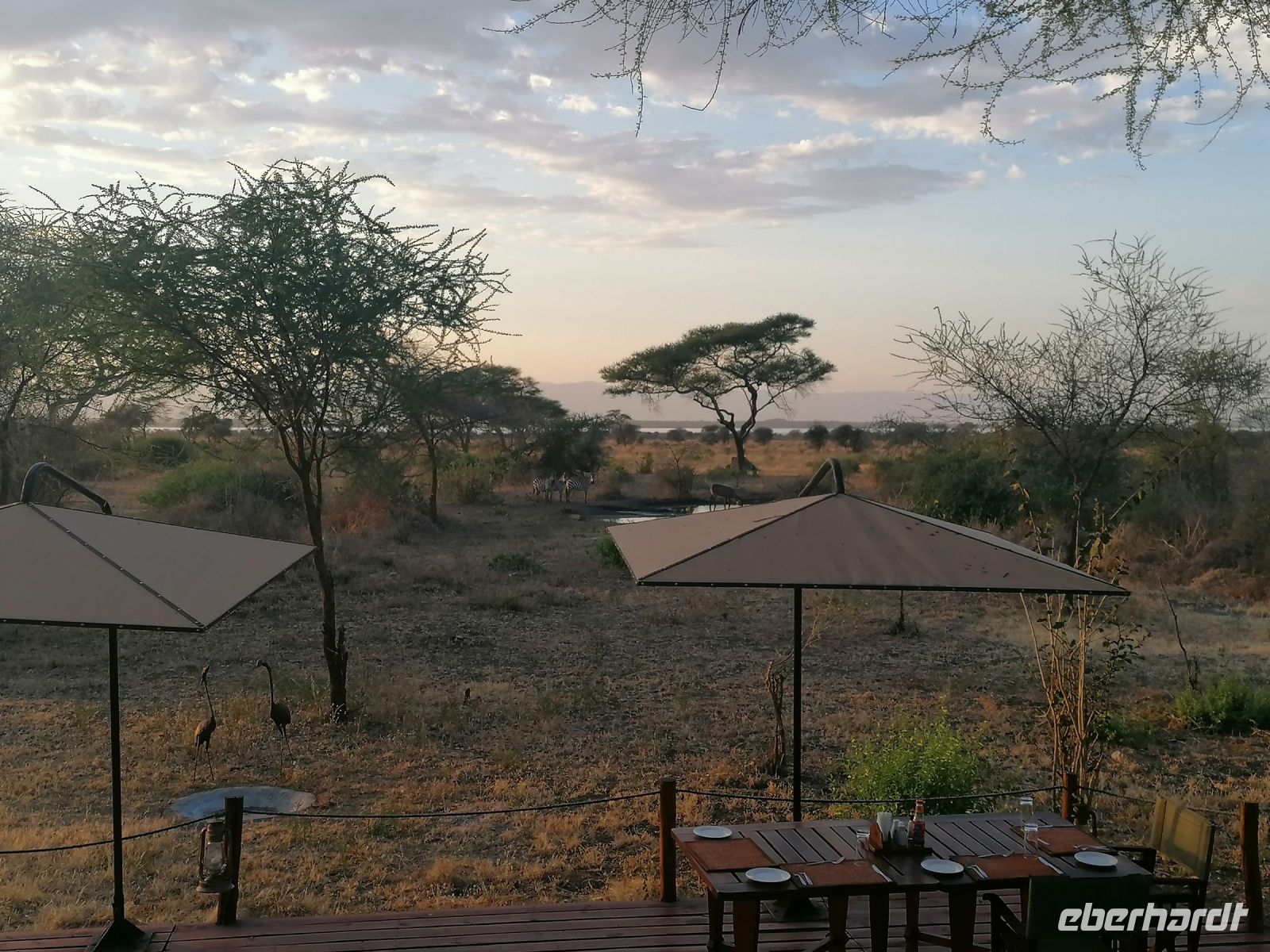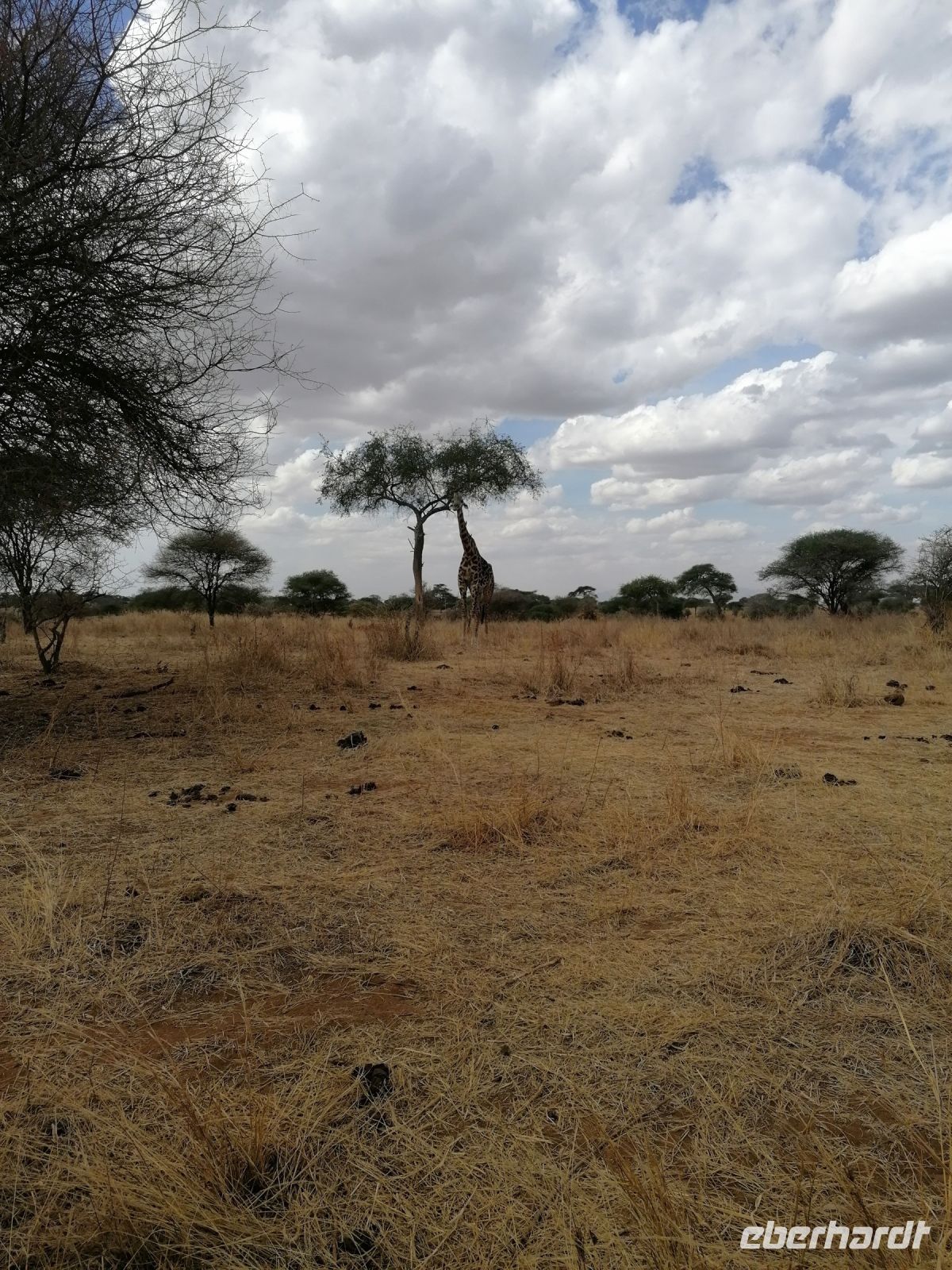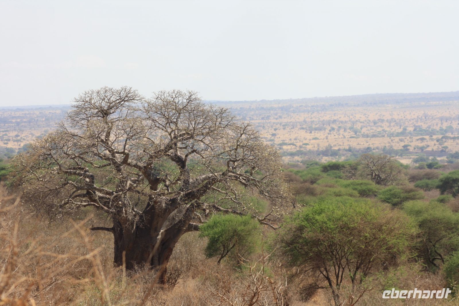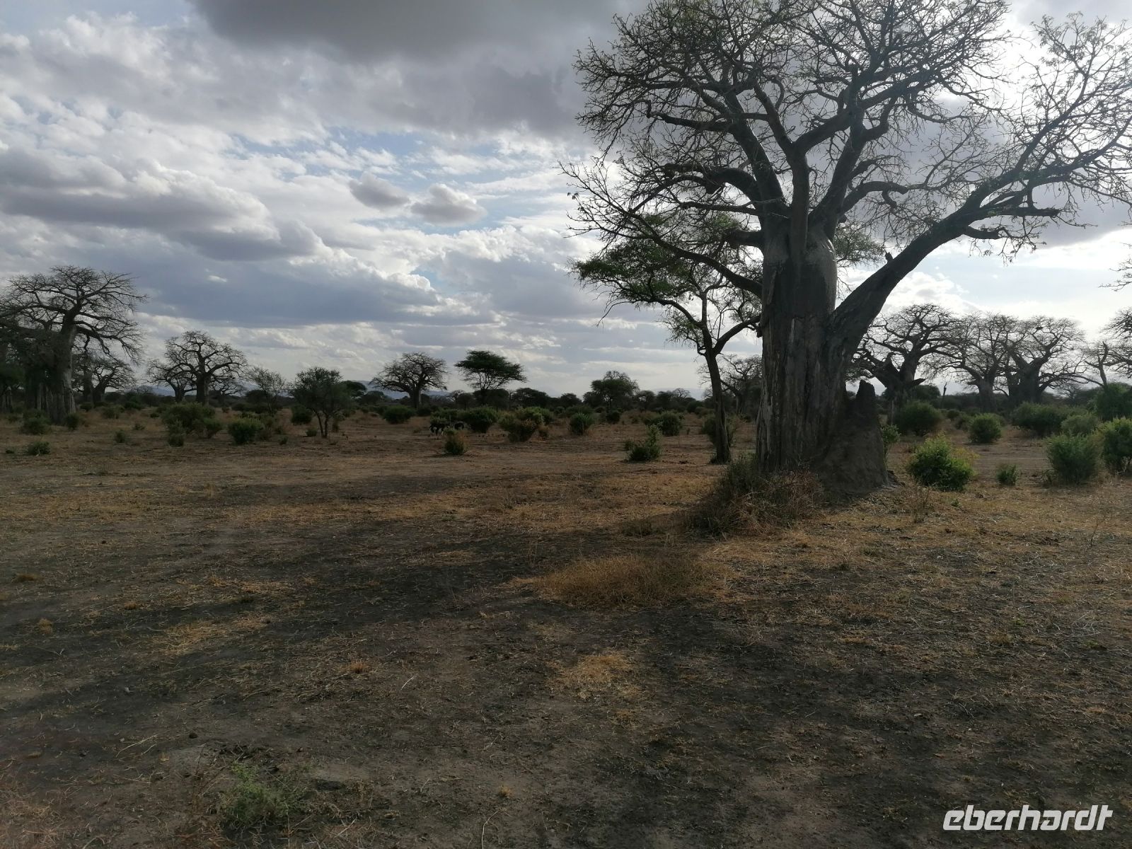 Heute heißt es leider Abschied von unserer liebgewonnene Rivertrees Lodge nehmen. Gemeinsam mit Karim machten wir uns auf dem Weg in Richtung Tarangire Nationalpark. Unterwegs konnten wir einen letzten Blick auf Mount Meru erhaschen, der sich diesmal fast wolkenfrei zeigte. Im Anschluss fuhren wir durch die Stadt Arusha und konnten einen ersten Eindruck von einer afrikanischen Stadt gewinnen. Nach der Stadt erreichten wir die Savanne. Hier konnten man bereits einige Dörfer der Masai entdecken. Die Kinder der Masai passen gemeinsam mit dem Vater auf das Vieh auf. Die Mütter sind für das Essen, das Wasser und auch für das Feuer in den Hütten zuständig. Zudem konnten wir unterwegs Geier mit einem toten Esel erblicken. Um die Mittagszeit erreichten wir das Eingangsgate zum Tarangire Nationalpark. Nach einer schnellen Anmeldung konnte unsere Pirschfahrt beginnen. Zuerst kreuzten Impalas unseren Weg, wo nur die Männer Hörner besitzen. Kurz darauf empfang uns ein Affenblütenbaum, der eigentlich nur nachts blüht, für uns eine Ausnahme machte. Nach kurzer Zeit erreichen wir das Wasserloch, wo sich Zebras, Gnus, Impalas und Warzenschweine begnügten. In kurzer Zeit konnten wir Elanantilopen, Gnus, ein schwarzer Hornrabe und riesige Büffelherde entdecken. Wir waren bereits hin und weg, als wir die Nachricht über einen Leoparden im Baum erhielten. Zum Glück waren wir in der Nähe und konnten uns einen Einblick machen. Leider versteckte sich der Leopard geschickt vor uns, sodass wir nur die Umrisse erahnen konnten. Trotzdem fuhren wir glücklich in Richtung Aussichtspunkt, wo wir eine große Elefantenherde mit Kindern erhaschen konnten. Unsere Mittagspause absolvierten an einen schönen Aussichtspunkt. Gemeinsam mit ein paar Pavianen teilten wir unser Essen und genossen den wunderbaren Ausblick. Nach unserer Mittagspause führten wir unsere Pirsch fort. Im Anschluss konnten wir unzählige Elefanten und Zebras erblicken. Am Fluss konnten wir Geiern bei ihrer Mittagspause zugucken, wo sie eine Giraffe als Mahlzeit verputzten. Des Weiteren erspähten wir Papageien, einen Rotschnabel und Erdmännchen. Ein weiteres Highlight waren drei weibliche Strauße, die mit ihren 22 Babys spazieren gingen. Auf dem Weg zur Lodge liefen uns noch blaue Gabelröcke, Elefant, Dikdik und Warzenschweine über den Weg. Unser Zeltcamp war schön am Rand des Nationalparks gelegen und wir konnten bei dem schönen Sonnenuntergang vom Restaurant aus genießen.