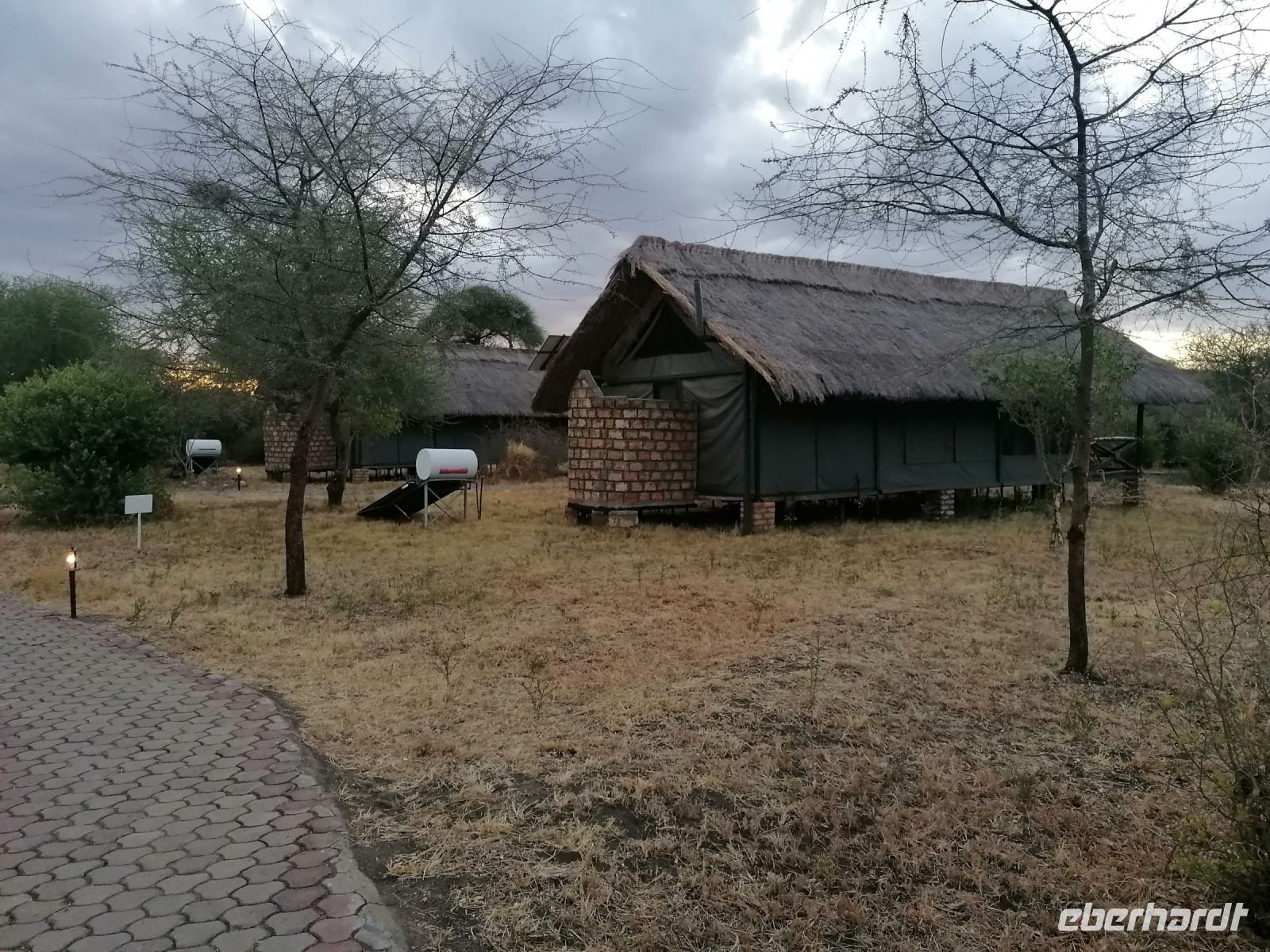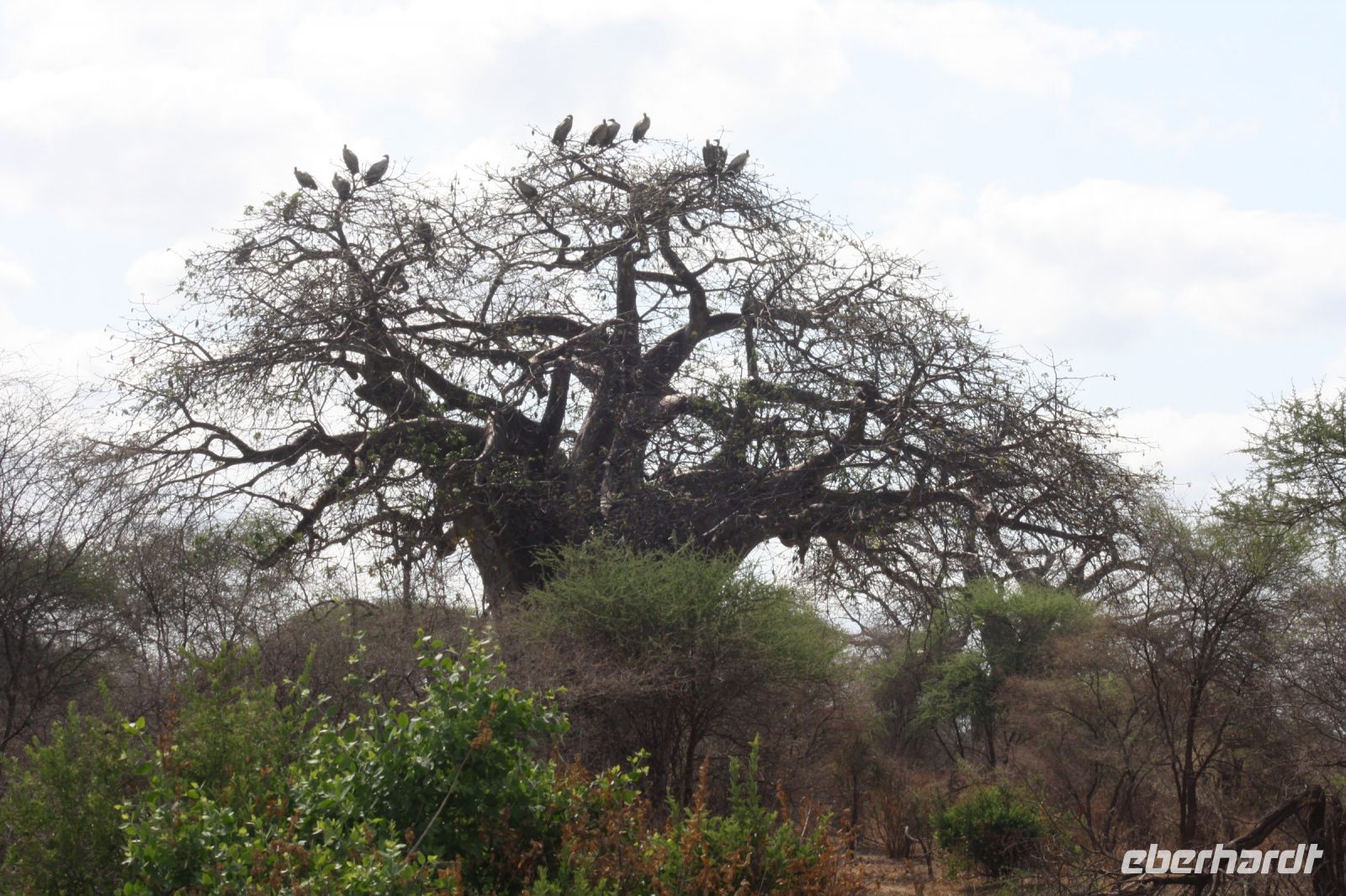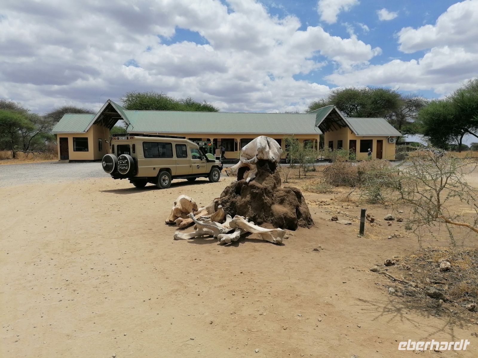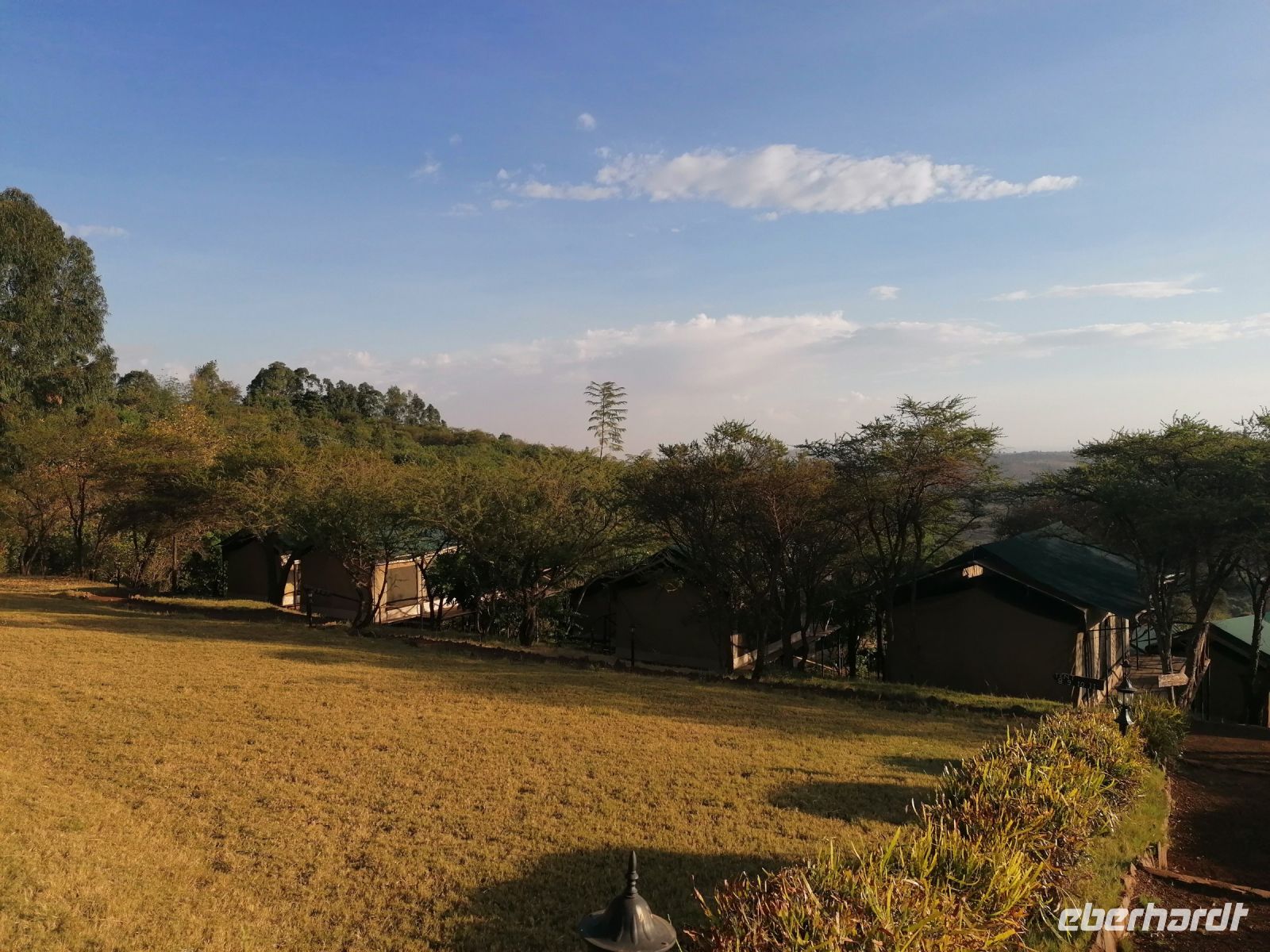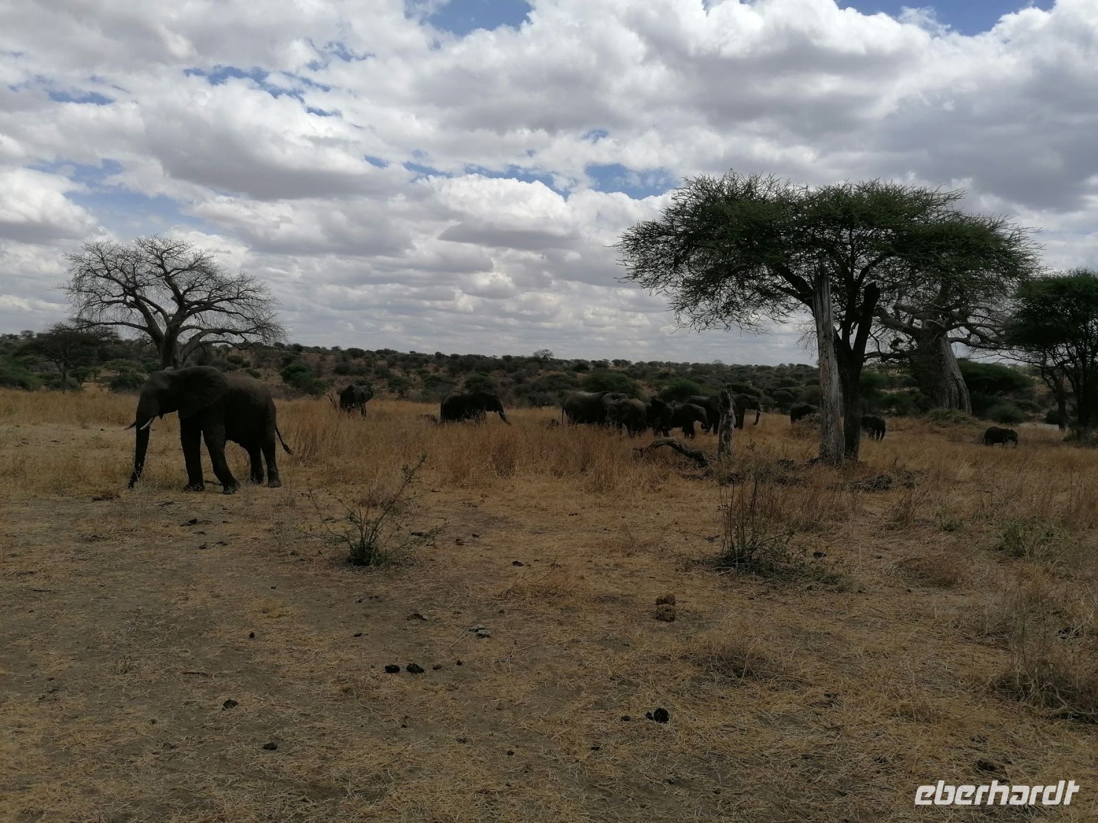 Heute heißt es leider Abschied von unserer liebgewonnene Rivertrees Lodge nehmen. Gemeinsam mit Karim machten wir uns auf dem Weg in Richtung Tarangire Nationalpark. Unterwegs konnten wir einen letzten Blick auf Mount Meru erhaschen, der sich diesmal fast wolkenfrei zeigte. Im Anschluss fuhren wir durch die Stadt Arusha und konnten einen ersten Eindruck von einer afrikanischen Stadt gewinnen. Nach der Stadt erreichten wir die Savanne. Hier konnten man bereits einige Dörfer der Masai entdecken. Die Kinder der Masai passen gemeinsam mit dem Vater auf das Vieh auf. Die Mütter sind für das Essen, das Wasser und auch für das Feuer in den Hütten zuständig. Zudem konnten wir unterwegs Geier mit einem toten Esel erblicken. Um die Mittagszeit erreichten wir das Eingangsgate zum Tarangire Nationalpark. Nach einer schnellen Anmeldung konnte unsere Pirschfahrt beginnen. Zuerst kreuzten Impalas unseren Weg, wo nur die Männer Hörner besitzen. Kurz darauf empfang uns ein Affenblütenbaum, der eigentlich nur nachts blüht, für uns eine Ausnahme machte. Nach kurzer Zeit erreichen wir das Wasserloch, wo sich Zebras, Gnus, Impalas und Warzenschweine begnügten. In kurzer Zeit konnten wir Elanantilopen, Gnus, ein schwarzer Hornrabe und riesige Büffelherde entdecken. Wir waren bereits hin und weg, als wir die Nachricht über einen Leoparden im Baum erhielten. Zum Glück waren wir in der Nähe und konnten uns einen Einblick machen. Leider versteckte sich der Leopard geschickt vor uns, sodass wir nur die Umrisse erahnen konnten. Trotzdem fuhren wir glücklich in Richtung Aussichtspunkt, wo wir eine große Elefantenherde mit Kindern erhaschen konnten. Unsere Mittagspause absolvierten an einen schönen Aussichtspunkt. Gemeinsam mit ein paar Pavianen teilten wir unser Essen und genossen den wunderbaren Ausblick. Nach unserer Mittagspause führten wir unsere Pirsch fort. Im Anschluss konnten wir unzählige Elefanten und Zebras erblicken. Am Fluss konnten wir Geiern bei ihrer Mittagspause zugucken, wo sie eine Giraffe als Mahlzeit verputzten. Des Weiteren erspähten wir Papageien, einen Rotschnabel und Erdmännchen. Ein weiteres Highlight waren drei weibliche Strauße, die mit ihren 22 Babys spazieren gingen. Auf dem Weg zur Lodge liefen uns noch blaue Gabelröcke, Elefant, Dikdik und Warzenschweine über den Weg. Unser Zeltcamp war schön am Rand des Nationalparks gelegen und wir konnten bei dem schönen Sonnenuntergang vom Restaurant aus genießen.