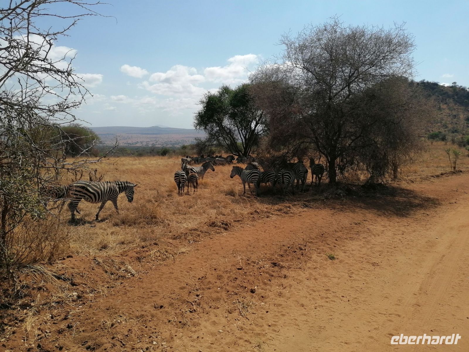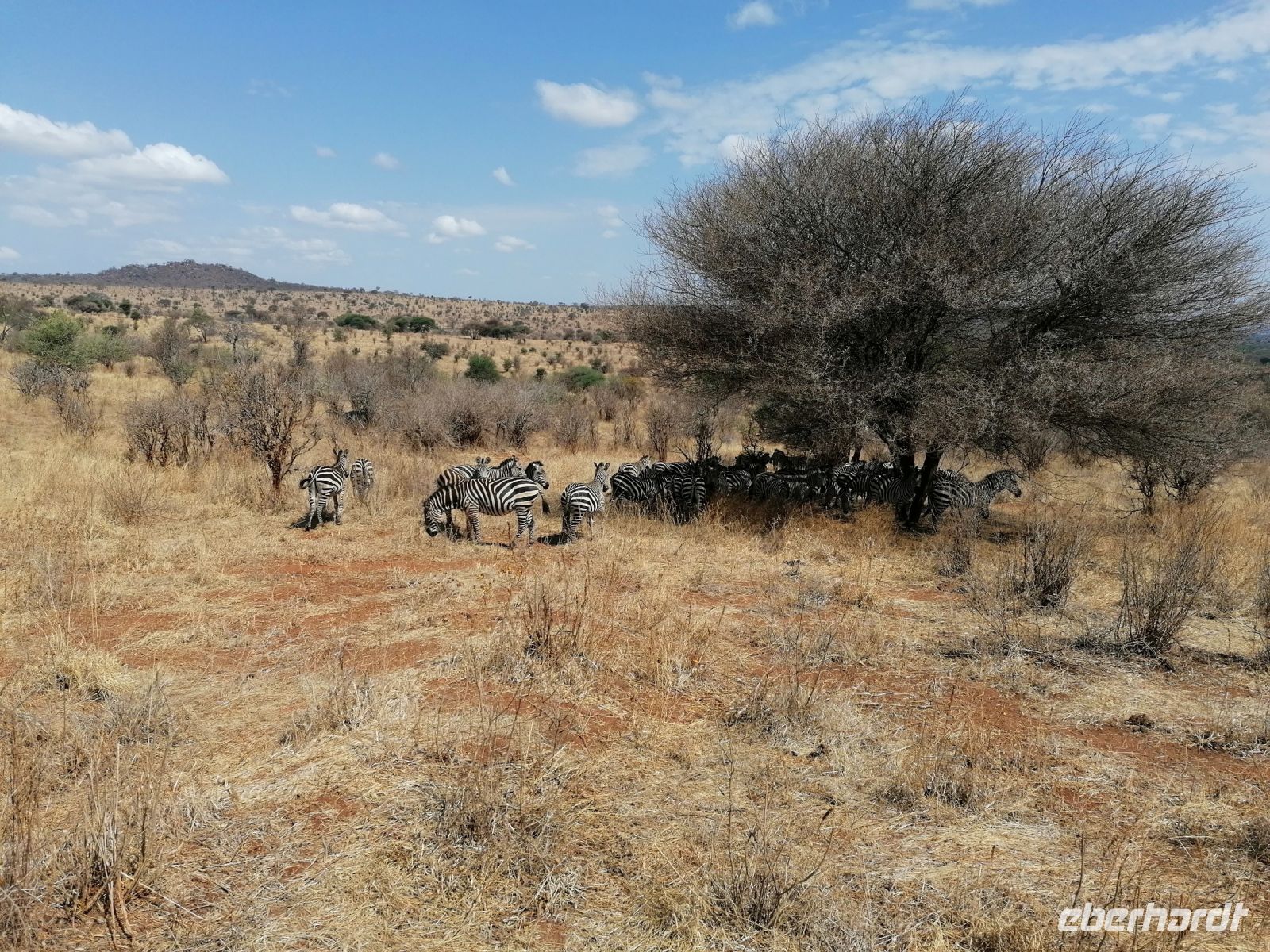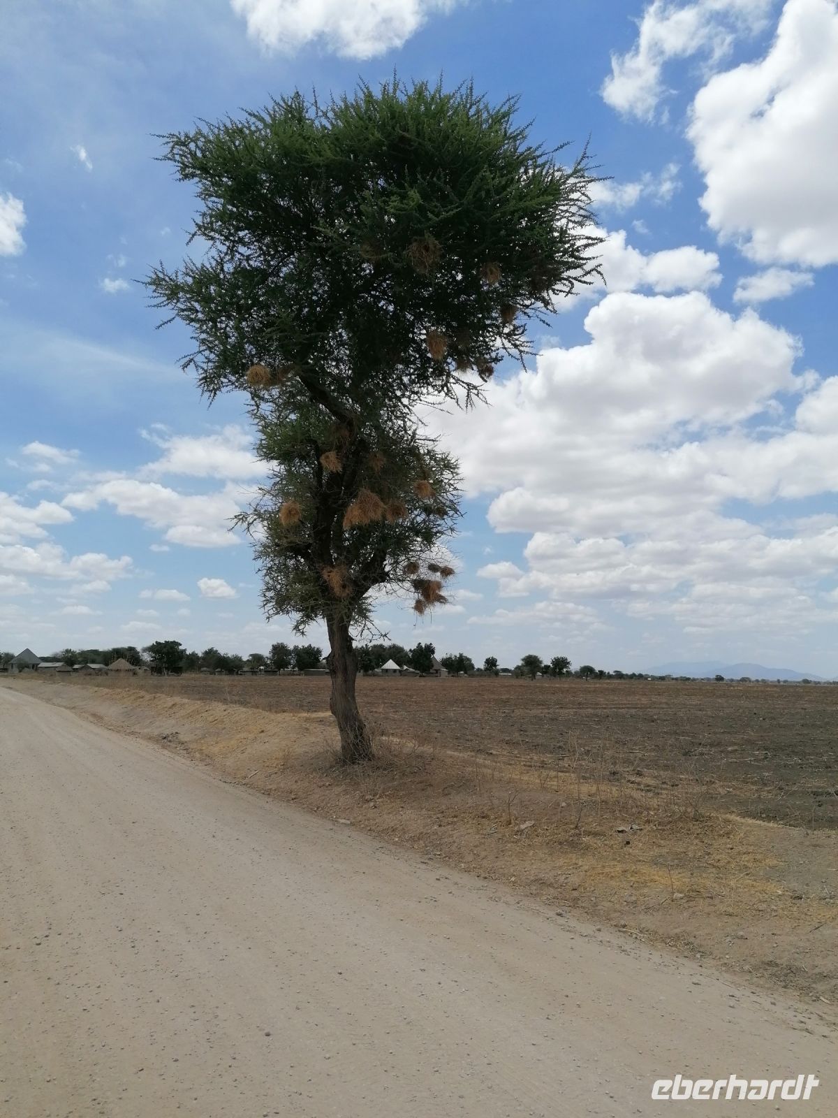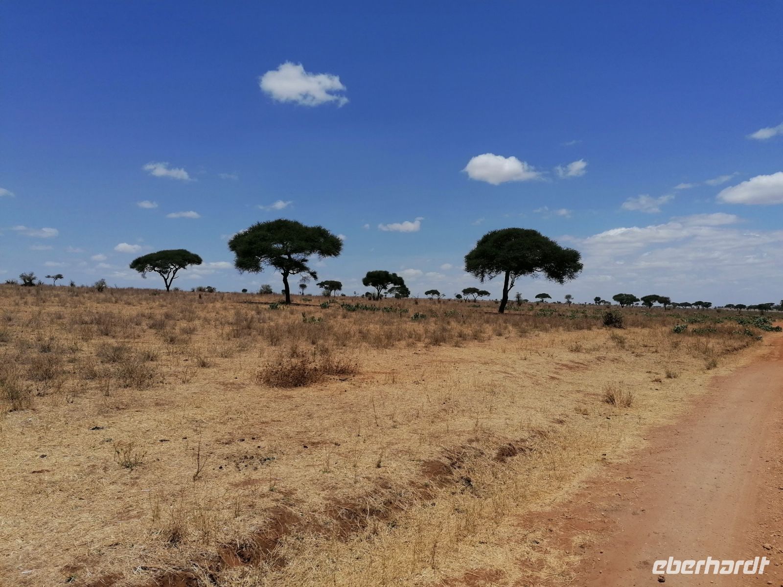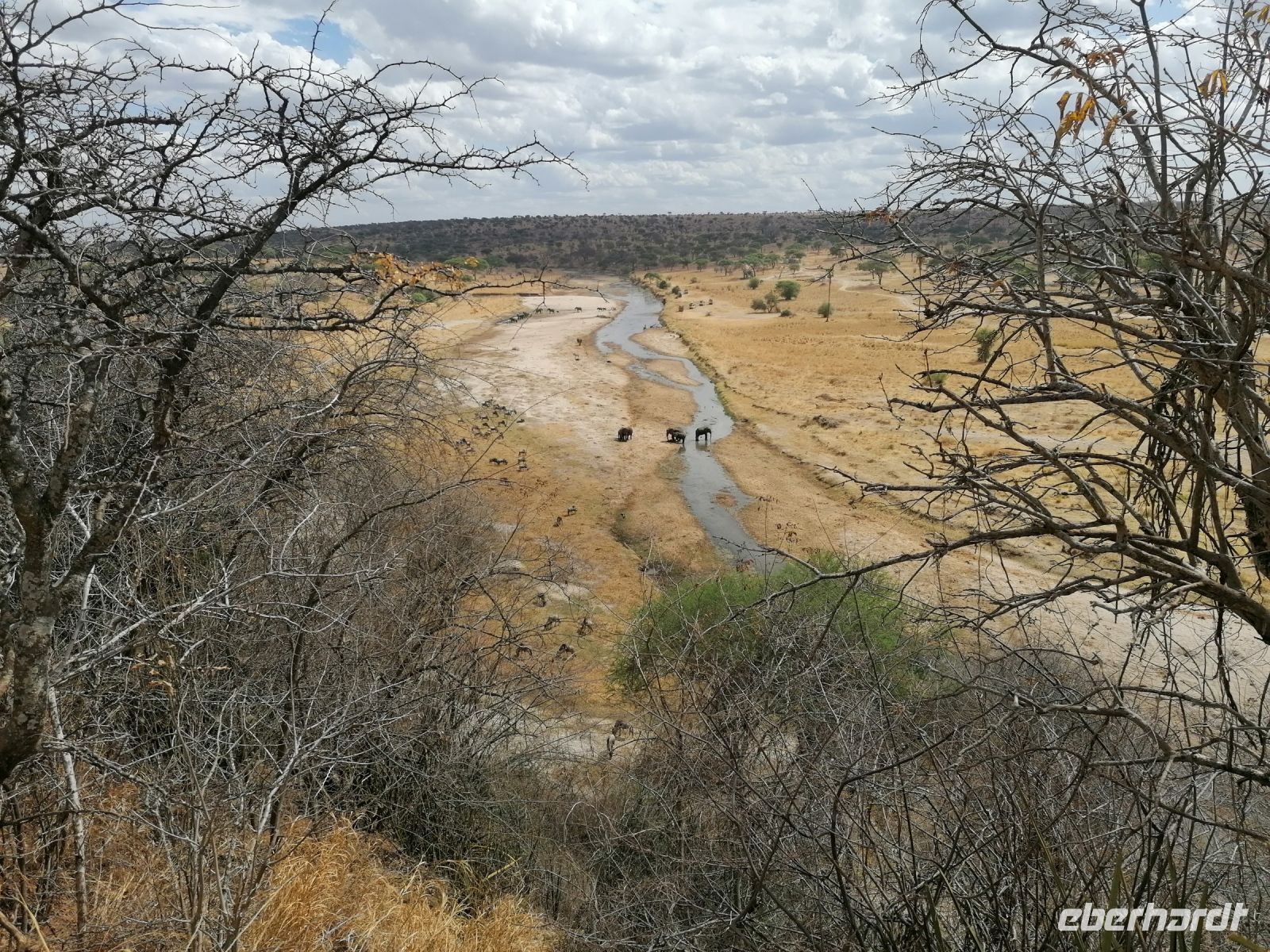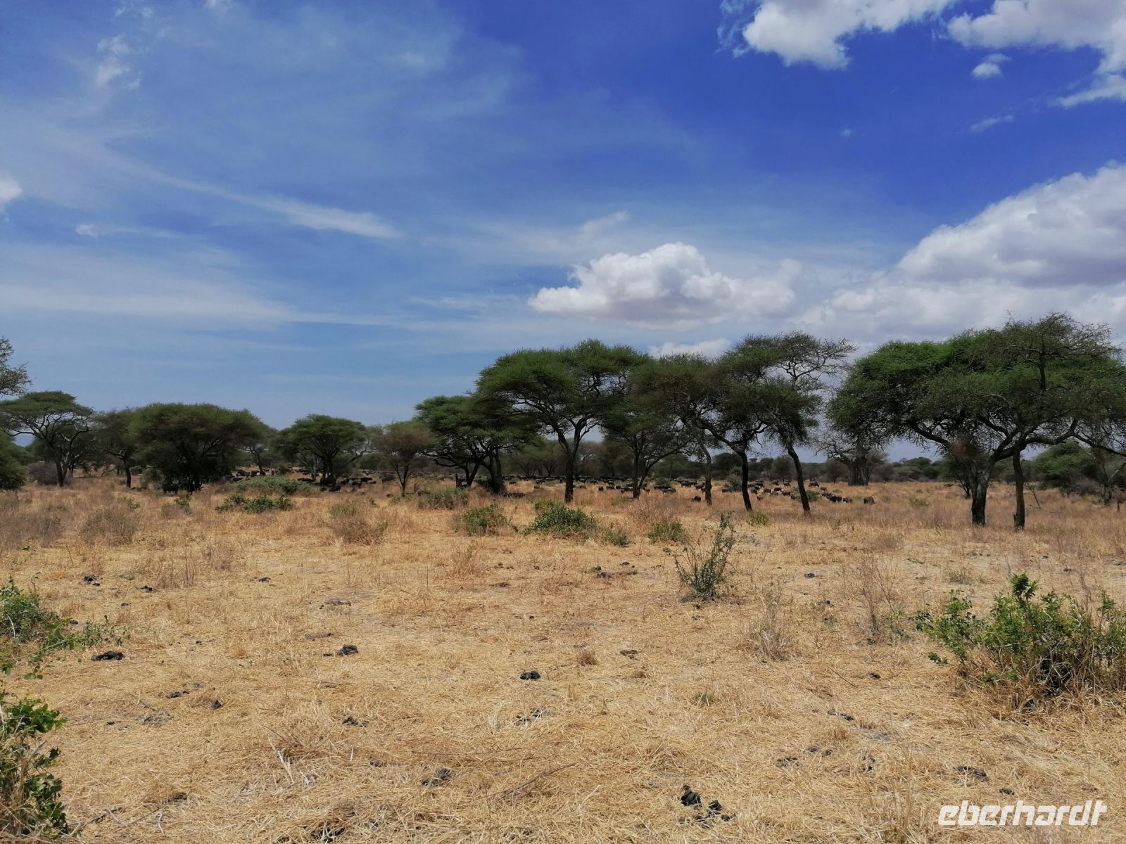 Heute heißt es leider Abschied von unserer liebgewonnene Rivertrees Lodge nehmen. Gemeinsam mit Karim machten wir uns auf dem Weg in Richtung Tarangire Nationalpark. Unterwegs konnten wir einen letzten Blick auf Mount Meru erhaschen, der sich diesmal fast wolkenfrei zeigte. Im Anschluss fuhren wir durch die Stadt Arusha und konnten einen ersten Eindruck von einer afrikanischen Stadt gewinnen. Nach der Stadt erreichten wir die Savanne. Hier konnten man bereits einige Dörfer der Masai entdecken. Die Kinder der Masai passen gemeinsam mit dem Vater auf das Vieh auf. Die Mütter sind für das Essen, das Wasser und auch für das Feuer in den Hütten zuständig. Zudem konnten wir unterwegs Geier mit einem toten Esel erblicken. Um die Mittagszeit erreichten wir das Eingangsgate zum Tarangire Nationalpark. Nach einer schnellen Anmeldung konnte unsere Pirschfahrt beginnen. Zuerst kreuzten Impalas unseren Weg, wo nur die Männer Hörner besitzen. Kurz darauf empfang uns ein Affenblütenbaum, der eigentlich nur nachts blüht, für uns eine Ausnahme machte. Nach kurzer Zeit erreichen wir das Wasserloch, wo sich Zebras, Gnus, Impalas und Warzenschweine begnügten. In kurzer Zeit konnten wir Elanantilopen, Gnus, ein schwarzer Hornrabe und riesige Büffelherde entdecken. Wir waren bereits hin und weg, als wir die Nachricht über einen Leoparden im Baum erhielten. Zum Glück waren wir in der Nähe und konnten uns einen Einblick machen. Leider versteckte sich der Leopard geschickt vor uns, sodass wir nur die Umrisse erahnen konnten. Trotzdem fuhren wir glücklich in Richtung Aussichtspunkt, wo wir eine große Elefantenherde mit Kindern erhaschen konnten. Unsere Mittagspause absolvierten an einen schönen Aussichtspunkt. Gemeinsam mit ein paar Pavianen teilten wir unser Essen und genossen den wunderbaren Ausblick. Nach unserer Mittagspause führten wir unsere Pirsch fort. Im Anschluss konnten wir unzählige Elefanten und Zebras erblicken. Am Fluss konnten wir Geiern bei ihrer Mittagspause zugucken, wo sie eine Giraffe als Mahlzeit verputzten. Des Weiteren erspähten wir Papageien, einen Rotschnabel und Erdmännchen. Ein weiteres Highlight waren drei weibliche Strauße, die mit ihren 22 Babys spazieren gingen. Auf dem Weg zur Lodge liefen uns noch blaue Gabelröcke, Elefant, Dikdik und Warzenschweine über den Weg. Unser Zeltcamp war schön am Rand des Nationalparks gelegen und wir konnten bei dem schönen Sonnenuntergang vom Restaurant aus genießen.