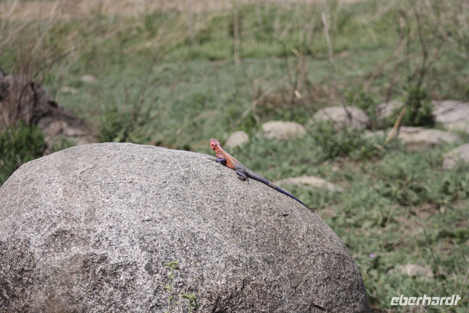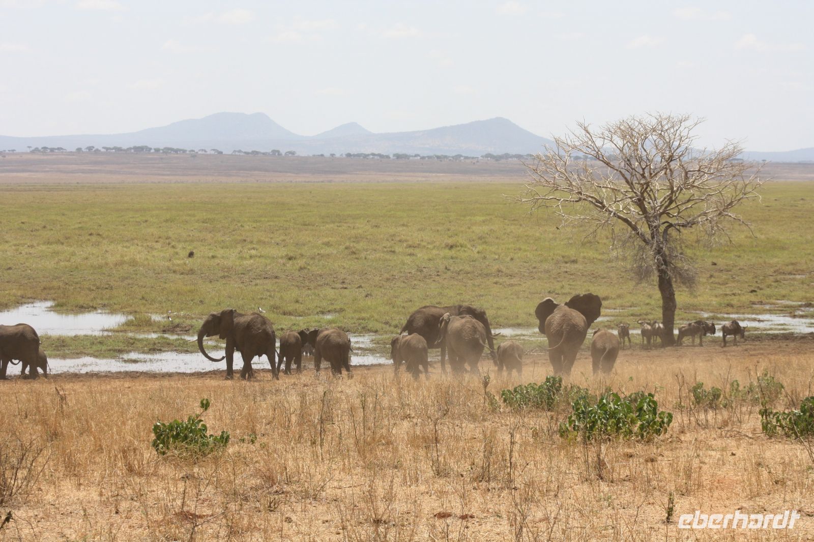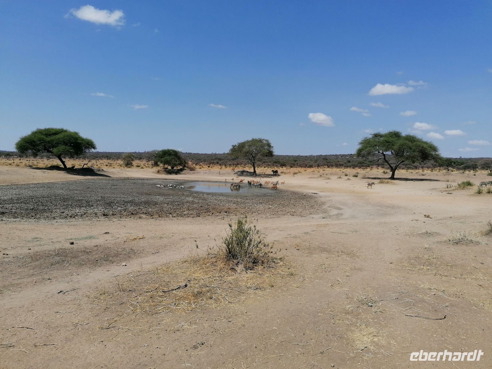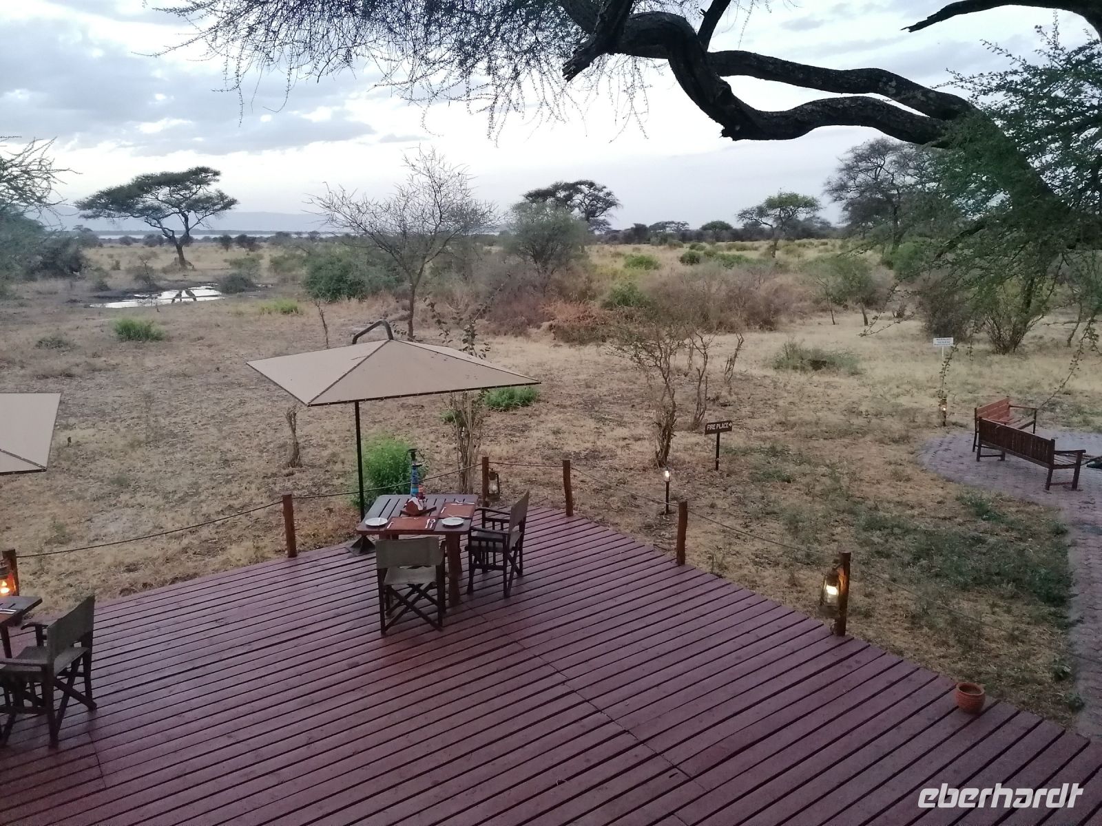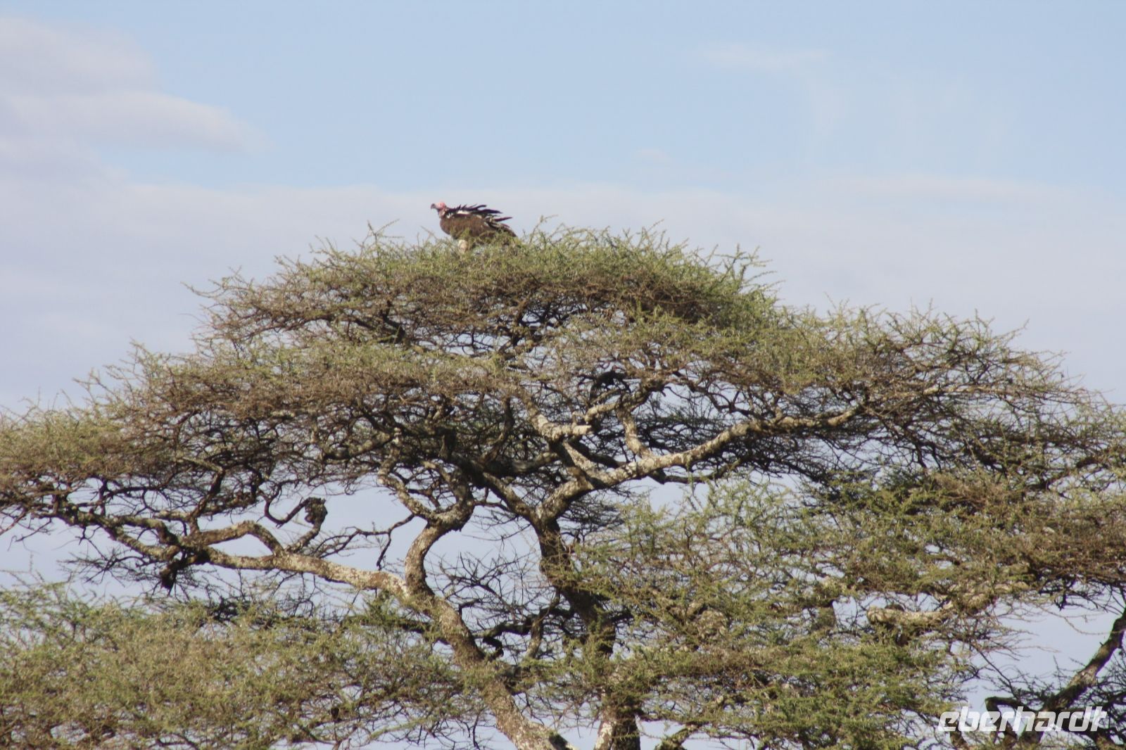 Heute heißt es leider Abschied von unserer liebgewonnene Rivertrees Lodge nehmen. Gemeinsam mit Karim machten wir uns auf dem Weg in Richtung Tarangire Nationalpark. Unterwegs konnten wir einen letzten Blick auf Mount Meru erhaschen, der sich diesmal fast wolkenfrei zeigte. Im Anschluss fuhren wir durch die Stadt Arusha und konnten einen ersten Eindruck von einer afrikanischen Stadt gewinnen. Nach der Stadt erreichten wir die Savanne. Hier konnten man bereits einige Dörfer der Masai entdecken. Die Kinder der Masai passen gemeinsam mit dem Vater auf das Vieh auf. Die Mütter sind für das Essen, das Wasser und auch für das Feuer in den Hütten zuständig. Zudem konnten wir unterwegs Geier mit einem toten Esel erblicken. Um die Mittagszeit erreichten wir das Eingangsgate zum Tarangire Nationalpark. Nach einer schnellen Anmeldung konnte unsere Pirschfahrt beginnen. Zuerst kreuzten Impalas unseren Weg, wo nur die Männer Hörner besitzen. Kurz darauf empfang uns ein Affenblütenbaum, der eigentlich nur nachts blüht, für uns eine Ausnahme machte. Nach kurzer Zeit erreichen wir das Wasserloch, wo sich Zebras, Gnus, Impalas und Warzenschweine begnügten. In kurzer Zeit konnten wir Elanantilopen, Gnus, ein schwarzer Hornrabe und riesige Büffelherde entdecken. Wir waren bereits hin und weg, als wir die Nachricht über einen Leoparden im Baum erhielten. Zum Glück waren wir in der Nähe und konnten uns einen Einblick machen. Leider versteckte sich der Leopard geschickt vor uns, sodass wir nur die Umrisse erahnen konnten. Trotzdem fuhren wir glücklich in Richtung Aussichtspunkt, wo wir eine große Elefantenherde mit Kindern erhaschen konnten. Unsere Mittagspause absolvierten an einen schönen Aussichtspunkt. Gemeinsam mit ein paar Pavianen teilten wir unser Essen und genossen den wunderbaren Ausblick. Nach unserer Mittagspause führten wir unsere Pirsch fort. Im Anschluss konnten wir unzählige Elefanten und Zebras erblicken. Am Fluss konnten wir Geiern bei ihrer Mittagspause zugucken, wo sie eine Giraffe als Mahlzeit verputzten. Des Weiteren erspähten wir Papageien, einen Rotschnabel und Erdmännchen. Ein weiteres Highlight waren drei weibliche Strauße, die mit ihren 22 Babys spazieren gingen. Auf dem Weg zur Lodge liefen uns noch blaue Gabelröcke, Elefant, Dikdik und Warzenschweine über den Weg. Unser Zeltcamp war schön am Rand des Nationalparks gelegen und wir konnten bei dem schönen Sonnenuntergang vom Restaurant aus genießen.