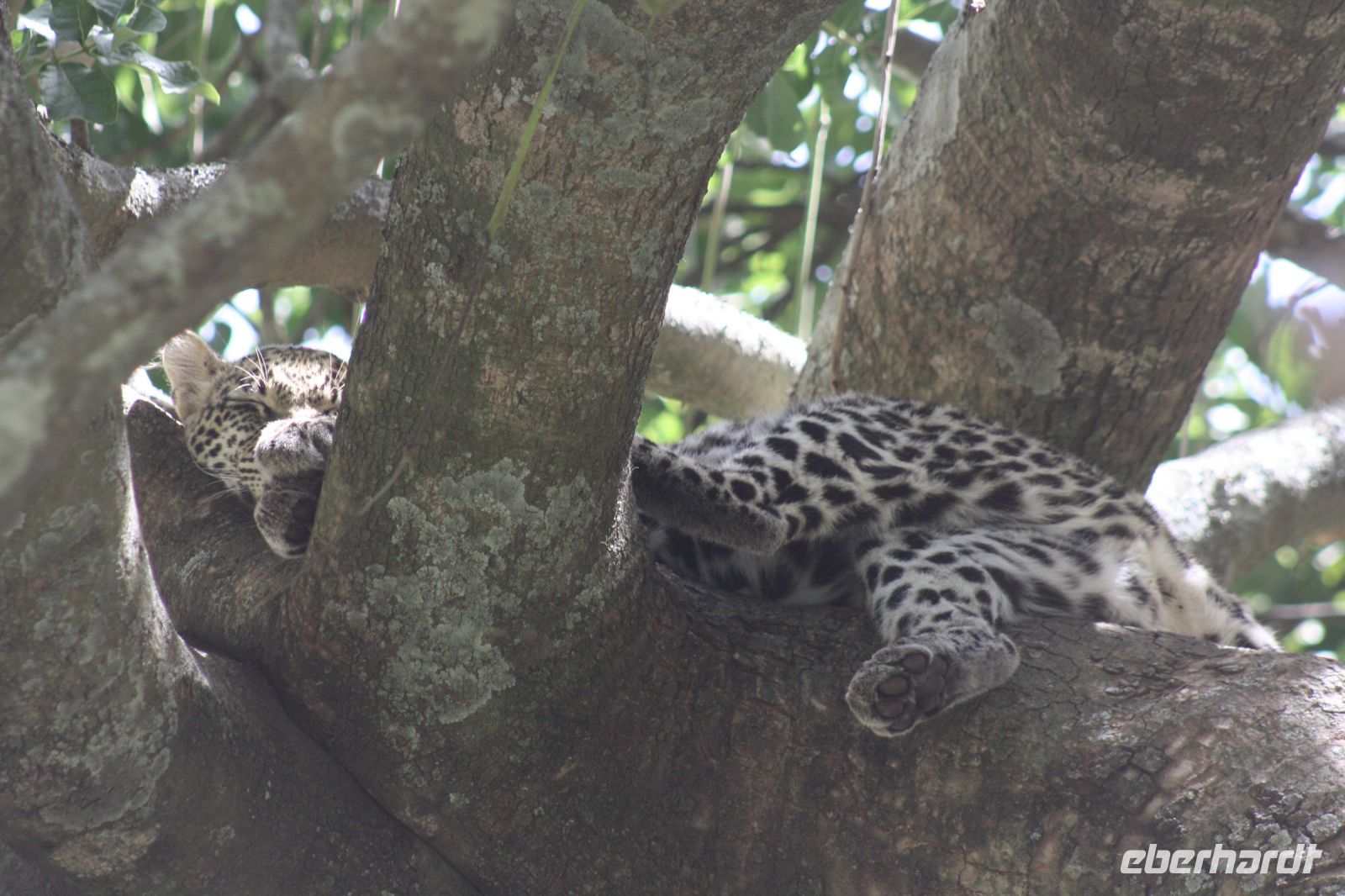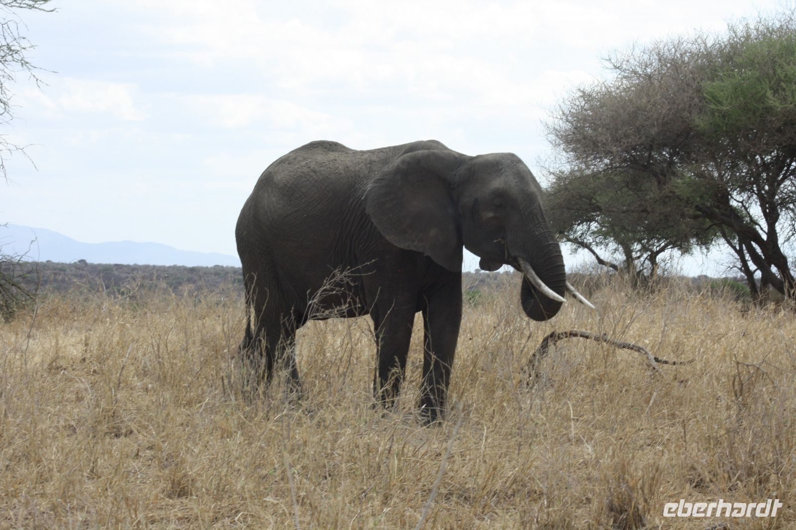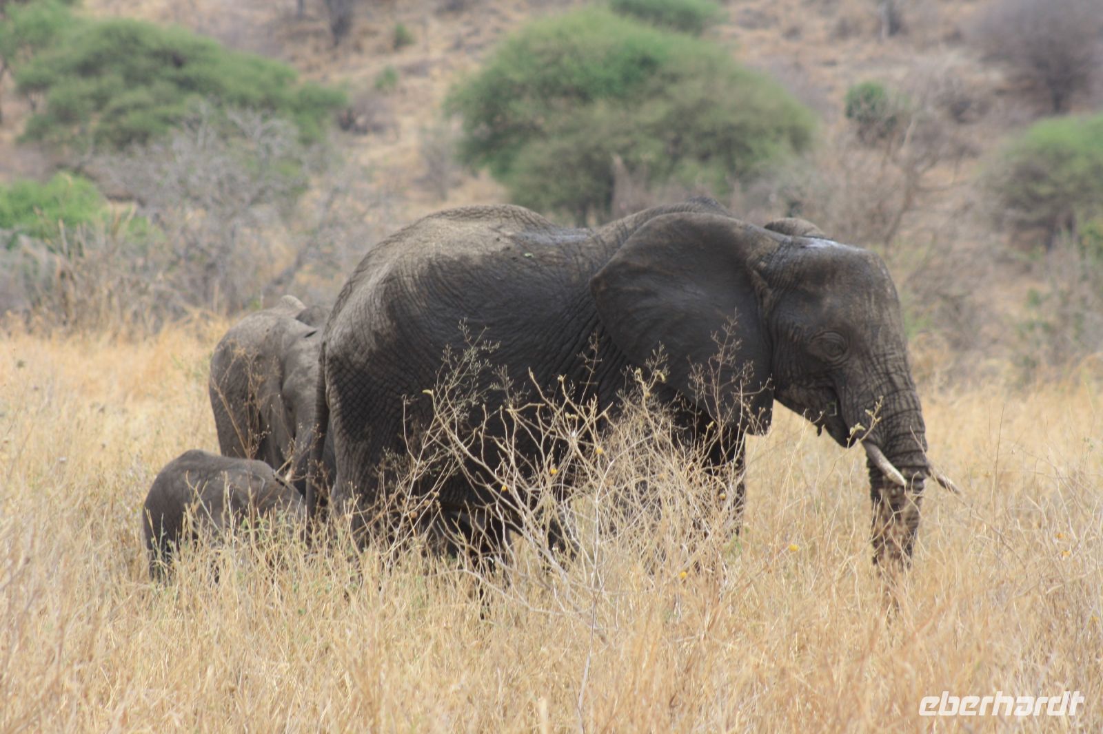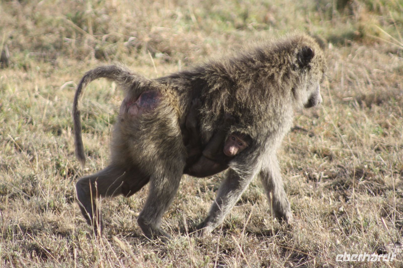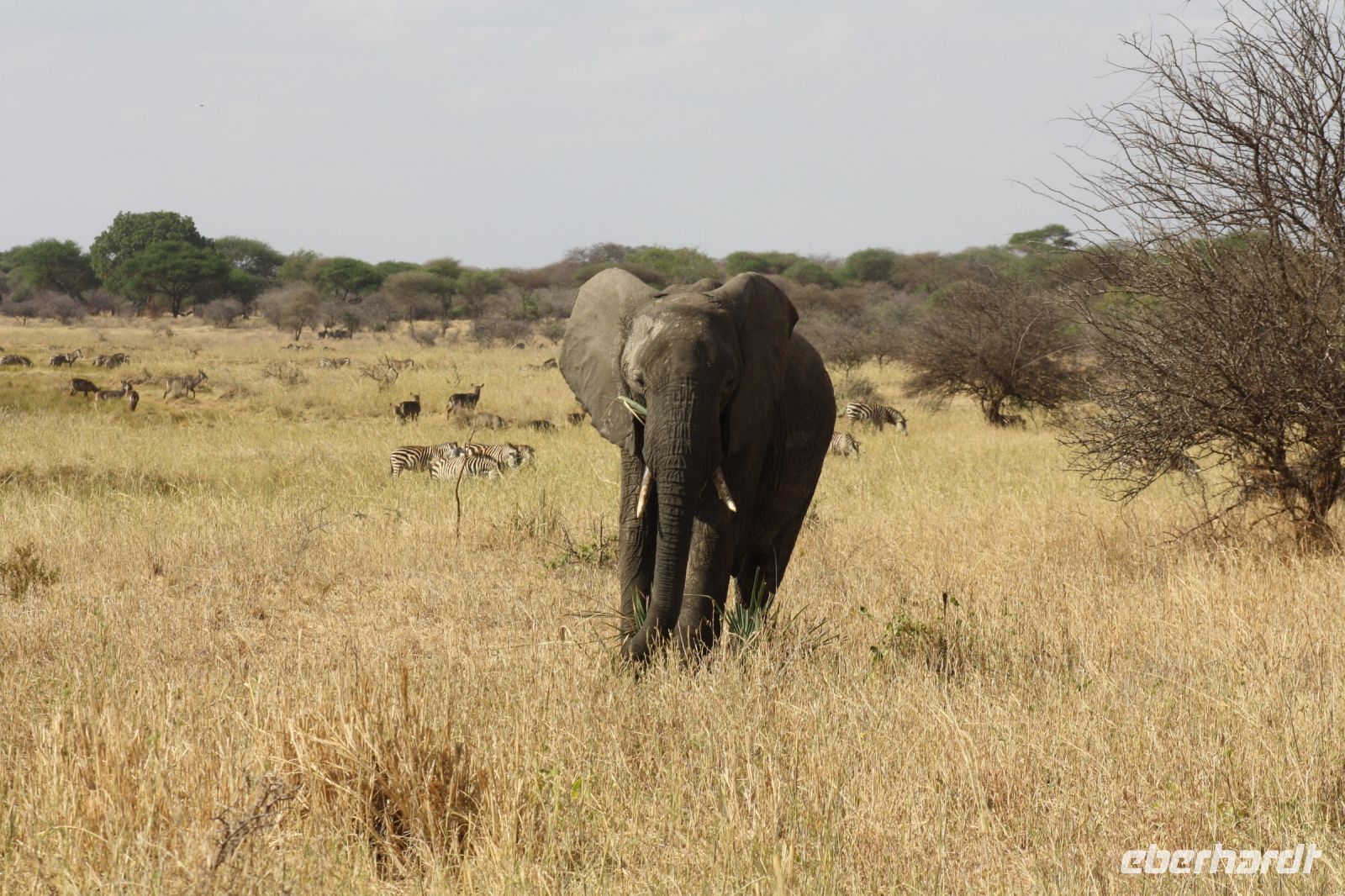 Heute heißt es leider Abschied von unserer liebgewonnene Rivertrees Lodge nehmen. Gemeinsam mit Karim machten wir uns auf dem Weg in Richtung Tarangire Nationalpark. Unterwegs konnten wir einen letzten Blick auf Mount Meru erhaschen, der sich diesmal fast wolkenfrei zeigte. Im Anschluss fuhren wir durch die Stadt Arusha und konnten einen ersten Eindruck von einer afrikanischen Stadt gewinnen. Nach der Stadt erreichten wir die Savanne. Hier konnten man bereits einige Dörfer der Masai entdecken. Die Kinder der Masai passen gemeinsam mit dem Vater auf das Vieh auf. Die Mütter sind für das Essen, das Wasser und auch für das Feuer in den Hütten zuständig. Zudem konnten wir unterwegs Geier mit einem toten Esel erblicken. Um die Mittagszeit erreichten wir das Eingangsgate zum Tarangire Nationalpark. Nach einer schnellen Anmeldung konnte unsere Pirschfahrt beginnen. Zuerst kreuzten Impalas unseren Weg, wo nur die Männer Hörner besitzen. Kurz darauf empfang uns ein Affenblütenbaum, der eigentlich nur nachts blüht, für uns eine Ausnahme machte. Nach kurzer Zeit erreichen wir das Wasserloch, wo sich Zebras, Gnus, Impalas und Warzenschweine begnügten. In kurzer Zeit konnten wir Elanantilopen, Gnus, ein schwarzer Hornrabe und riesige Büffelherde entdecken. Wir waren bereits hin und weg, als wir die Nachricht über einen Leoparden im Baum erhielten. Zum Glück waren wir in der Nähe und konnten uns einen Einblick machen. Leider versteckte sich der Leopard geschickt vor uns, sodass wir nur die Umrisse erahnen konnten. Trotzdem fuhren wir glücklich in Richtung Aussichtspunkt, wo wir eine große Elefantenherde mit Kindern erhaschen konnten. Unsere Mittagspause absolvierten an einen schönen Aussichtspunkt. Gemeinsam mit ein paar Pavianen teilten wir unser Essen und genossen den wunderbaren Ausblick. Nach unserer Mittagspause führten wir unsere Pirsch fort. Im Anschluss konnten wir unzählige Elefanten und Zebras erblicken. Am Fluss konnten wir Geiern bei ihrer Mittagspause zugucken, wo sie eine Giraffe als Mahlzeit verputzten. Des Weiteren erspähten wir Papageien, einen Rotschnabel und Erdmännchen. Ein weiteres Highlight waren drei weibliche Strauße, die mit ihren 22 Babys spazieren gingen. Auf dem Weg zur Lodge liefen uns noch blaue Gabelröcke, Elefant, Dikdik und Warzenschweine über den Weg. Unser Zeltcamp war schön am Rand des Nationalparks gelegen und wir konnten bei dem schönen Sonnenuntergang vom Restaurant aus genießen.