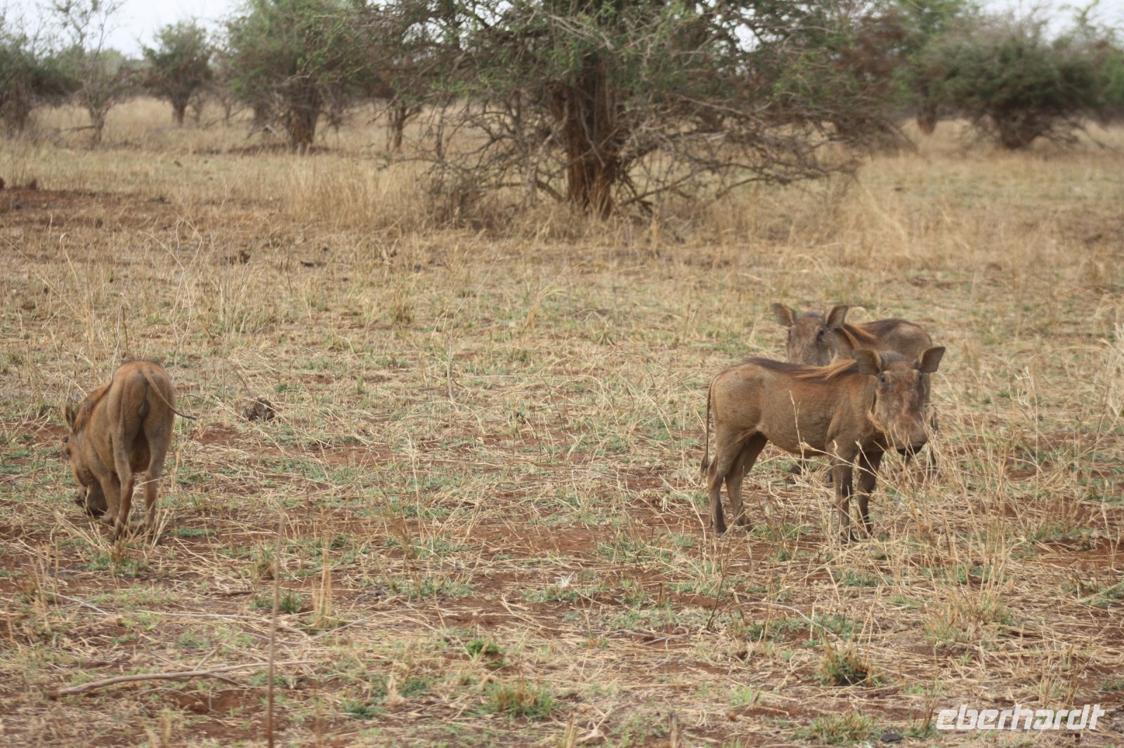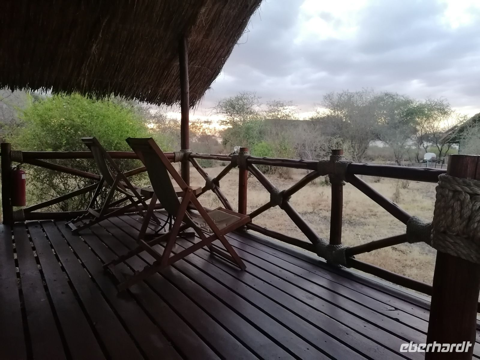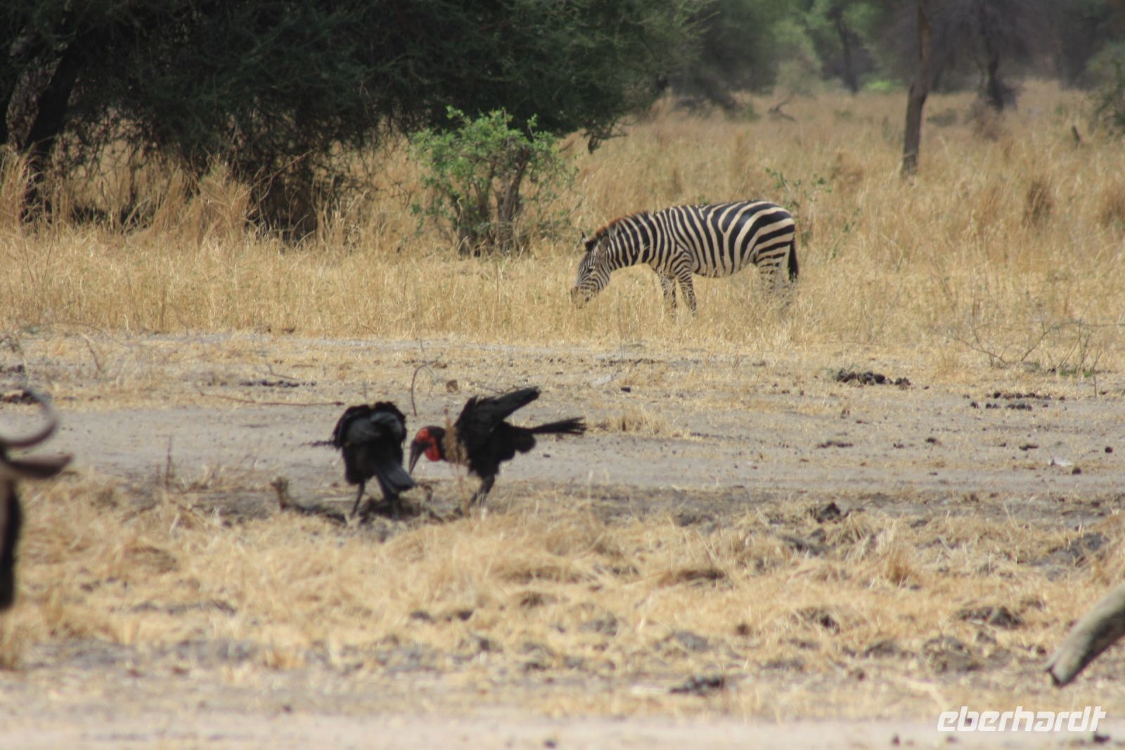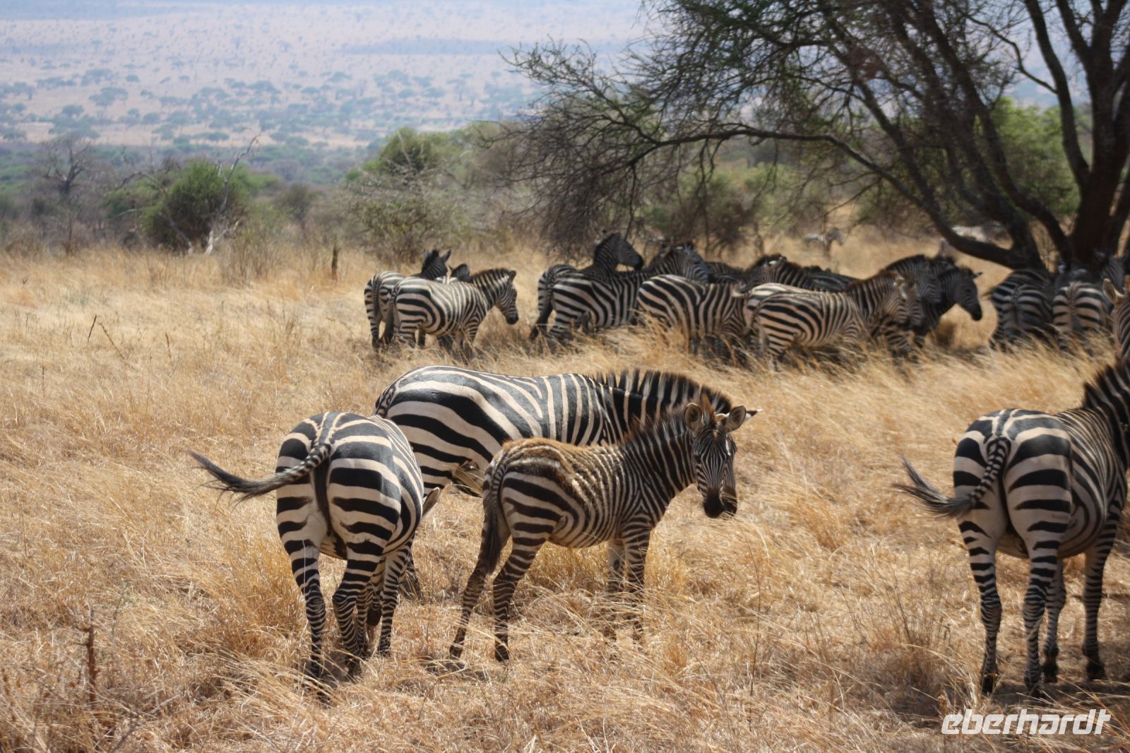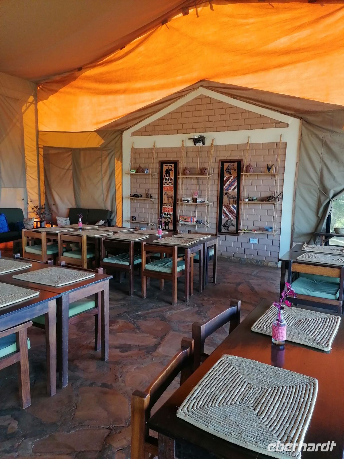 Heute heißt es leider Abschied von unserer liebgewonnene Rivertrees Lodge nehmen. Gemeinsam mit Karim machten wir uns auf dem Weg in Richtung Tarangire Nationalpark. Unterwegs konnten wir einen letzten Blick auf Mount Meru erhaschen, der sich diesmal fast wolkenfrei zeigte. Im Anschluss fuhren wir durch die Stadt Arusha und konnten einen ersten Eindruck von einer afrikanischen Stadt gewinnen. Nach der Stadt erreichten wir die Savanne. Hier konnten man bereits einige Dörfer der Masai entdecken. Die Kinder der Masai passen gemeinsam mit dem Vater auf das Vieh auf. Die Mütter sind für das Essen, das Wasser und auch für das Feuer in den Hütten zuständig. Zudem konnten wir unterwegs Geier mit einem toten Esel erblicken. Um die Mittagszeit erreichten wir das Eingangsgate zum Tarangire Nationalpark. Nach einer schnellen Anmeldung konnte unsere Pirschfahrt beginnen. Zuerst kreuzten Impalas unseren Weg, wo nur die Männer Hörner besitzen. Kurz darauf empfang uns ein Affenblütenbaum, der eigentlich nur nachts blüht, für uns eine Ausnahme machte. Nach kurzer Zeit erreichen wir das Wasserloch, wo sich Zebras, Gnus, Impalas und Warzenschweine begnügten. In kurzer Zeit konnten wir Elanantilopen, Gnus, ein schwarzer Hornrabe und riesige Büffelherde entdecken. Wir waren bereits hin und weg, als wir die Nachricht über einen Leoparden im Baum erhielten. Zum Glück waren wir in der Nähe und konnten uns einen Einblick machen. Leider versteckte sich der Leopard geschickt vor uns, sodass wir nur die Umrisse erahnen konnten. Trotzdem fuhren wir glücklich in Richtung Aussichtspunkt, wo wir eine große Elefantenherde mit Kindern erhaschen konnten. Unsere Mittagspause absolvierten an einen schönen Aussichtspunkt. Gemeinsam mit ein paar Pavianen teilten wir unser Essen und genossen den wunderbaren Ausblick. Nach unserer Mittagspause führten wir unsere Pirsch fort. Im Anschluss konnten wir unzählige Elefanten und Zebras erblicken. Am Fluss konnten wir Geiern bei ihrer Mittagspause zugucken, wo sie eine Giraffe als Mahlzeit verputzten. Des Weiteren erspähten wir Papageien, einen Rotschnabel und Erdmännchen. Ein weiteres Highlight waren drei weibliche Strauße, die mit ihren 22 Babys spazieren gingen. Auf dem Weg zur Lodge liefen uns noch blaue Gabelröcke, Elefant, Dikdik und Warzenschweine über den Weg. Unser Zeltcamp war schön am Rand des Nationalparks gelegen und wir konnten bei dem schönen Sonnenuntergang vom Restaurant aus genießen.