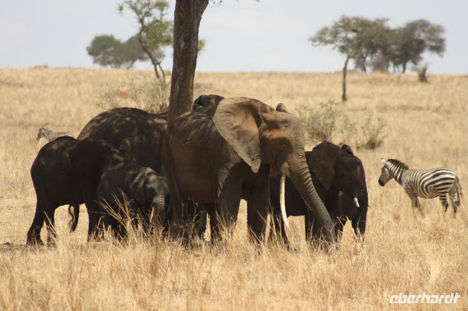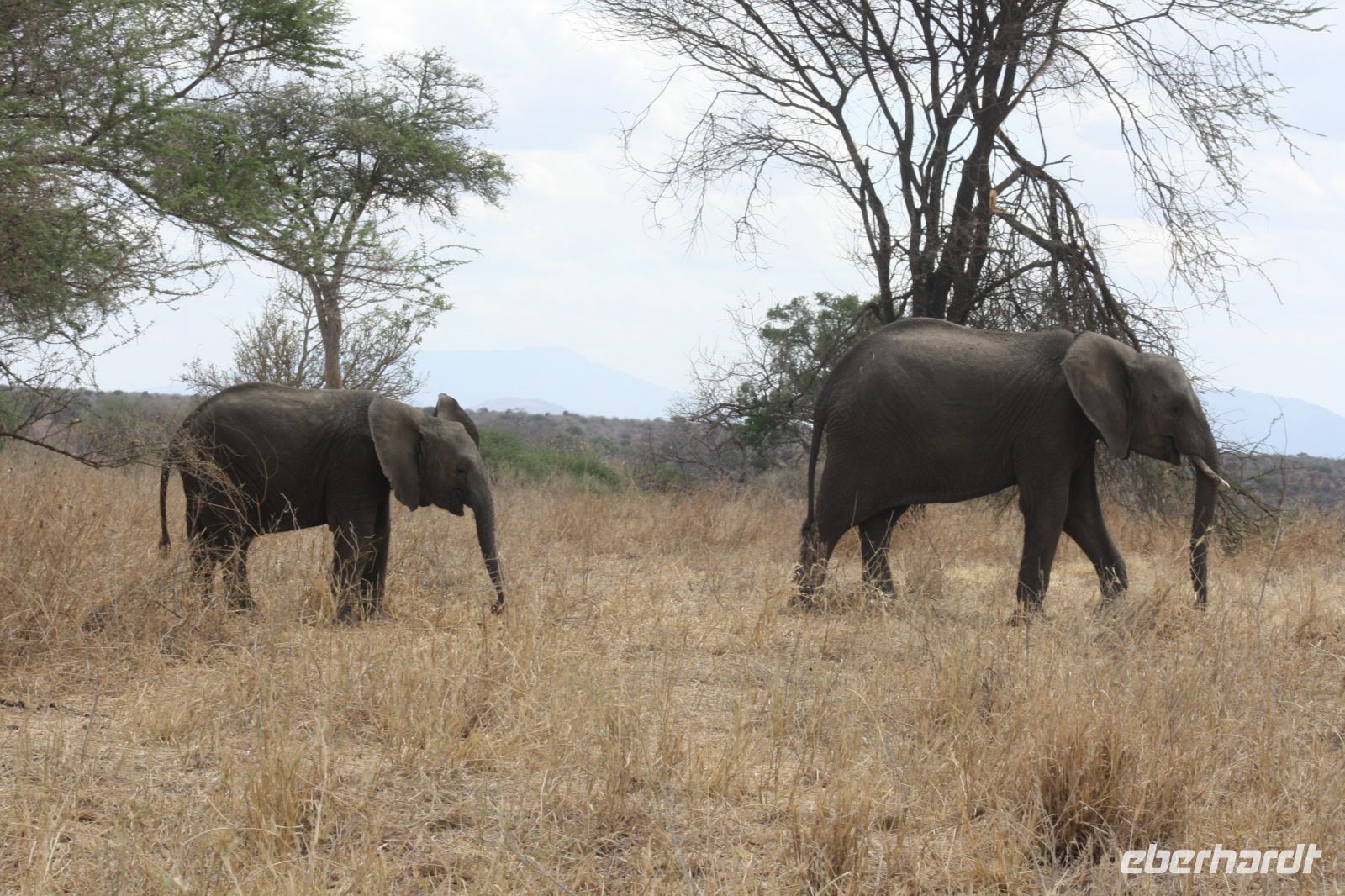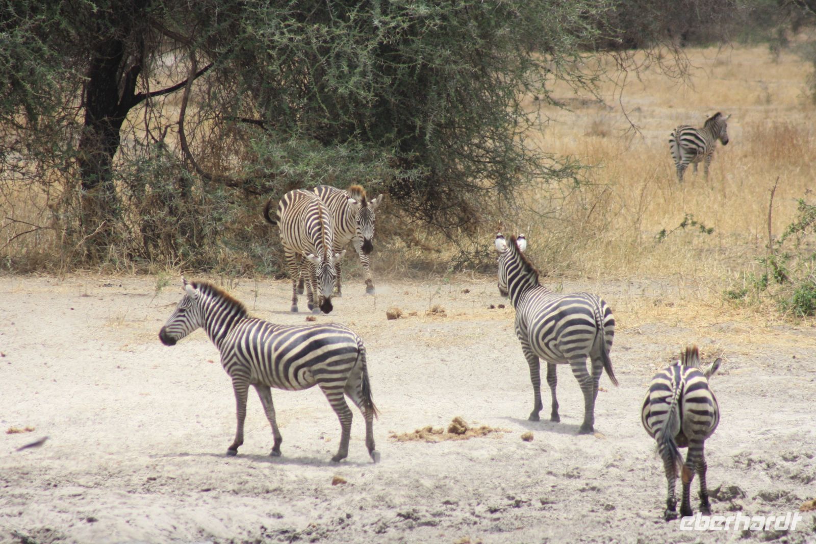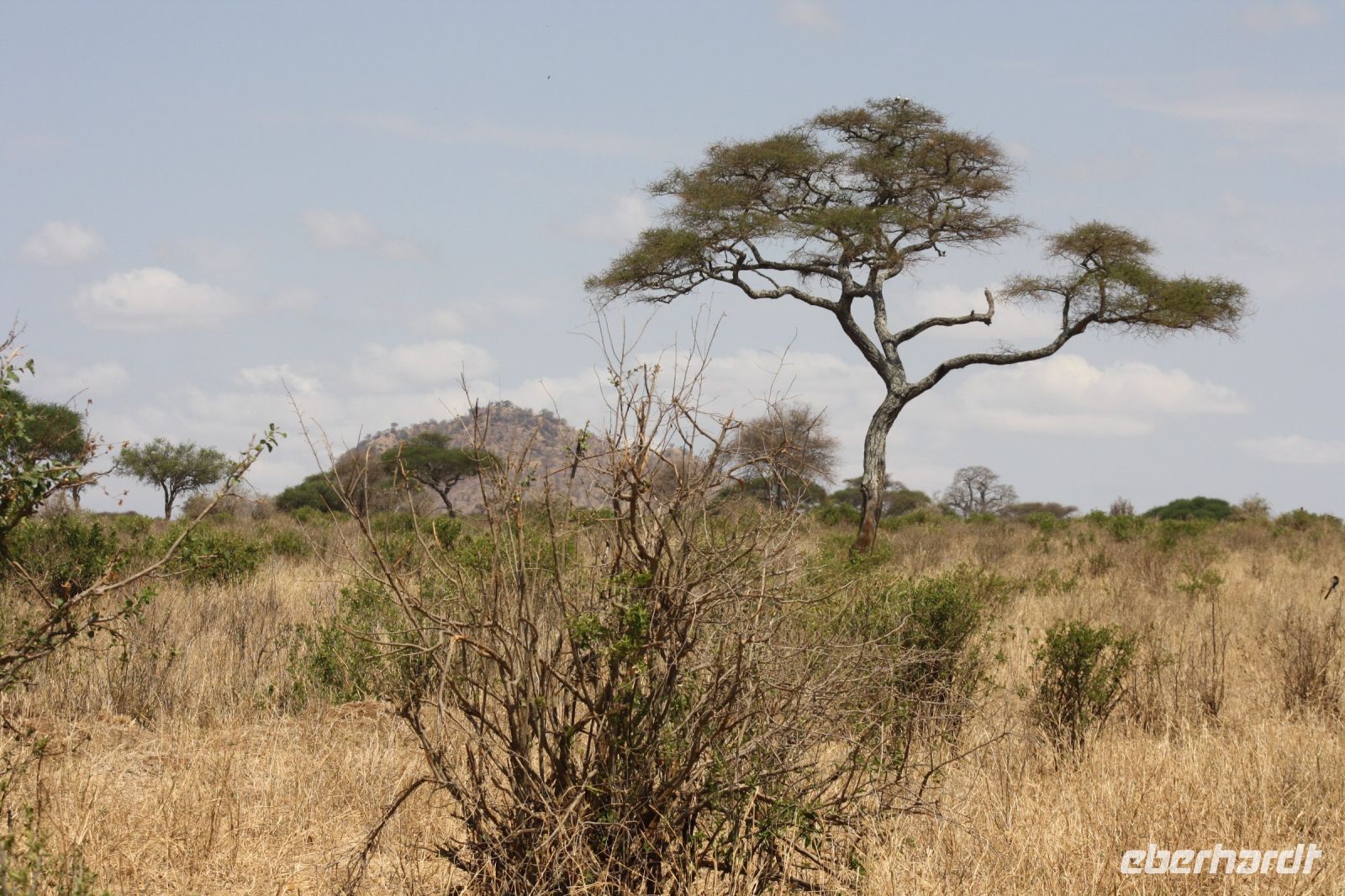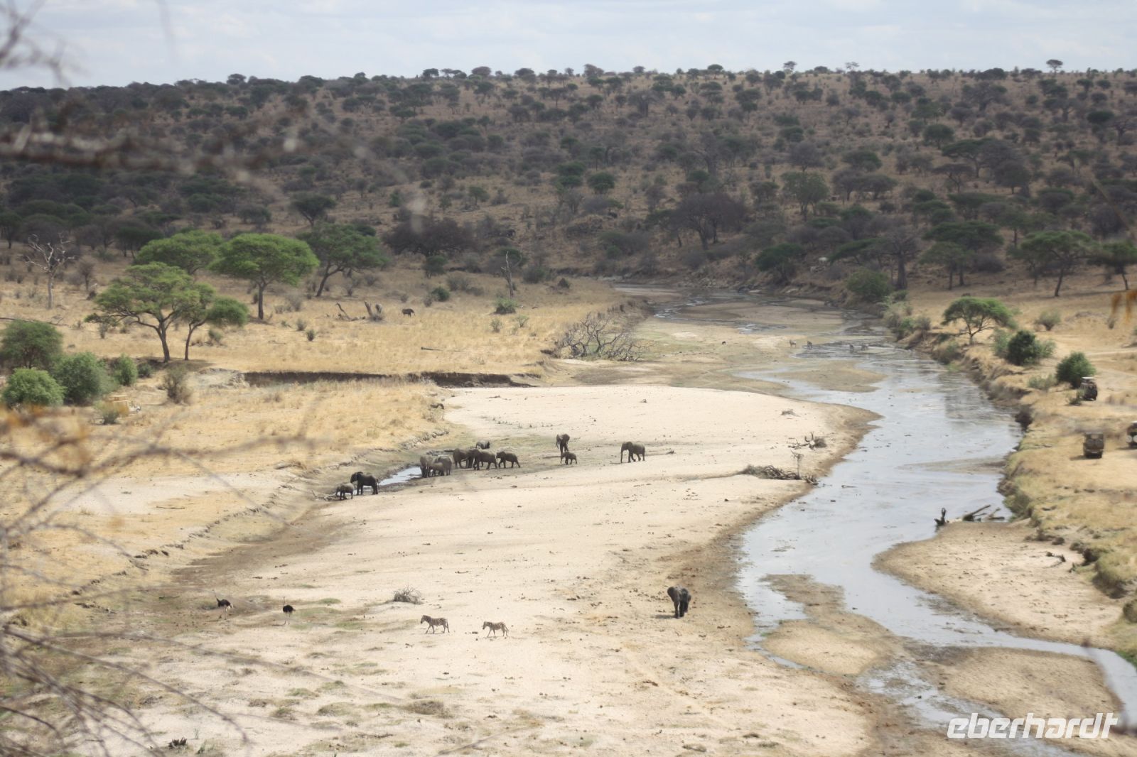 Heute heißt es leider Abschied von unserer liebgewonnene Rivertrees Lodge nehmen. Gemeinsam mit Karim machten wir uns auf dem Weg in Richtung Tarangire Nationalpark. Unterwegs konnten wir einen letzten Blick auf Mount Meru erhaschen, der sich diesmal fast wolkenfrei zeigte. Im Anschluss fuhren wir durch die Stadt Arusha und konnten einen ersten Eindruck von einer afrikanischen Stadt gewinnen. Nach der Stadt erreichten wir die Savanne. Hier konnten man bereits einige Dörfer der Masai entdecken. Die Kinder der Masai passen gemeinsam mit dem Vater auf das Vieh auf. Die Mütter sind für das Essen, das Wasser und auch für das Feuer in den Hütten zuständig. Zudem konnten wir unterwegs Geier mit einem toten Esel erblicken. Um die Mittagszeit erreichten wir das Eingangsgate zum Tarangire Nationalpark. Nach einer schnellen Anmeldung konnte unsere Pirschfahrt beginnen. Zuerst kreuzten Impalas unseren Weg, wo nur die Männer Hörner besitzen. Kurz darauf empfang uns ein Affenblütenbaum, der eigentlich nur nachts blüht, für uns eine Ausnahme machte. Nach kurzer Zeit erreichen wir das Wasserloch, wo sich Zebras, Gnus, Impalas und Warzenschweine begnügten. In kurzer Zeit konnten wir Elanantilopen, Gnus, ein schwarzer Hornrabe und riesige Büffelherde entdecken. Wir waren bereits hin und weg, als wir die Nachricht über einen Leoparden im Baum erhielten. Zum Glück waren wir in der Nähe und konnten uns einen Einblick machen. Leider versteckte sich der Leopard geschickt vor uns, sodass wir nur die Umrisse erahnen konnten. Trotzdem fuhren wir glücklich in Richtung Aussichtspunkt, wo wir eine große Elefantenherde mit Kindern erhaschen konnten. Unsere Mittagspause absolvierten an einen schönen Aussichtspunkt. Gemeinsam mit ein paar Pavianen teilten wir unser Essen und genossen den wunderbaren Ausblick. Nach unserer Mittagspause führten wir unsere Pirsch fort. Im Anschluss konnten wir unzählige Elefanten und Zebras erblicken. Am Fluss konnten wir Geiern bei ihrer Mittagspause zugucken, wo sie eine Giraffe als Mahlzeit verputzten. Des Weiteren erspähten wir Papageien, einen Rotschnabel und Erdmännchen. Ein weiteres Highlight waren drei weibliche Strauße, die mit ihren 22 Babys spazieren gingen. Auf dem Weg zur Lodge liefen uns noch blaue Gabelröcke, Elefant, Dikdik und Warzenschweine über den Weg. Unser Zeltcamp war schön am Rand des Nationalparks gelegen und wir konnten bei dem schönen Sonnenuntergang vom Restaurant aus genießen.
