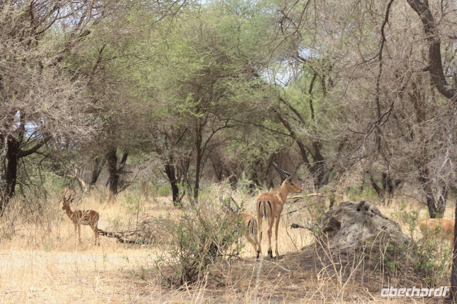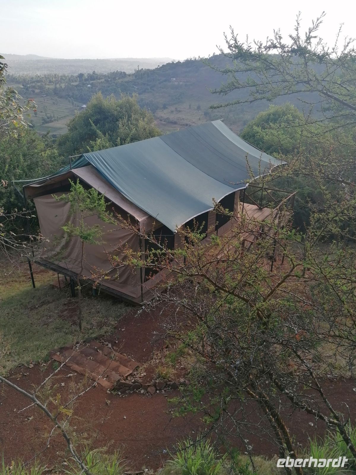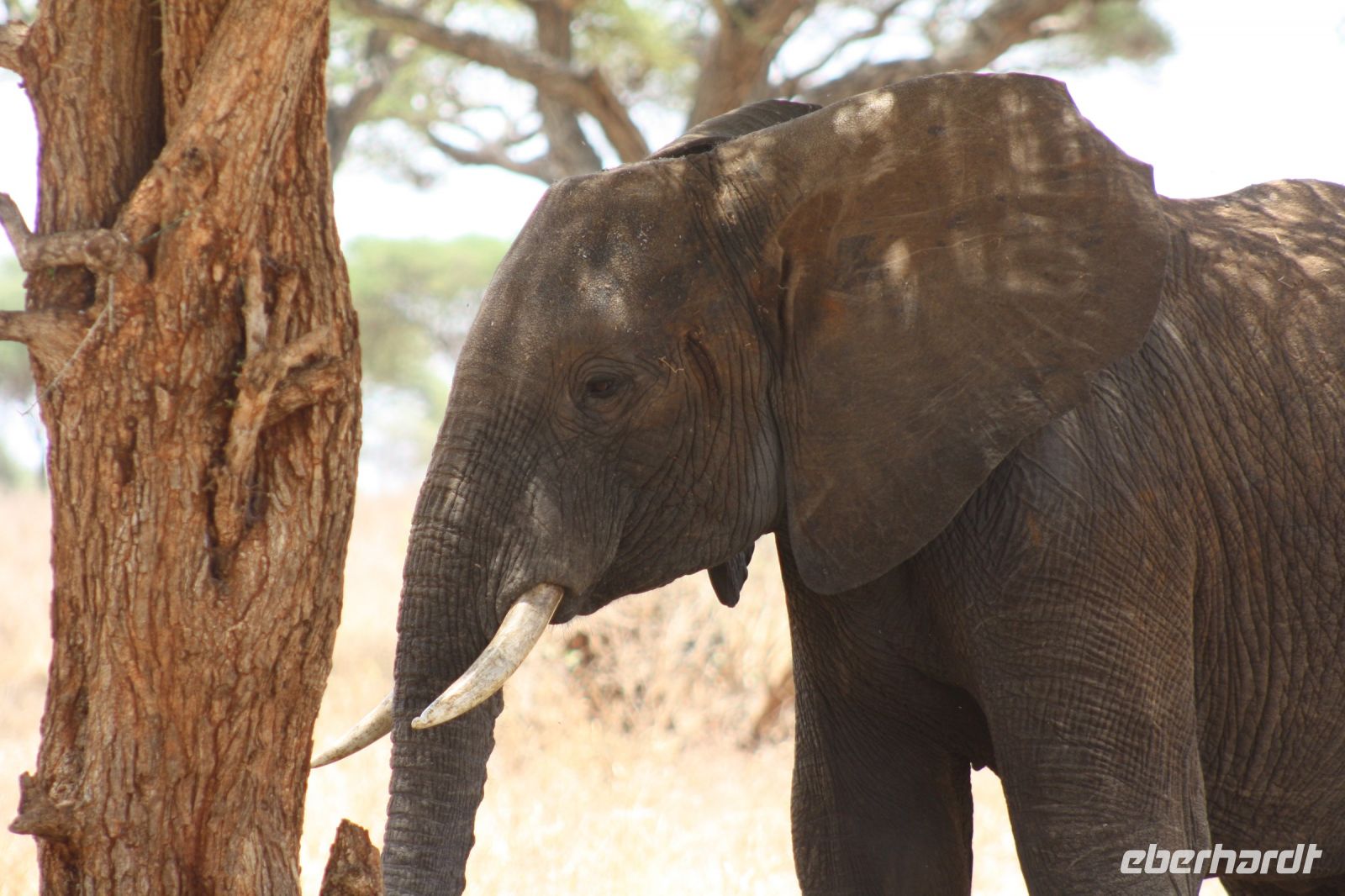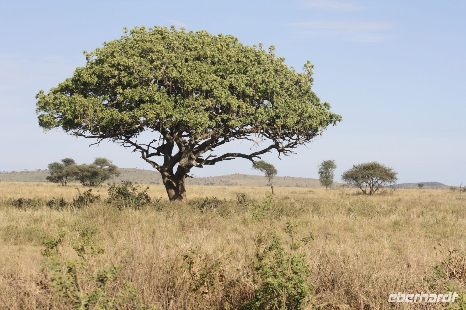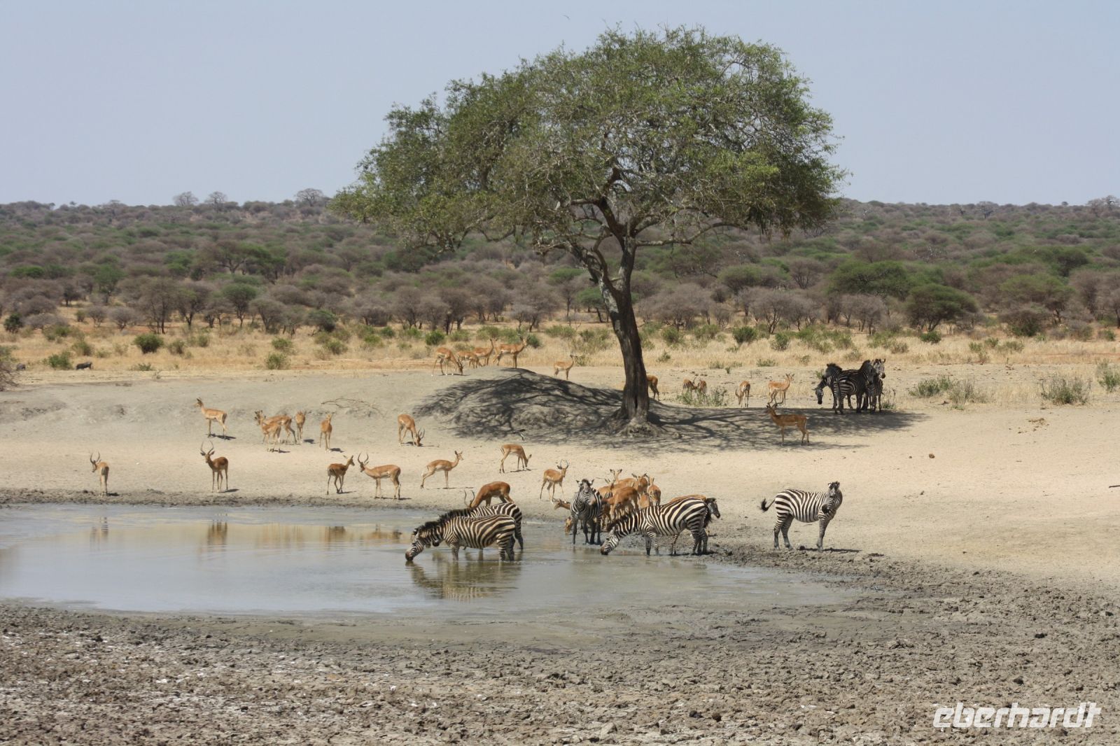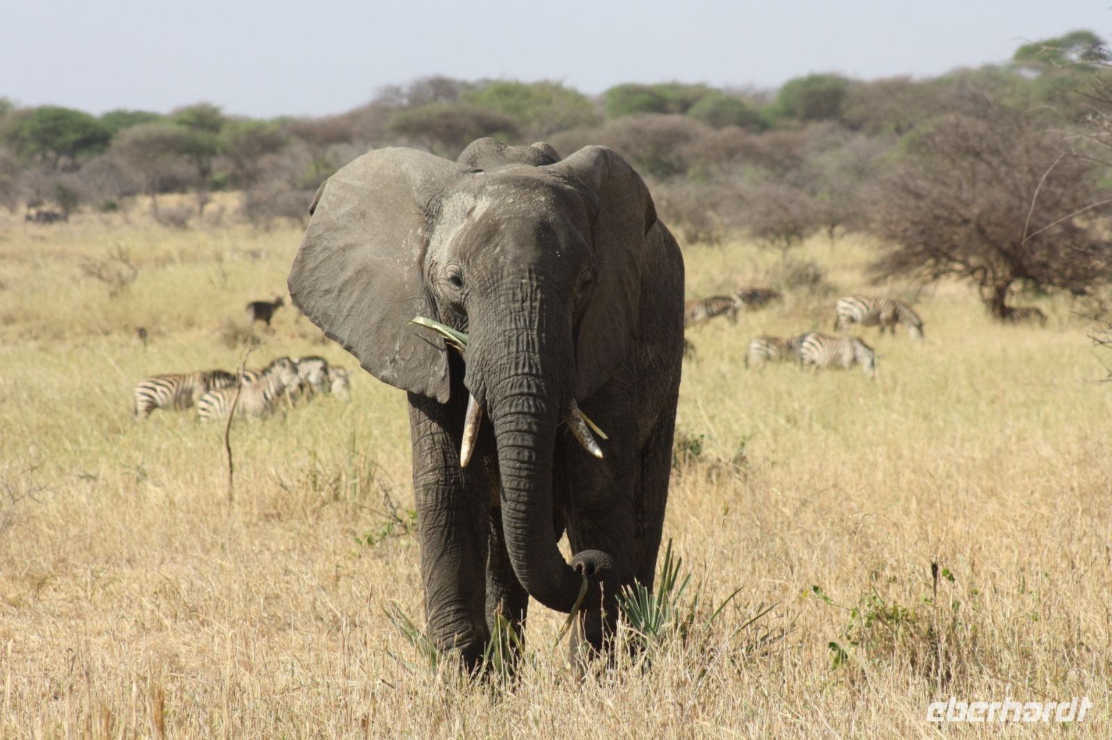 Heute heißt es leider Abschied von unserer liebgewonnene Rivertrees Lodge nehmen. Gemeinsam mit Karim machten wir uns auf dem Weg in Richtung Tarangire Nationalpark. Unterwegs konnten wir einen letzten Blick auf Mount Meru erhaschen, der sich diesmal fast wolkenfrei zeigte. Im Anschluss fuhren wir durch die Stadt Arusha und konnten einen ersten Eindruck von einer afrikanischen Stadt gewinnen. Nach der Stadt erreichten wir die Savanne. Hier konnten man bereits einige Dörfer der Masai entdecken. Die Kinder der Masai passen gemeinsam mit dem Vater auf das Vieh auf. Die Mütter sind für das Essen, das Wasser und auch für das Feuer in den Hütten zuständig. Zudem konnten wir unterwegs Geier mit einem toten Esel erblicken. Um die Mittagszeit erreichten wir das Eingangsgate zum Tarangire Nationalpark. Nach einer schnellen Anmeldung konnte unsere Pirschfahrt beginnen. Zuerst kreuzten Impalas unseren Weg, wo nur die Männer Hörner besitzen. Kurz darauf empfang uns ein Affenblütenbaum, der eigentlich nur nachts blüht, für uns eine Ausnahme machte. Nach kurzer Zeit erreichen wir das Wasserloch, wo sich Zebras, Gnus, Impalas und Warzenschweine begnügten. In kurzer Zeit konnten wir Elanantilopen, Gnus, ein schwarzer Hornrabe und riesige Büffelherde entdecken. Wir waren bereits hin und weg, als wir die Nachricht über einen Leoparden im Baum erhielten. Zum Glück waren wir in der Nähe und konnten uns einen Einblick machen. Leider versteckte sich der Leopard geschickt vor uns, sodass wir nur die Umrisse erahnen konnten. Trotzdem fuhren wir glücklich in Richtung Aussichtspunkt, wo wir eine große Elefantenherde mit Kindern erhaschen konnten. Unsere Mittagspause absolvierten an einen schönen Aussichtspunkt. Gemeinsam mit ein paar Pavianen teilten wir unser Essen und genossen den wunderbaren Ausblick. Nach unserer Mittagspause führten wir unsere Pirsch fort. Im Anschluss konnten wir unzählige Elefanten und Zebras erblicken. Am Fluss konnten wir Geiern bei ihrer Mittagspause zugucken, wo sie eine Giraffe als Mahlzeit verputzten. Des Weiteren erspähten wir Papageien, einen Rotschnabel und Erdmännchen. Ein weiteres Highlight waren drei weibliche Strauße, die mit ihren 22 Babys spazieren gingen. Auf dem Weg zur Lodge liefen uns noch blaue Gabelröcke, Elefant, Dikdik und Warzenschweine über den Weg. Unser Zeltcamp war schön am Rand des Nationalparks gelegen und wir konnten bei dem schönen Sonnenuntergang vom Restaurant aus genießen.
