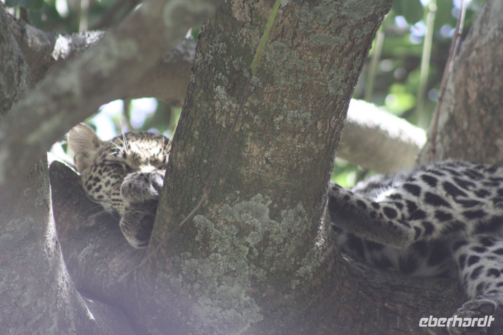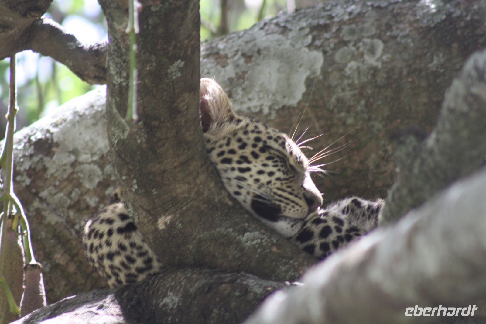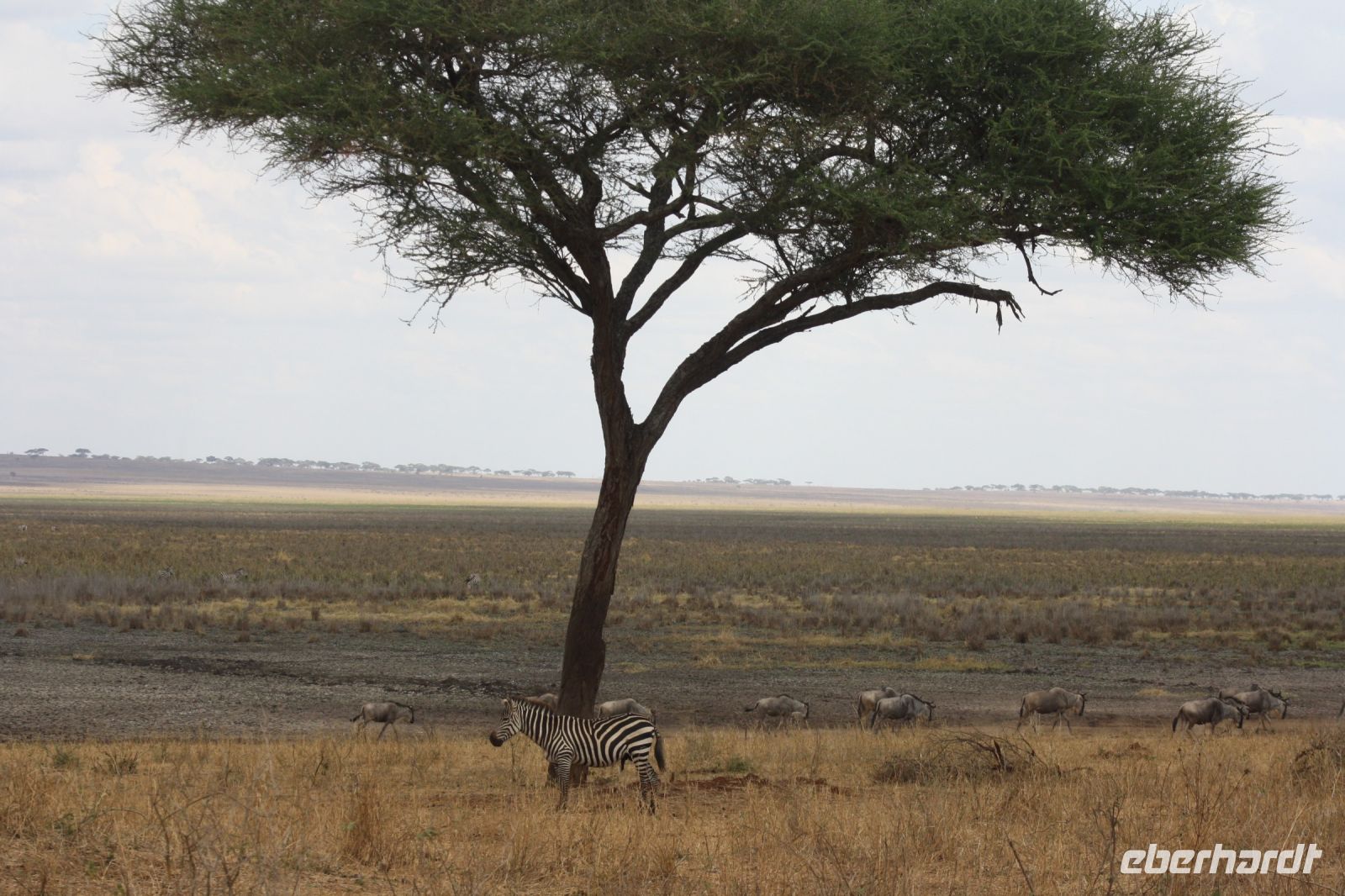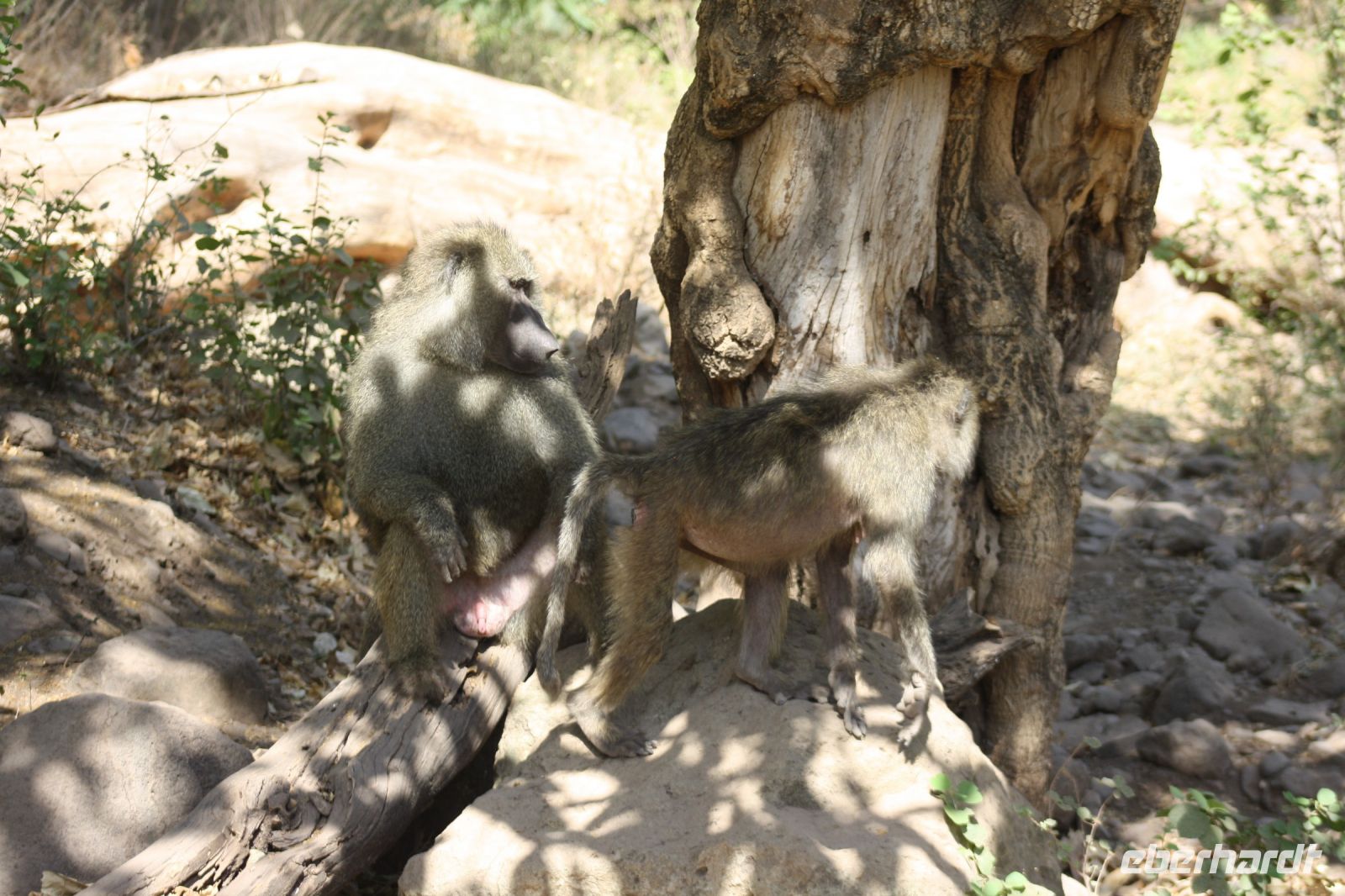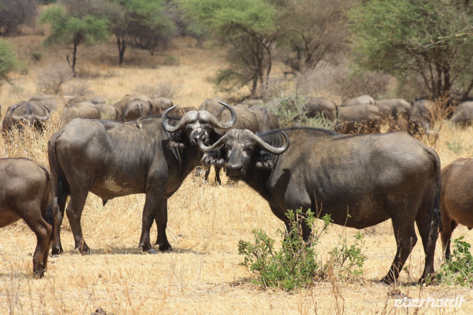 Heute heißt es leider Abschied von unserer liebgewonnene Rivertrees Lodge nehmen. Gemeinsam mit Karim machten wir uns auf dem Weg in Richtung Tarangire Nationalpark. Unterwegs konnten wir einen letzten Blick auf Mount Meru erhaschen, der sich diesmal fast wolkenfrei zeigte. Im Anschluss fuhren wir durch die Stadt Arusha und konnten einen ersten Eindruck von einer afrikanischen Stadt gewinnen. Nach der Stadt erreichten wir die Savanne. Hier konnten man bereits einige Dörfer der Masai entdecken. Die Kinder der Masai passen gemeinsam mit dem Vater auf das Vieh auf. Die Mütter sind für das Essen, das Wasser und auch für das Feuer in den Hütten zuständig. Zudem konnten wir unterwegs Geier mit einem toten Esel erblicken. Um die Mittagszeit erreichten wir das Eingangsgate zum Tarangire Nationalpark. Nach einer schnellen Anmeldung konnte unsere Pirschfahrt beginnen. Zuerst kreuzten Impalas unseren Weg, wo nur die Männer Hörner besitzen. Kurz darauf empfang uns ein Affenblütenbaum, der eigentlich nur nachts blüht, für uns eine Ausnahme machte. Nach kurzer Zeit erreichen wir das Wasserloch, wo sich Zebras, Gnus, Impalas und Warzenschweine begnügten. In kurzer Zeit konnten wir Elanantilopen, Gnus, ein schwarzer Hornrabe und riesige Büffelherde entdecken. Wir waren bereits hin und weg, als wir die Nachricht über einen Leoparden im Baum erhielten. Zum Glück waren wir in der Nähe und konnten uns einen Einblick machen. Leider versteckte sich der Leopard geschickt vor uns, sodass wir nur die Umrisse erahnen konnten. Trotzdem fuhren wir glücklich in Richtung Aussichtspunkt, wo wir eine große Elefantenherde mit Kindern erhaschen konnten. Unsere Mittagspause absolvierten an einen schönen Aussichtspunkt. Gemeinsam mit ein paar Pavianen teilten wir unser Essen und genossen den wunderbaren Ausblick. Nach unserer Mittagspause führten wir unsere Pirsch fort. Im Anschluss konnten wir unzählige Elefanten und Zebras erblicken. Am Fluss konnten wir Geiern bei ihrer Mittagspause zugucken, wo sie eine Giraffe als Mahlzeit verputzten. Des Weiteren erspähten wir Papageien, einen Rotschnabel und Erdmännchen. Ein weiteres Highlight waren drei weibliche Strauße, die mit ihren 22 Babys spazieren gingen. Auf dem Weg zur Lodge liefen uns noch blaue Gabelröcke, Elefant, Dikdik und Warzenschweine über den Weg. Unser Zeltcamp war schön am Rand des Nationalparks gelegen und wir konnten bei dem schönen Sonnenuntergang vom Restaurant aus genießen.