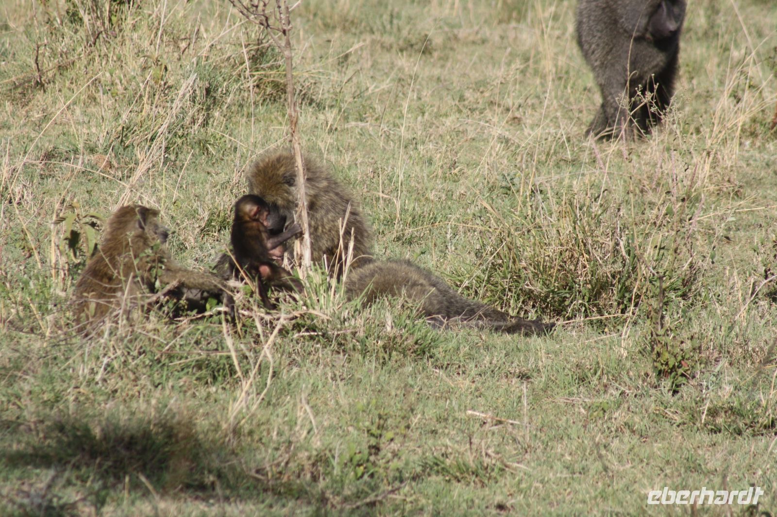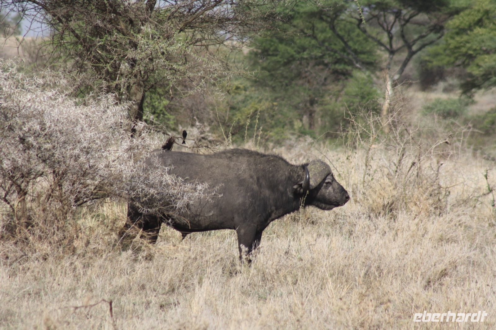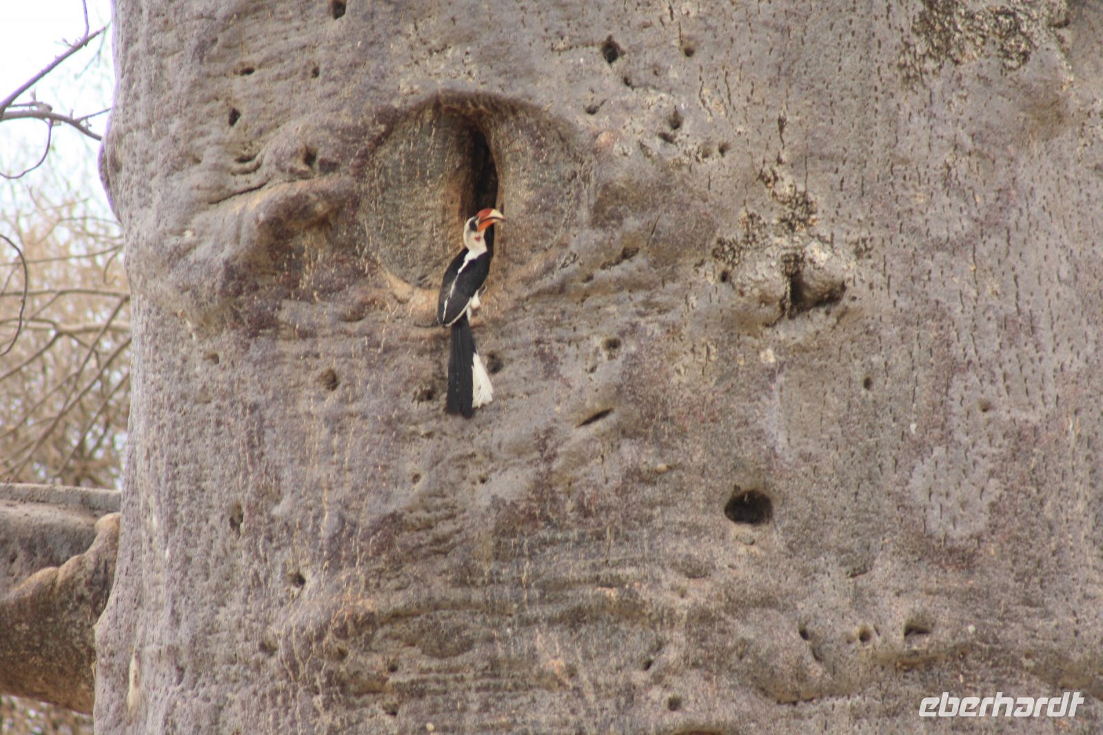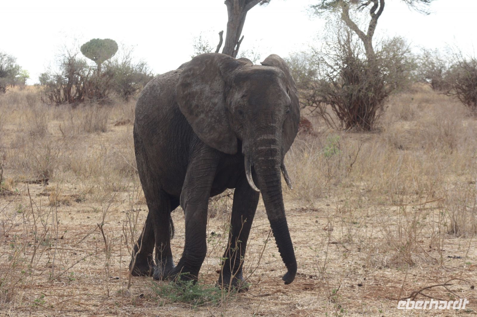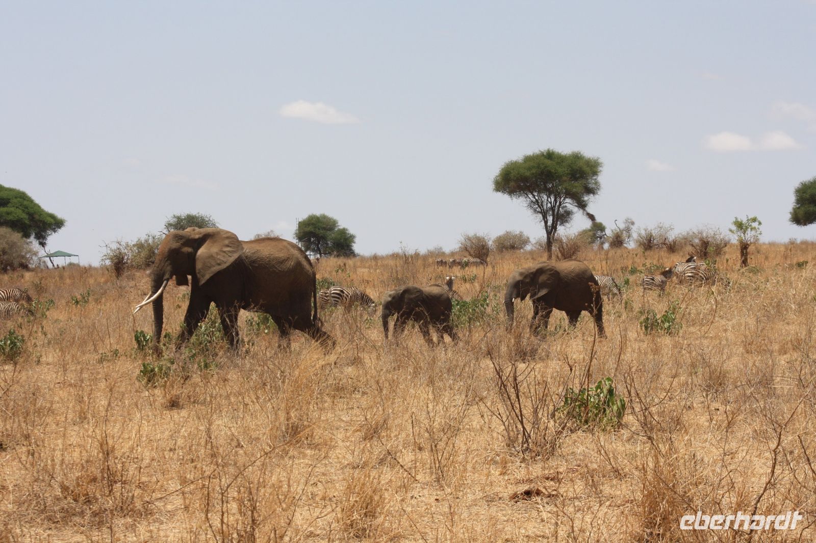 Heute heißt es leider Abschied von unserer liebgewonnene Rivertrees Lodge nehmen. Gemeinsam mit Karim machten wir uns auf dem Weg in Richtung Tarangire Nationalpark. Unterwegs konnten wir einen letzten Blick auf Mount Meru erhaschen, der sich diesmal fast wolkenfrei zeigte. Im Anschluss fuhren wir durch die Stadt Arusha und konnten einen ersten Eindruck von einer afrikanischen Stadt gewinnen. Nach der Stadt erreichten wir die Savanne. Hier konnten man bereits einige Dörfer der Masai entdecken. Die Kinder der Masai passen gemeinsam mit dem Vater auf das Vieh auf. Die Mütter sind für das Essen, das Wasser und auch für das Feuer in den Hütten zuständig. Zudem konnten wir unterwegs Geier mit einem toten Esel erblicken. Um die Mittagszeit erreichten wir das Eingangsgate zum Tarangire Nationalpark. Nach einer schnellen Anmeldung konnte unsere Pirschfahrt beginnen. Zuerst kreuzten Impalas unseren Weg, wo nur die Männer Hörner besitzen. Kurz darauf empfang uns ein Affenblütenbaum, der eigentlich nur nachts blüht, für uns eine Ausnahme machte. Nach kurzer Zeit erreichen wir das Wasserloch, wo sich Zebras, Gnus, Impalas und Warzenschweine begnügten. In kurzer Zeit konnten wir Elanantilopen, Gnus, ein schwarzer Hornrabe und riesige Büffelherde entdecken. Wir waren bereits hin und weg, als wir die Nachricht über einen Leoparden im Baum erhielten. Zum Glück waren wir in der Nähe und konnten uns einen Einblick machen. Leider versteckte sich der Leopard geschickt vor uns, sodass wir nur die Umrisse erahnen konnten. Trotzdem fuhren wir glücklich in Richtung Aussichtspunkt, wo wir eine große Elefantenherde mit Kindern erhaschen konnten. Unsere Mittagspause absolvierten an einen schönen Aussichtspunkt. Gemeinsam mit ein paar Pavianen teilten wir unser Essen und genossen den wunderbaren Ausblick. Nach unserer Mittagspause führten wir unsere Pirsch fort. Im Anschluss konnten wir unzählige Elefanten und Zebras erblicken. Am Fluss konnten wir Geiern bei ihrer Mittagspause zugucken, wo sie eine Giraffe als Mahlzeit verputzten. Des Weiteren erspähten wir Papageien, einen Rotschnabel und Erdmännchen. Ein weiteres Highlight waren drei weibliche Strauße, die mit ihren 22 Babys spazieren gingen. Auf dem Weg zur Lodge liefen uns noch blaue Gabelröcke, Elefant, Dikdik und Warzenschweine über den Weg. Unser Zeltcamp war schön am Rand des Nationalparks gelegen und wir konnten bei dem schönen Sonnenuntergang vom Restaurant aus genießen.