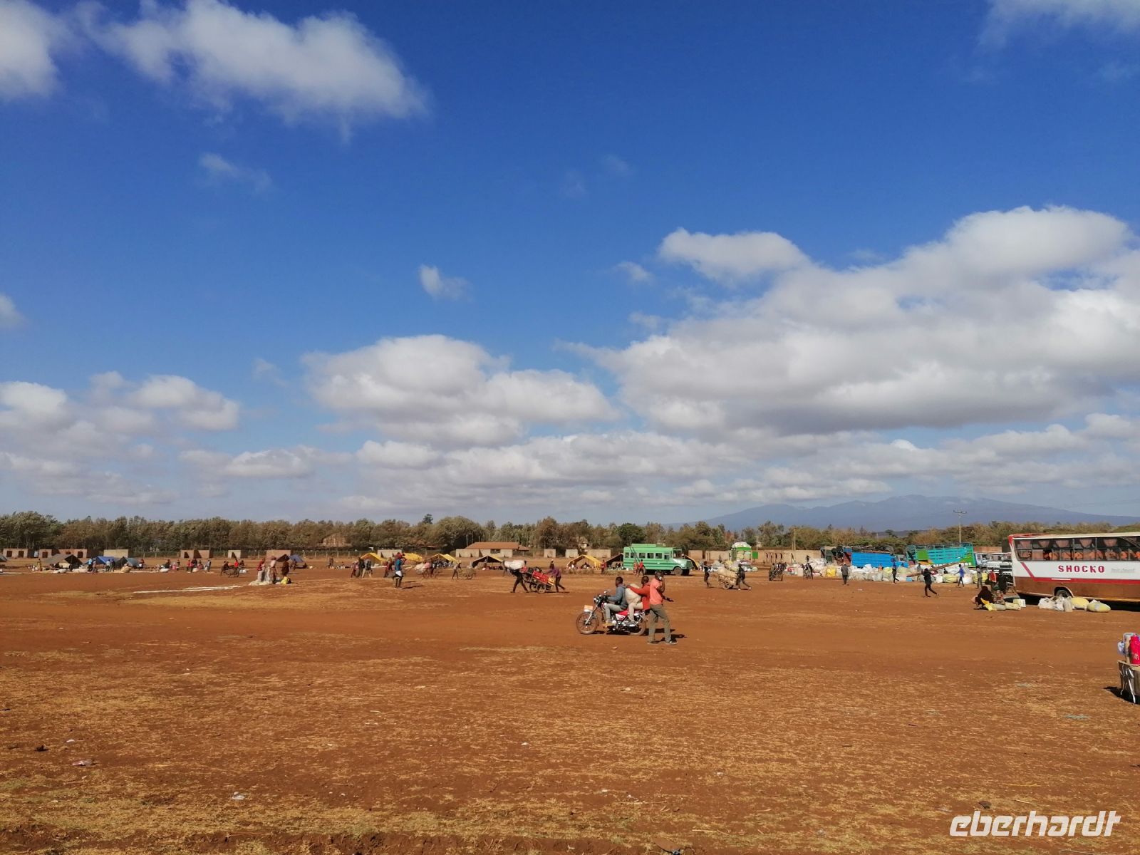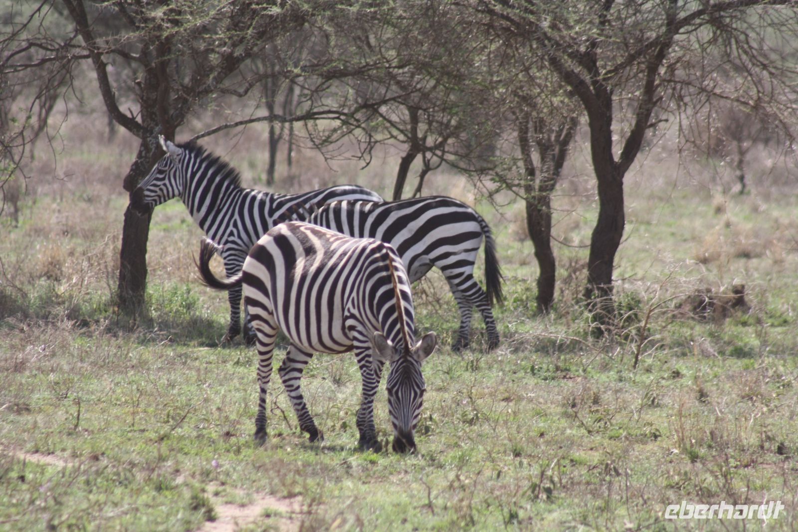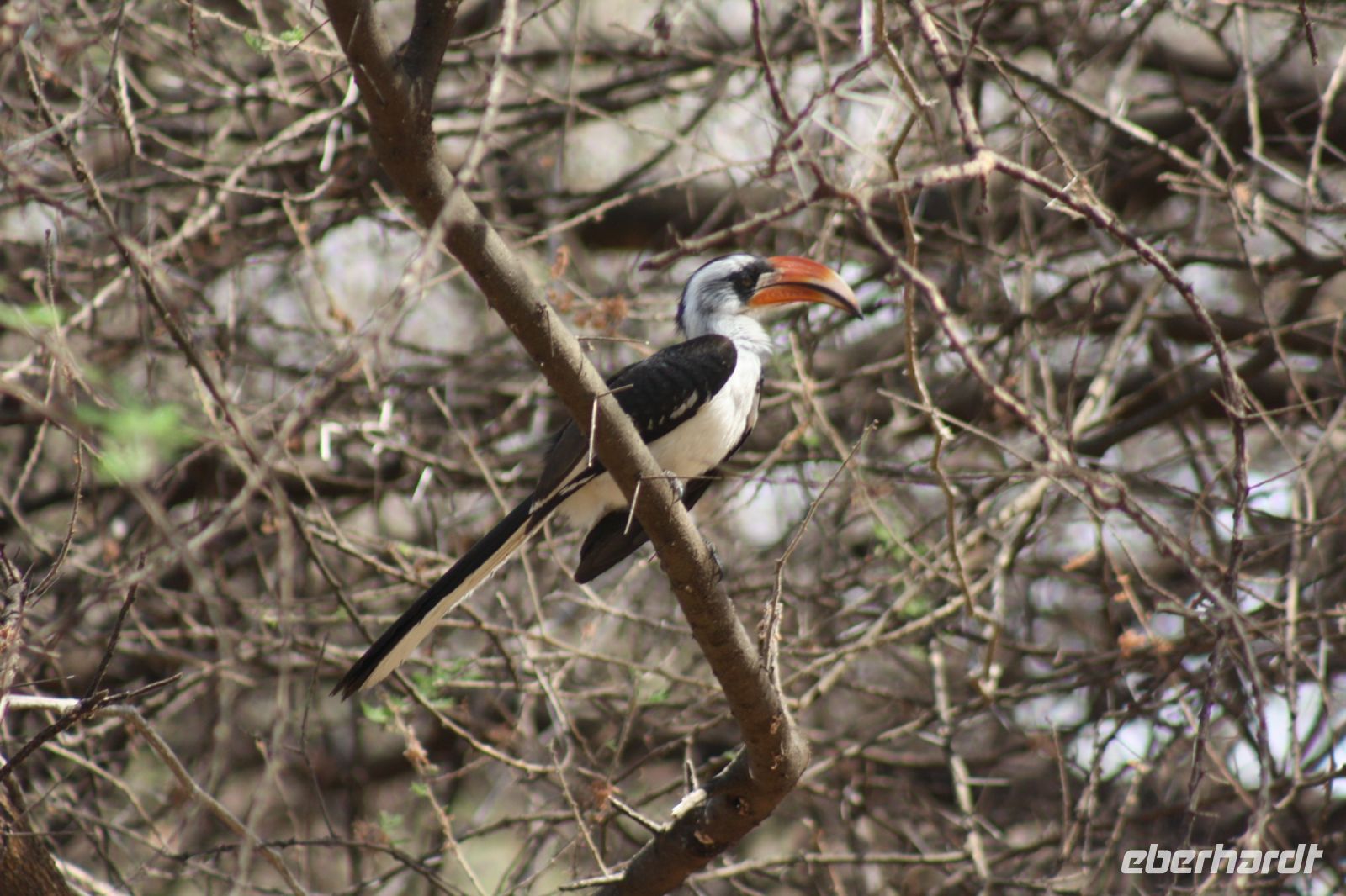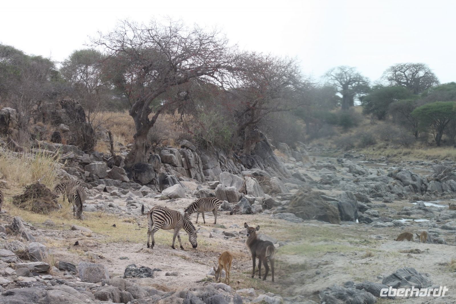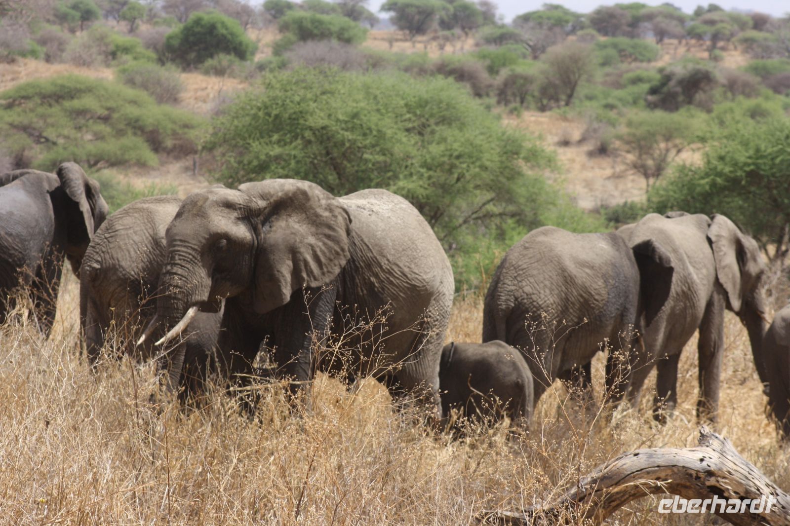 Heute heißt es leider Abschied von unserer liebgewonnene Rivertrees Lodge nehmen. Gemeinsam mit Karim machten wir uns auf dem Weg in Richtung Tarangire Nationalpark. Unterwegs konnten wir einen letzten Blick auf Mount Meru erhaschen, der sich diesmal fast wolkenfrei zeigte. Im Anschluss fuhren wir durch die Stadt Arusha und konnten einen ersten Eindruck von einer afrikanischen Stadt gewinnen. Nach der Stadt erreichten wir die Savanne. Hier konnten man bereits einige Dörfer der Masai entdecken. Die Kinder der Masai passen gemeinsam mit dem Vater auf das Vieh auf. Die Mütter sind für das Essen, das Wasser und auch für das Feuer in den Hütten zuständig. Zudem konnten wir unterwegs Geier mit einem toten Esel erblicken. Um die Mittagszeit erreichten wir das Eingangsgate zum Tarangire Nationalpark. Nach einer schnellen Anmeldung konnte unsere Pirschfahrt beginnen. Zuerst kreuzten Impalas unseren Weg, wo nur die Männer Hörner besitzen. Kurz darauf empfang uns ein Affenblütenbaum, der eigentlich nur nachts blüht, für uns eine Ausnahme machte. Nach kurzer Zeit erreichen wir das Wasserloch, wo sich Zebras, Gnus, Impalas und Warzenschweine begnügten. In kurzer Zeit konnten wir Elanantilopen, Gnus, ein schwarzer Hornrabe und riesige Büffelherde entdecken. Wir waren bereits hin und weg, als wir die Nachricht über einen Leoparden im Baum erhielten. Zum Glück waren wir in der Nähe und konnten uns einen Einblick machen. Leider versteckte sich der Leopard geschickt vor uns, sodass wir nur die Umrisse erahnen konnten. Trotzdem fuhren wir glücklich in Richtung Aussichtspunkt, wo wir eine große Elefantenherde mit Kindern erhaschen konnten. Unsere Mittagspause absolvierten an einen schönen Aussichtspunkt. Gemeinsam mit ein paar Pavianen teilten wir unser Essen und genossen den wunderbaren Ausblick. Nach unserer Mittagspause führten wir unsere Pirsch fort. Im Anschluss konnten wir unzählige Elefanten und Zebras erblicken. Am Fluss konnten wir Geiern bei ihrer Mittagspause zugucken, wo sie eine Giraffe als Mahlzeit verputzten. Des Weiteren erspähten wir Papageien, einen Rotschnabel und Erdmännchen. Ein weiteres Highlight waren drei weibliche Strauße, die mit ihren 22 Babys spazieren gingen. Auf dem Weg zur Lodge liefen uns noch blaue Gabelröcke, Elefant, Dikdik und Warzenschweine über den Weg. Unser Zeltcamp war schön am Rand des Nationalparks gelegen und wir konnten bei dem schönen Sonnenuntergang vom Restaurant aus genießen.