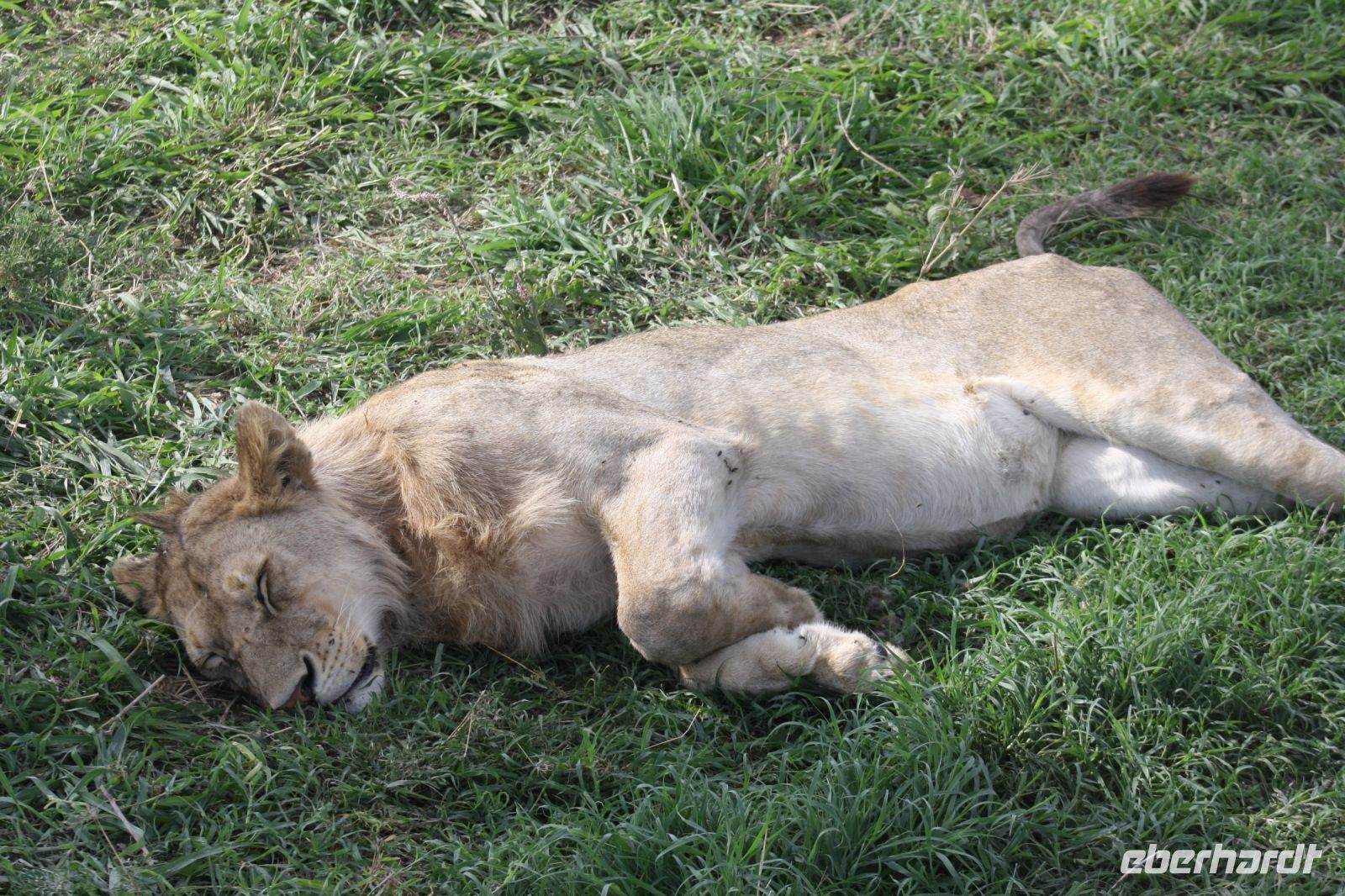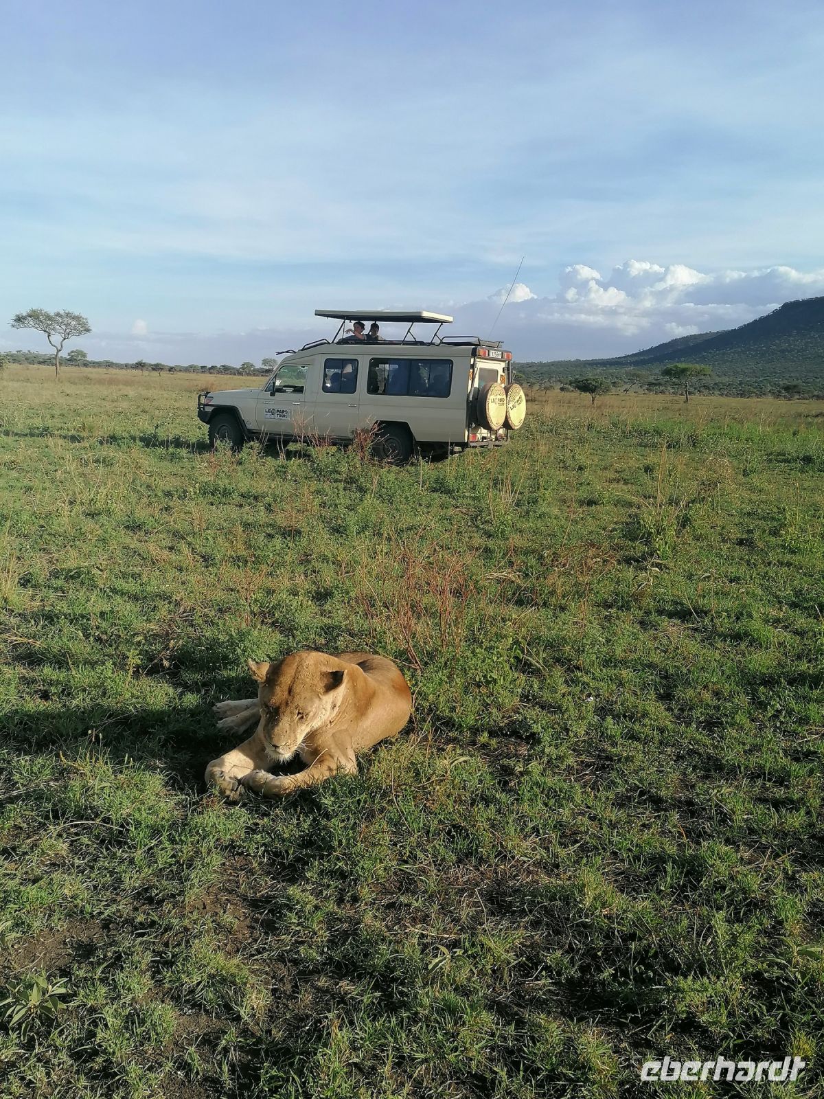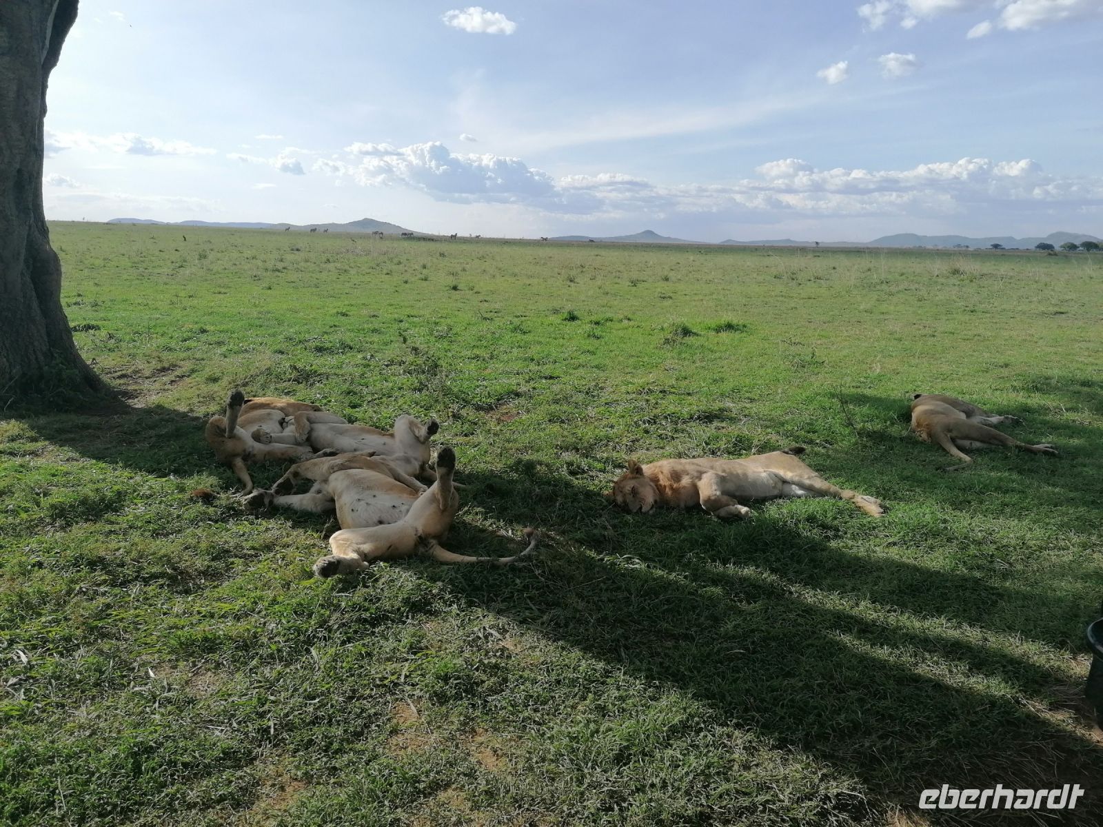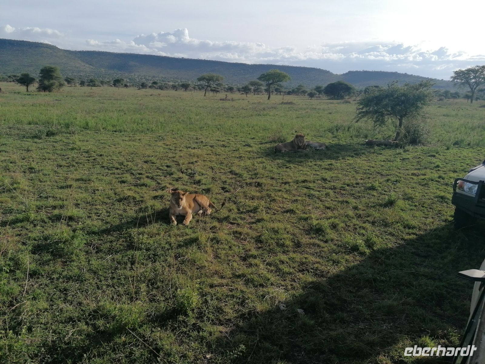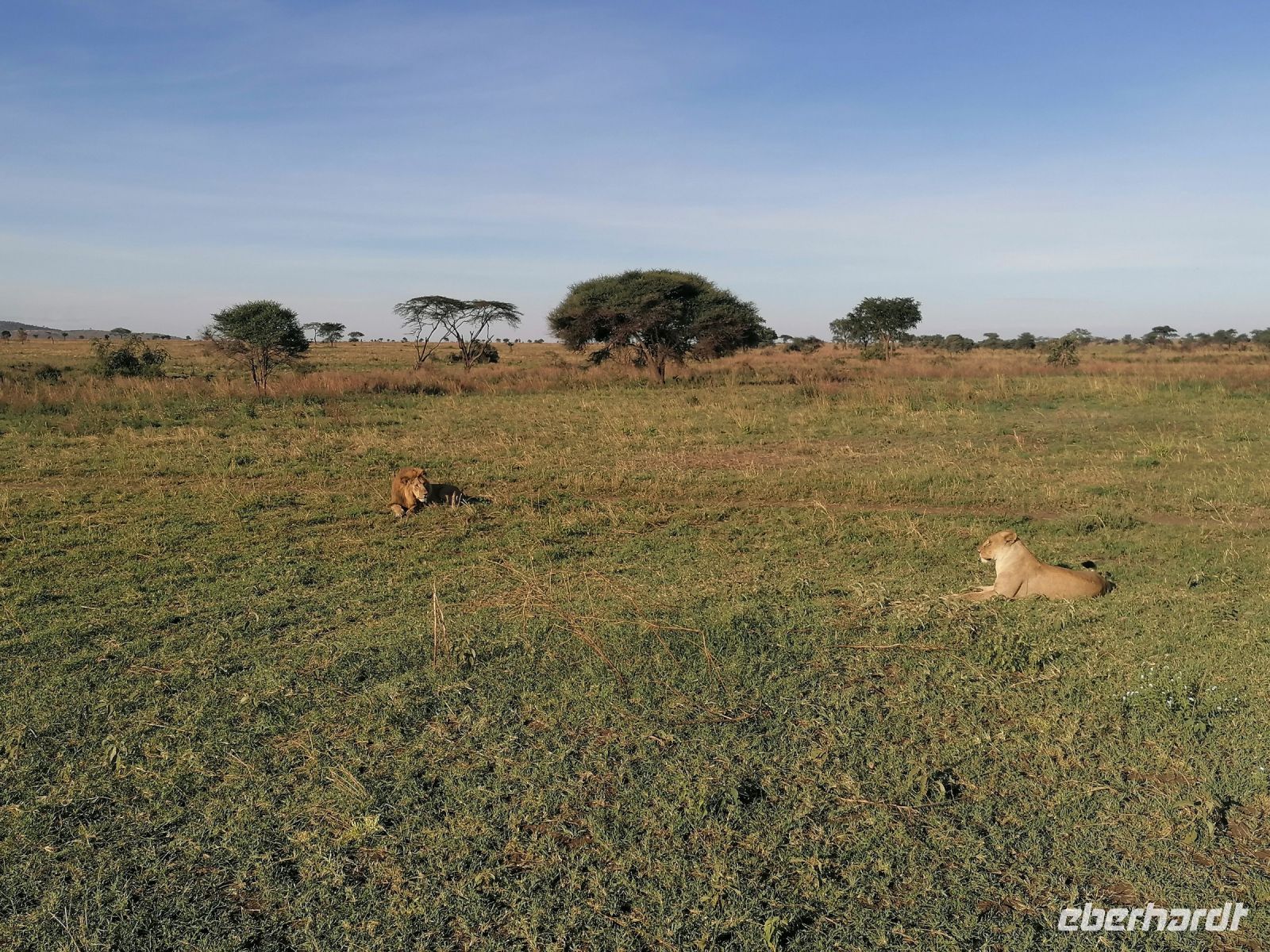 Auf der morgentlichen Pirsch sahen wir zunächst eine Herde Hyänen rumlungern. Neben Leierantilope, Grants Gazellen, Mangusten und Giraffen, erspähten wir auch einen Adler und Sandhühner. Zum Abschied erblicken wir einen männlichen und einen weiblichen Löwen und verabschiedeten uns von der Savanne. Insgesamt sind wir 1.393 km durch Tansania gefahren und konnten das traumhafte Land in vollen Zügen entdecken.