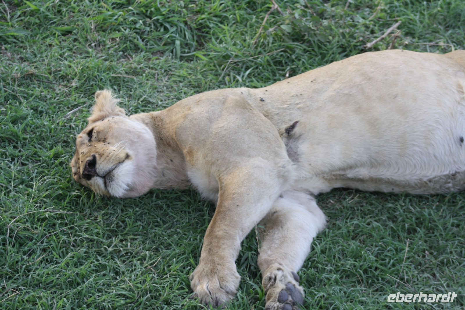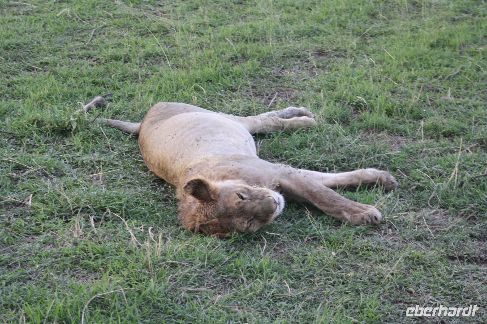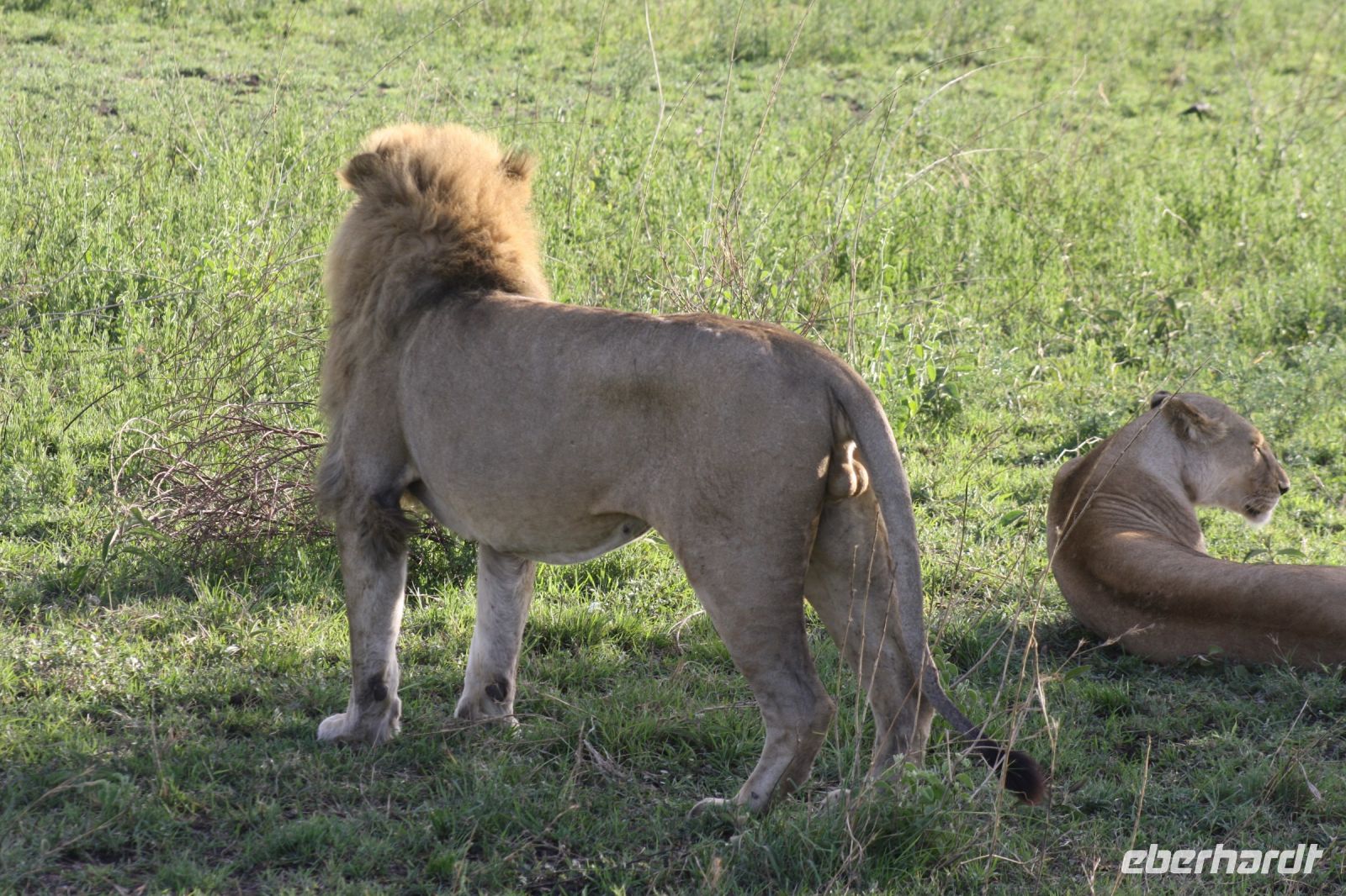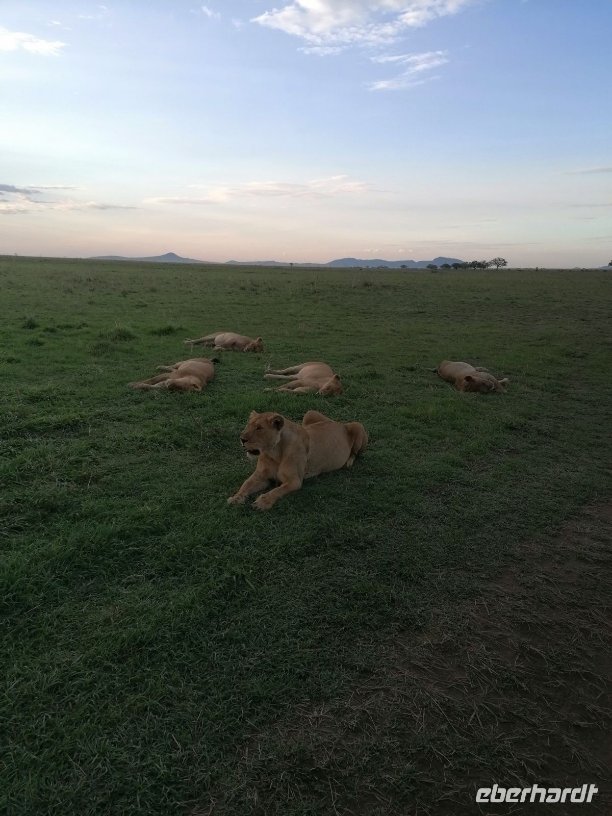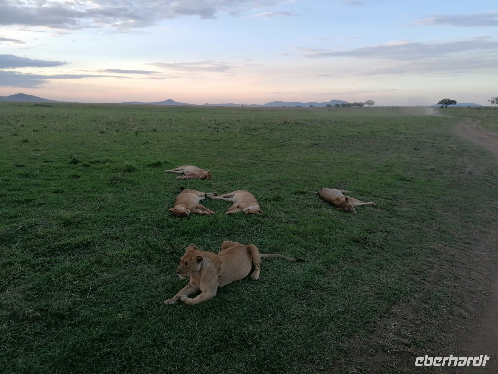 Auf der morgentlichen Pirsch sahen wir zunächst eine Herde Hyänen rumlungern. Neben Leierantilope, Grants Gazellen, Mangusten und Giraffen, erspähten wir auch einen Adler und Sandhühner. Zum Abschied erblicken wir einen männlichen und einen weiblichen Löwen und verabschiedeten uns von der Savanne. Insgesamt sind wir 1.393 km durch Tansania gefahren und konnten das traumhafte Land in vollen Zügen entdecken.