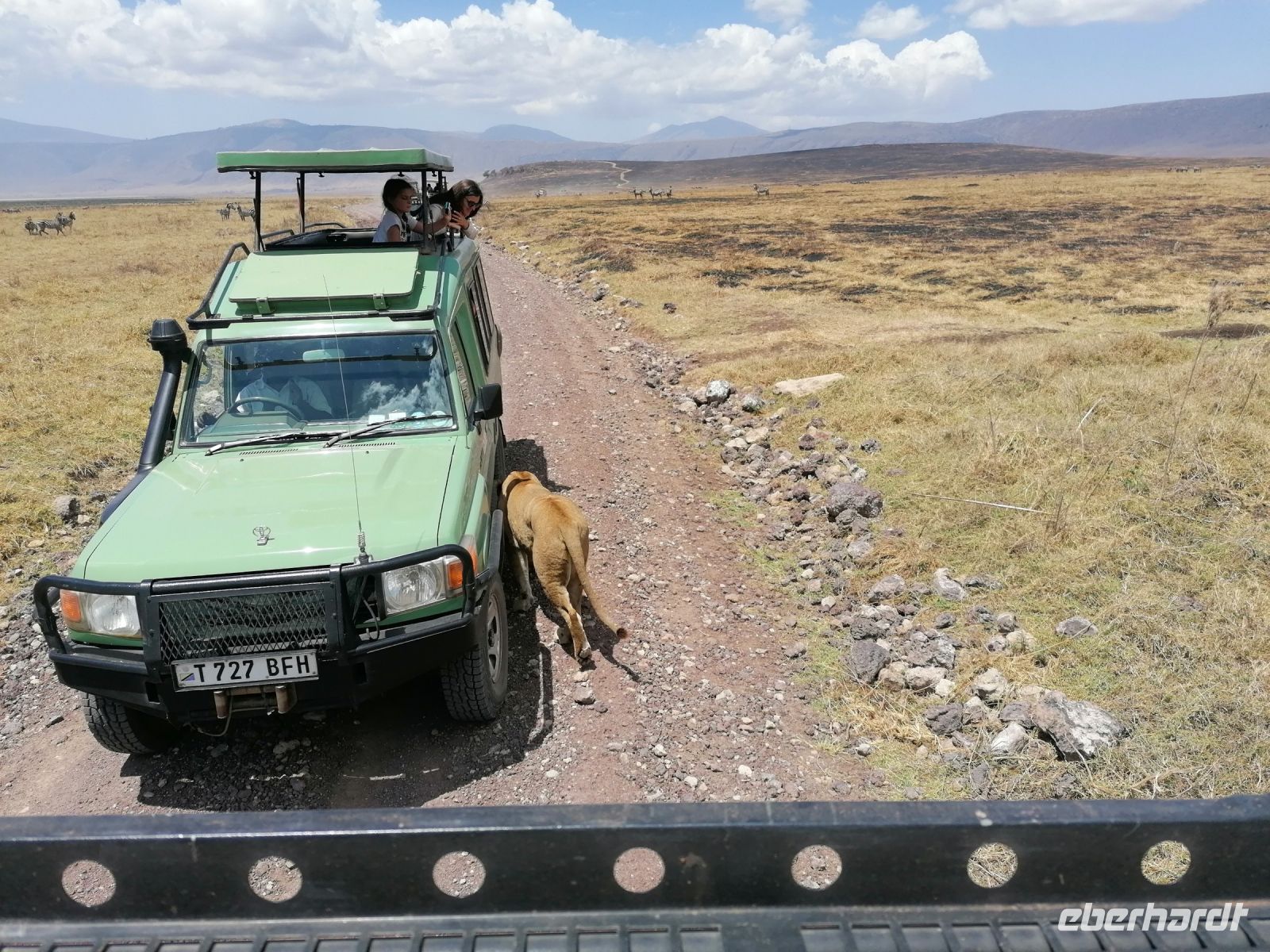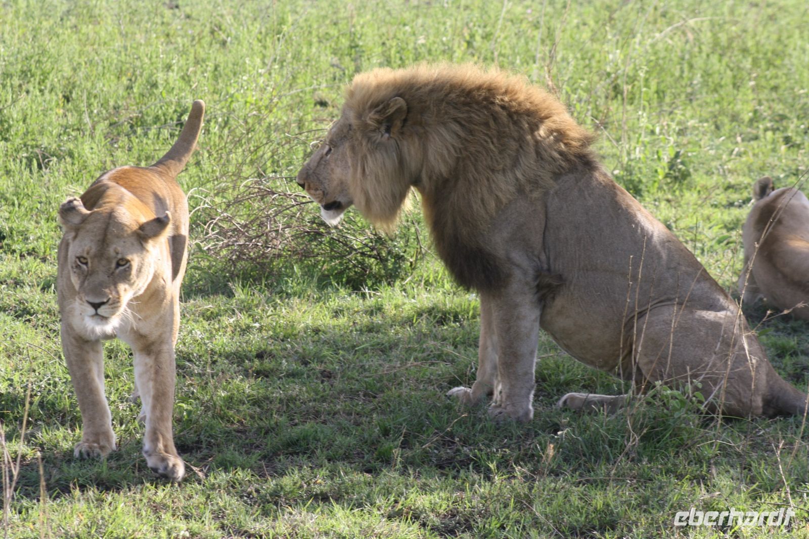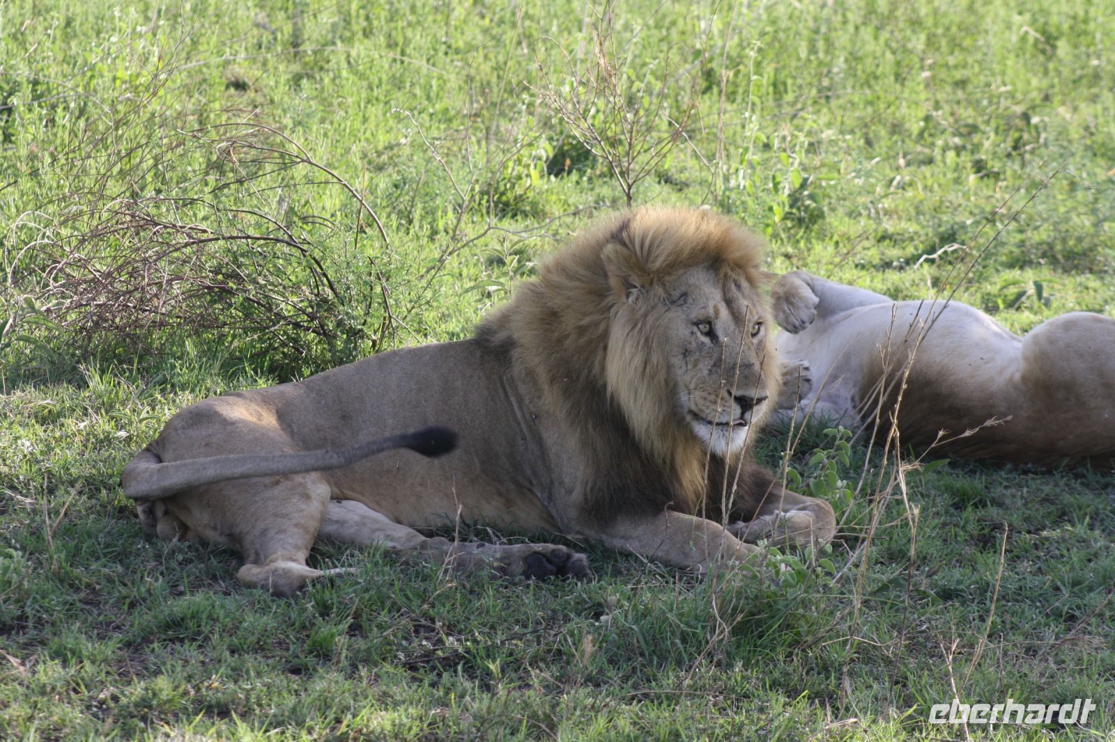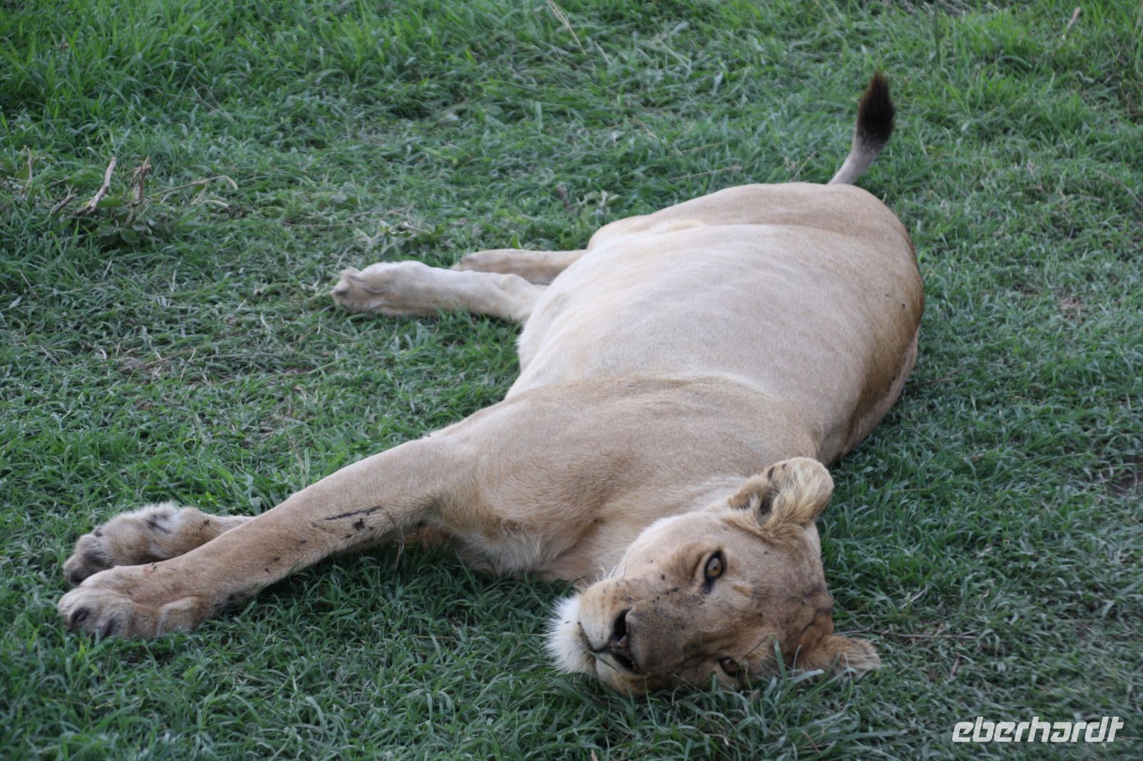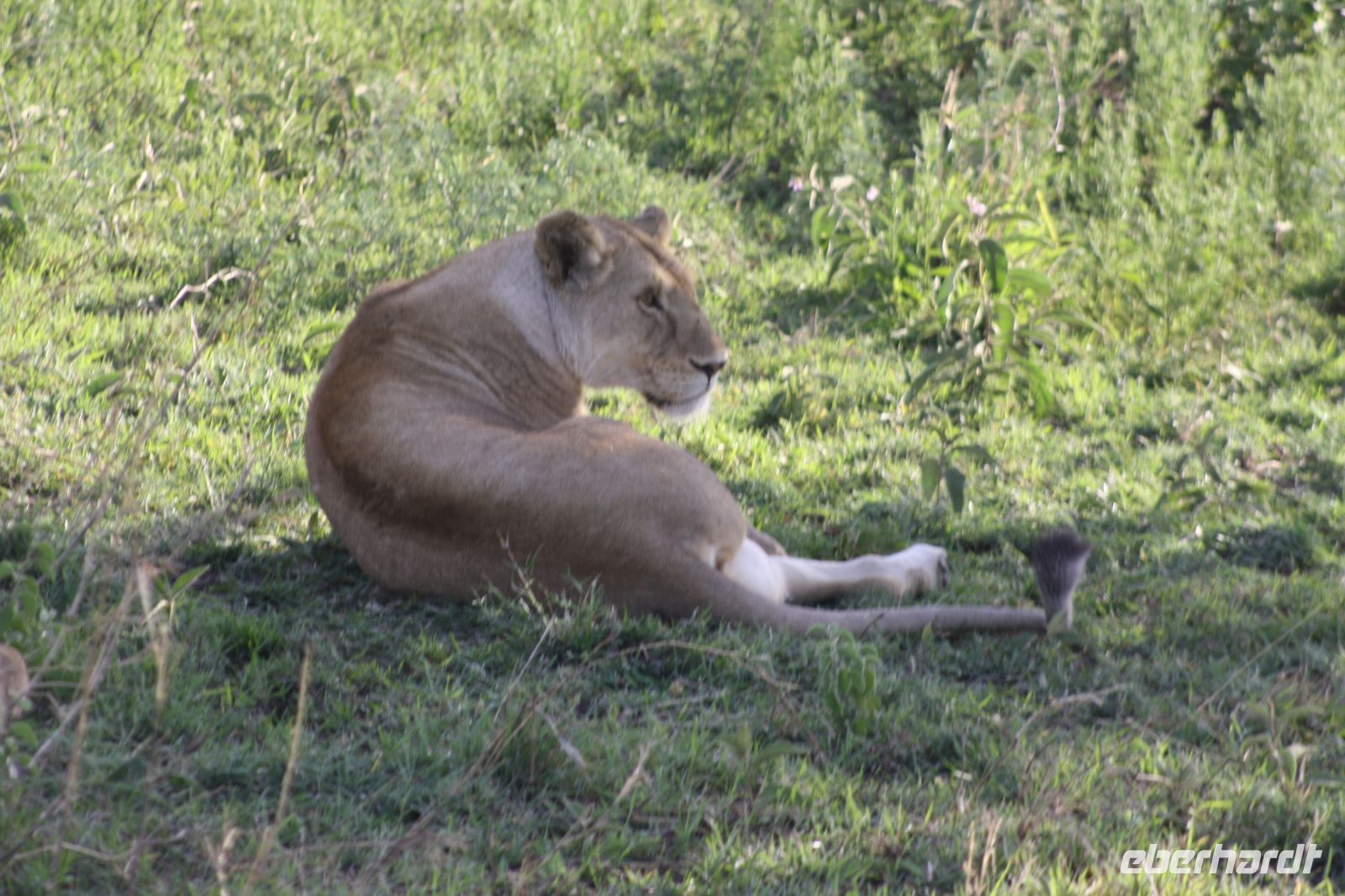 Auf der morgentlichen Pirsch sahen wir zunächst eine Herde Hyänen rumlungern. Neben Leierantilope, Grants Gazellen, Mangusten und Giraffen, erspähten wir auch einen Adler und Sandhühner. Zum Abschied erblicken wir einen männlichen und einen weiblichen Löwen und verabschiedeten uns von der Savanne. Insgesamt sind wir 1.393 km durch Tansania gefahren und konnten das traumhafte Land in vollen Zügen entdecken.