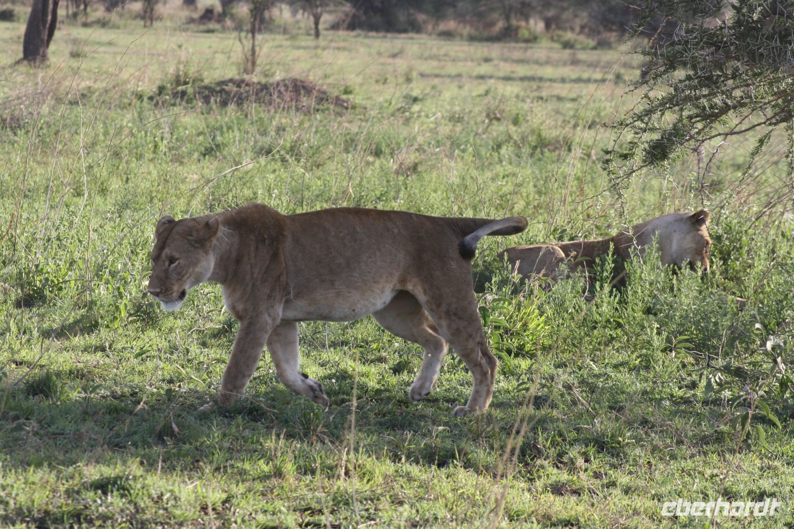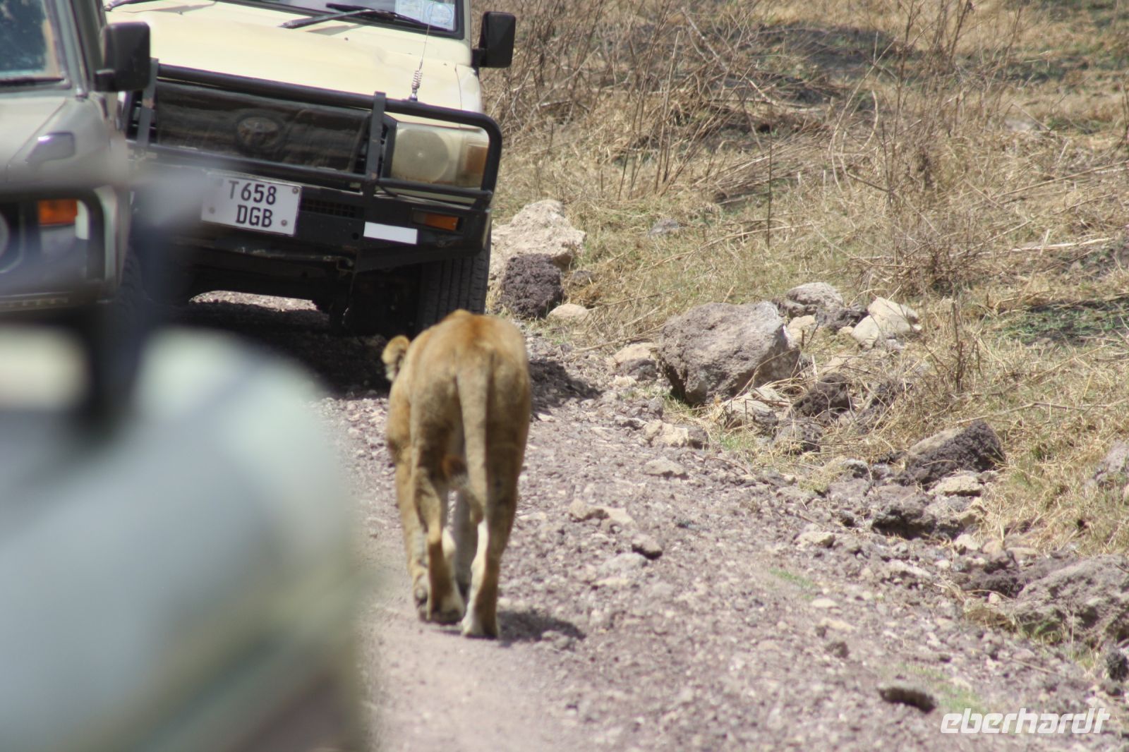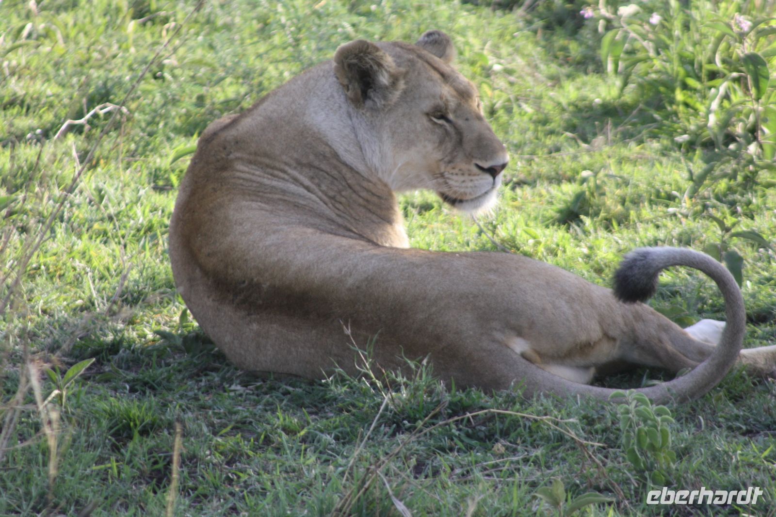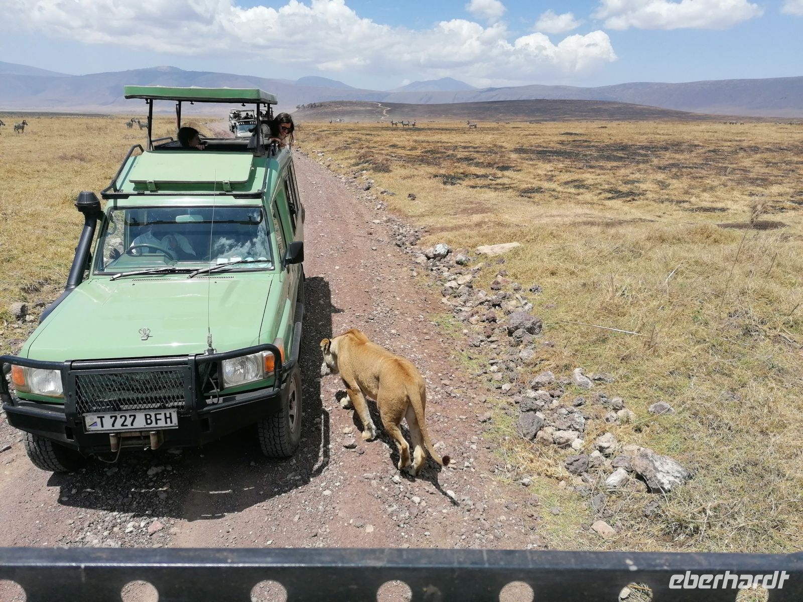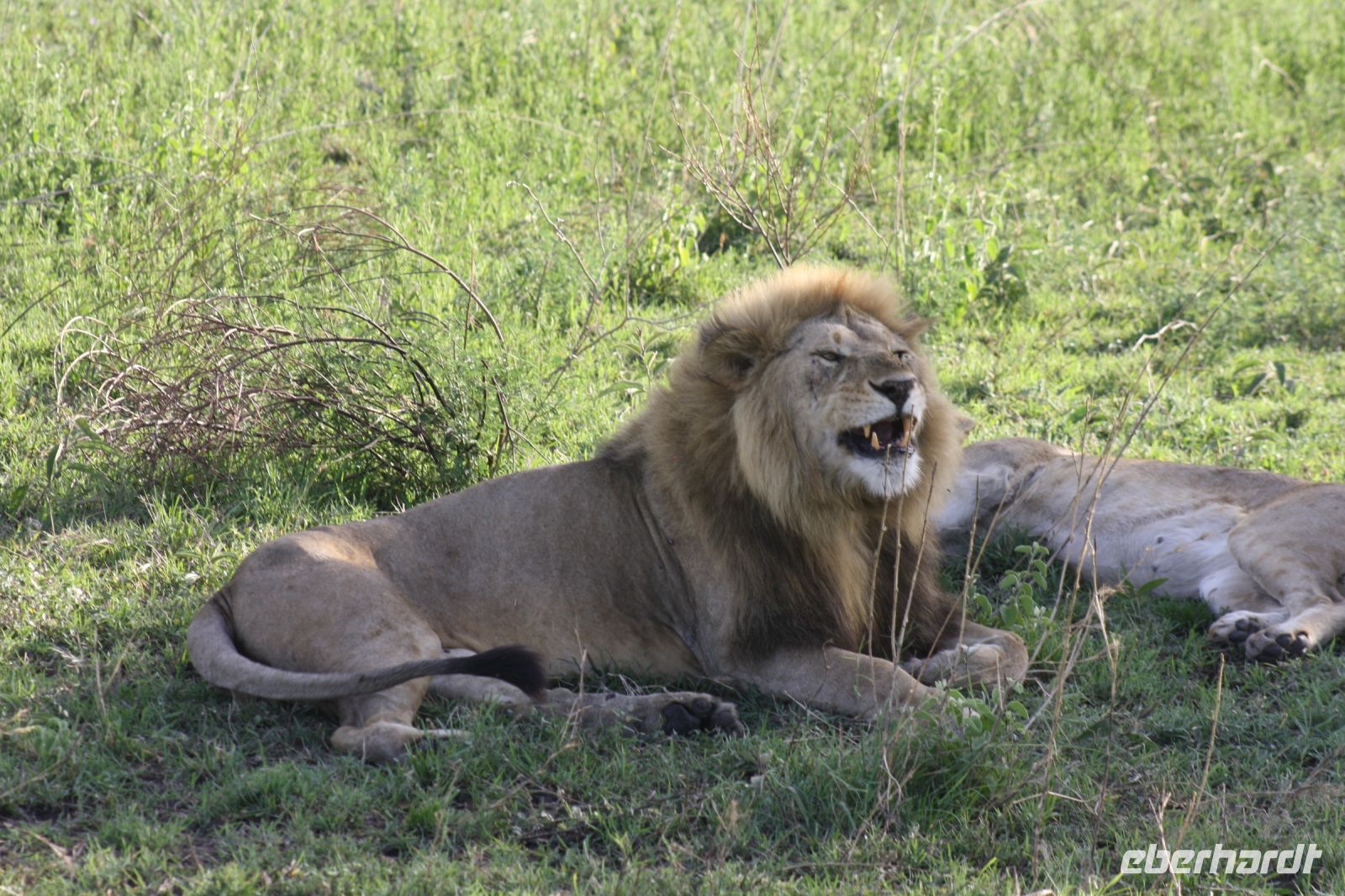 Auf der morgentlichen Pirsch sahen wir zunächst eine Herde Hyänen rumlungern. Neben Leierantilope, Grants Gazellen, Mangusten und Giraffen, erspähten wir auch einen Adler und Sandhühner. Zum Abschied erblicken wir einen männlichen und einen weiblichen Löwen und verabschiedeten uns von der Savanne. Insgesamt sind wir 1.393 km durch Tansania gefahren und konnten das traumhafte Land in vollen Zügen entdecken.