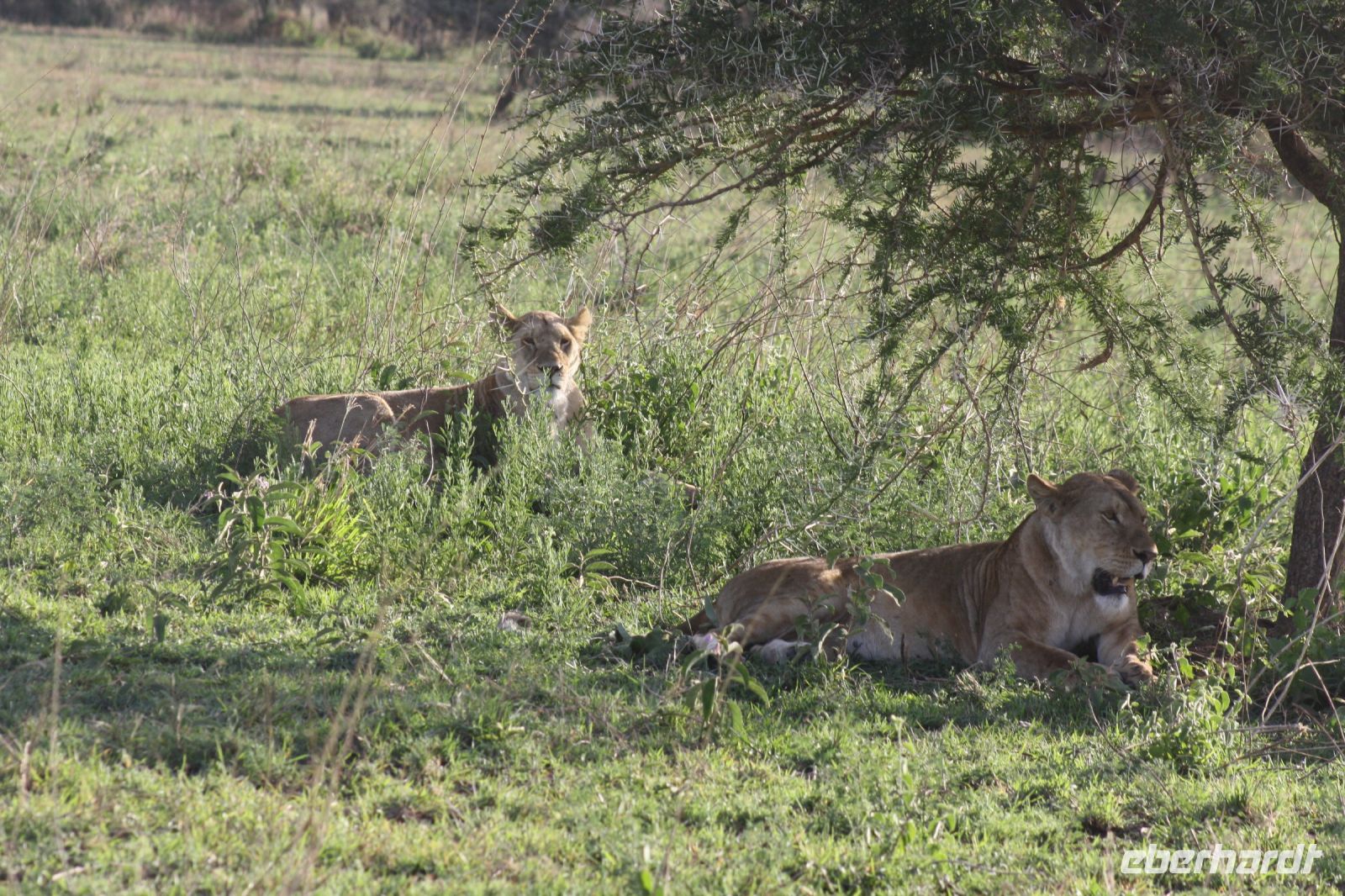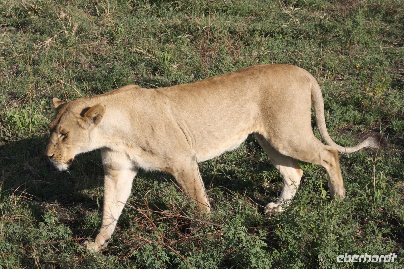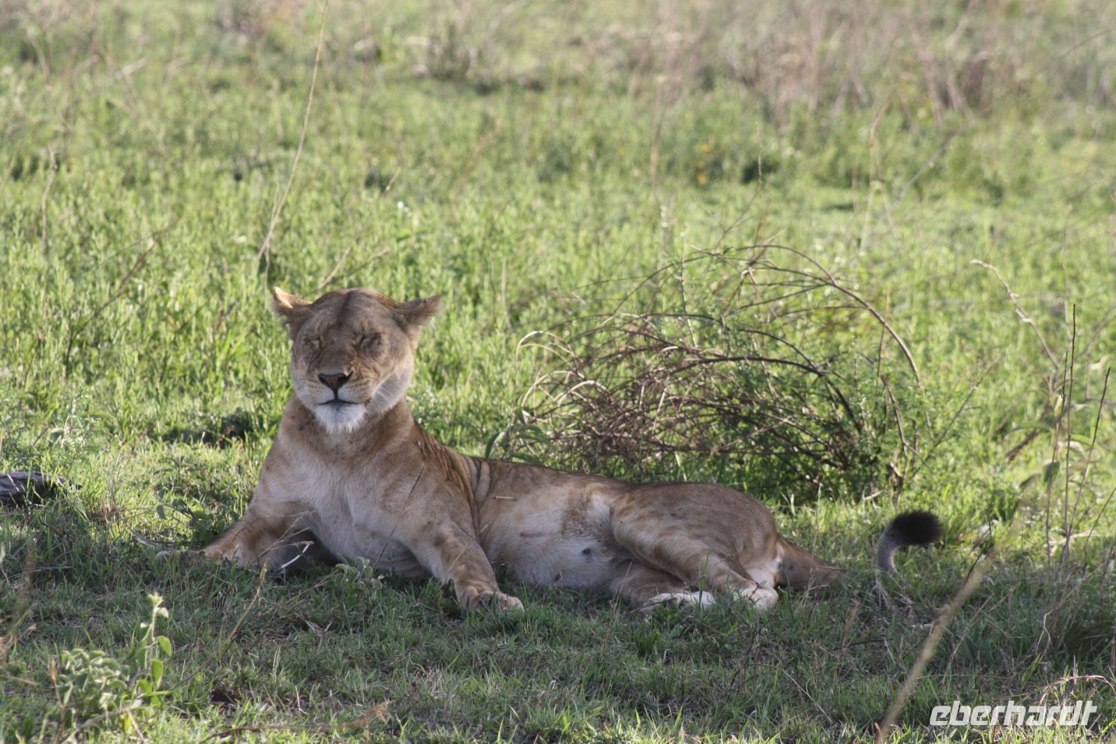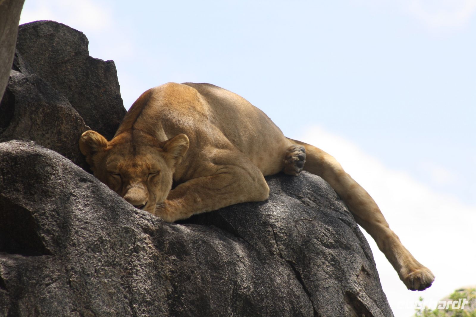 Auf der morgentlichen Pirsch sahen wir zunächst eine Herde Hyänen rumlungern. Neben Leierantilope, Grants Gazellen, Mangusten und Giraffen, erspähten wir auch einen Adler und Sandhühner. Zum Abschied erblicken wir einen männlichen und einen weiblichen Löwen und verabschiedeten uns von der Savanne. Insgesamt sind wir 1.393 km durch Tansania gefahren und konnten das traumhafte Land in vollen Zügen entdecken.