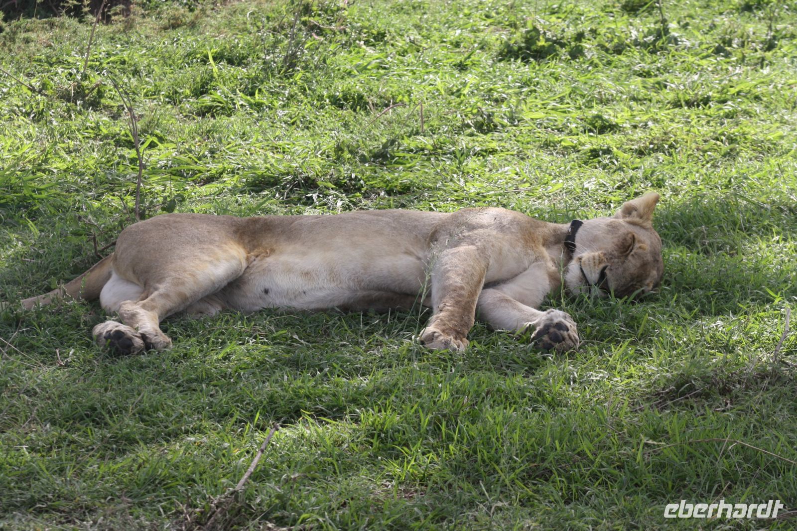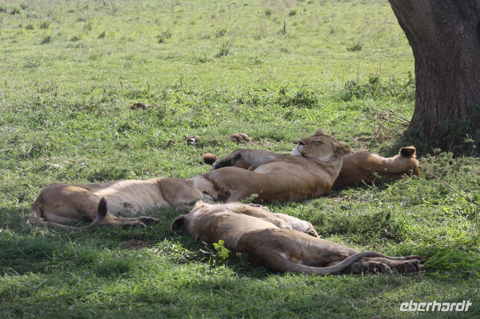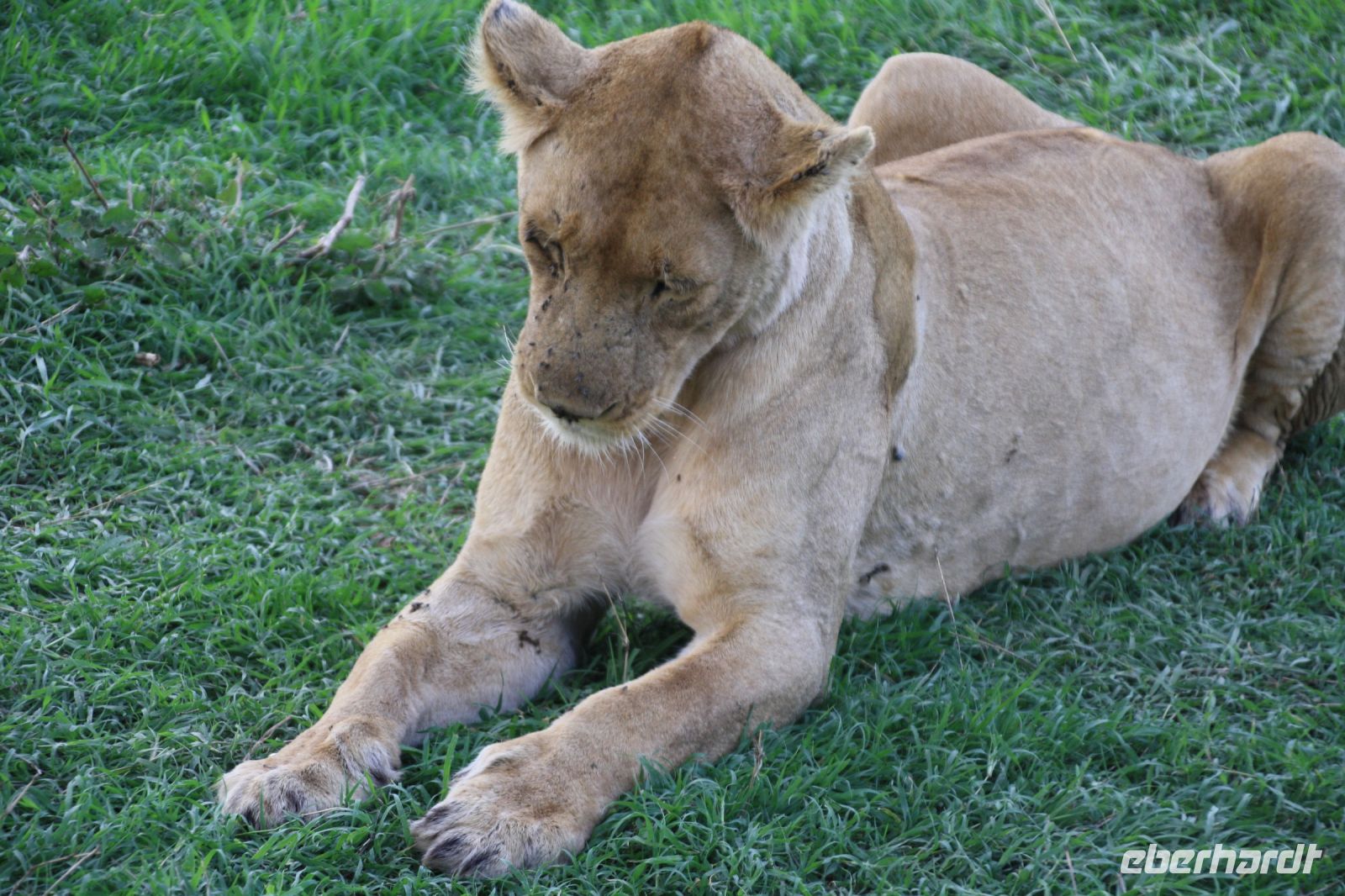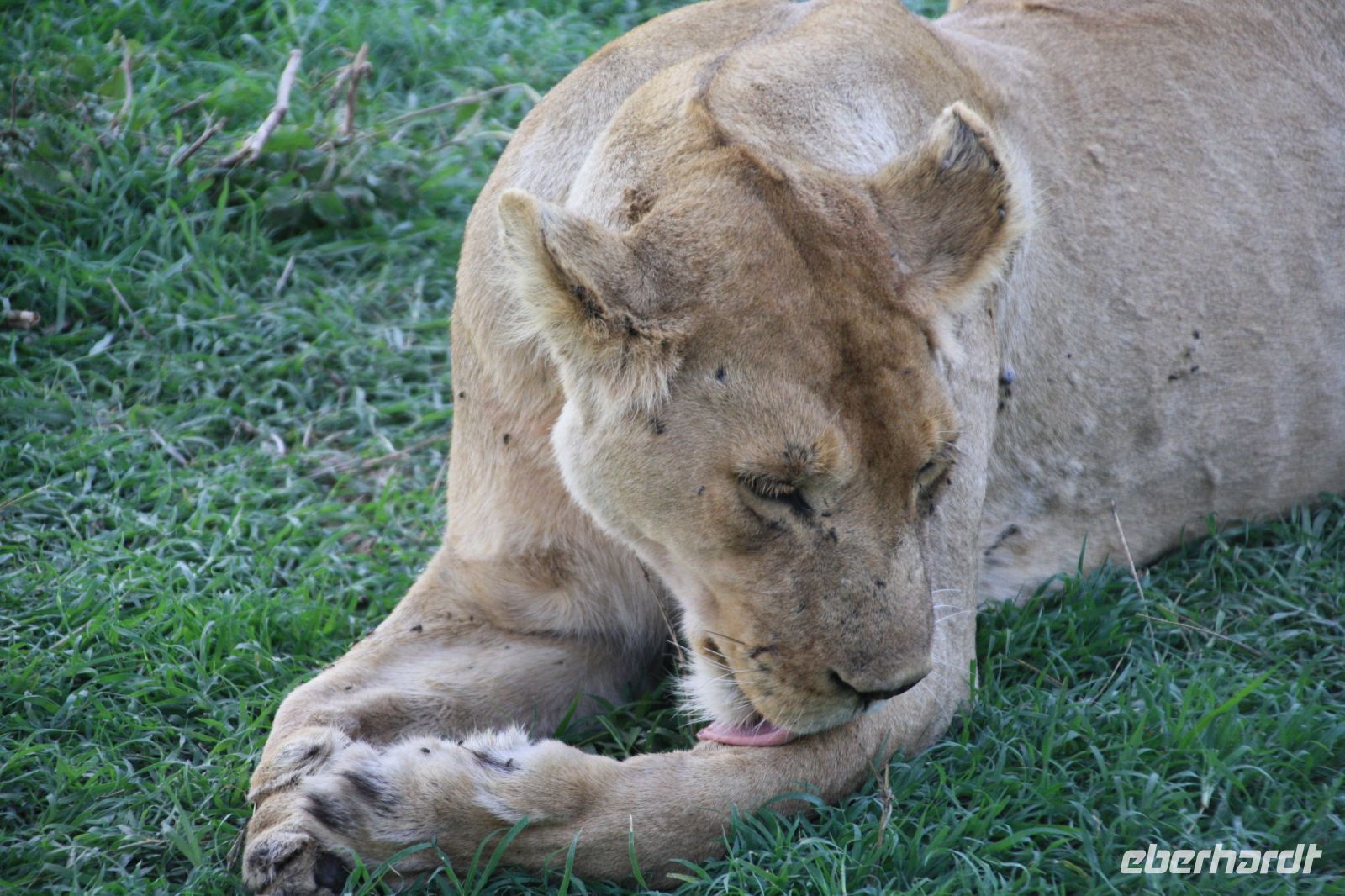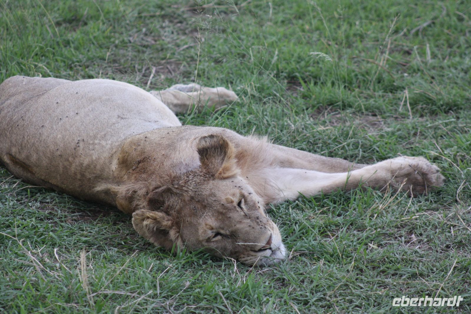 Auf der morgentlichen Pirsch sahen wir zunächst eine Herde Hyänen rumlungern. Neben Leierantilope, Grants Gazellen, Mangusten und Giraffen, erspähten wir auch einen Adler und Sandhühner. Zum Abschied erblicken wir einen männlichen und einen weiblichen Löwen und verabschiedeten uns von der Savanne. Insgesamt sind wir 1.393 km durch Tansania gefahren und konnten das traumhafte Land in vollen Zügen entdecken.