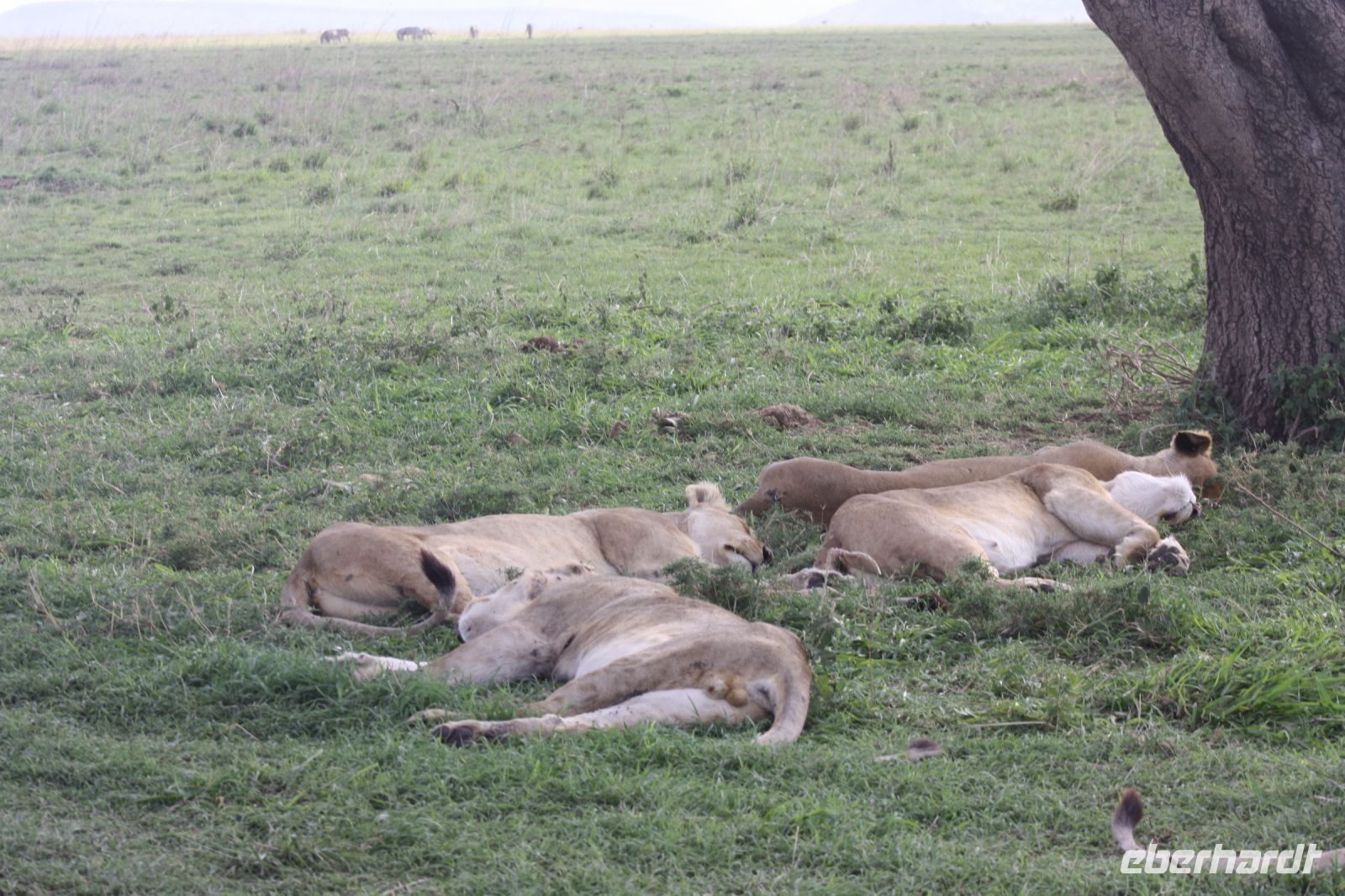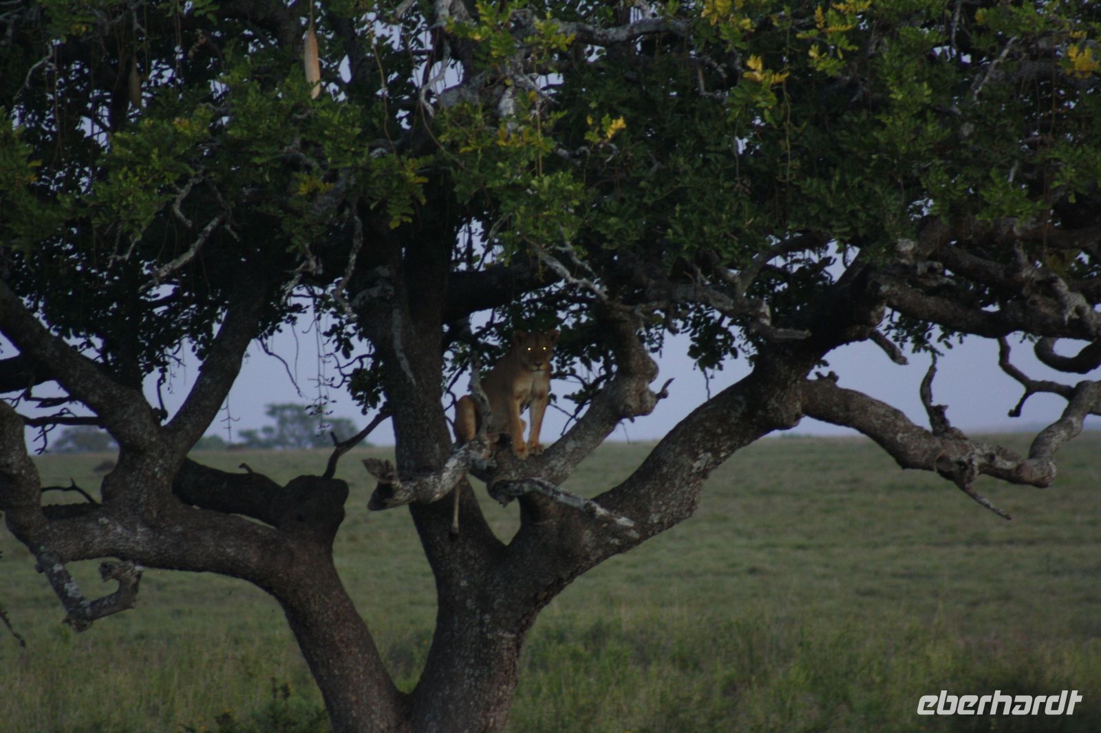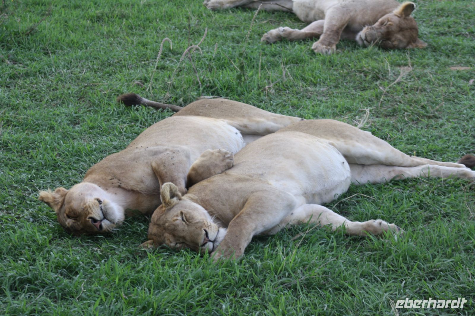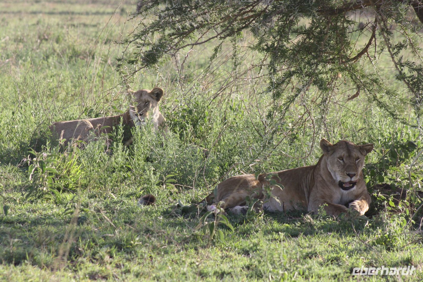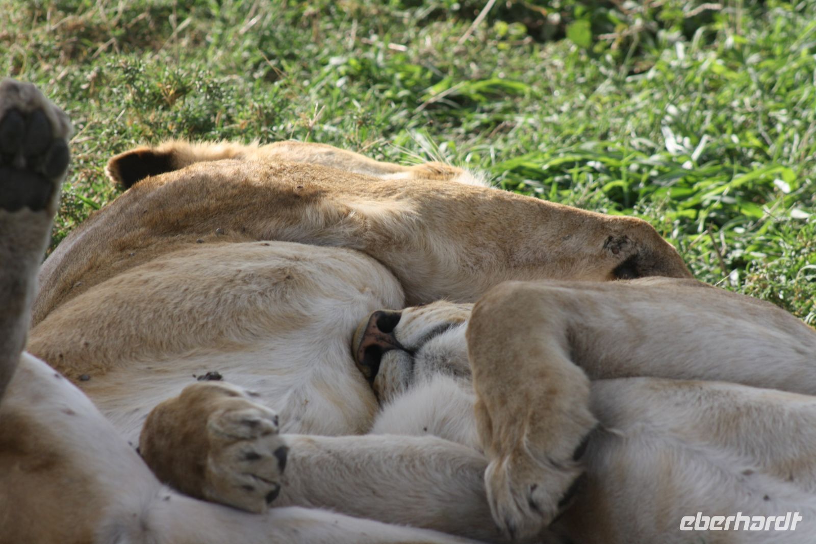 Auf der morgentlichen Pirsch sahen wir zunächst eine Herde Hyänen rumlungern. Neben Leierantilope, Grants Gazellen, Mangusten und Giraffen, erspähten wir auch einen Adler und Sandhühner. Zum Abschied erblicken wir einen männlichen und einen weiblichen Löwen und verabschiedeten uns von der Savanne. Insgesamt sind wir 1.393 km durch Tansania gefahren und konnten das traumhafte Land in vollen Zügen entdecken.