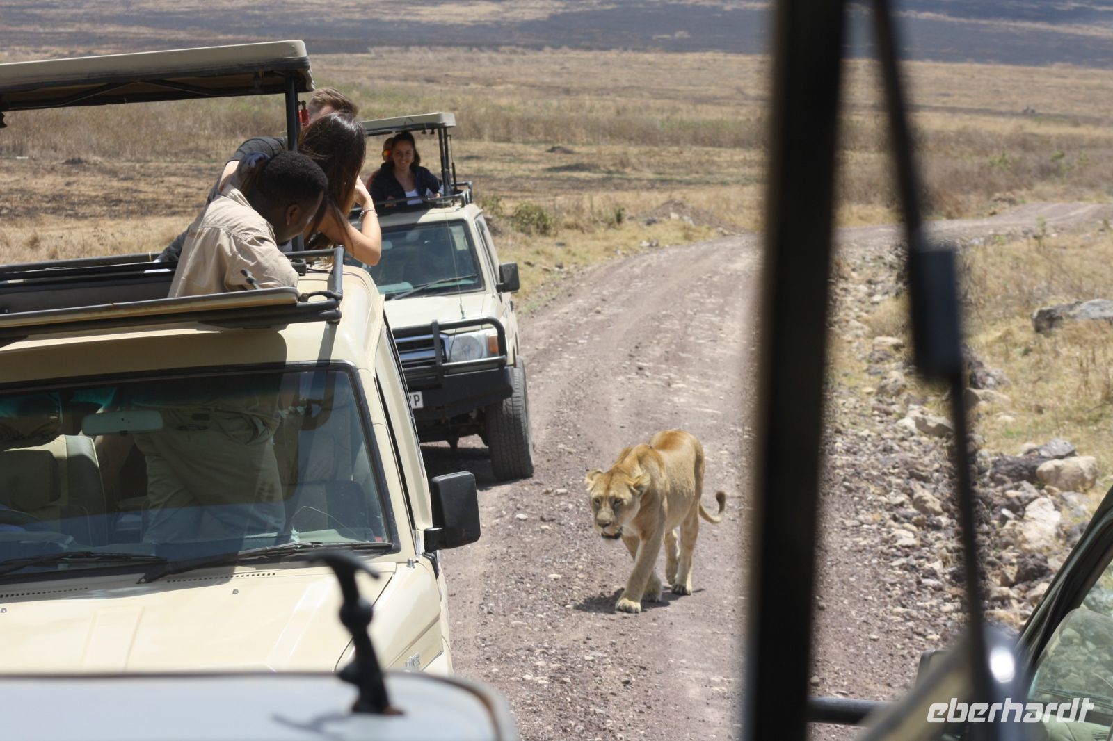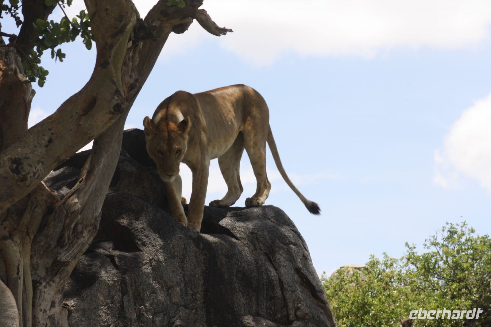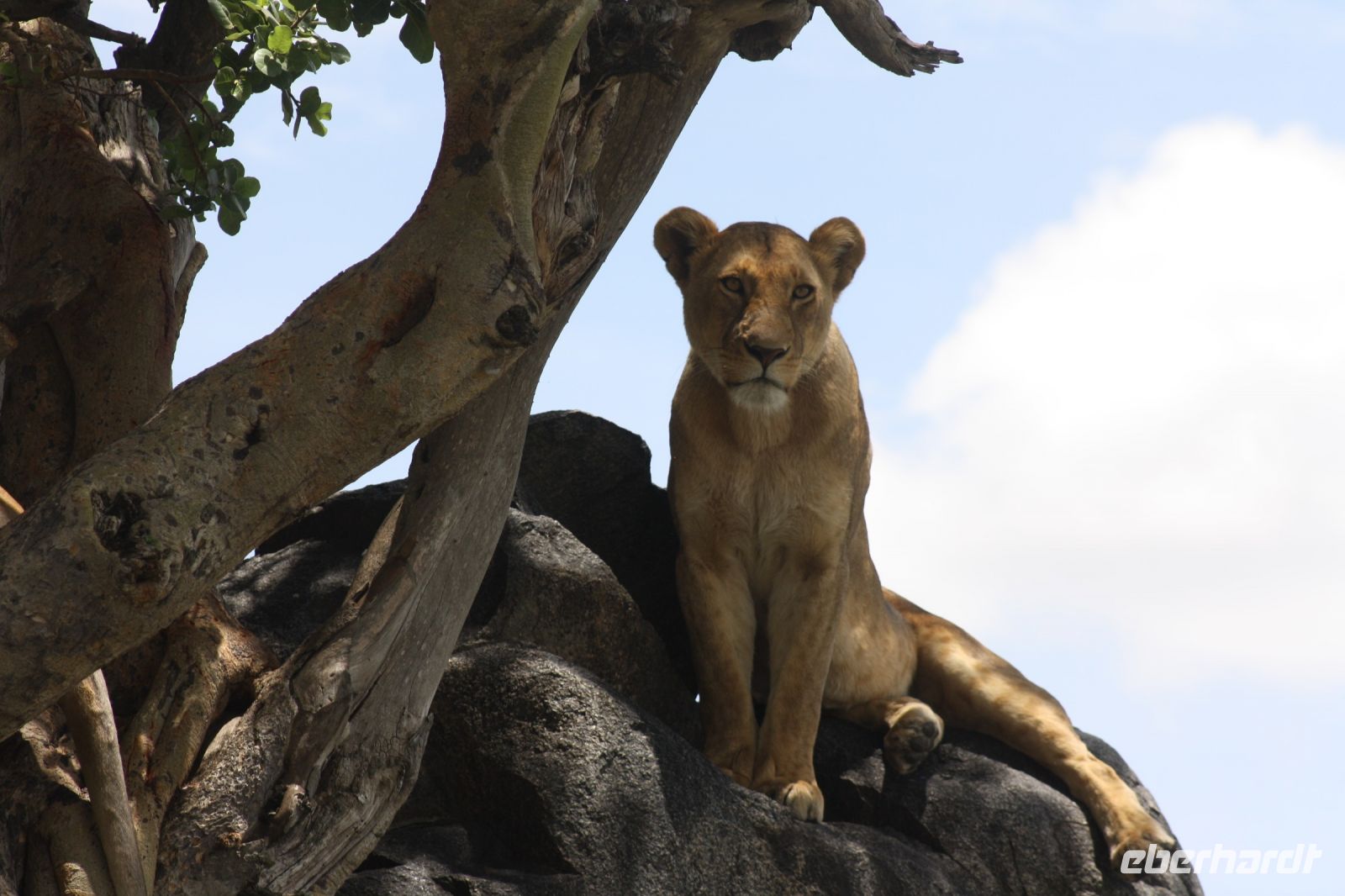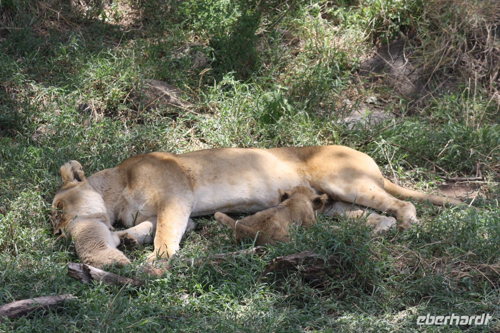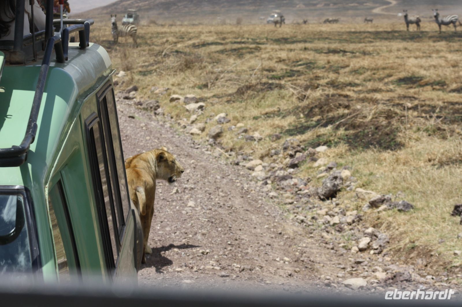 Auf der morgentlichen Pirsch sahen wir zunächst eine Herde Hyänen rumlungern. Neben Leierantilope, Grants Gazellen, Mangusten und Giraffen, erspähten wir auch einen Adler und Sandhühner. Zum Abschied erblicken wir einen männlichen und einen weiblichen Löwen und verabschiedeten uns von der Savanne. Insgesamt sind wir 1.393 km durch Tansania gefahren und konnten das traumhafte Land in vollen Zügen entdecken.