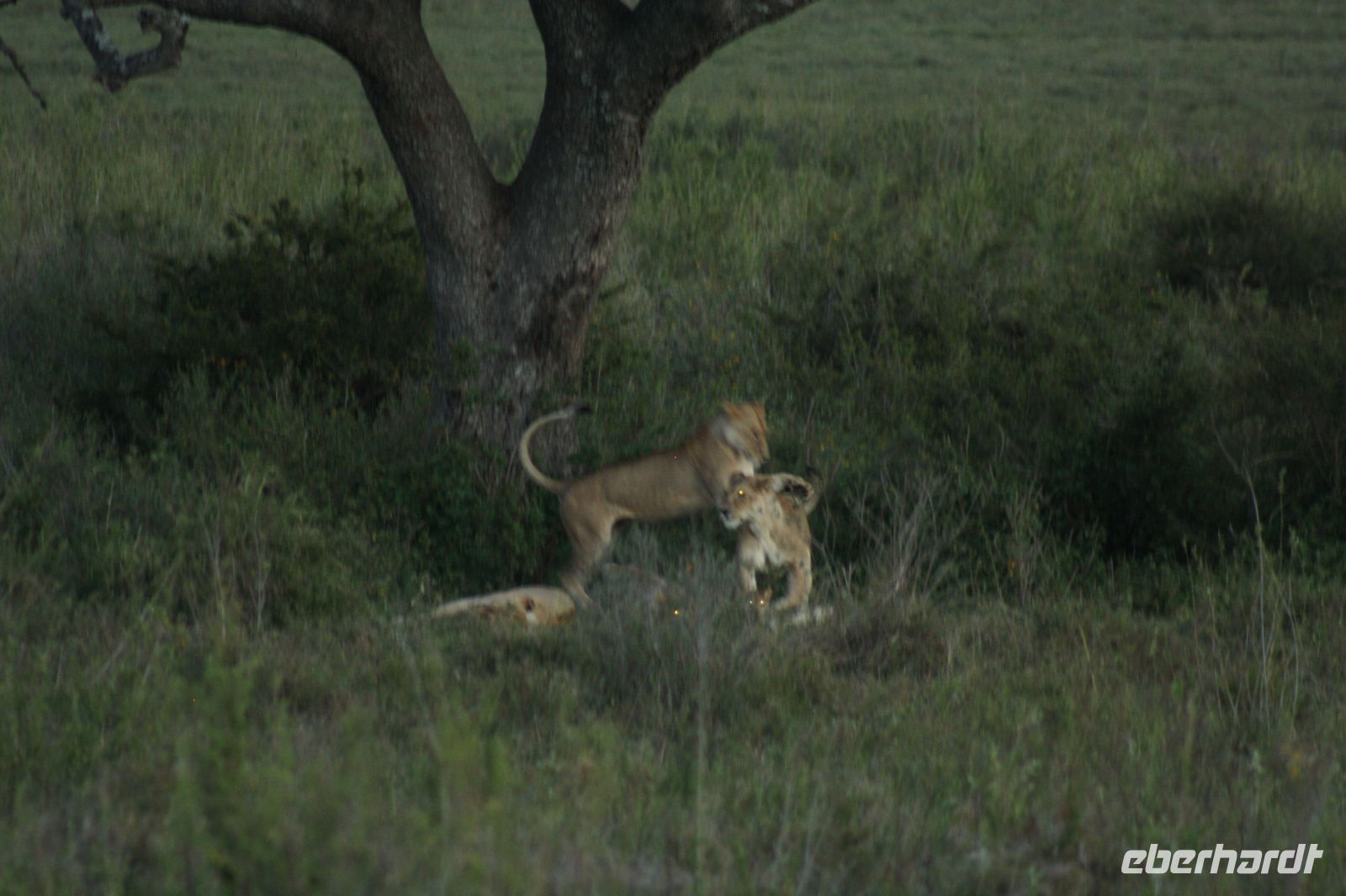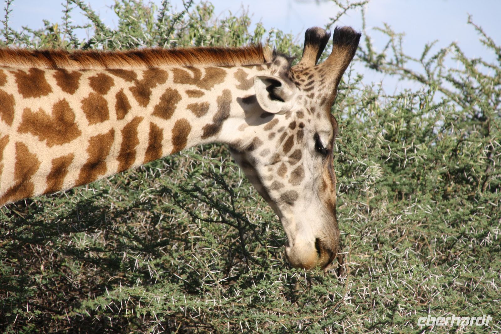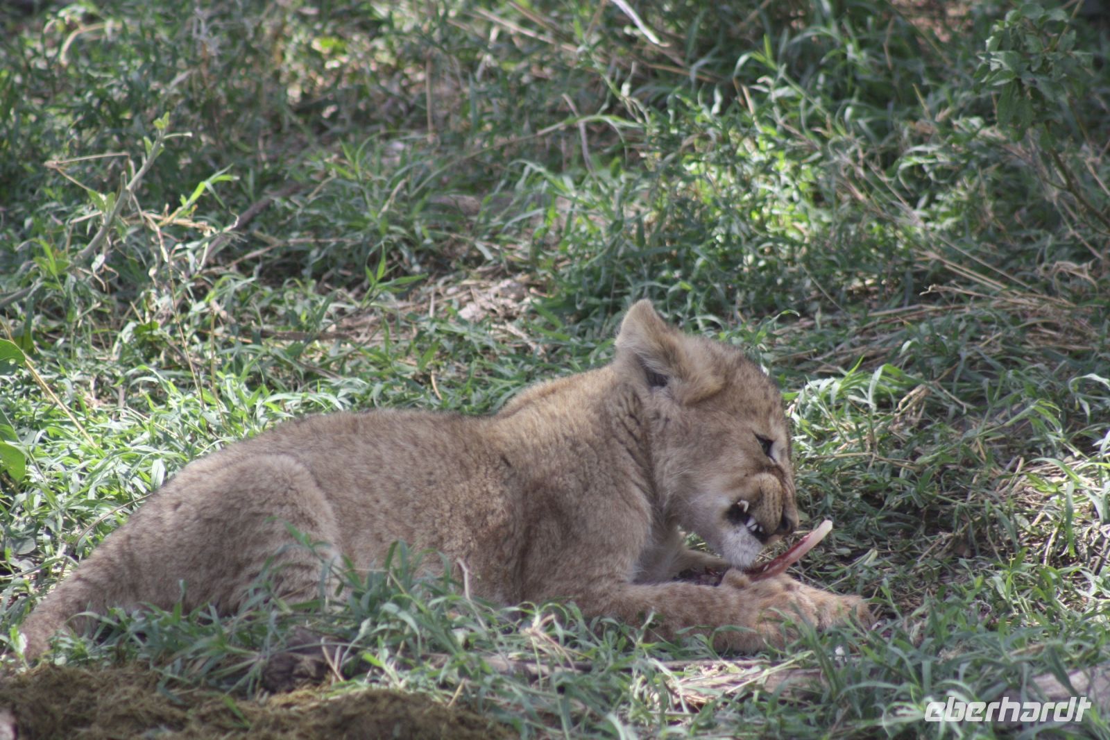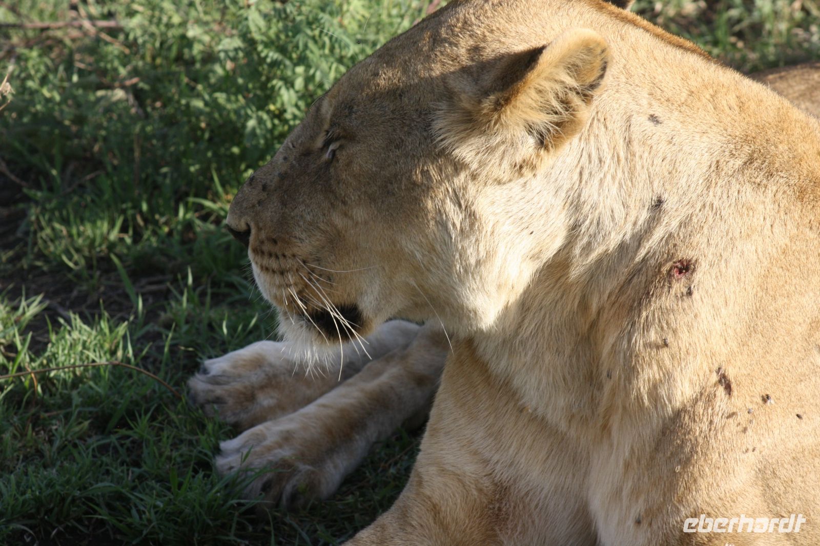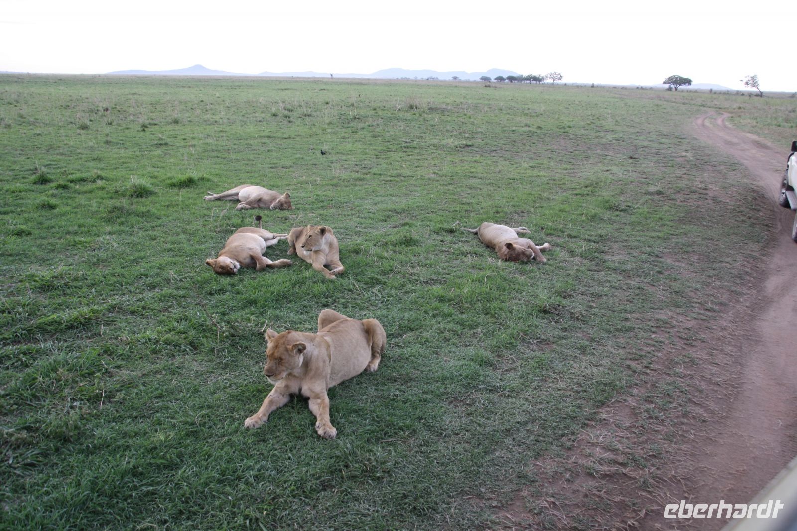 Auf der morgentlichen Pirsch sahen wir zunächst eine Herde Hyänen rumlungern. Neben Leierantilope, Grants Gazellen, Mangusten und Giraffen, erspähten wir auch einen Adler und Sandhühner. Zum Abschied erblicken wir einen männlichen und einen weiblichen Löwen und verabschiedeten uns von der Savanne. Insgesamt sind wir 1.393 km durch Tansania gefahren und konnten das traumhafte Land in vollen Zügen entdecken.