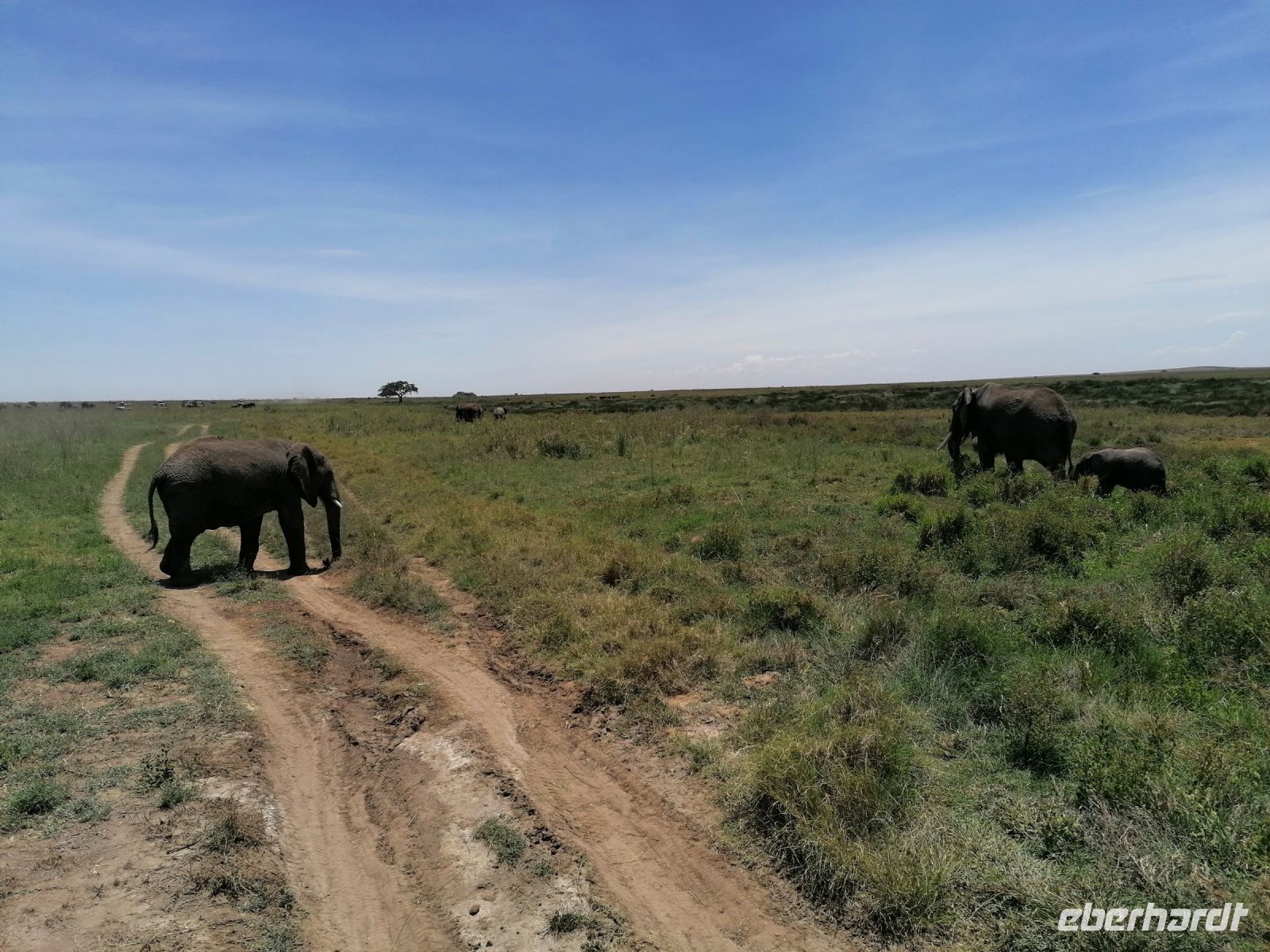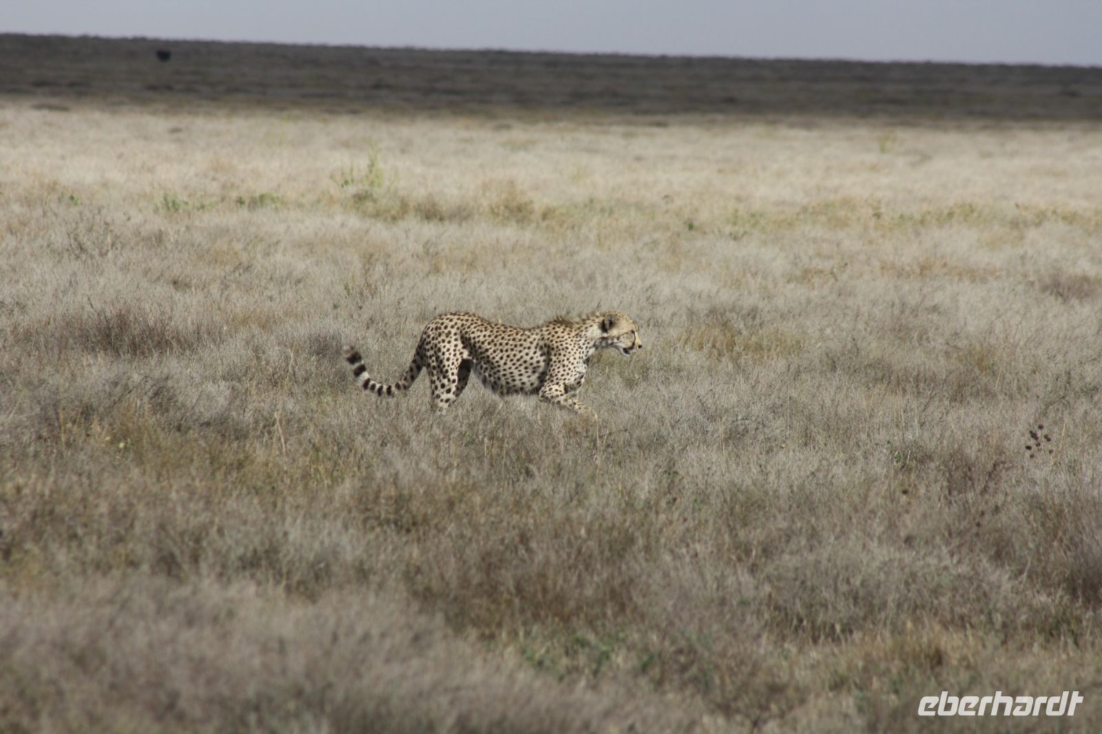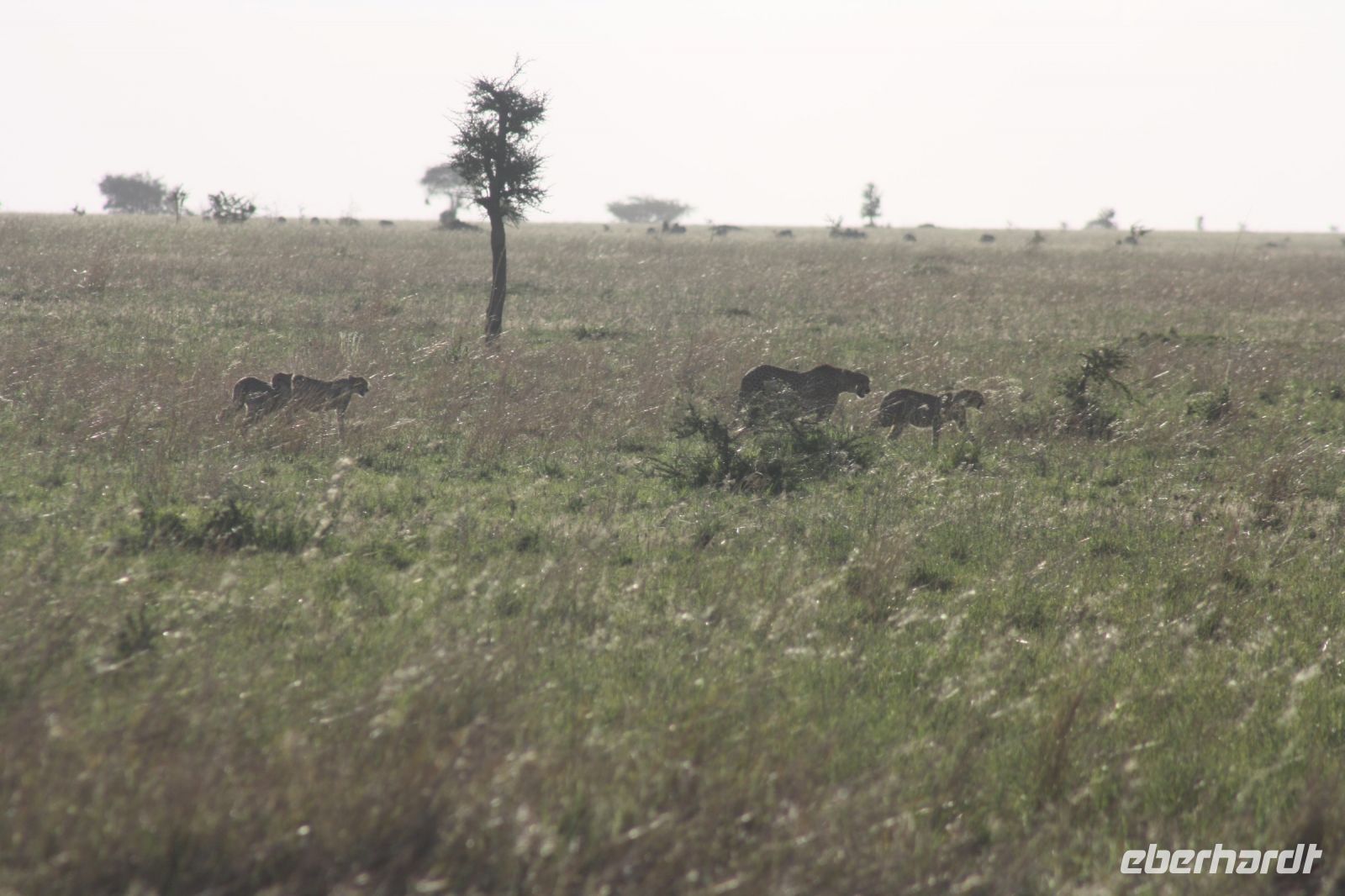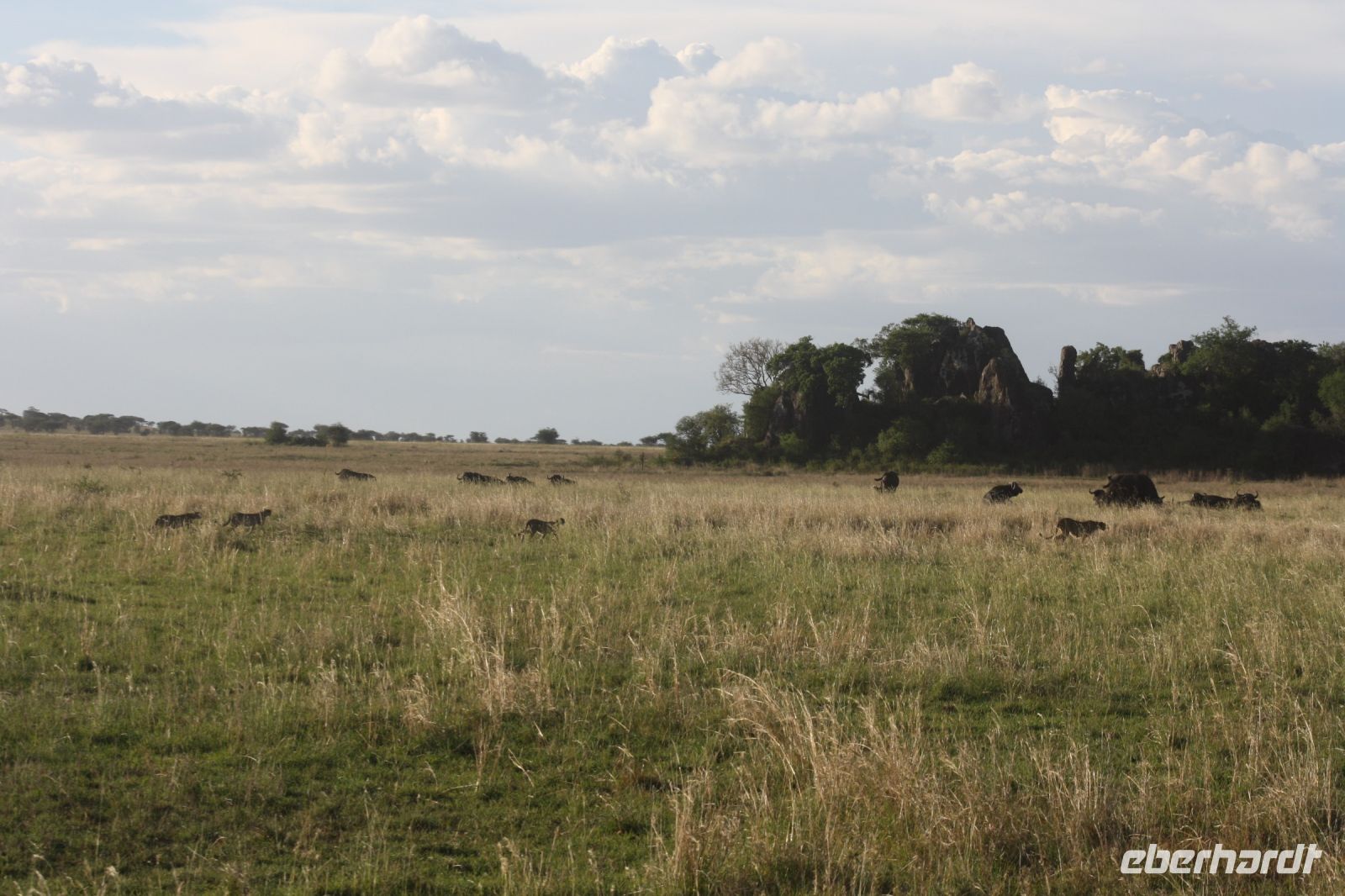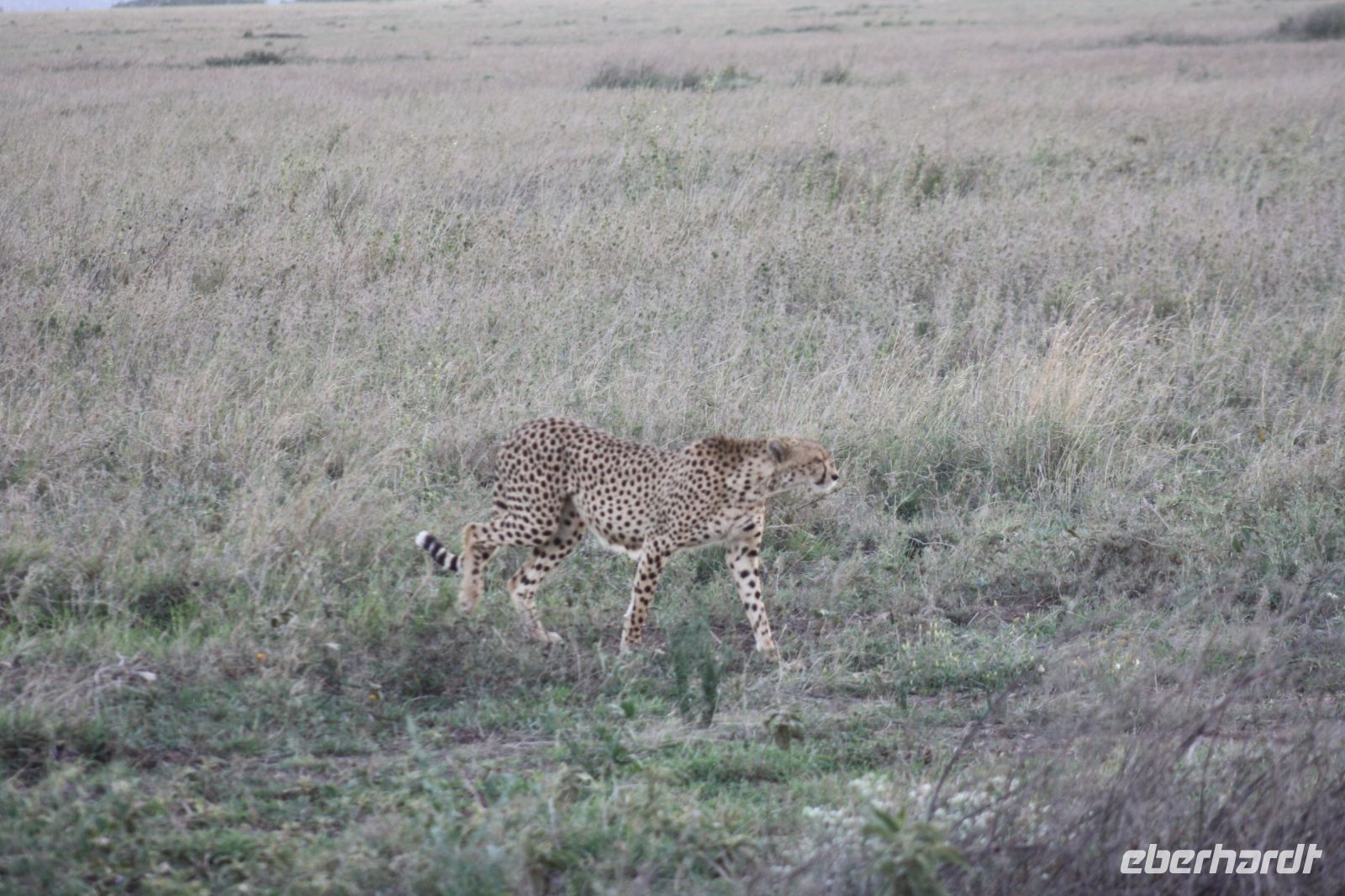 Heute starteten wir etwas früher los als sonst, denn wir wollten nochmal die Serengeti genießen. Am frühen Morgen konnten wir sofort einen Adler vor unsere Linse bekommen. In der Savanne war in der Morgenstunde viel los. Unterwegs trafen wir auf Elanantilope, Paviane mit Kleinkind, Büffel, Perlhühner, Zebras, Warzenschweine, sowie Thomson- und Kuhantilopen. Auch die Vogelwelt zeigte sich in Form eines Rothalsfrankolin, Sekretärs und einem Adler mit einem kleinen Baby im Nest. Plötzlich entdeckten wir einen nachtaktive Serval auf einem Feld. Die Wildkatze, die so groß wie eine Hauskatze ist, ist selten zu beobachten und wir konnten unser Glück kaum fassen. Immer weitere führte uns Karim durch die Serengeti. Unterwegs beobachteten wir einen randalierenden Elefanten, der vermutlich auf der Suche nach einem Weibchen. Nach einer einsamen Hyäne trafen wir auf vier Löwinnen, die mit ihren zwei Babys unter einem Baum spielten und schliefen. Auch einen Leoparden konnten man in der Ferne auf einem Baum erblicken. Unsere Mittagspause verbrachten wir in der Lodge, aßen gemeinsam zu Mittag und entspannten etwas im Zelt. Am Nachmittag machten wir uns auf eine weitere Pirsch. Eine Affenbande empfing uns auf einen Baum und drei Marabous begrüßten uns nur unweit von unserer Lodge. Am Wasserloch lagen drei Nilkrokodile in der Sonne, Giraffen schlenderten durch die Savanne und die Nilpferde spielten im Hippo-Pool. Als weiteren Tageshöhepunkt entdeckten wir eine Geparden Familie. Die Mutter spazierte mit ihren drei Jungen durch die Savanne. Plötzlich rannte die vier Leoparden durch die Autos hindurch und wir waren völlig überrascht von der plötzlichen Geschwindigkeit der Tiere. Trotz einer langen Wartezeit konnten wir wunderschöne Bilder machen und einen schönen Tagesabschluss gewinnen. Zurück in der Lodge stießen wir nochmal mit einem leckeren Kilimanjaro-Bier auf die schöne Reise und die letzte Nacht in der Serengeti an.