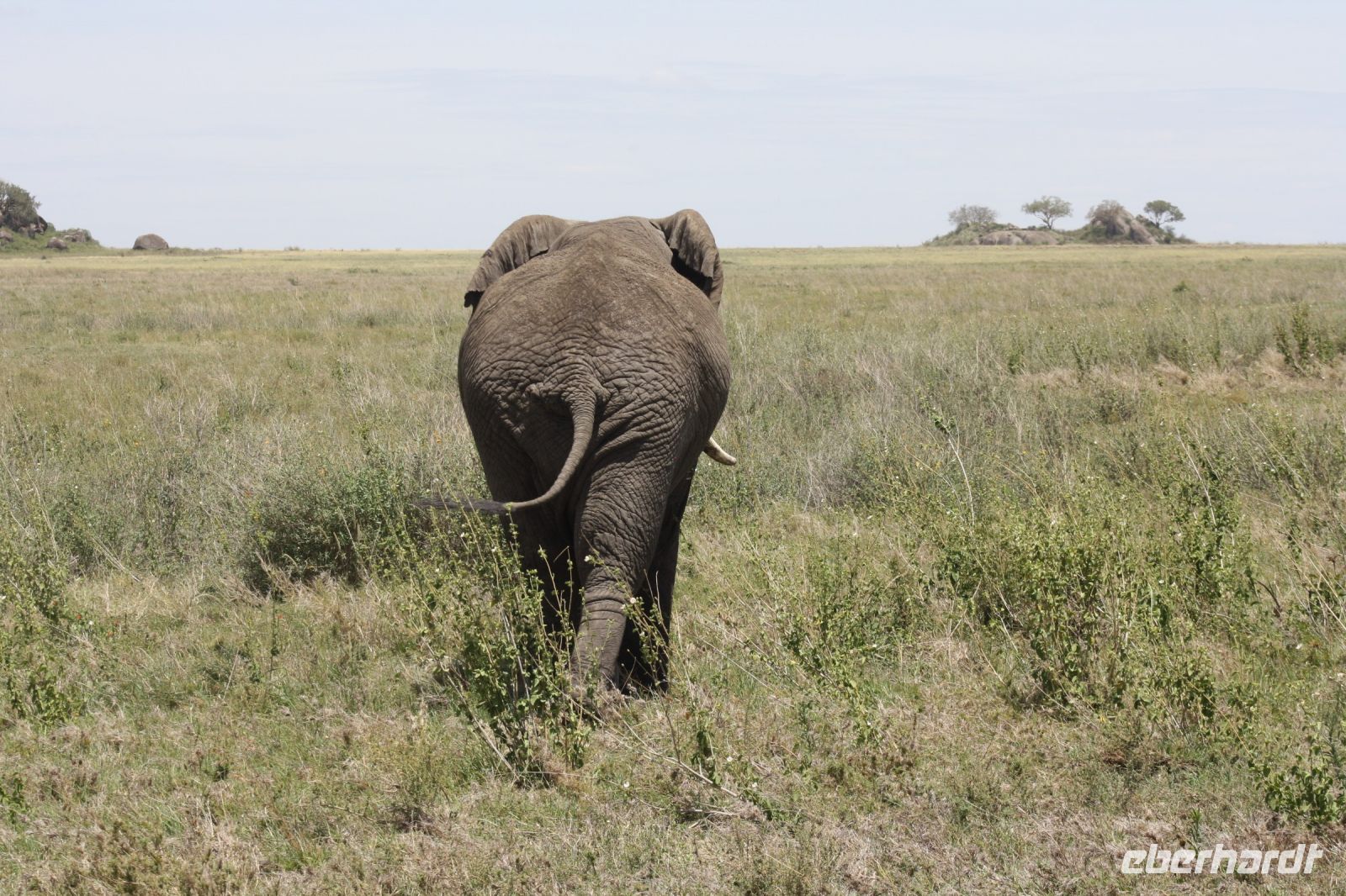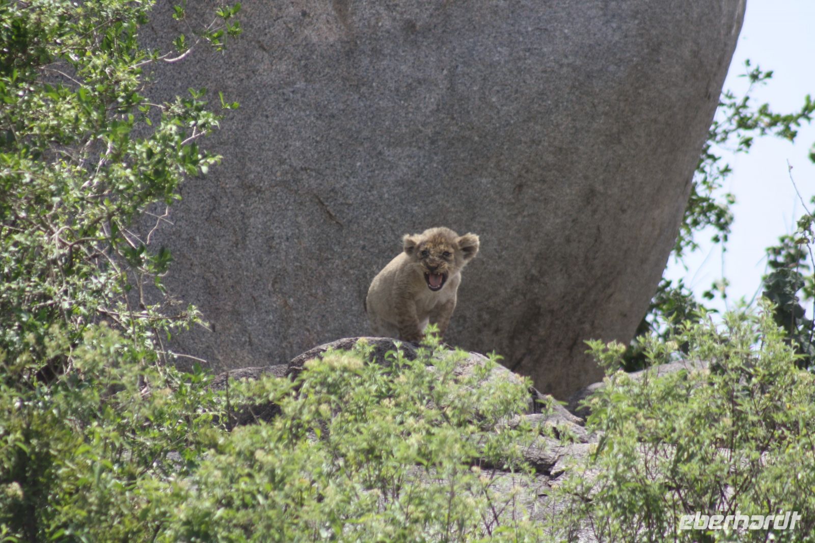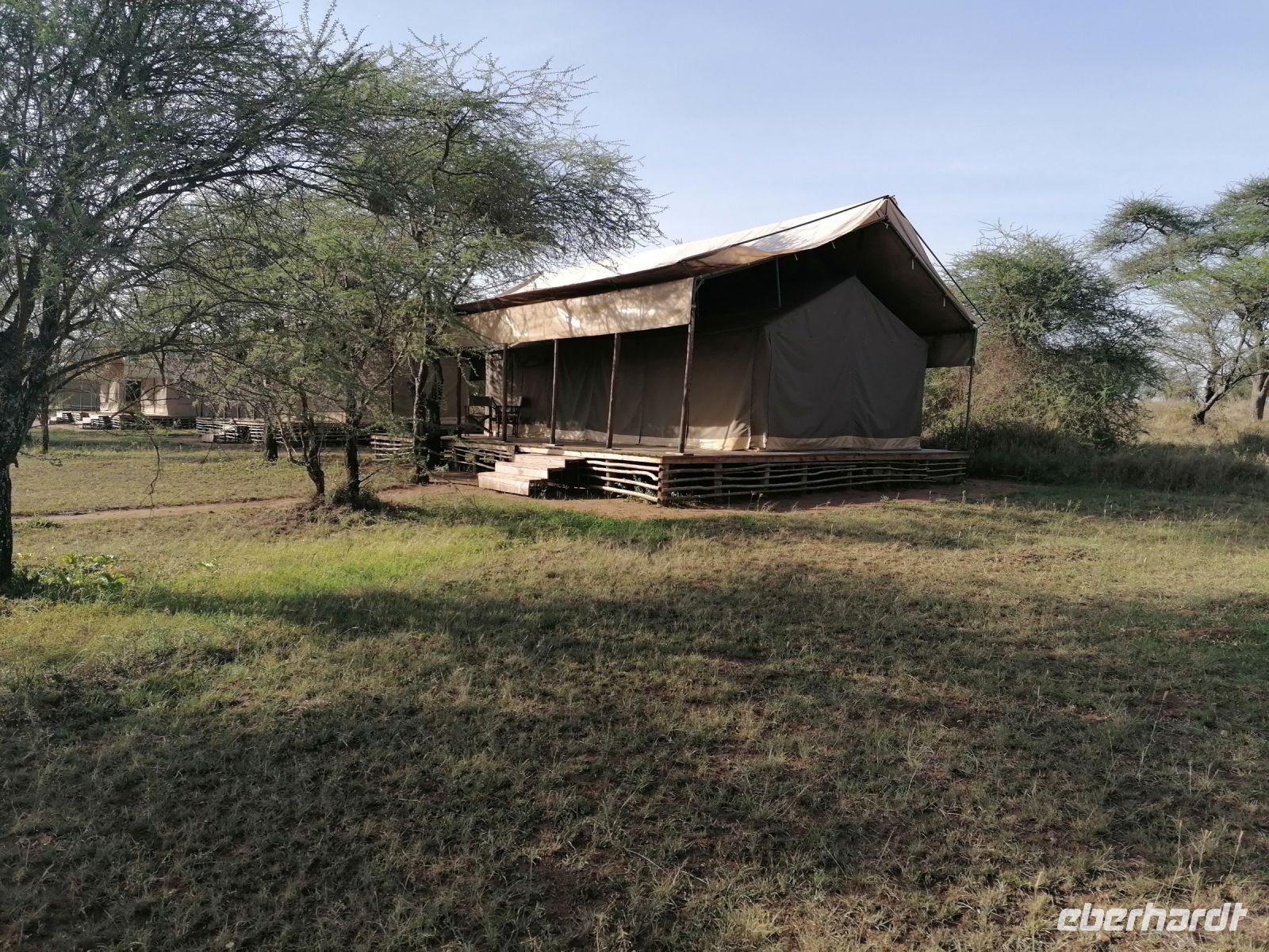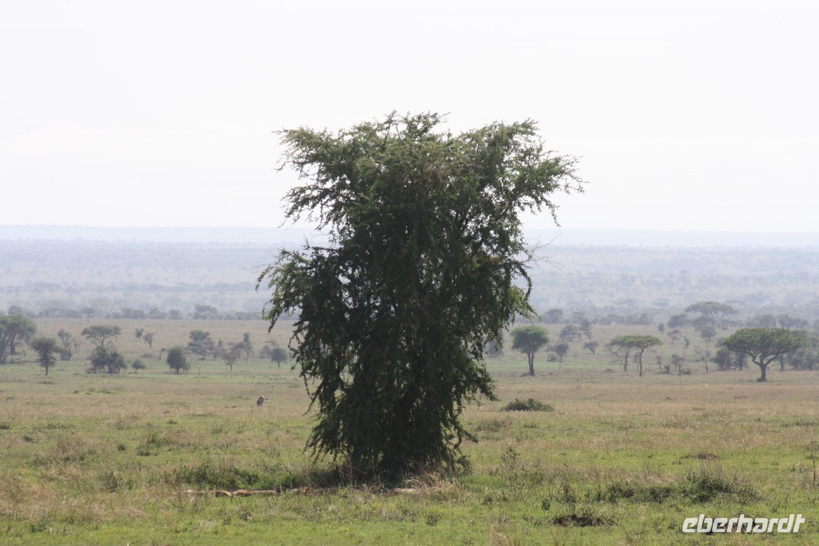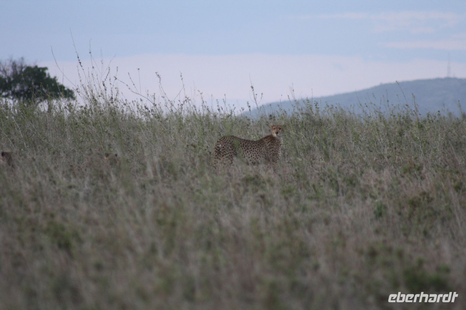 Heute starteten wir etwas früher los als sonst, denn wir wollten nochmal die Serengeti genießen. Am frühen Morgen konnten wir sofort einen Adler vor unsere Linse bekommen. In der Savanne war in der Morgenstunde viel los. Unterwegs trafen wir auf Elanantilope, Paviane mit Kleinkind, Büffel, Perlhühner, Zebras, Warzenschweine, sowie Thomson- und Kuhantilopen. Auch die Vogelwelt zeigte sich in Form eines Rothalsfrankolin, Sekretärs und einem Adler mit einem kleinen Baby im Nest. Plötzlich entdeckten wir einen nachtaktive Serval auf einem Feld. Die Wildkatze, die so groß wie eine Hauskatze ist, ist selten zu beobachten und wir konnten unser Glück kaum fassen. Immer weitere führte uns Karim durch die Serengeti. Unterwegs beobachteten wir einen randalierenden Elefanten, der vermutlich auf der Suche nach einem Weibchen. Nach einer einsamen Hyäne trafen wir auf vier Löwinnen, die mit ihren zwei Babys unter einem Baum spielten und schliefen. Auch einen Leoparden konnten man in der Ferne auf einem Baum erblicken. Unsere Mittagspause verbrachten wir in der Lodge, aßen gemeinsam zu Mittag und entspannten etwas im Zelt. Am Nachmittag machten wir uns auf eine weitere Pirsch. Eine Affenbande empfing uns auf einen Baum und drei Marabous begrüßten uns nur unweit von unserer Lodge. Am Wasserloch lagen drei Nilkrokodile in der Sonne, Giraffen schlenderten durch die Savanne und die Nilpferde spielten im Hippo-Pool. Als weiteren Tageshöhepunkt entdeckten wir eine Geparden Familie. Die Mutter spazierte mit ihren drei Jungen durch die Savanne. Plötzlich rannte die vier Leoparden durch die Autos hindurch und wir waren völlig überrascht von der plötzlichen Geschwindigkeit der Tiere. Trotz einer langen Wartezeit konnten wir wunderschöne Bilder machen und einen schönen Tagesabschluss gewinnen. Zurück in der Lodge stießen wir nochmal mit einem leckeren Kilimanjaro-Bier auf die schöne Reise und die letzte Nacht in der Serengeti an.