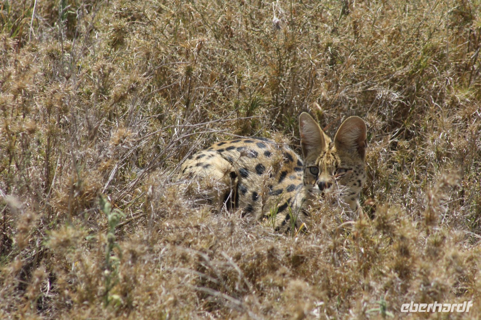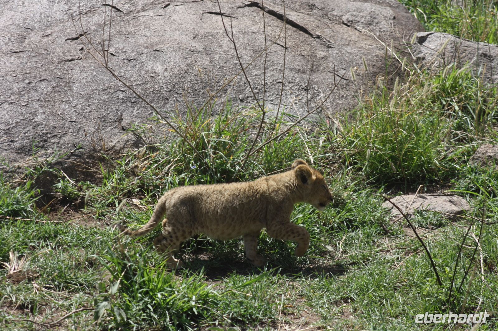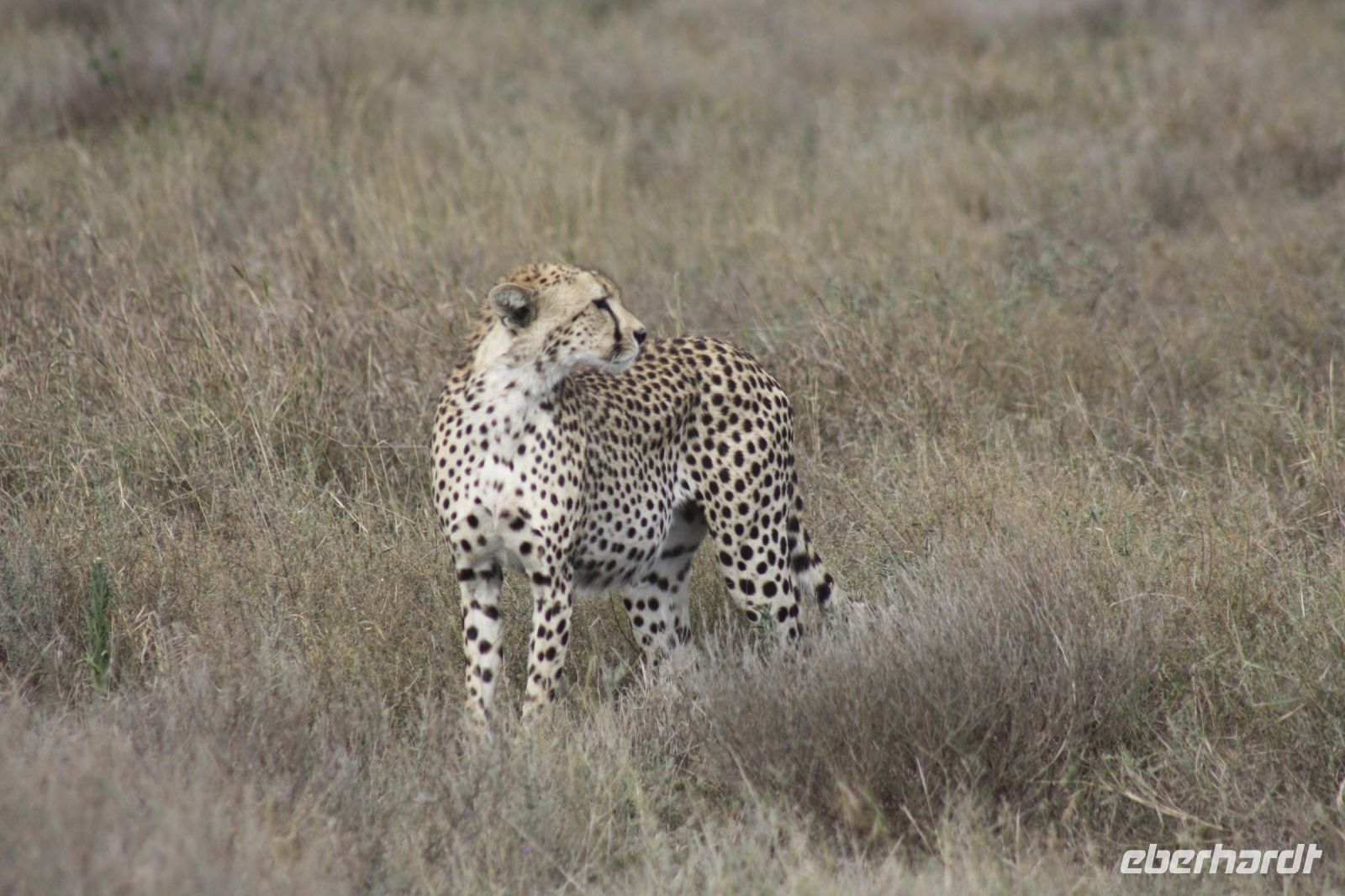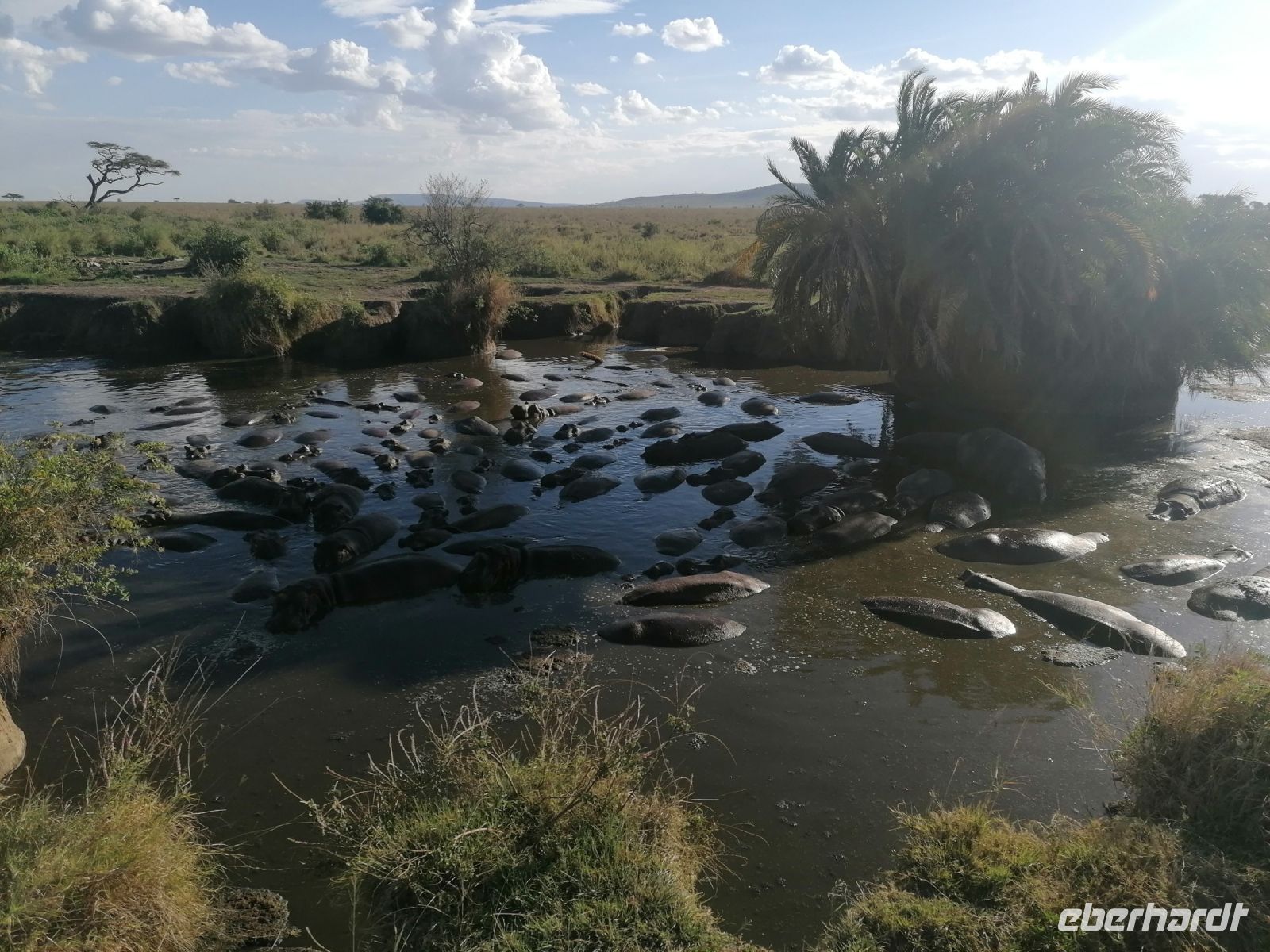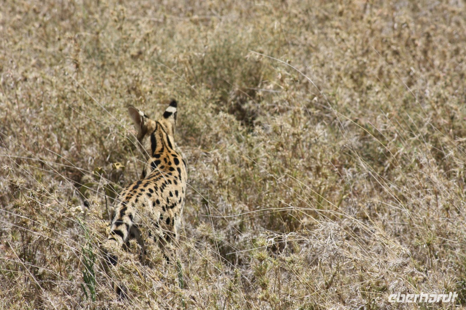 Heute starteten wir etwas früher los als sonst, denn wir wollten nochmal die Serengeti genießen. Am frühen Morgen konnten wir sofort einen Adler vor unsere Linse bekommen. In der Savanne war in der Morgenstunde viel los. Unterwegs trafen wir auf Elanantilope, Paviane mit Kleinkind, Büffel, Perlhühner, Zebras, Warzenschweine, sowie Thomson- und Kuhantilopen. Auch die Vogelwelt zeigte sich in Form eines Rothalsfrankolin, Sekretärs und einem Adler mit einem kleinen Baby im Nest. Plötzlich entdeckten wir einen nachtaktive Serval auf einem Feld. Die Wildkatze, die so groß wie eine Hauskatze ist, ist selten zu beobachten und wir konnten unser Glück kaum fassen. Immer weitere führte uns Karim durch die Serengeti. Unterwegs beobachteten wir einen randalierenden Elefanten, der vermutlich auf der Suche nach einem Weibchen. Nach einer einsamen Hyäne trafen wir auf vier Löwinnen, die mit ihren zwei Babys unter einem Baum spielten und schliefen. Auch einen Leoparden konnten man in der Ferne auf einem Baum erblicken. Unsere Mittagspause verbrachten wir in der Lodge, aßen gemeinsam zu Mittag und entspannten etwas im Zelt. Am Nachmittag machten wir uns auf eine weitere Pirsch. Eine Affenbande empfing uns auf einen Baum und drei Marabous begrüßten uns nur unweit von unserer Lodge. Am Wasserloch lagen drei Nilkrokodile in der Sonne, Giraffen schlenderten durch die Savanne und die Nilpferde spielten im Hippo-Pool. Als weiteren Tageshöhepunkt entdeckten wir eine Geparden Familie. Die Mutter spazierte mit ihren drei Jungen durch die Savanne. Plötzlich rannte die vier Leoparden durch die Autos hindurch und wir waren völlig überrascht von der plötzlichen Geschwindigkeit der Tiere. Trotz einer langen Wartezeit konnten wir wunderschöne Bilder machen und einen schönen Tagesabschluss gewinnen. Zurück in der Lodge stießen wir nochmal mit einem leckeren Kilimanjaro-Bier auf die schöne Reise und die letzte Nacht in der Serengeti an.