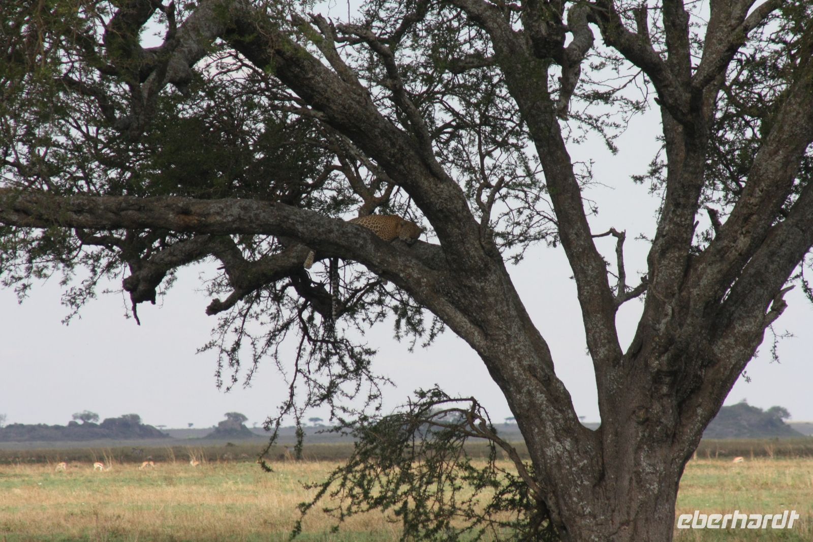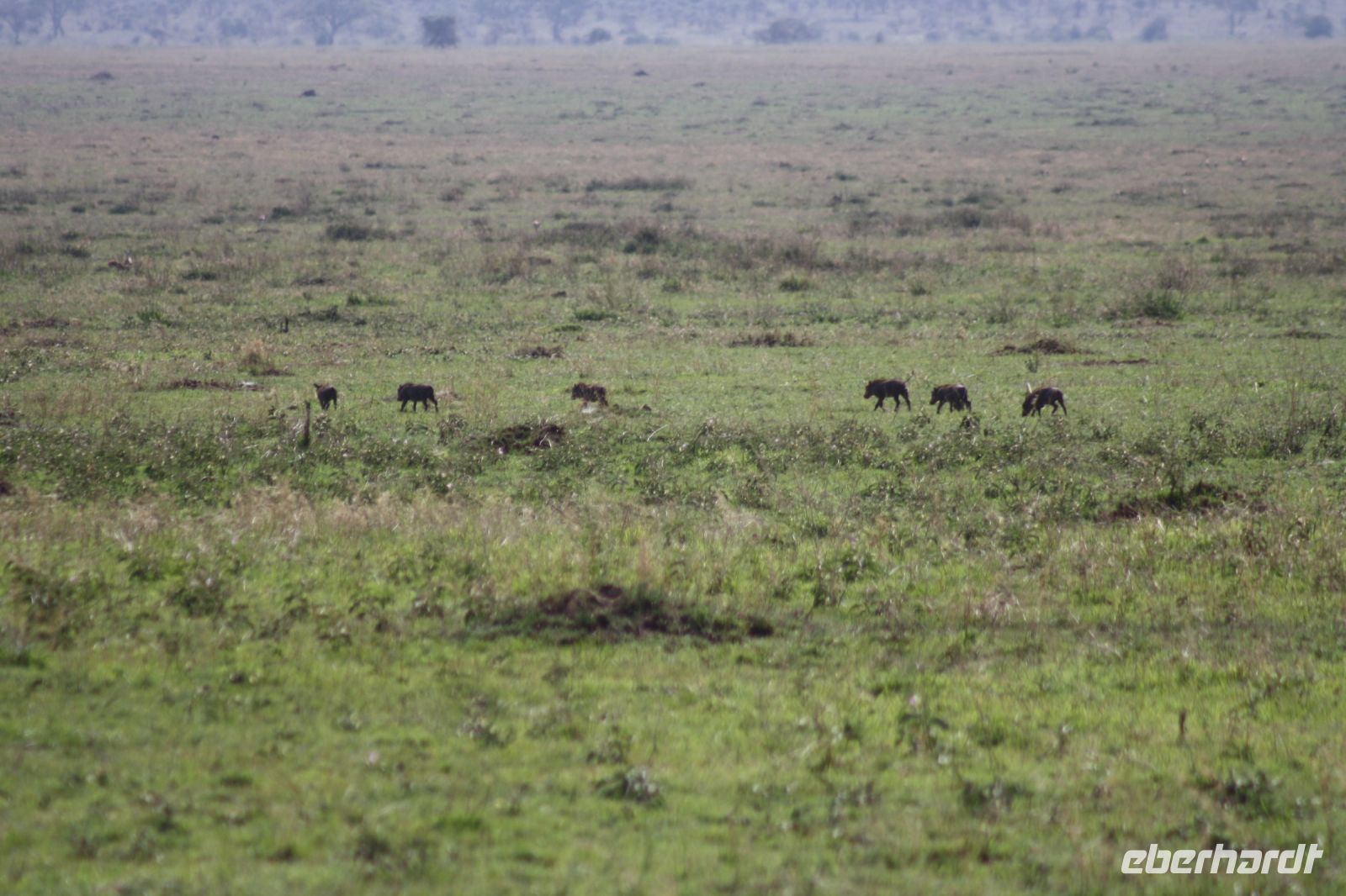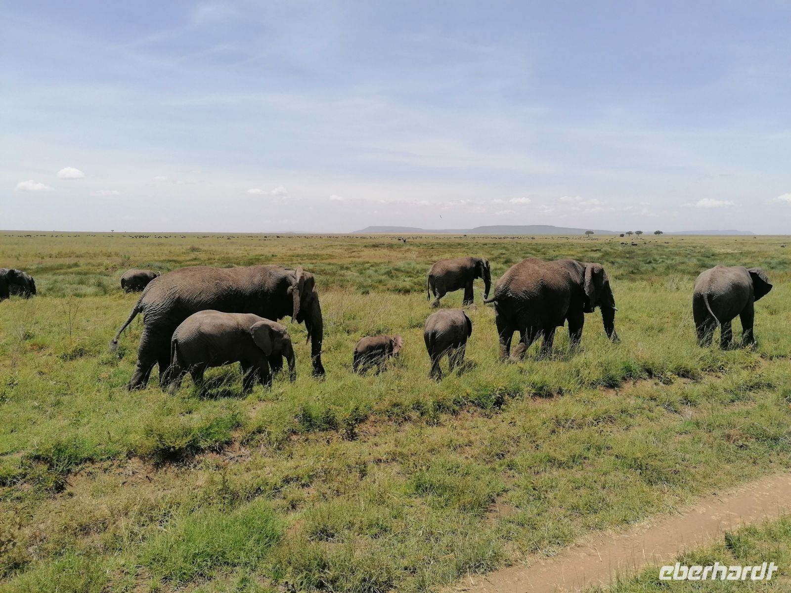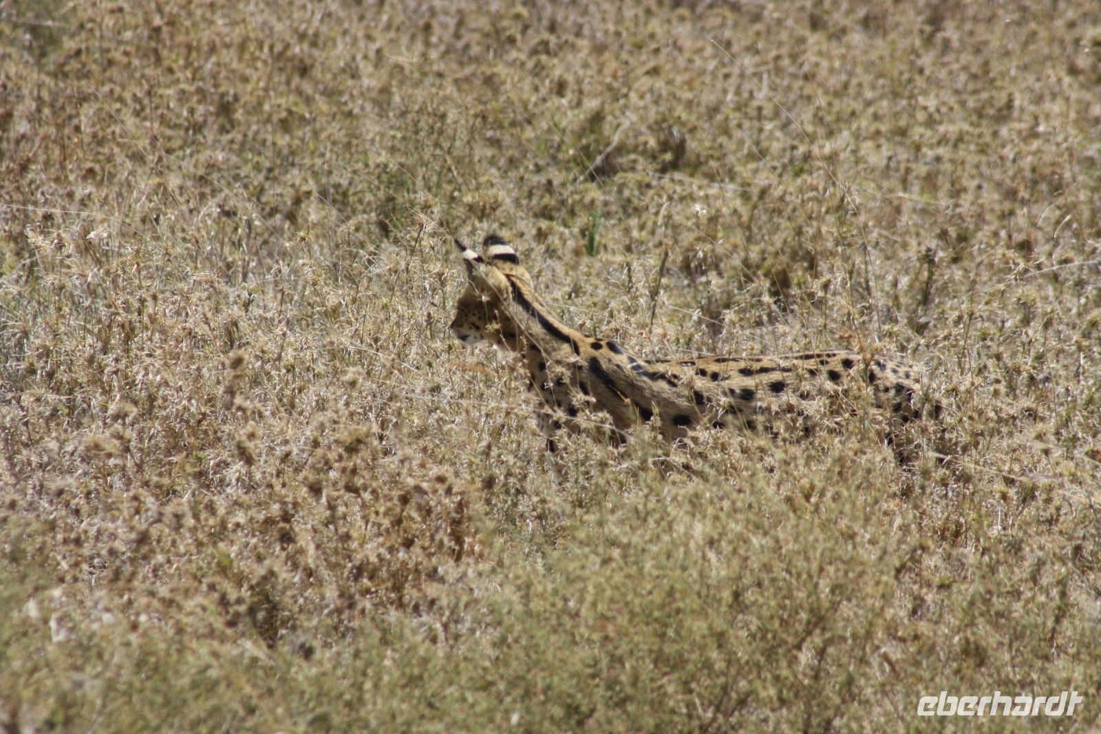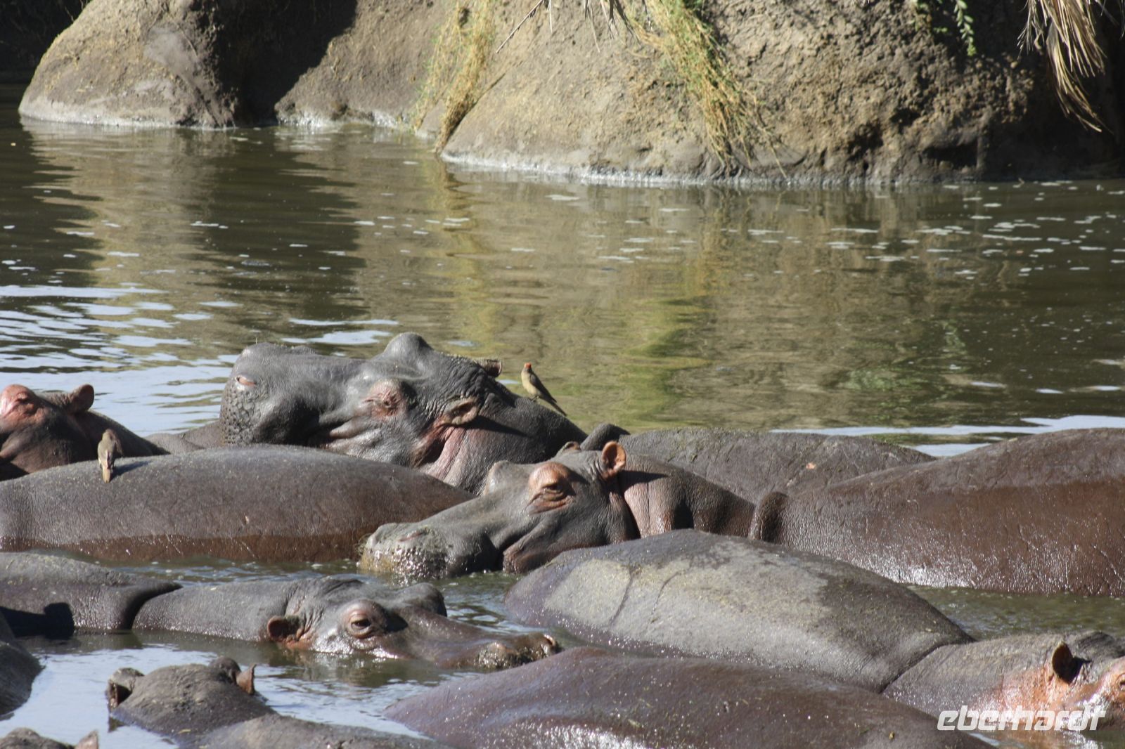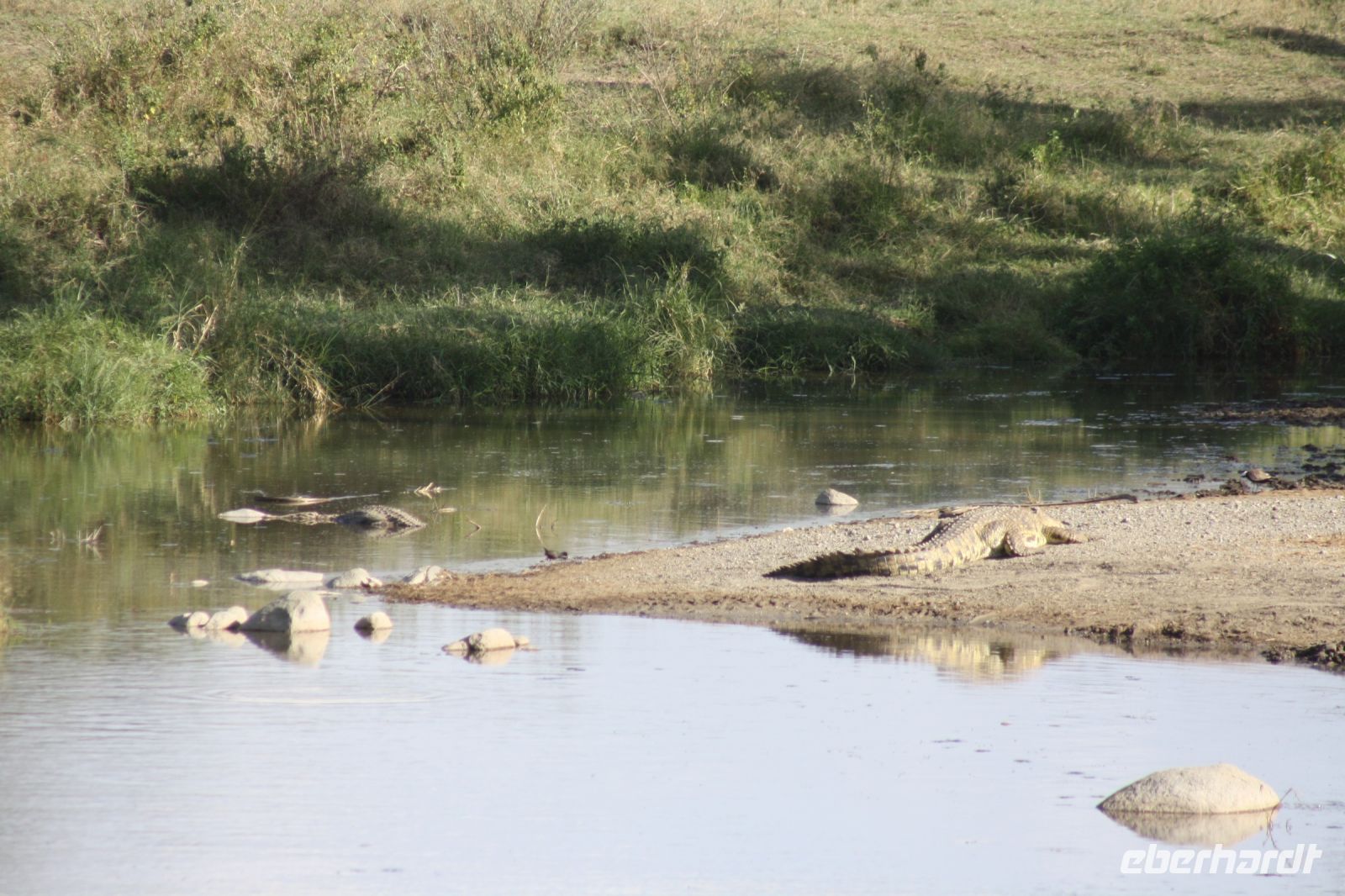 Heute starteten wir etwas früher los als sonst, denn wir wollten nochmal die Serengeti genießen. Am frühen Morgen konnten wir sofort einen Adler vor unsere Linse bekommen. In der Savanne war in der Morgenstunde viel los. Unterwegs trafen wir auf Elanantilope, Paviane mit Kleinkind, Büffel, Perlhühner, Zebras, Warzenschweine, sowie Thomson- und Kuhantilopen. Auch die Vogelwelt zeigte sich in Form eines Rothalsfrankolin, Sekretärs und einem Adler mit einem kleinen Baby im Nest. Plötzlich entdeckten wir einen nachtaktive Serval auf einem Feld. Die Wildkatze, die so groß wie eine Hauskatze ist, ist selten zu beobachten und wir konnten unser Glück kaum fassen. Immer weitere führte uns Karim durch die Serengeti. Unterwegs beobachteten wir einen randalierenden Elefanten, der vermutlich auf der Suche nach einem Weibchen. Nach einer einsamen Hyäne trafen wir auf vier Löwinnen, die mit ihren zwei Babys unter einem Baum spielten und schliefen. Auch einen Leoparden konnten man in der Ferne auf einem Baum erblicken. Unsere Mittagspause verbrachten wir in der Lodge, aßen gemeinsam zu Mittag und entspannten etwas im Zelt. Am Nachmittag machten wir uns auf eine weitere Pirsch. Eine Affenbande empfing uns auf einen Baum und drei Marabous begrüßten uns nur unweit von unserer Lodge. Am Wasserloch lagen drei Nilkrokodile in der Sonne, Giraffen schlenderten durch die Savanne und die Nilpferde spielten im Hippo-Pool. Als weiteren Tageshöhepunkt entdeckten wir eine Geparden Familie. Die Mutter spazierte mit ihren drei Jungen durch die Savanne. Plötzlich rannte die vier Leoparden durch die Autos hindurch und wir waren völlig überrascht von der plötzlichen Geschwindigkeit der Tiere. Trotz einer langen Wartezeit konnten wir wunderschöne Bilder machen und einen schönen Tagesabschluss gewinnen. Zurück in der Lodge stießen wir nochmal mit einem leckeren Kilimanjaro-Bier auf die schöne Reise und die letzte Nacht in der Serengeti an.