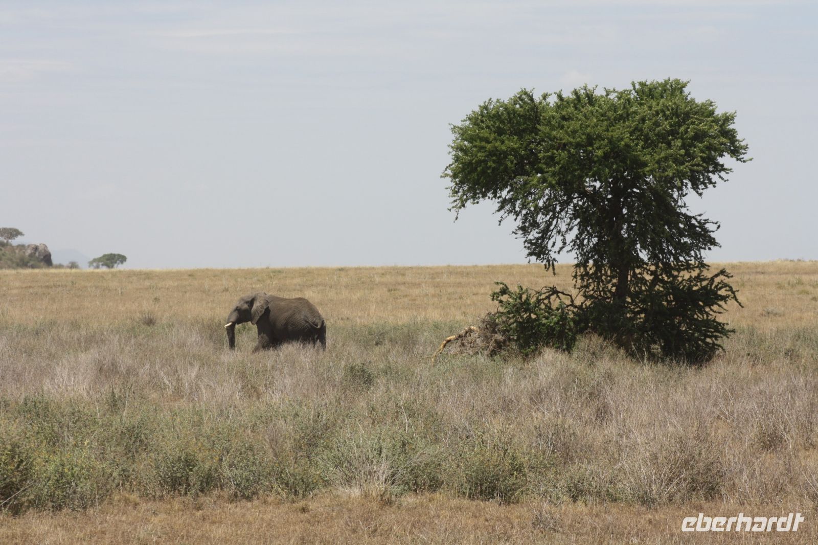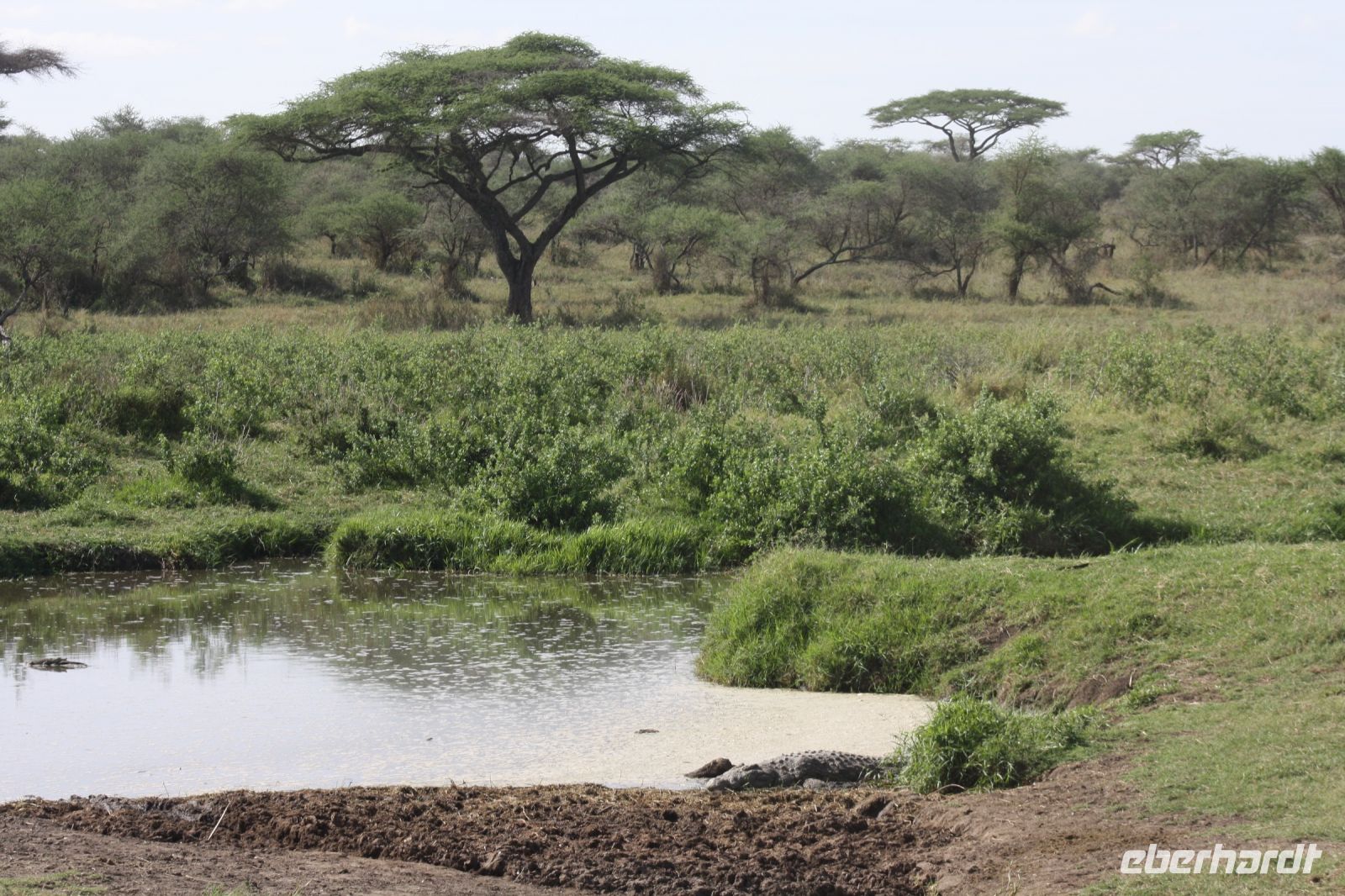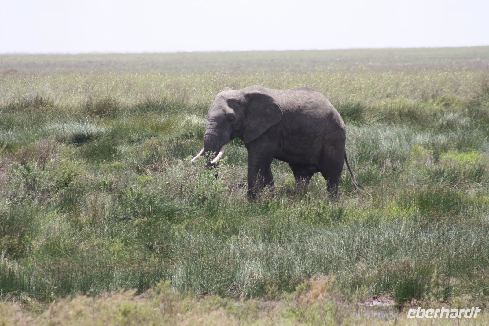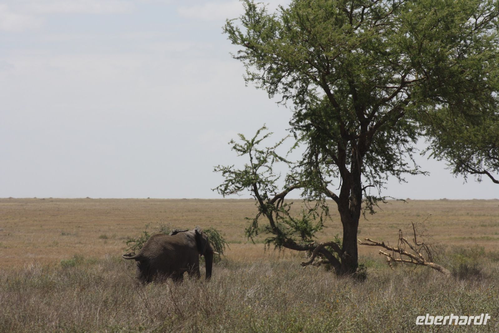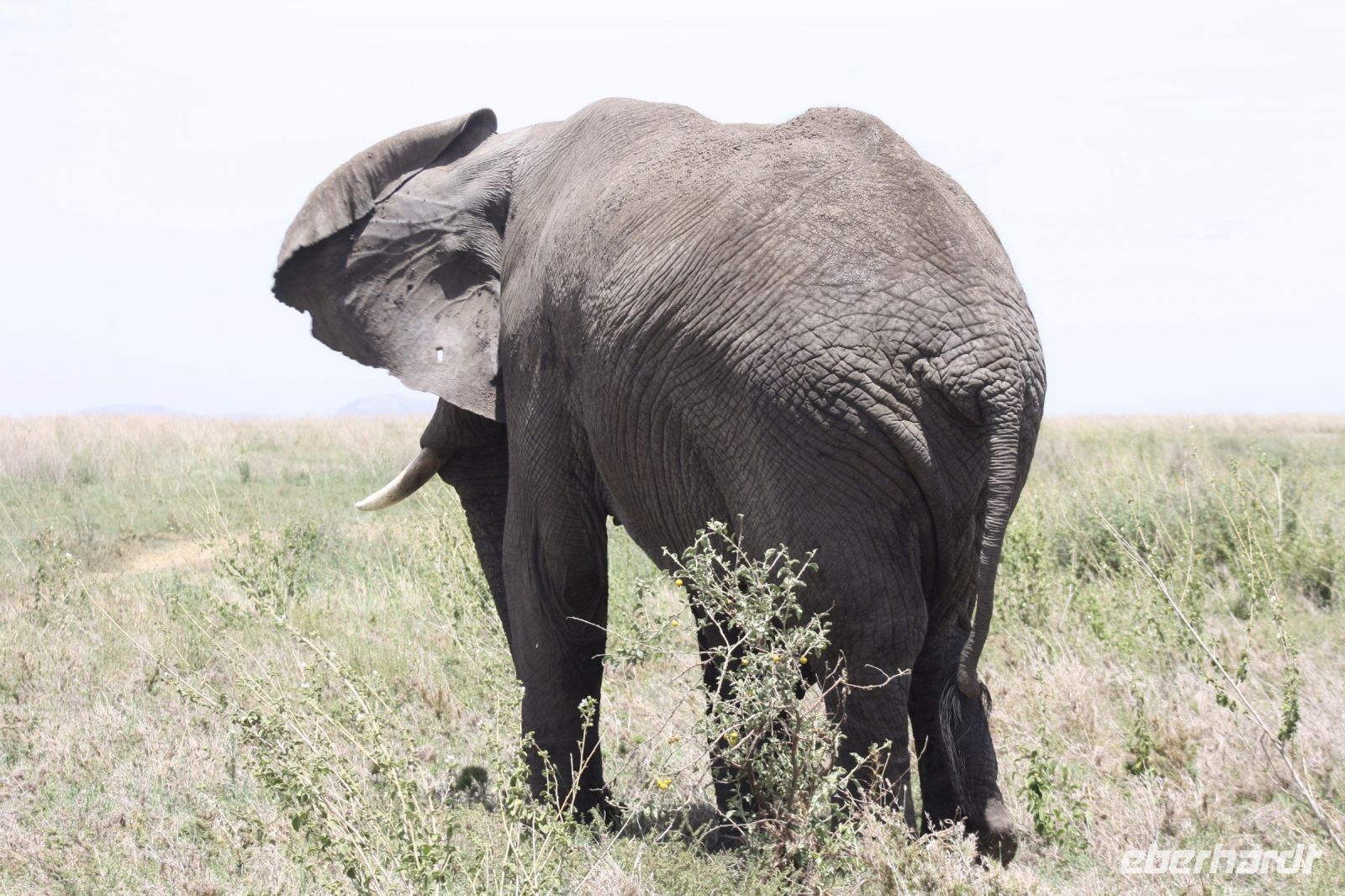 Heute starteten wir etwas früher los als sonst, denn wir wollten nochmal die Serengeti genießen. Am frühen Morgen konnten wir sofort einen Adler vor unsere Linse bekommen. In der Savanne war in der Morgenstunde viel los. Unterwegs trafen wir auf Elanantilope, Paviane mit Kleinkind, Büffel, Perlhühner, Zebras, Warzenschweine, sowie Thomson- und Kuhantilopen. Auch die Vogelwelt zeigte sich in Form eines Rothalsfrankolin, Sekretärs und einem Adler mit einem kleinen Baby im Nest. Plötzlich entdeckten wir einen nachtaktive Serval auf einem Feld. Die Wildkatze, die so groß wie eine Hauskatze ist, ist selten zu beobachten und wir konnten unser Glück kaum fassen. Immer weitere führte uns Karim durch die Serengeti. Unterwegs beobachteten wir einen randalierenden Elefanten, der vermutlich auf der Suche nach einem Weibchen. Nach einer einsamen Hyäne trafen wir auf vier Löwinnen, die mit ihren zwei Babys unter einem Baum spielten und schliefen. Auch einen Leoparden konnten man in der Ferne auf einem Baum erblicken. Unsere Mittagspause verbrachten wir in der Lodge, aßen gemeinsam zu Mittag und entspannten etwas im Zelt. Am Nachmittag machten wir uns auf eine weitere Pirsch. Eine Affenbande empfing uns auf einen Baum und drei Marabous begrüßten uns nur unweit von unserer Lodge. Am Wasserloch lagen drei Nilkrokodile in der Sonne, Giraffen schlenderten durch die Savanne und die Nilpferde spielten im Hippo-Pool. Als weiteren Tageshöhepunkt entdeckten wir eine Geparden Familie. Die Mutter spazierte mit ihren drei Jungen durch die Savanne. Plötzlich rannte die vier Leoparden durch die Autos hindurch und wir waren völlig überrascht von der plötzlichen Geschwindigkeit der Tiere. Trotz einer langen Wartezeit konnten wir wunderschöne Bilder machen und einen schönen Tagesabschluss gewinnen. Zurück in der Lodge stießen wir nochmal mit einem leckeren Kilimanjaro-Bier auf die schöne Reise und die letzte Nacht in der Serengeti an.