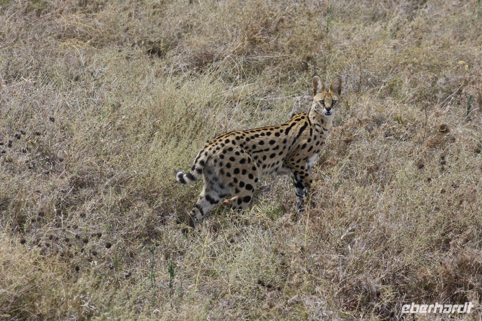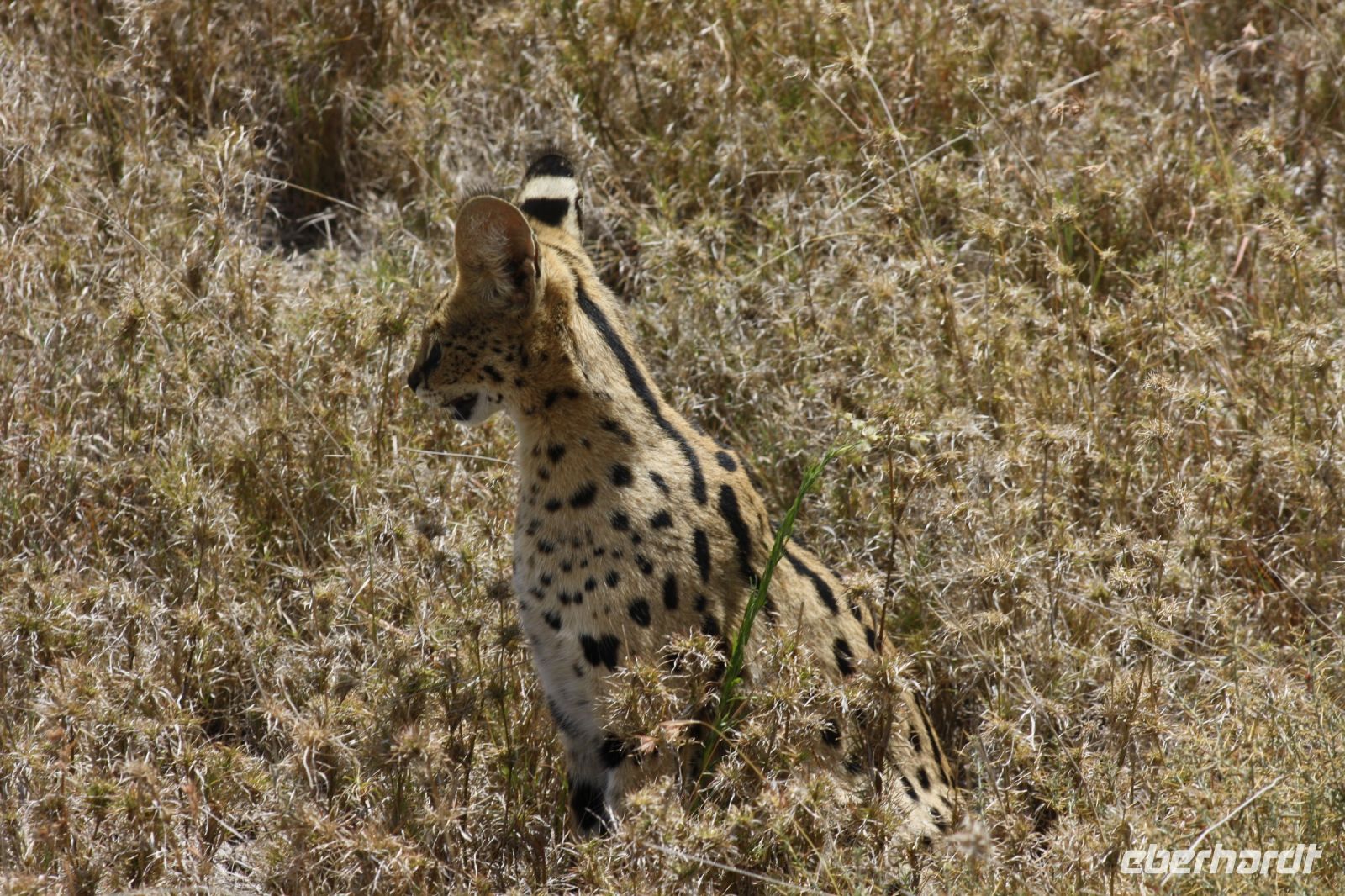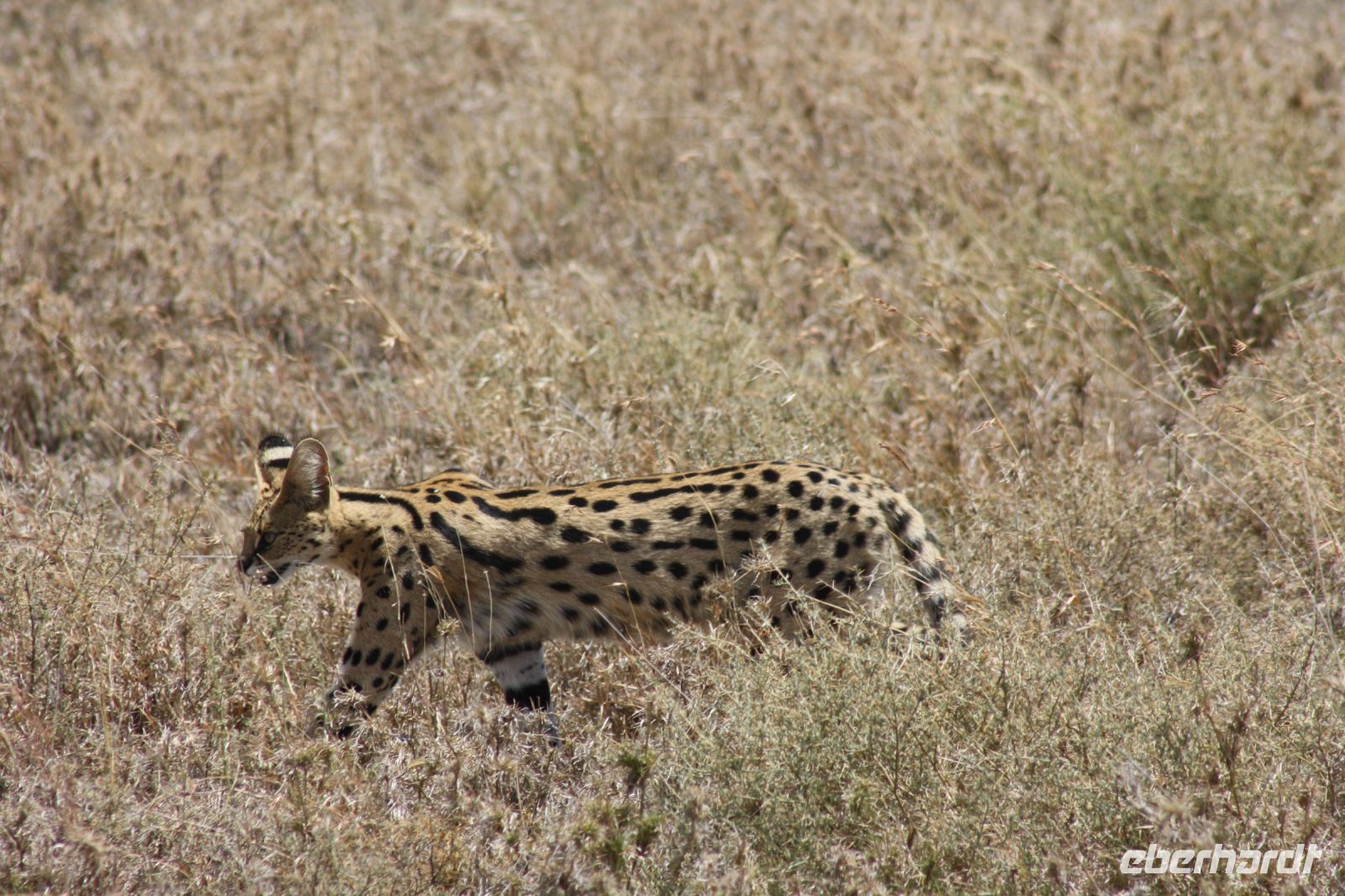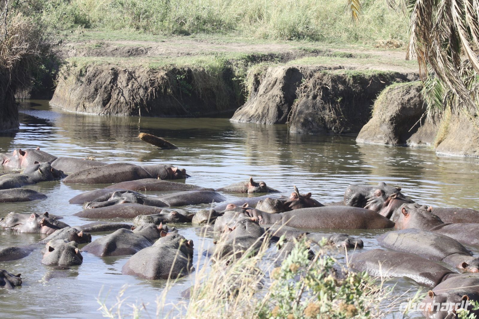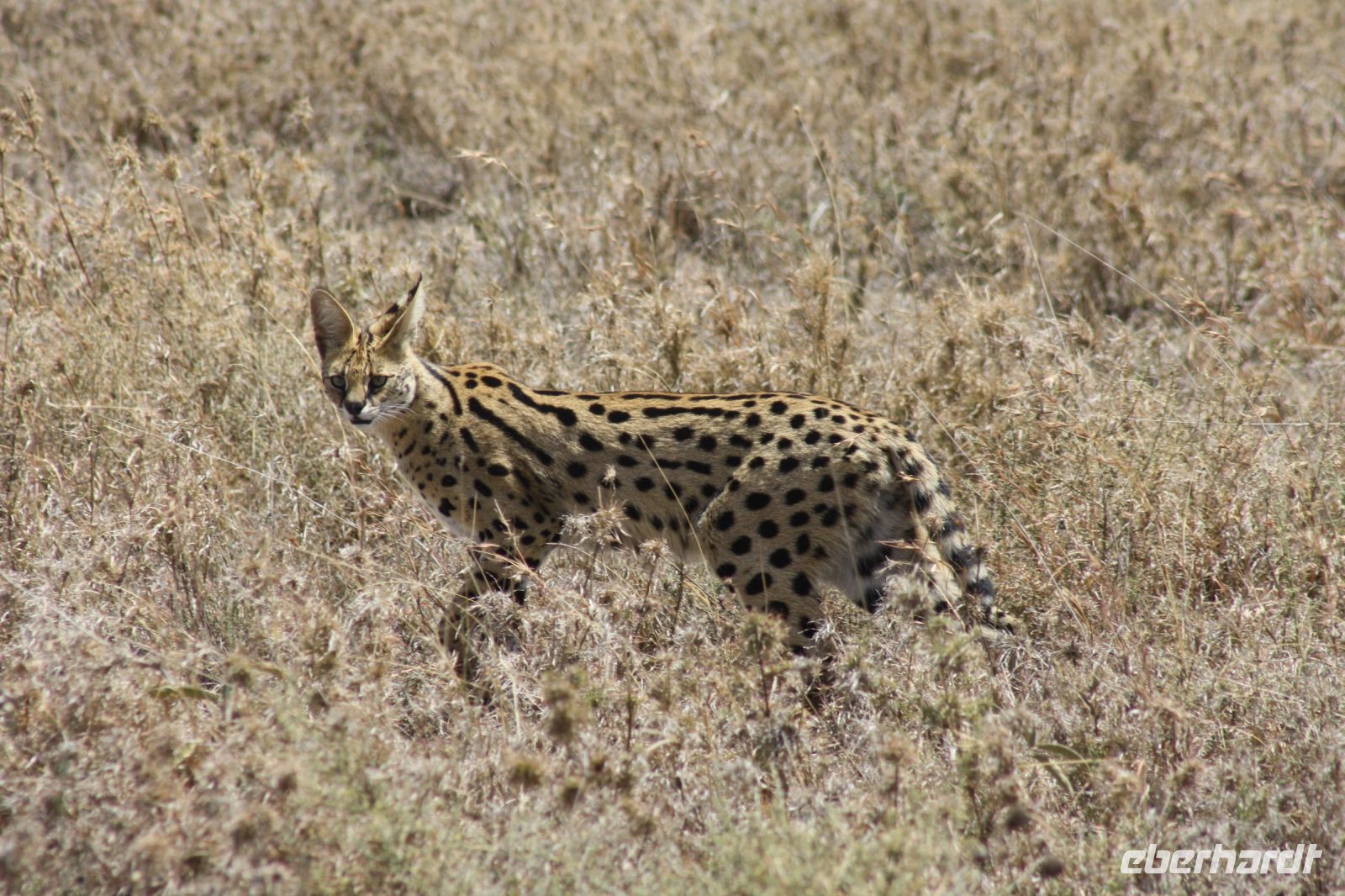 Heute starteten wir etwas früher los als sonst, denn wir wollten nochmal die Serengeti genießen. Am frühen Morgen konnten wir sofort einen Adler vor unsere Linse bekommen. In der Savanne war in der Morgenstunde viel los. Unterwegs trafen wir auf Elanantilope, Paviane mit Kleinkind, Büffel, Perlhühner, Zebras, Warzenschweine, sowie Thomson- und Kuhantilopen. Auch die Vogelwelt zeigte sich in Form eines Rothalsfrankolin, Sekretärs und einem Adler mit einem kleinen Baby im Nest. Plötzlich entdeckten wir einen nachtaktive Serval auf einem Feld. Die Wildkatze, die so groß wie eine Hauskatze ist, ist selten zu beobachten und wir konnten unser Glück kaum fassen. Immer weitere führte uns Karim durch die Serengeti. Unterwegs beobachteten wir einen randalierenden Elefanten, der vermutlich auf der Suche nach einem Weibchen. Nach einer einsamen Hyäne trafen wir auf vier Löwinnen, die mit ihren zwei Babys unter einem Baum spielten und schliefen. Auch einen Leoparden konnten man in der Ferne auf einem Baum erblicken. Unsere Mittagspause verbrachten wir in der Lodge, aßen gemeinsam zu Mittag und entspannten etwas im Zelt. Am Nachmittag machten wir uns auf eine weitere Pirsch. Eine Affenbande empfing uns auf einen Baum und drei Marabous begrüßten uns nur unweit von unserer Lodge. Am Wasserloch lagen drei Nilkrokodile in der Sonne, Giraffen schlenderten durch die Savanne und die Nilpferde spielten im Hippo-Pool. Als weiteren Tageshöhepunkt entdeckten wir eine Geparden Familie. Die Mutter spazierte mit ihren drei Jungen durch die Savanne. Plötzlich rannte die vier Leoparden durch die Autos hindurch und wir waren völlig überrascht von der plötzlichen Geschwindigkeit der Tiere. Trotz einer langen Wartezeit konnten wir wunderschöne Bilder machen und einen schönen Tagesabschluss gewinnen. Zurück in der Lodge stießen wir nochmal mit einem leckeren Kilimanjaro-Bier auf die schöne Reise und die letzte Nacht in der Serengeti an.