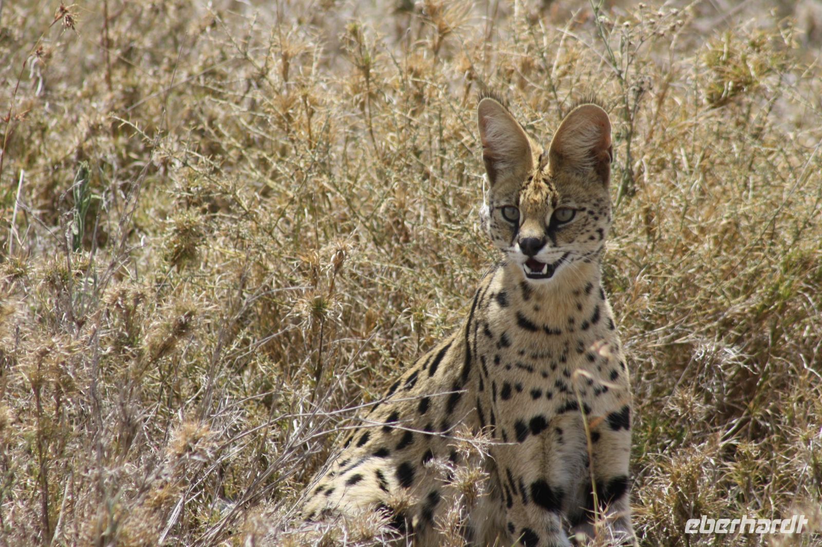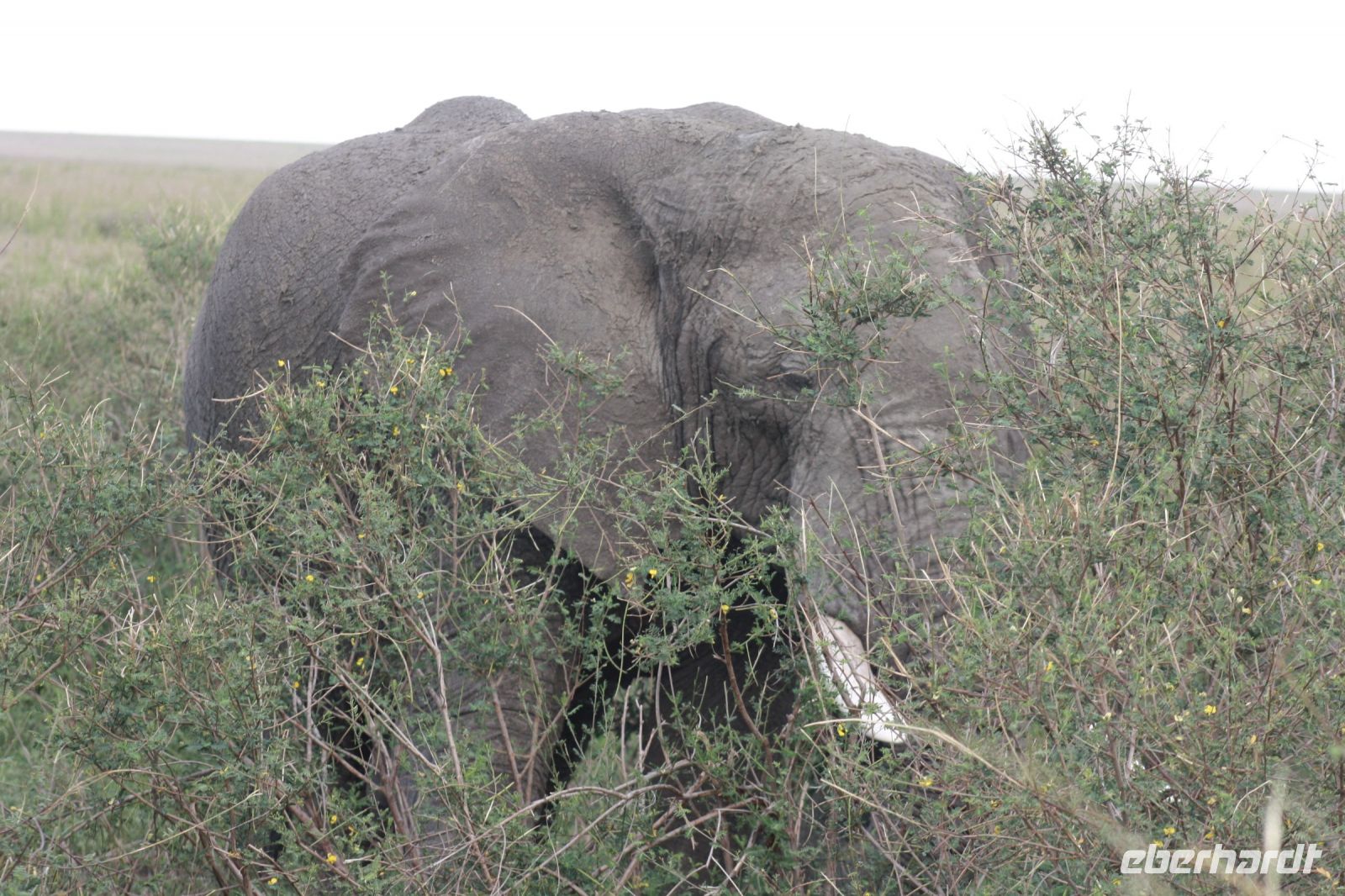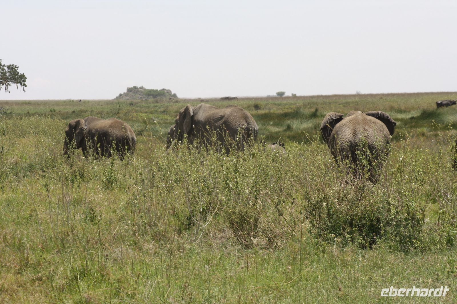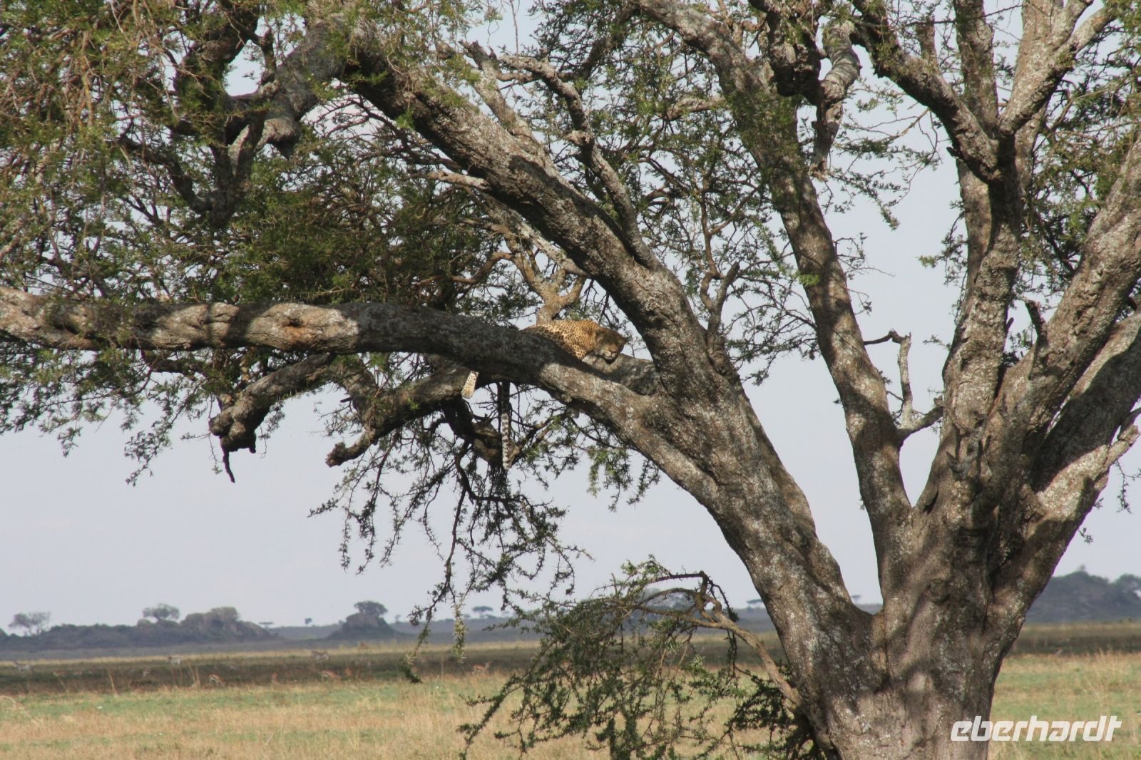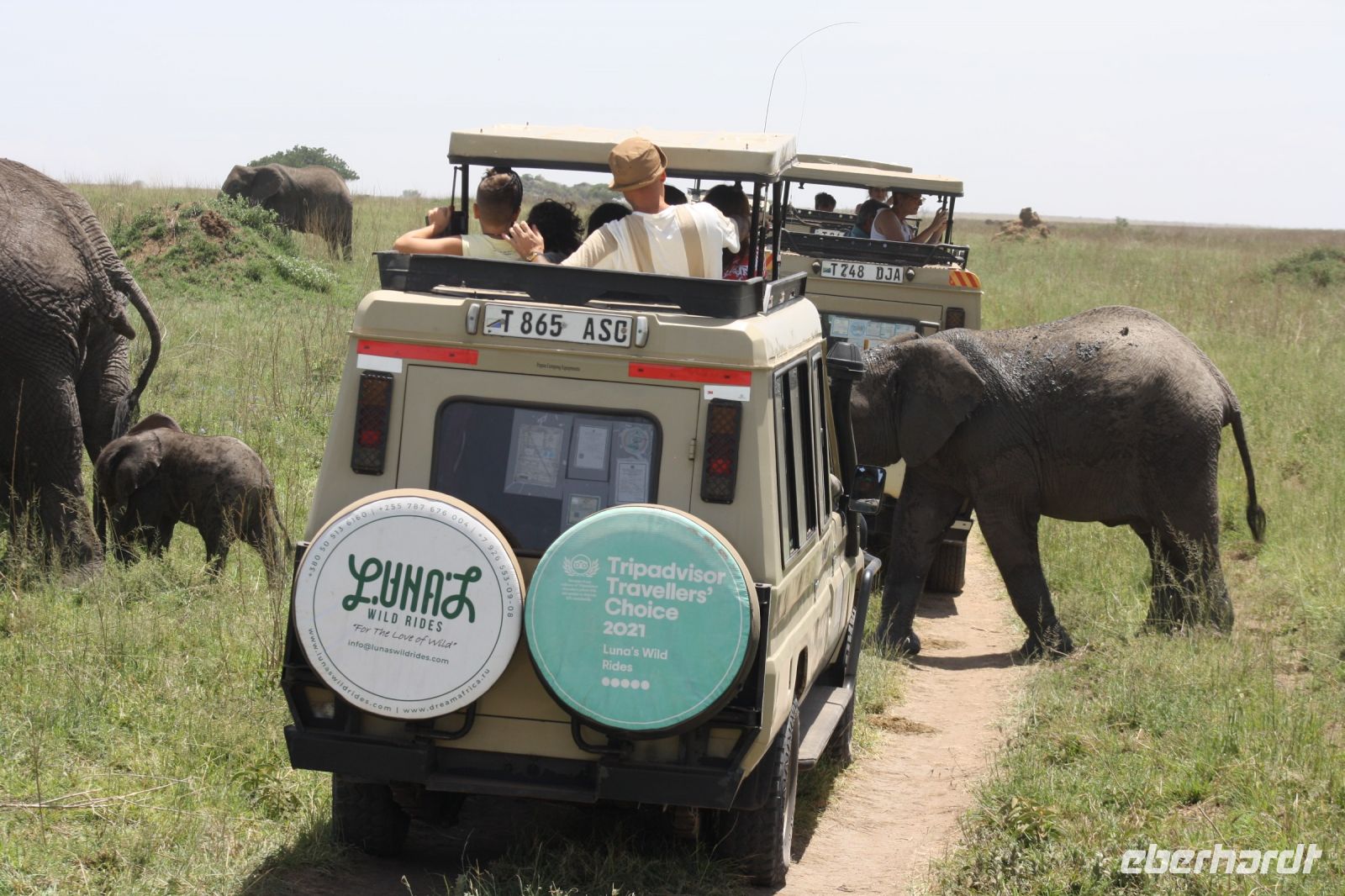 Heute starteten wir etwas früher los als sonst, denn wir wollten nochmal die Serengeti genießen. Am frühen Morgen konnten wir sofort einen Adler vor unsere Linse bekommen. In der Savanne war in der Morgenstunde viel los. Unterwegs trafen wir auf Elanantilope, Paviane mit Kleinkind, Büffel, Perlhühner, Zebras, Warzenschweine, sowie Thomson- und Kuhantilopen. Auch die Vogelwelt zeigte sich in Form eines Rothalsfrankolin, Sekretärs und einem Adler mit einem kleinen Baby im Nest. Plötzlich entdeckten wir einen nachtaktive Serval auf einem Feld. Die Wildkatze, die so groß wie eine Hauskatze ist, ist selten zu beobachten und wir konnten unser Glück kaum fassen. Immer weitere führte uns Karim durch die Serengeti. Unterwegs beobachteten wir einen randalierenden Elefanten, der vermutlich auf der Suche nach einem Weibchen. Nach einer einsamen Hyäne trafen wir auf vier Löwinnen, die mit ihren zwei Babys unter einem Baum spielten und schliefen. Auch einen Leoparden konnten man in der Ferne auf einem Baum erblicken. Unsere Mittagspause verbrachten wir in der Lodge, aßen gemeinsam zu Mittag und entspannten etwas im Zelt. Am Nachmittag machten wir uns auf eine weitere Pirsch. Eine Affenbande empfing uns auf einen Baum und drei Marabous begrüßten uns nur unweit von unserer Lodge. Am Wasserloch lagen drei Nilkrokodile in der Sonne, Giraffen schlenderten durch die Savanne und die Nilpferde spielten im Hippo-Pool. Als weiteren Tageshöhepunkt entdeckten wir eine Geparden Familie. Die Mutter spazierte mit ihren drei Jungen durch die Savanne. Plötzlich rannte die vier Leoparden durch die Autos hindurch und wir waren völlig überrascht von der plötzlichen Geschwindigkeit der Tiere. Trotz einer langen Wartezeit konnten wir wunderschöne Bilder machen und einen schönen Tagesabschluss gewinnen. Zurück in der Lodge stießen wir nochmal mit einem leckeren Kilimanjaro-Bier auf die schöne Reise und die letzte Nacht in der Serengeti an.