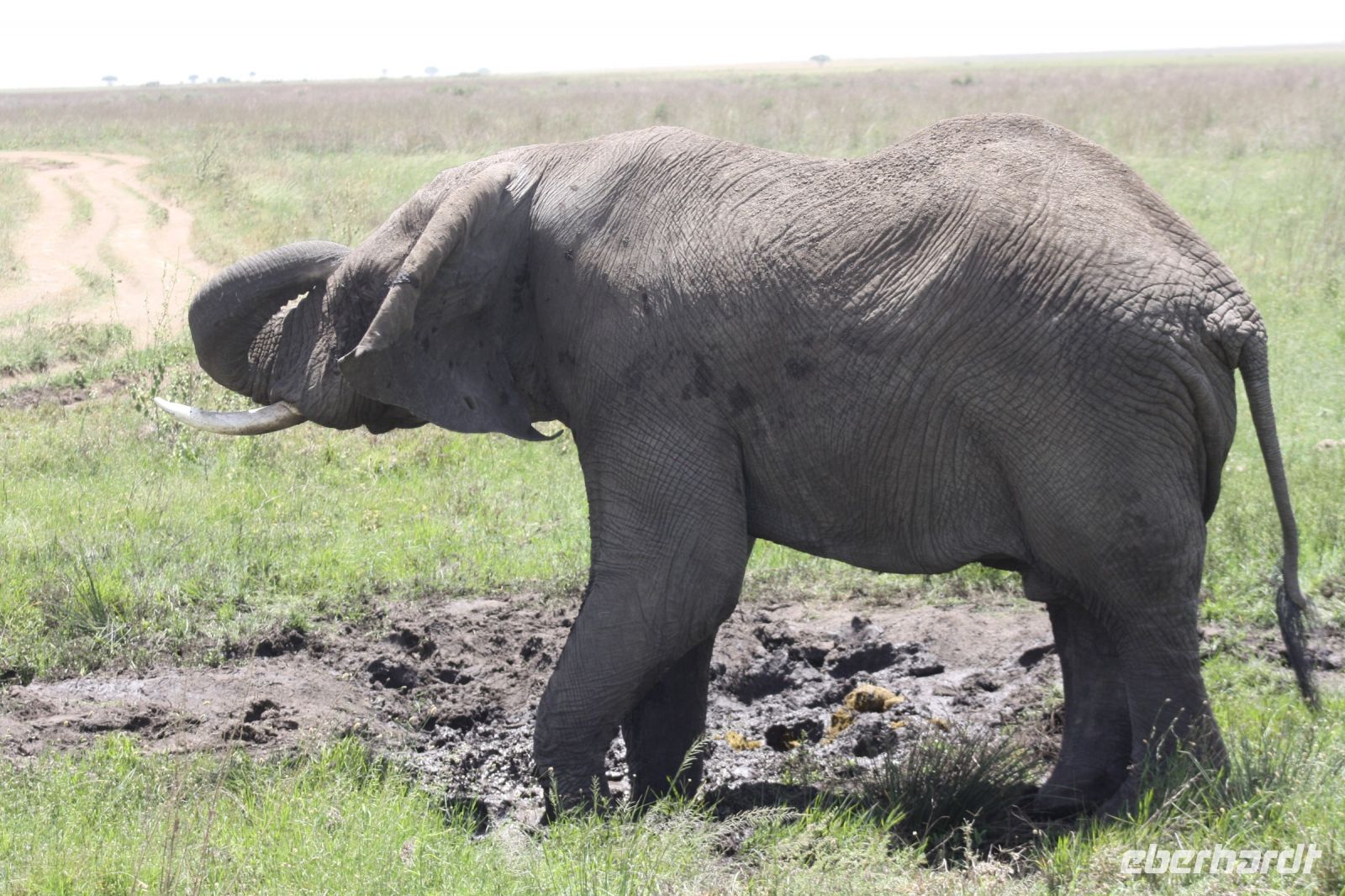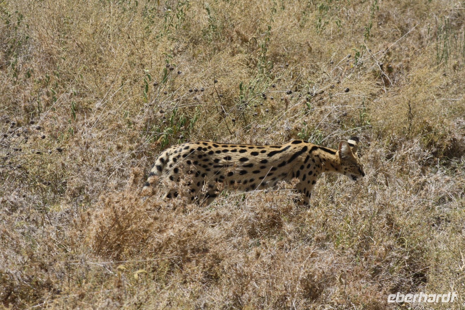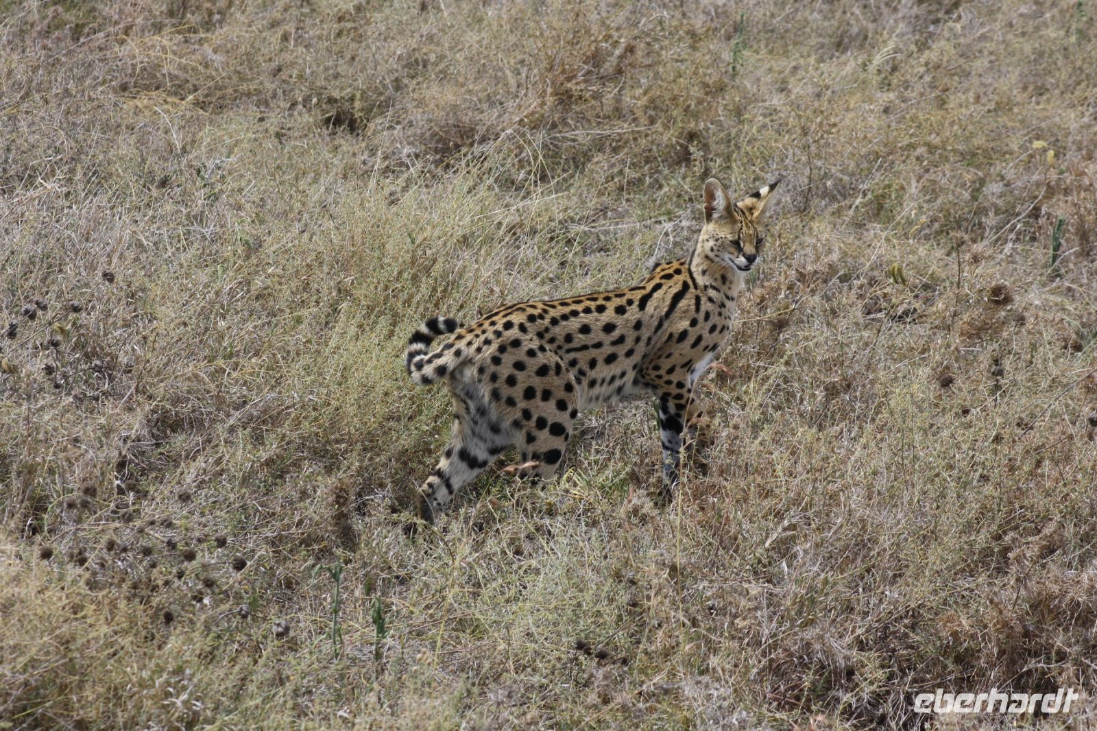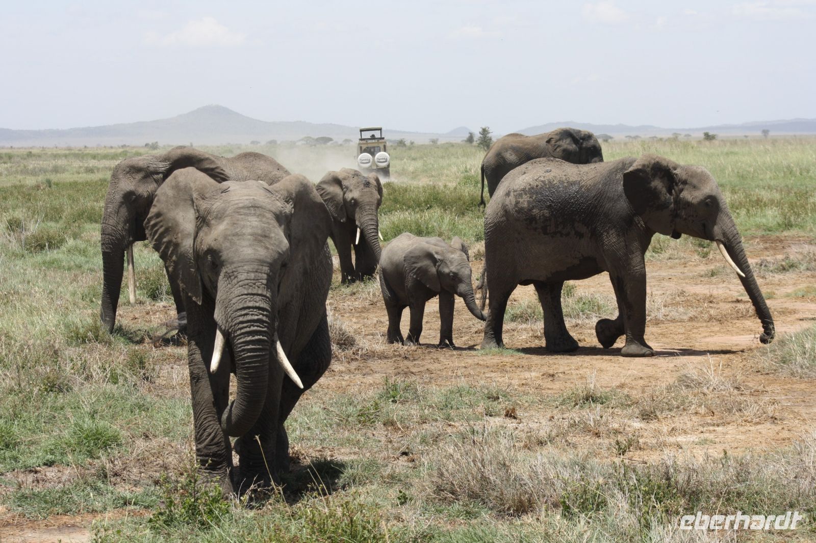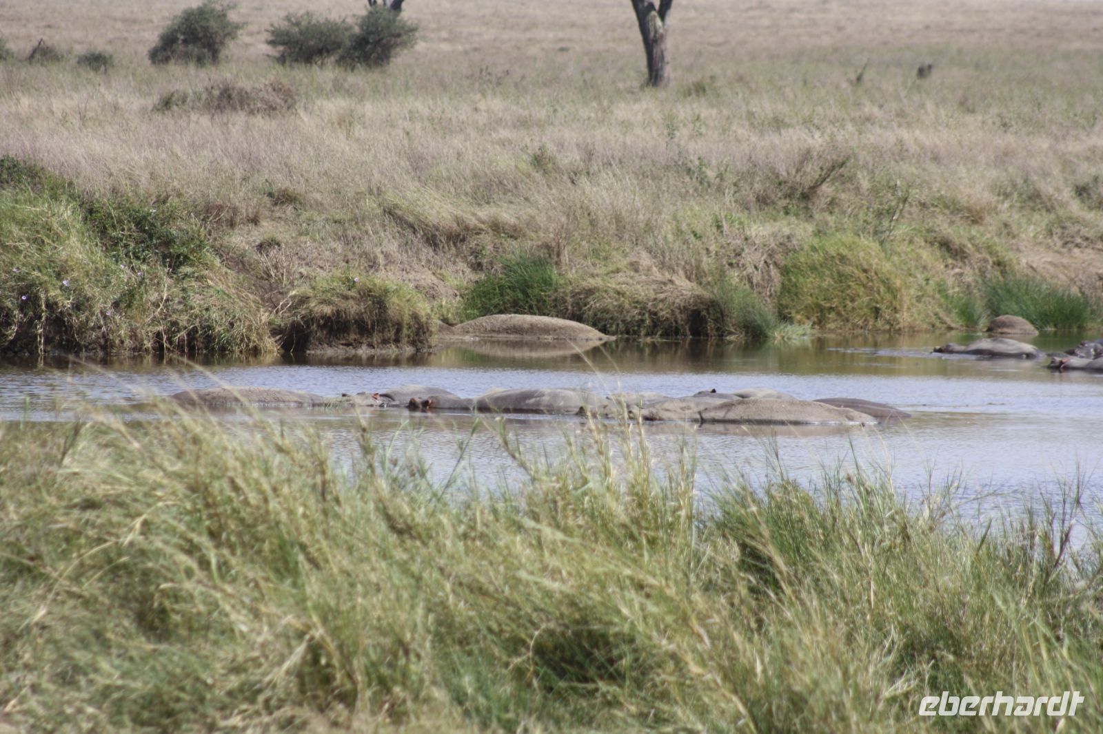 Heute starteten wir etwas früher los als sonst, denn wir wollten nochmal die Serengeti genießen. Am frühen Morgen konnten wir sofort einen Adler vor unsere Linse bekommen. In der Savanne war in der Morgenstunde viel los. Unterwegs trafen wir auf Elanantilope, Paviane mit Kleinkind, Büffel, Perlhühner, Zebras, Warzenschweine, sowie Thomson- und Kuhantilopen. Auch die Vogelwelt zeigte sich in Form eines Rothalsfrankolin, Sekretärs und einem Adler mit einem kleinen Baby im Nest. Plötzlich entdeckten wir einen nachtaktive Serval auf einem Feld. Die Wildkatze, die so groß wie eine Hauskatze ist, ist selten zu beobachten und wir konnten unser Glück kaum fassen. Immer weitere führte uns Karim durch die Serengeti. Unterwegs beobachteten wir einen randalierenden Elefanten, der vermutlich auf der Suche nach einem Weibchen. Nach einer einsamen Hyäne trafen wir auf vier Löwinnen, die mit ihren zwei Babys unter einem Baum spielten und schliefen. Auch einen Leoparden konnten man in der Ferne auf einem Baum erblicken. Unsere Mittagspause verbrachten wir in der Lodge, aßen gemeinsam zu Mittag und entspannten etwas im Zelt. Am Nachmittag machten wir uns auf eine weitere Pirsch. Eine Affenbande empfing uns auf einen Baum und drei Marabous begrüßten uns nur unweit von unserer Lodge. Am Wasserloch lagen drei Nilkrokodile in der Sonne, Giraffen schlenderten durch die Savanne und die Nilpferde spielten im Hippo-Pool. Als weiteren Tageshöhepunkt entdeckten wir eine Geparden Familie. Die Mutter spazierte mit ihren drei Jungen durch die Savanne. Plötzlich rannte die vier Leoparden durch die Autos hindurch und wir waren völlig überrascht von der plötzlichen Geschwindigkeit der Tiere. Trotz einer langen Wartezeit konnten wir wunderschöne Bilder machen und einen schönen Tagesabschluss gewinnen. Zurück in der Lodge stießen wir nochmal mit einem leckeren Kilimanjaro-Bier auf die schöne Reise und die letzte Nacht in der Serengeti an.