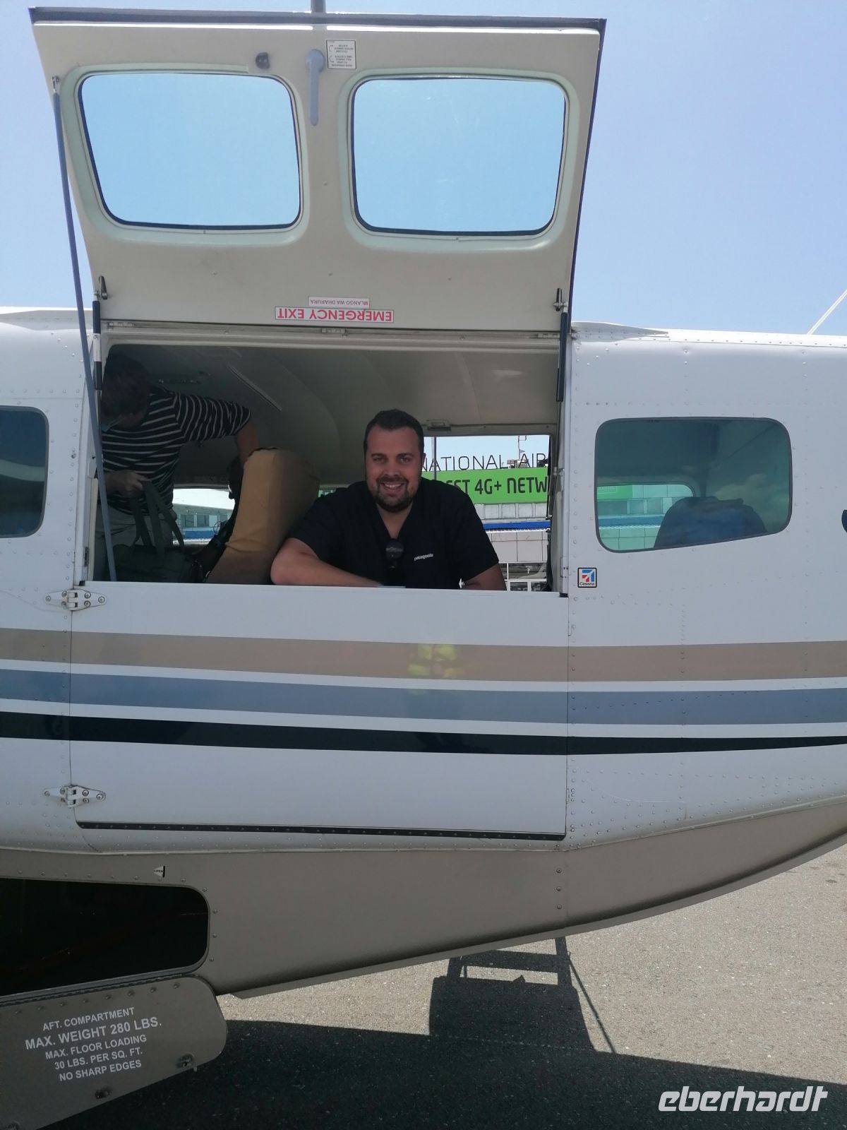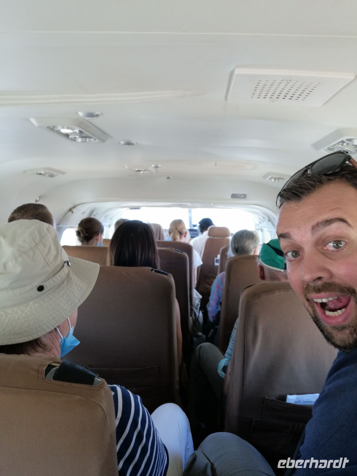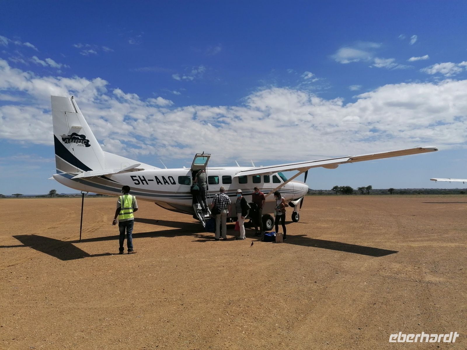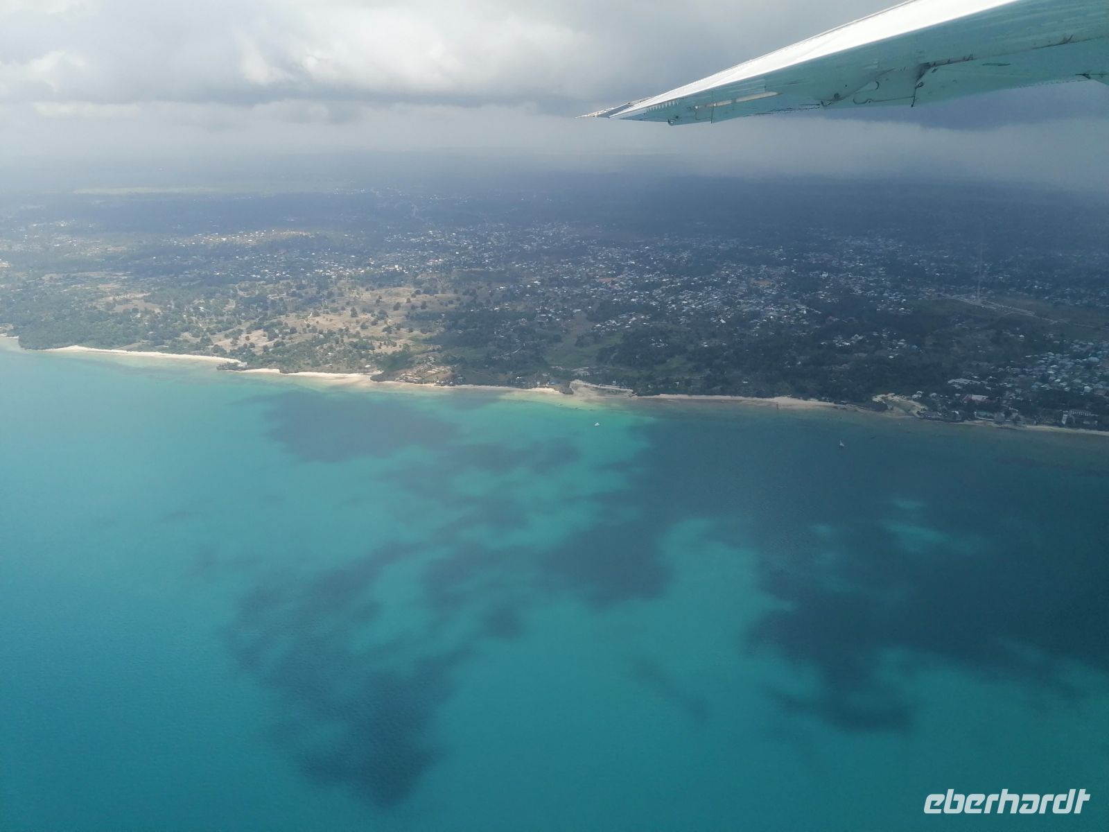 Unser Guide Karim brachte uns nun leider zum Ikoma-Airstrip. Der Bush-Flugplatz besteht aus einen kleinen Terminal und einen Toilettenhäuschen und eine grasbedeckte kleine Landebahn. Der Check-In verlief unkonventionell aber schnell. In der Zwischenzeit mussten wir uns bereits von Karim verabschieden und konnten uns für die tolle Reise bedanken. Nach einer kurzen Wartezeit stand unsere kleine Cessna-Maschine bereits. Schnell wurde das Gepäck verladen und wir konnten starten. Insgesamt dauerte unser Flug 2 Stunden bis wir Sansibar erreichten. Leider war dies nicht unser finaler Ankunftsort, sondern wir flogen weiter nach Dar-Es-Salaam.