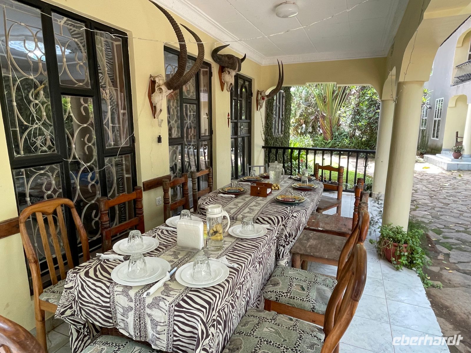 Nach der ersten Nacht in Tansania, treffen wir uns zum Frühstück damit wir pünktlich 09:30 Uhr zu einer Kaffeeplantage losfahren können.Dort spazieren wir ca. 3 Stunden durch das nahegelegene Dorf, entlang der Bananen und Kaffeeplantagen mit unserem lokalen Guide Richard. Auch die Kaffeefarm selbst erkunden wir bei einem kleinen Rundgang und uns wird erklärt, wie der Kahawa Fair Trade Coffee hergestellt wird. Später genießen wir ein leckeres Mittagessen, bevor wir uns auch noch die Kaffeerösterei anschauen. Das Highlight für alle Gäste: Alle bekommen ein kleines Paket Kaffee geschenkt. Nach unserer Rückkehr im Hotel kann die Gruppe individuell ihren Nachmittag planen. Viele kühlen sich im Pool ab. Den Abend lassen wir dann wieder gemeinsam beim Abendessen und einer anschließenden Runde Gin Tonic ausklingen.