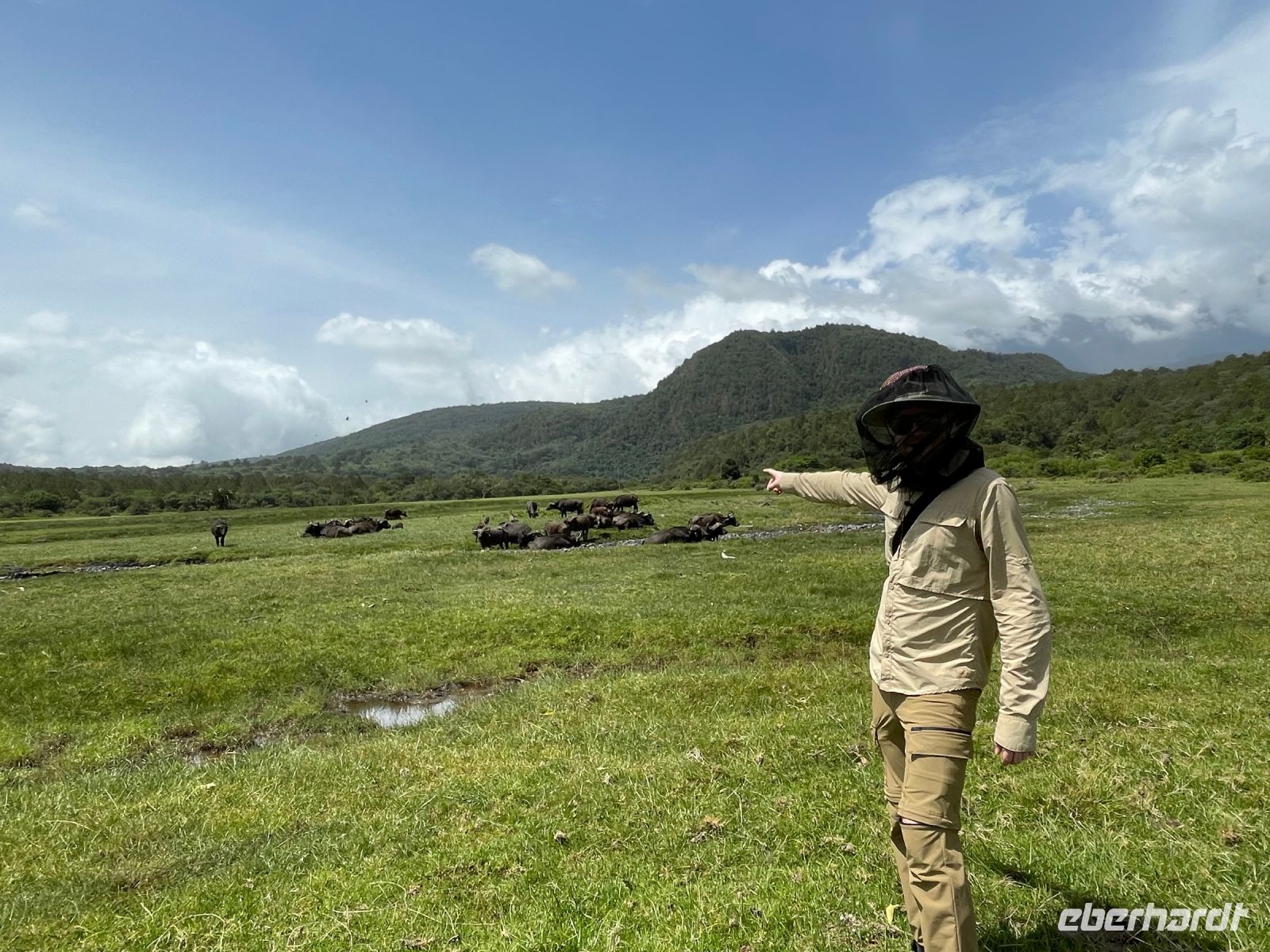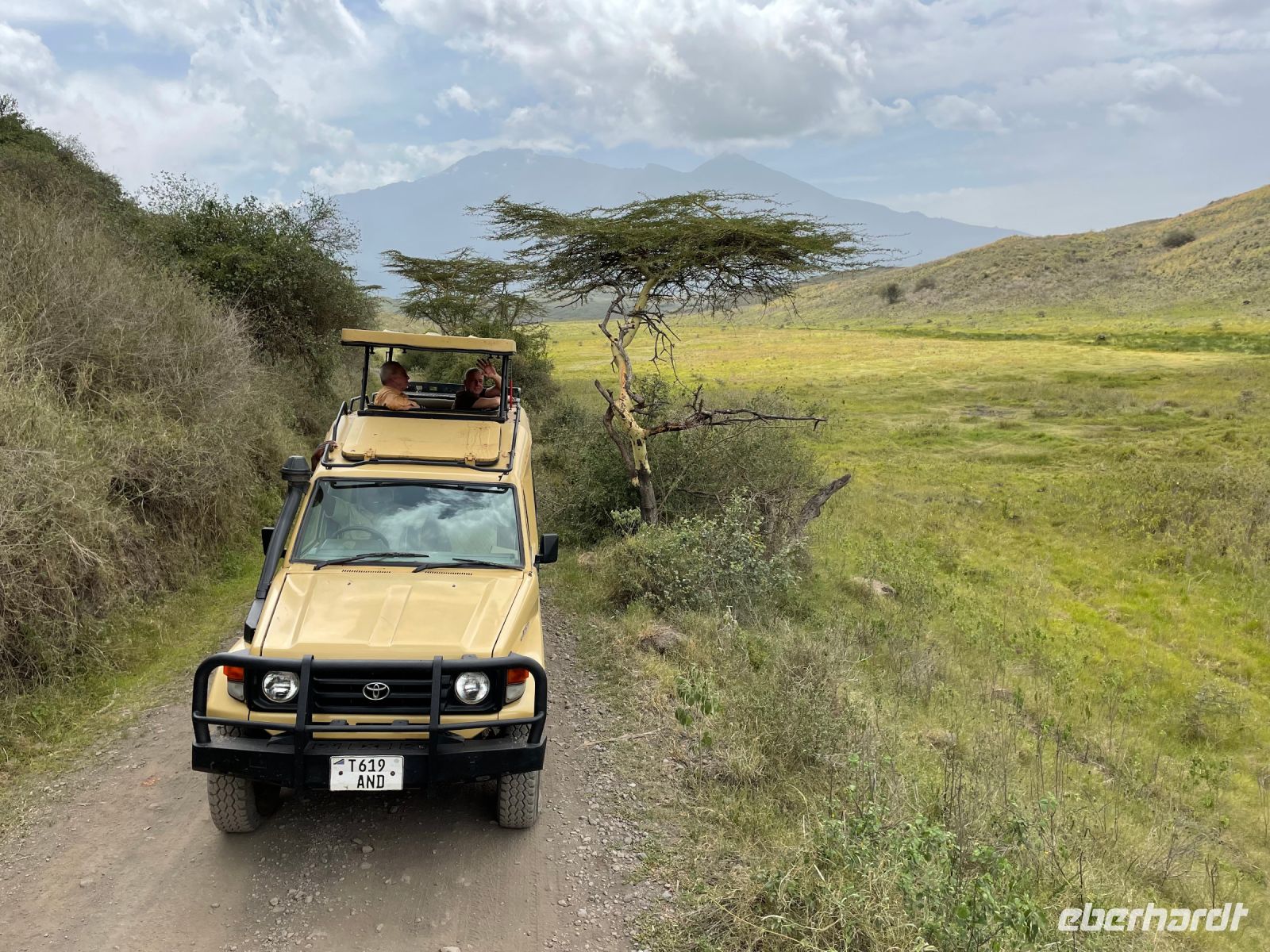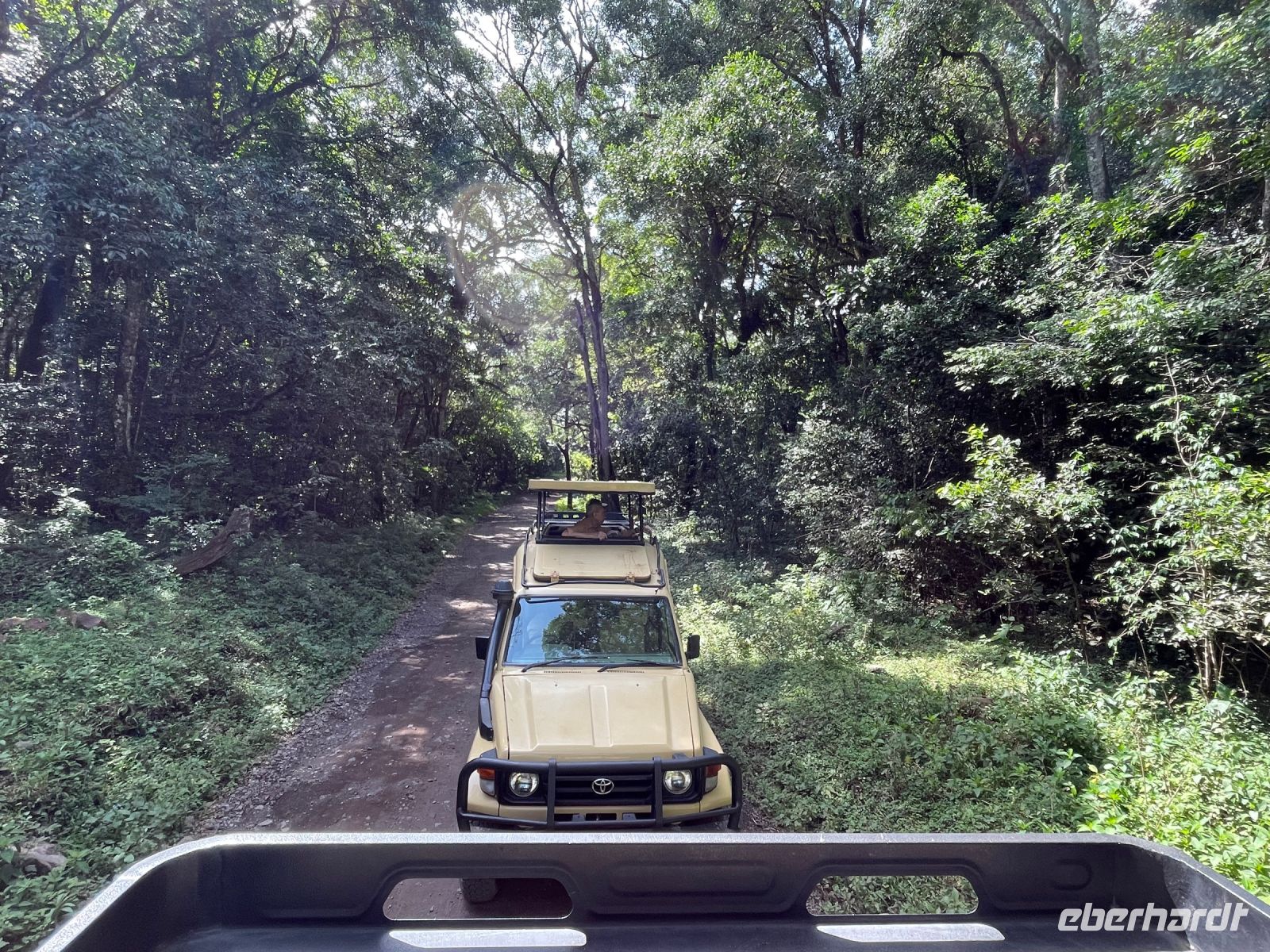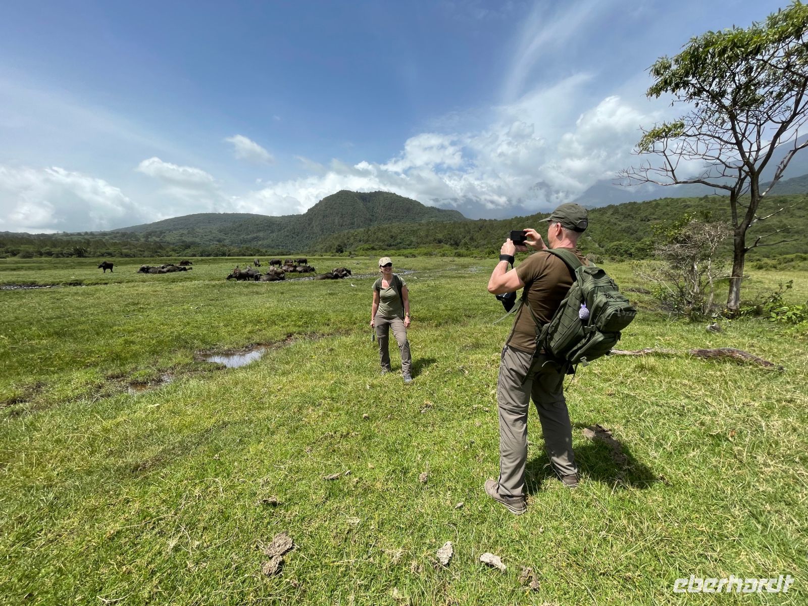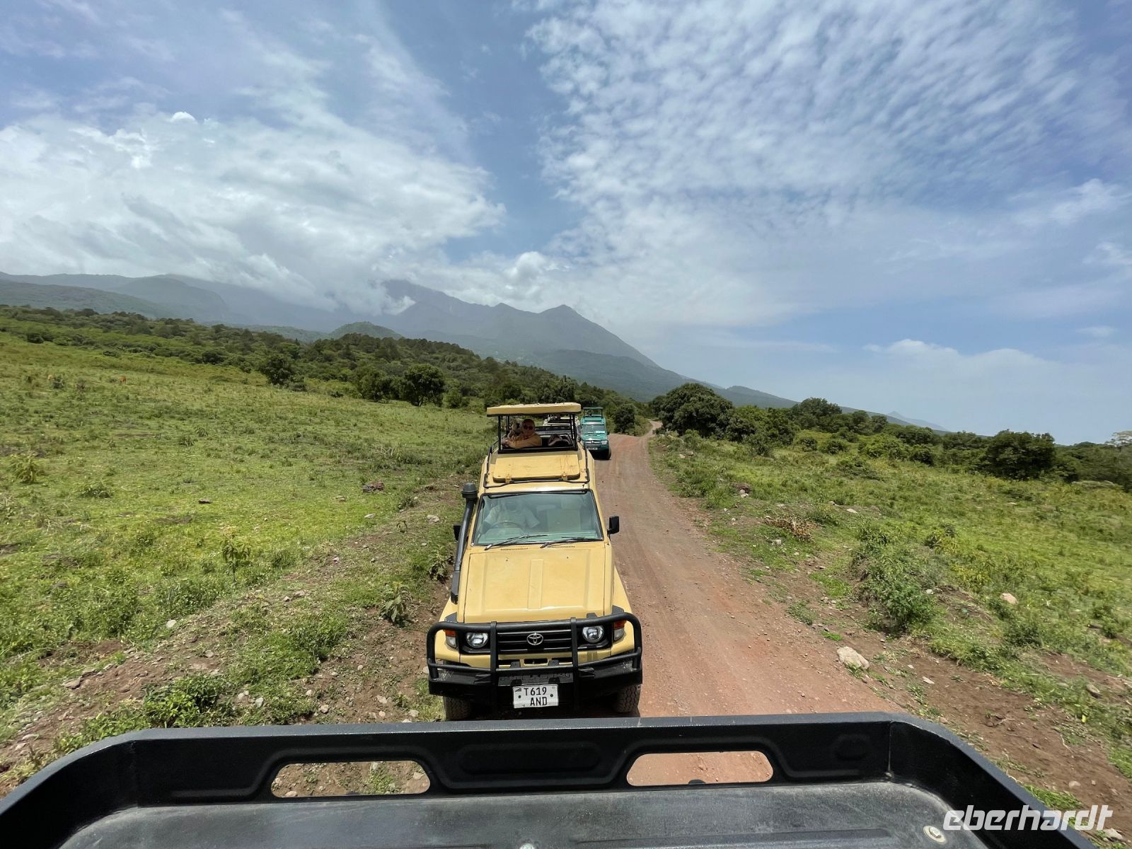 Heute geht es in den kleinsten Nationalpark Tansanias: den Arusha Nationalpark. Klein, aber oho. Standesgemäß fahren wir zur Safari mit unseren Jeeps und bereits nach 10 Minuten sehen wir die ersten Giraffen, Warzenschweine, Zebras und Büffel und später sogar ein Rot-Ducka. Unser lokaler Ranger Julius führt uns für einen einstündigen Spaziergang auch zu Fuß durch die wunderschöne Natur Afrikas. Wir laufen vorbei an Giraffen und Wasserbüffeln und kommen schließlich an einem bezaubernden Wasserfall an. Nach unserem Mittags-Picknick am Momella See fahren wir weiter Ngurdoto Krater, ein großer Vulkankrater im Arusha Nationalpark. Am Aussichtspunkt genießen wir einen beeindruckenden Blick auf den 3 km breiten Krater. Am späten Nachmittag sind wir zurück im Hotel und sitzen abends noch gemütlich am Lagerfeuer zusammen.