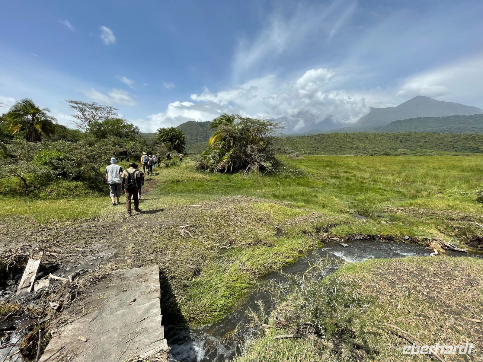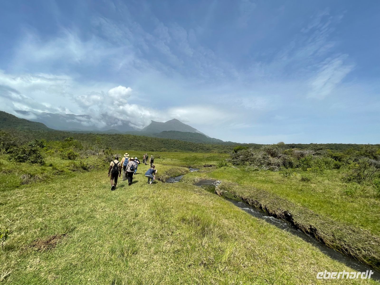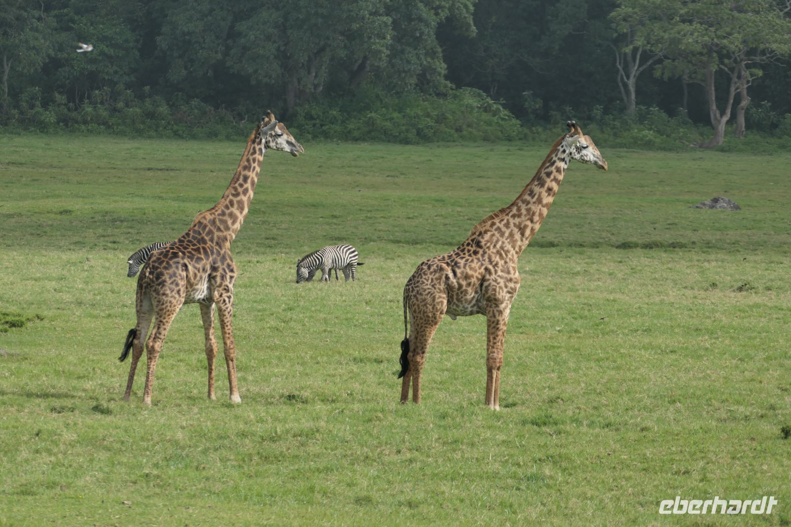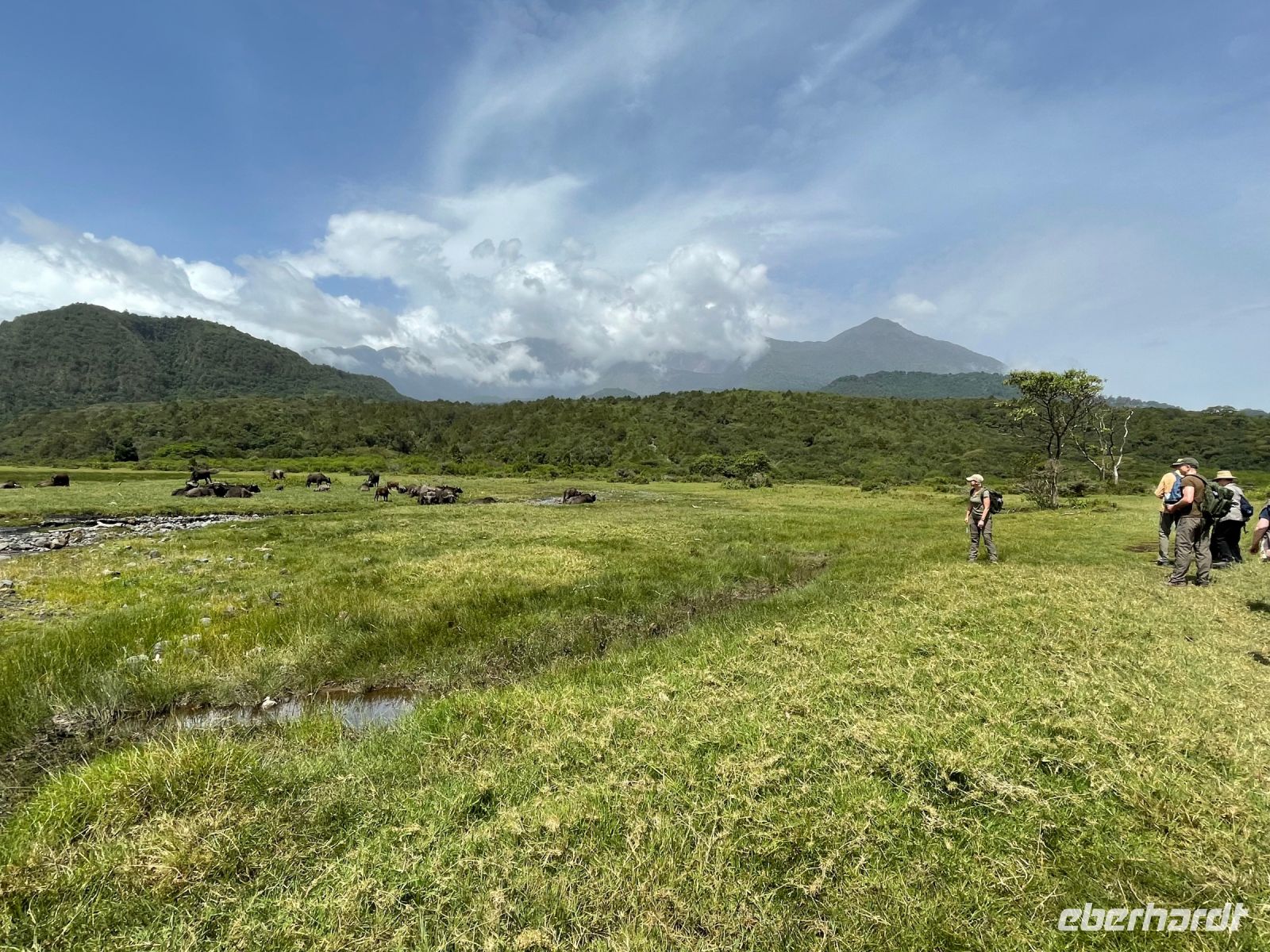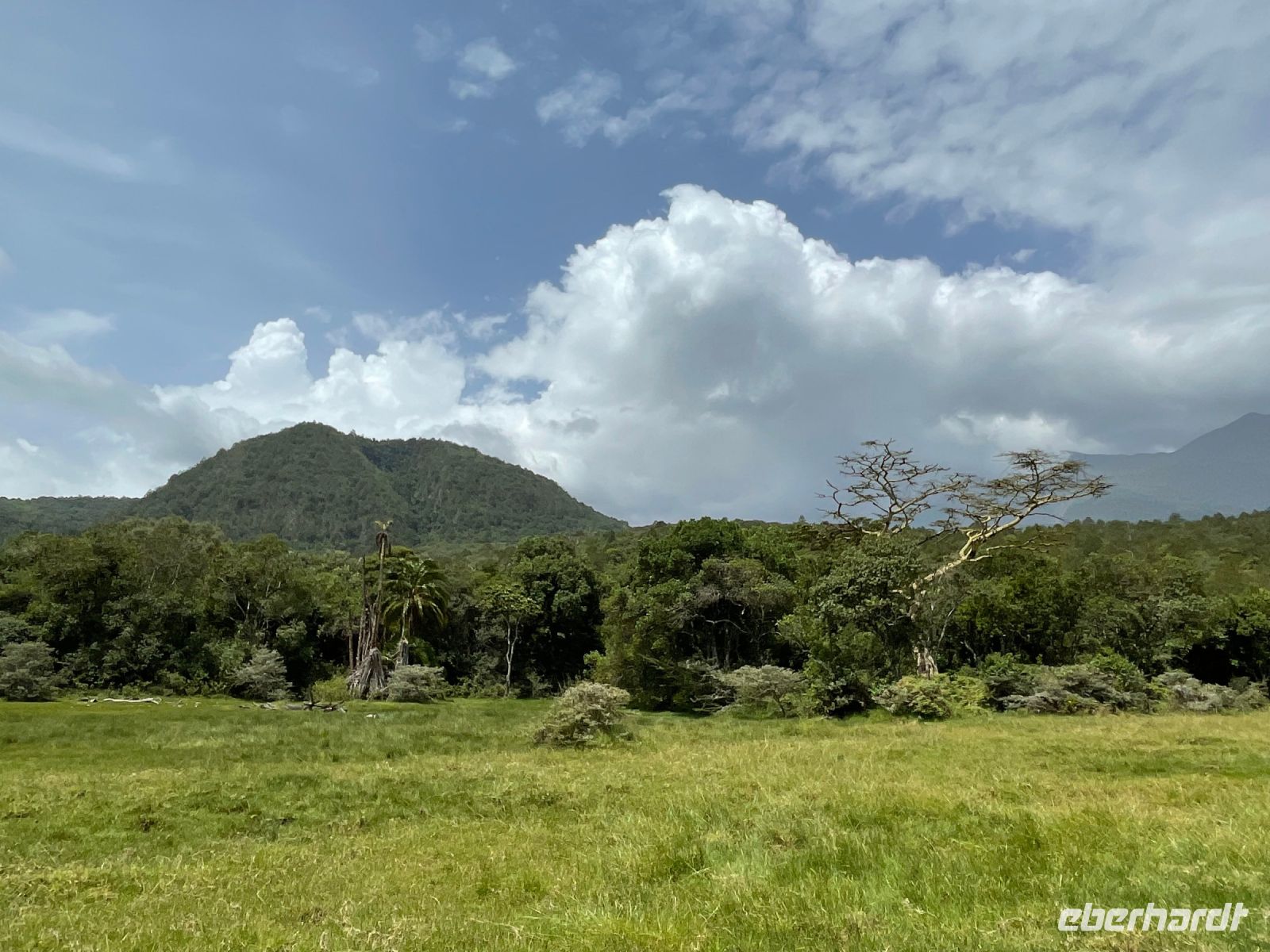 Heute geht es in den kleinsten Nationalpark Tansanias: den Arusha Nationalpark. Klein, aber oho. Standesgemäß fahren wir zur Safari mit unseren Jeeps und bereits nach 10 Minuten sehen wir die ersten Giraffen, Warzenschweine, Zebras und Büffel und später sogar ein Rot-Ducka. Unser lokaler Ranger Julius führt uns für einen einstündigen Spaziergang auch zu Fuß durch die wunderschöne Natur Afrikas. Wir laufen vorbei an Giraffen und Wasserbüffeln und kommen schließlich an einem bezaubernden Wasserfall an. Nach unserem Mittags-Picknick am Momella See fahren wir weiter Ngurdoto Krater, ein großer Vulkankrater im Arusha Nationalpark. Am Aussichtspunkt genießen wir einen beeindruckenden Blick auf den 3 km breiten Krater. Am späten Nachmittag sind wir zurück im Hotel und sitzen abends noch gemütlich am Lagerfeuer zusammen.