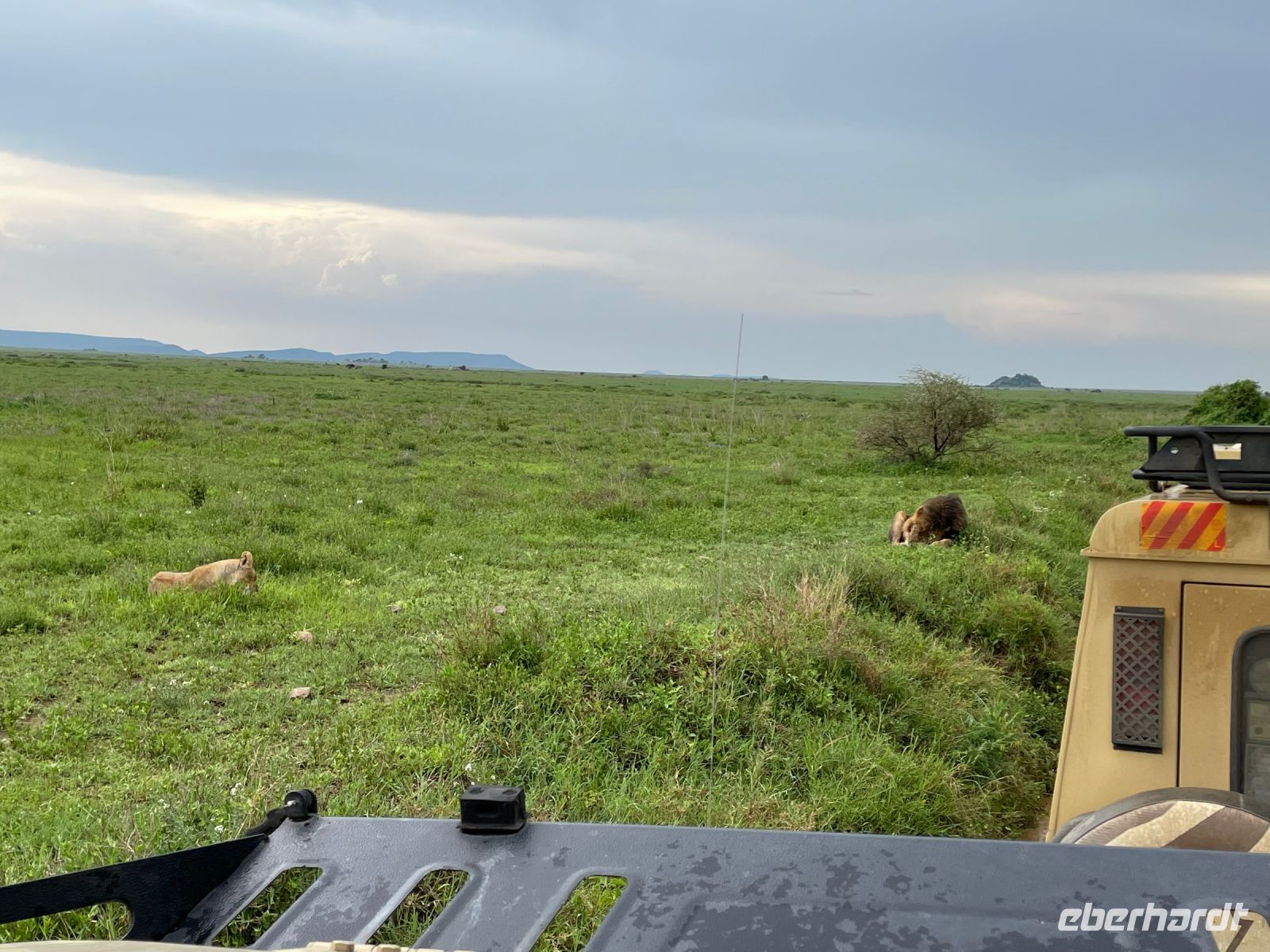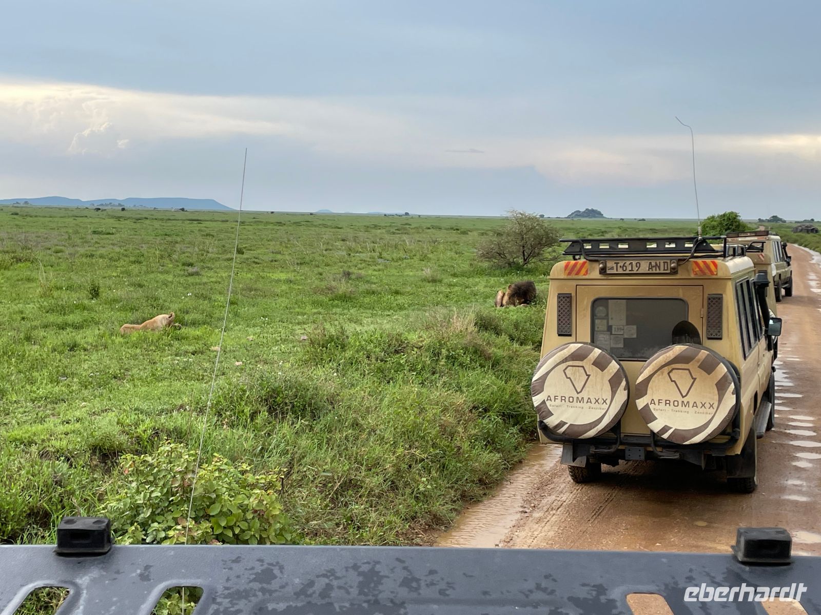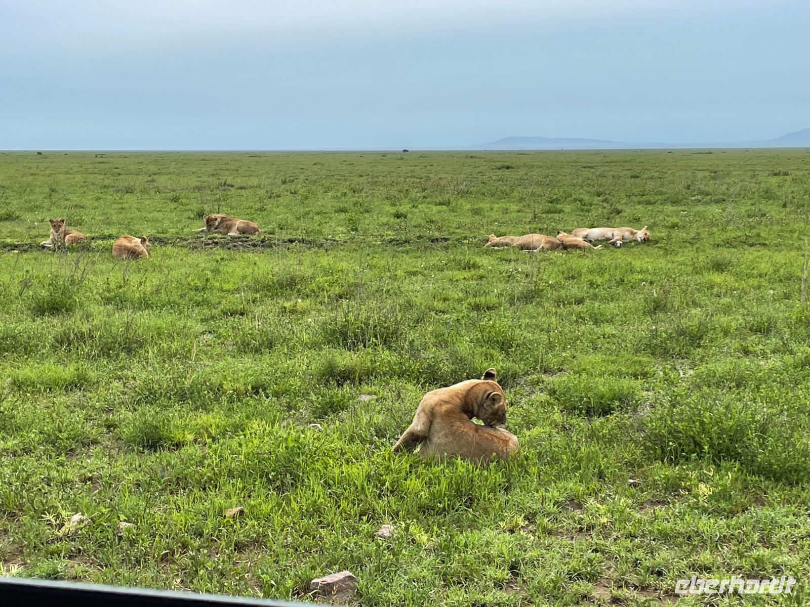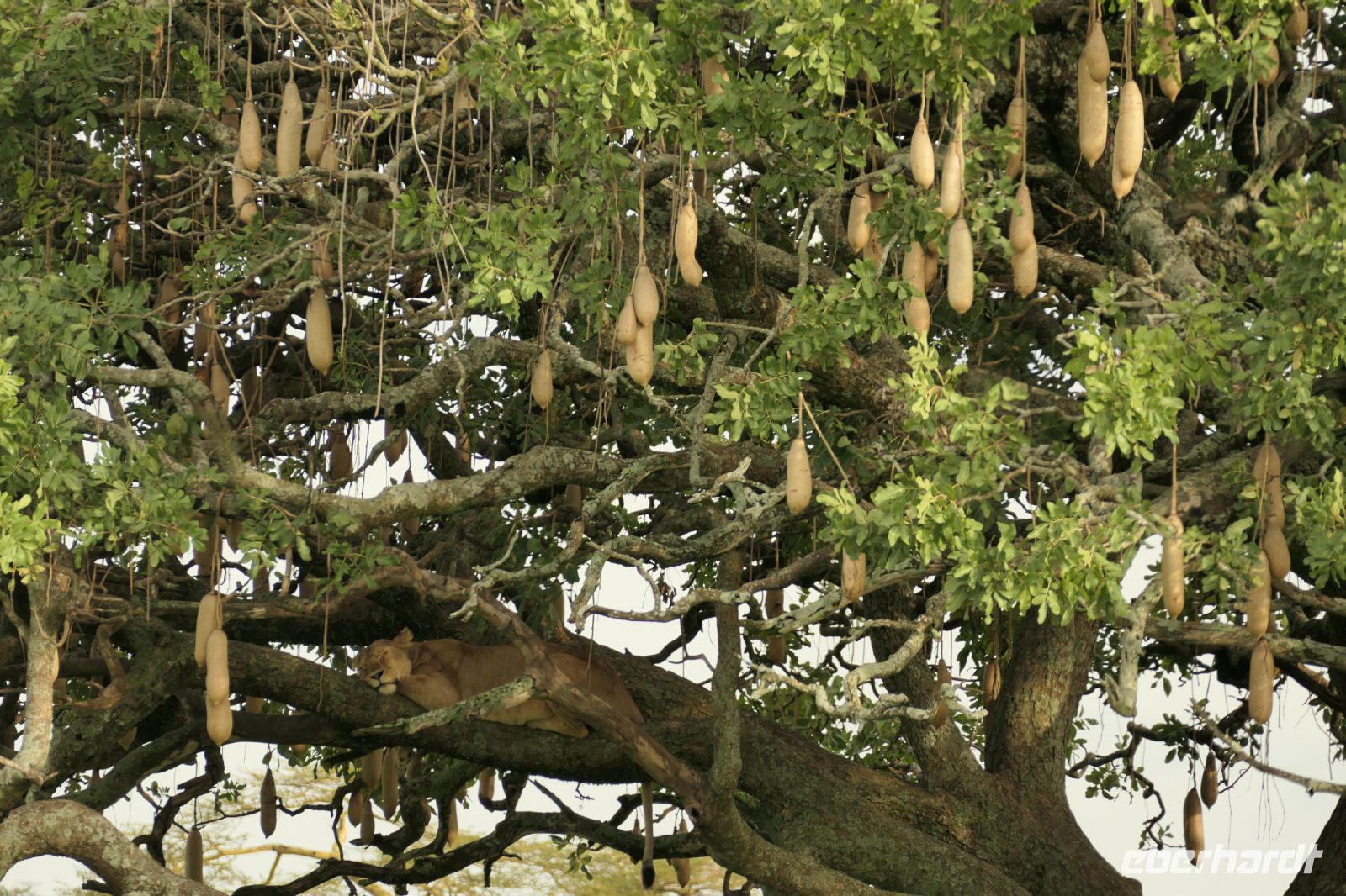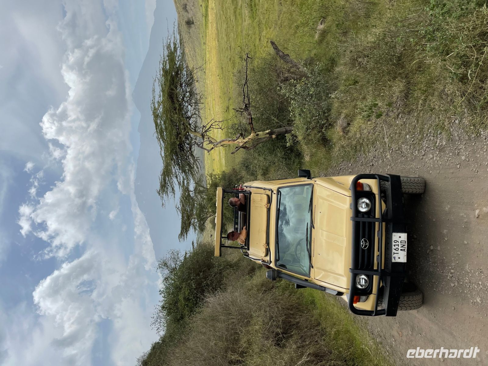 Am nächsten Tag geht der 2. Teil unserer Safari um 09:00 Uhr los. Wir sehen wieder jede Menge Tiere wie Elefanten, Giraffen oder Impalas. Die Highlights: ein im Baum schlafender Leopard und eine Löwenfamilie, die wir ganz nah aus unseren Jeeps beobachten können.