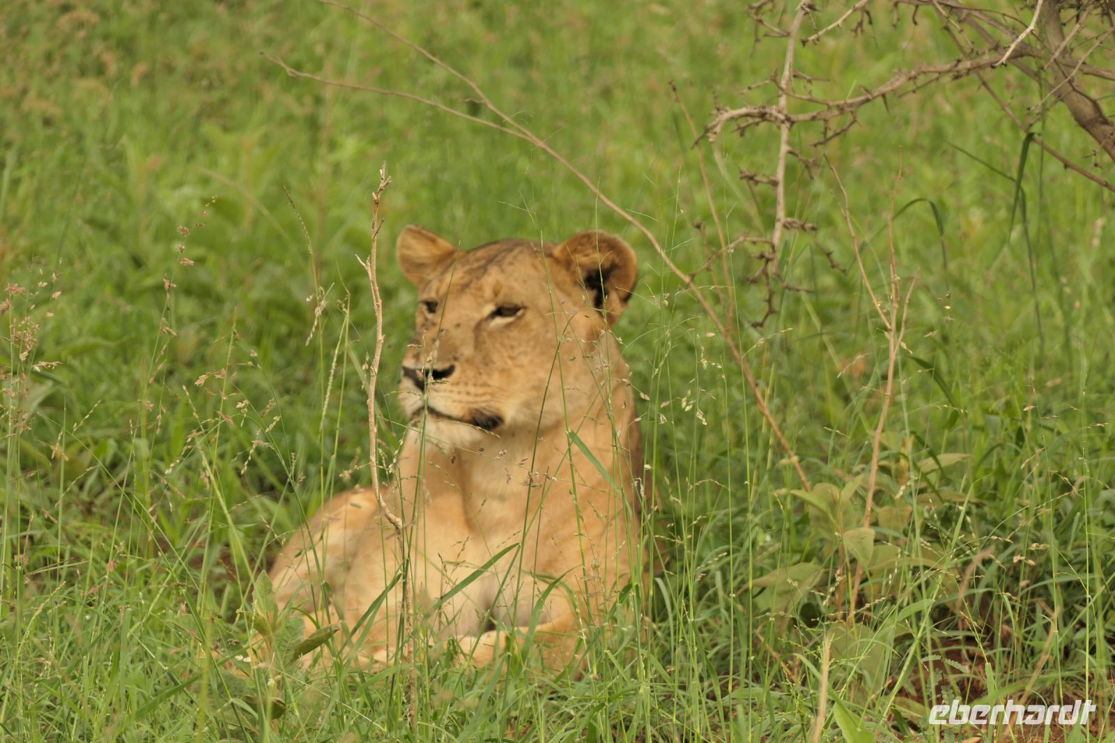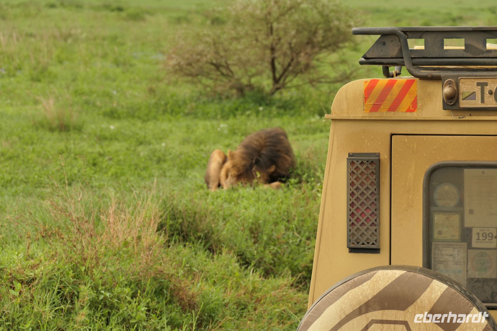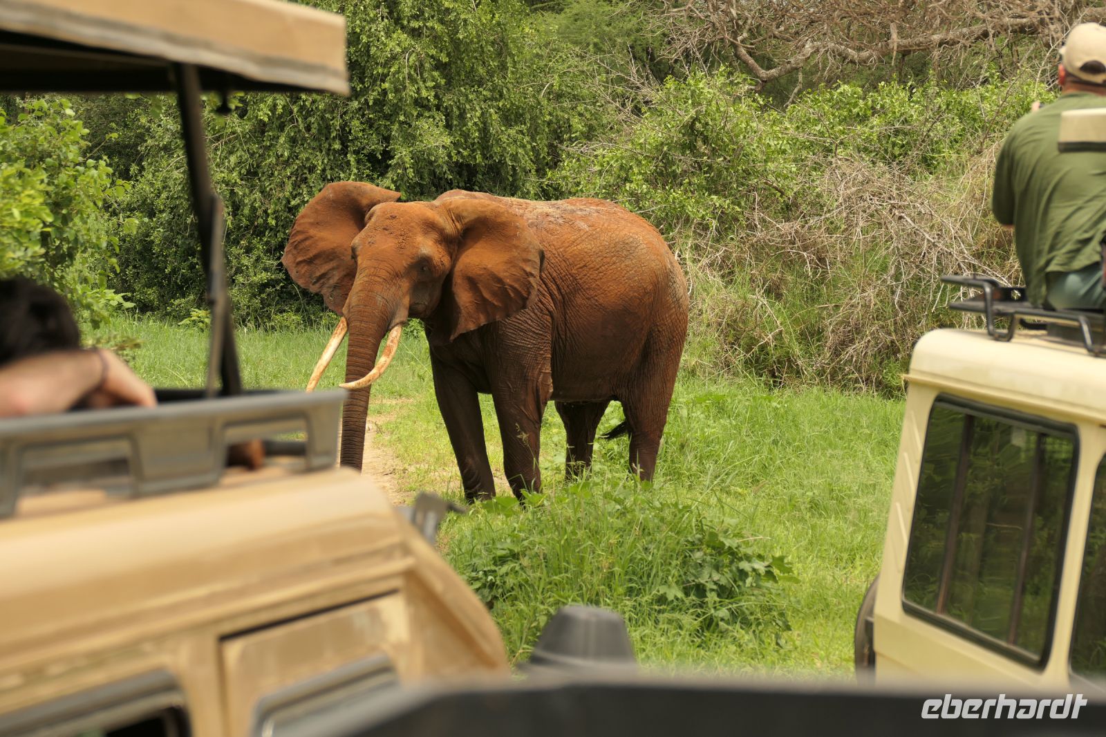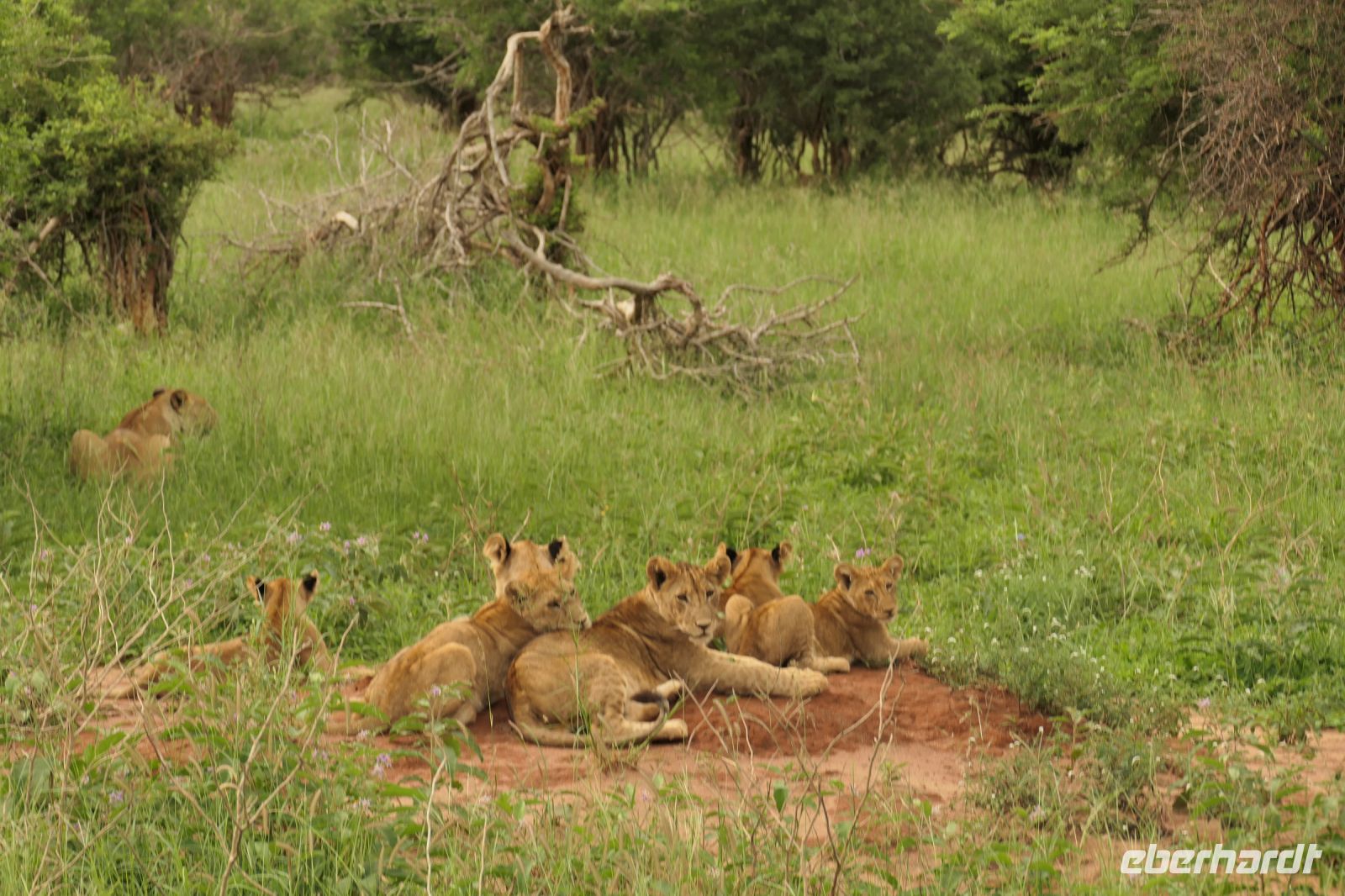 Am nächsten Tag geht der 2. Teil unserer Safari um 09:00 Uhr los. Wir sehen wieder jede Menge Tiere wie Elefanten, Giraffen oder Impalas. Die Highlights: ein im Baum schlafender Leopard und eine Löwenfamilie, die wir ganz nah aus unseren Jeeps beobachten können.