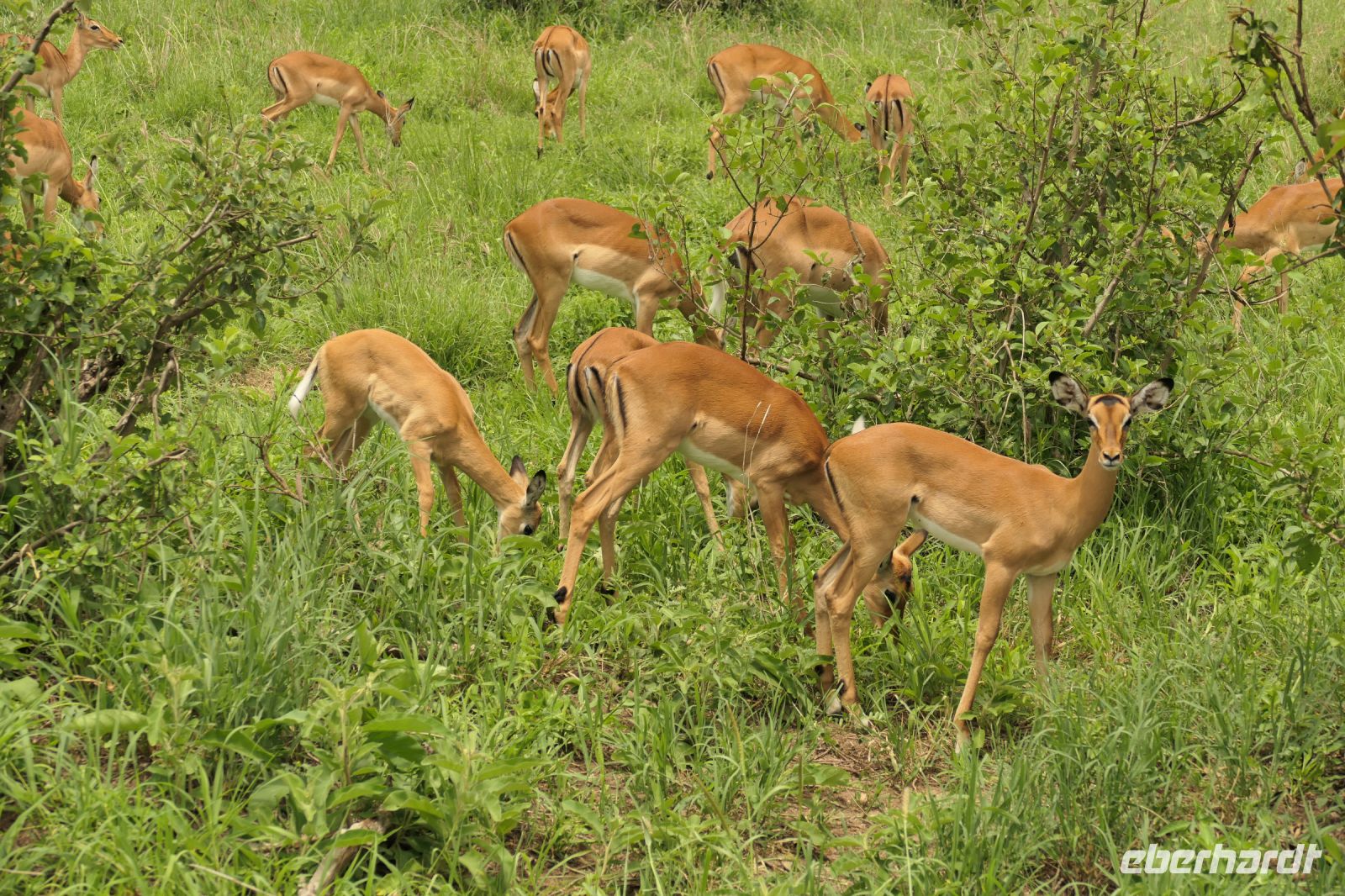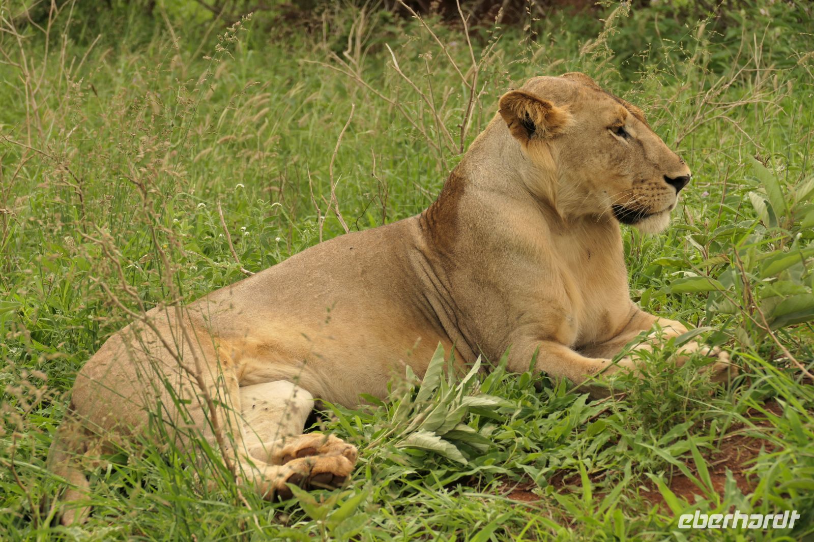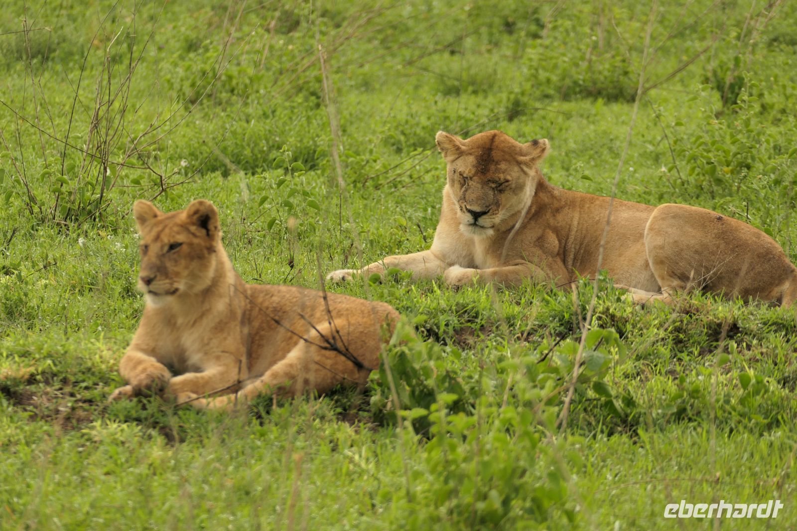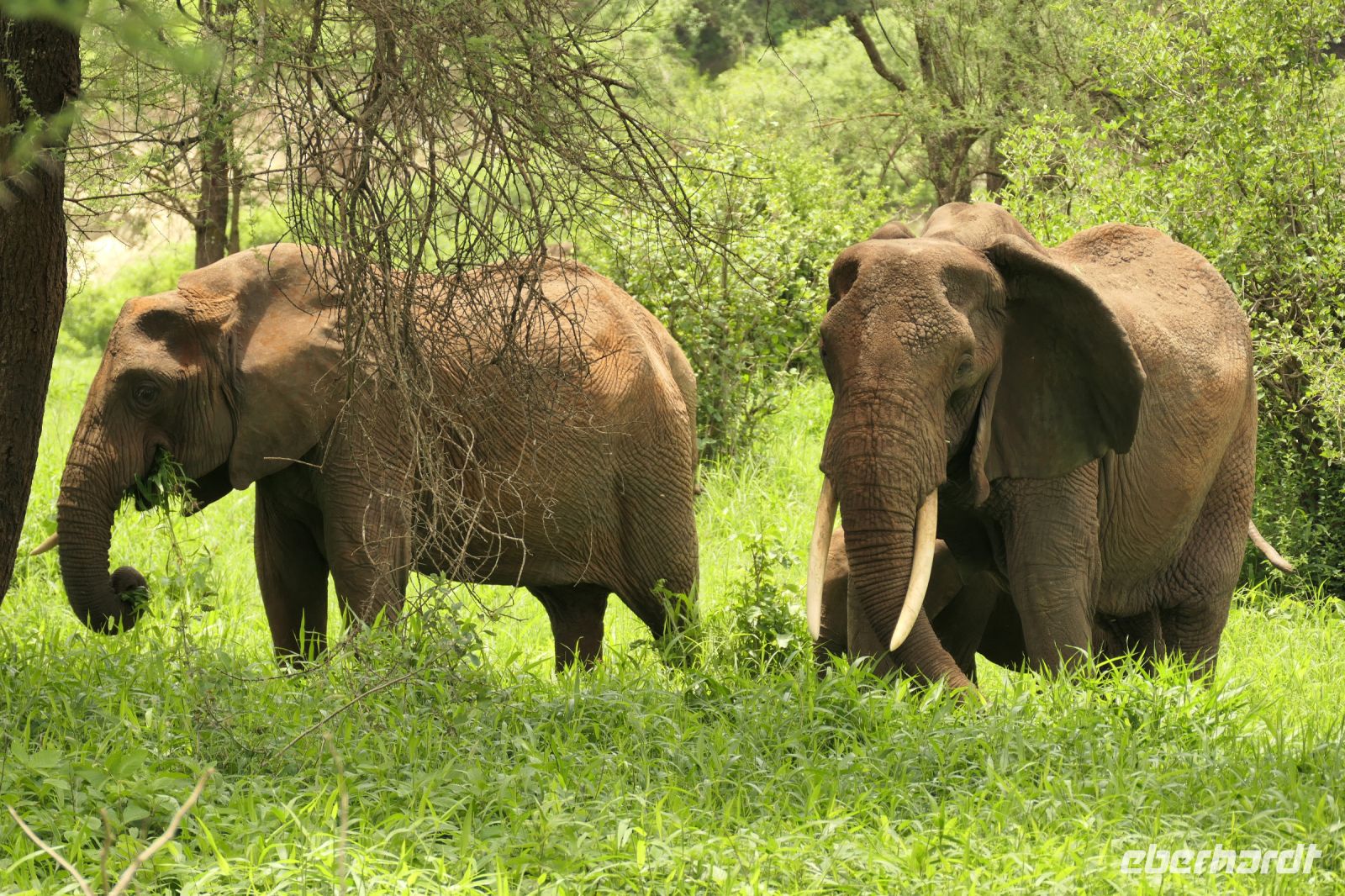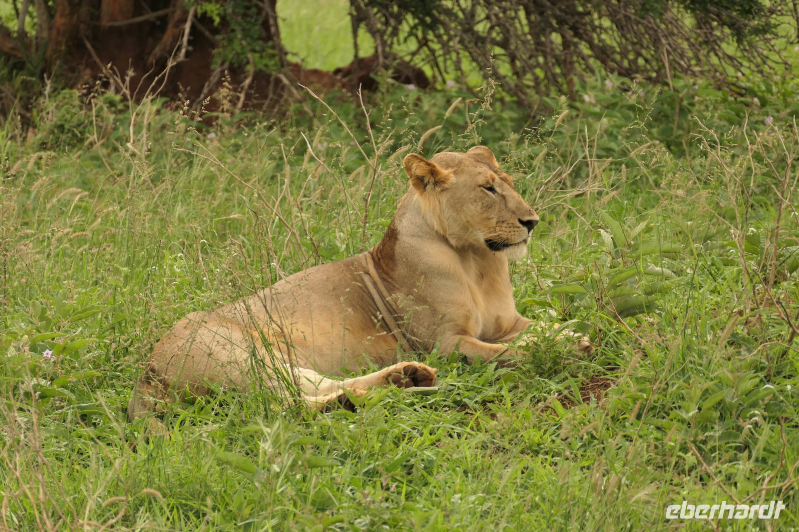 Am nächsten Tag geht der 2. Teil unserer Safari um 09:00 Uhr los. Wir sehen wieder jede Menge Tiere wie Elefanten, Giraffen oder Impalas. Die Highlights: ein im Baum schlafender Leopard und eine Löwenfamilie, die wir ganz nah aus unseren Jeeps beobachten können.