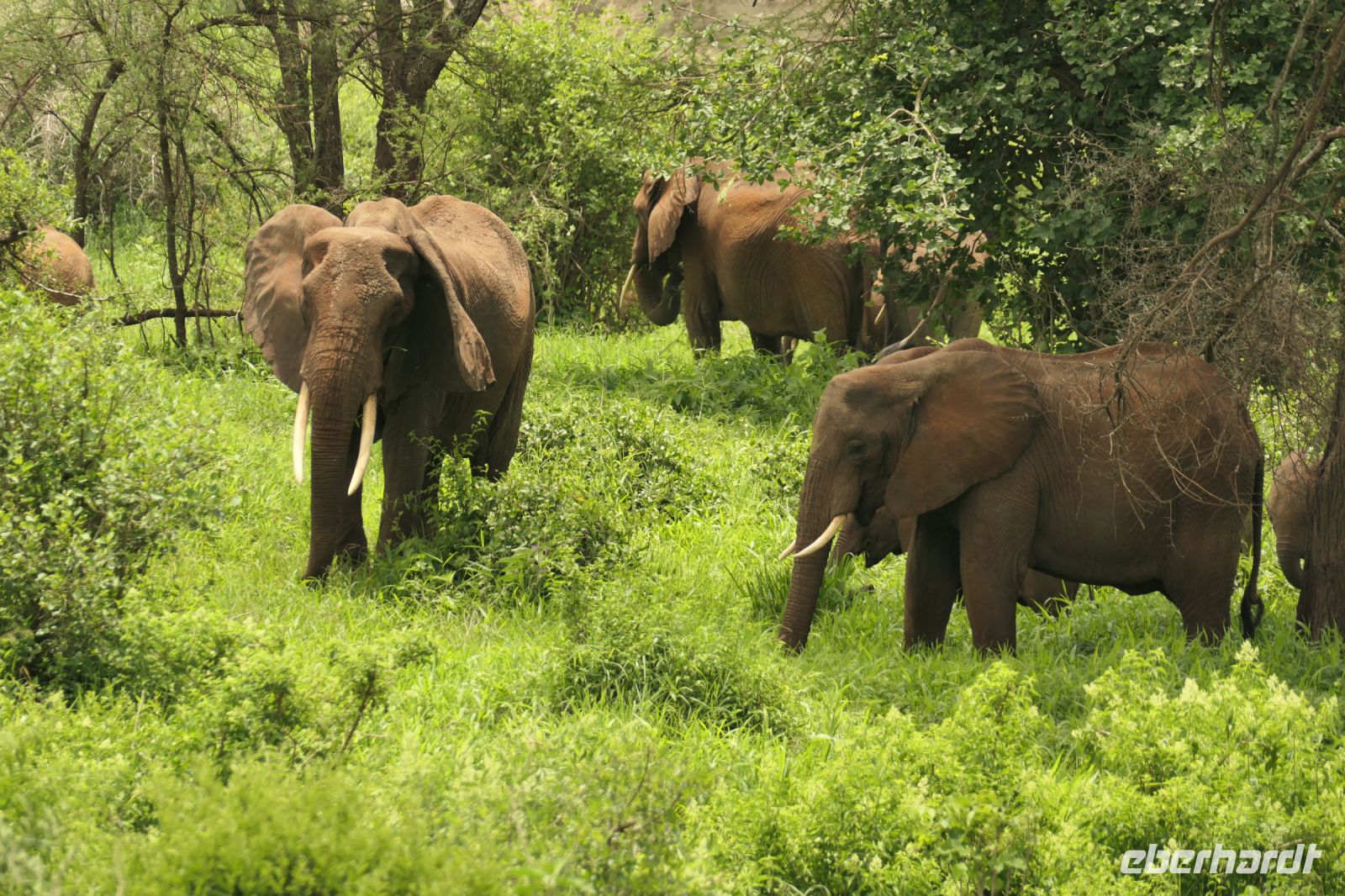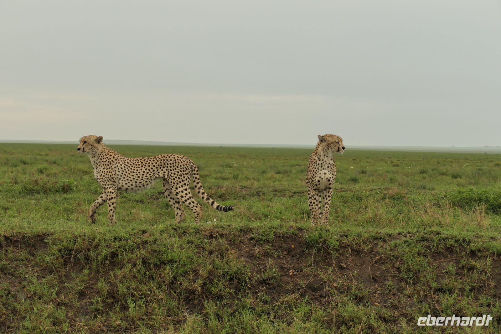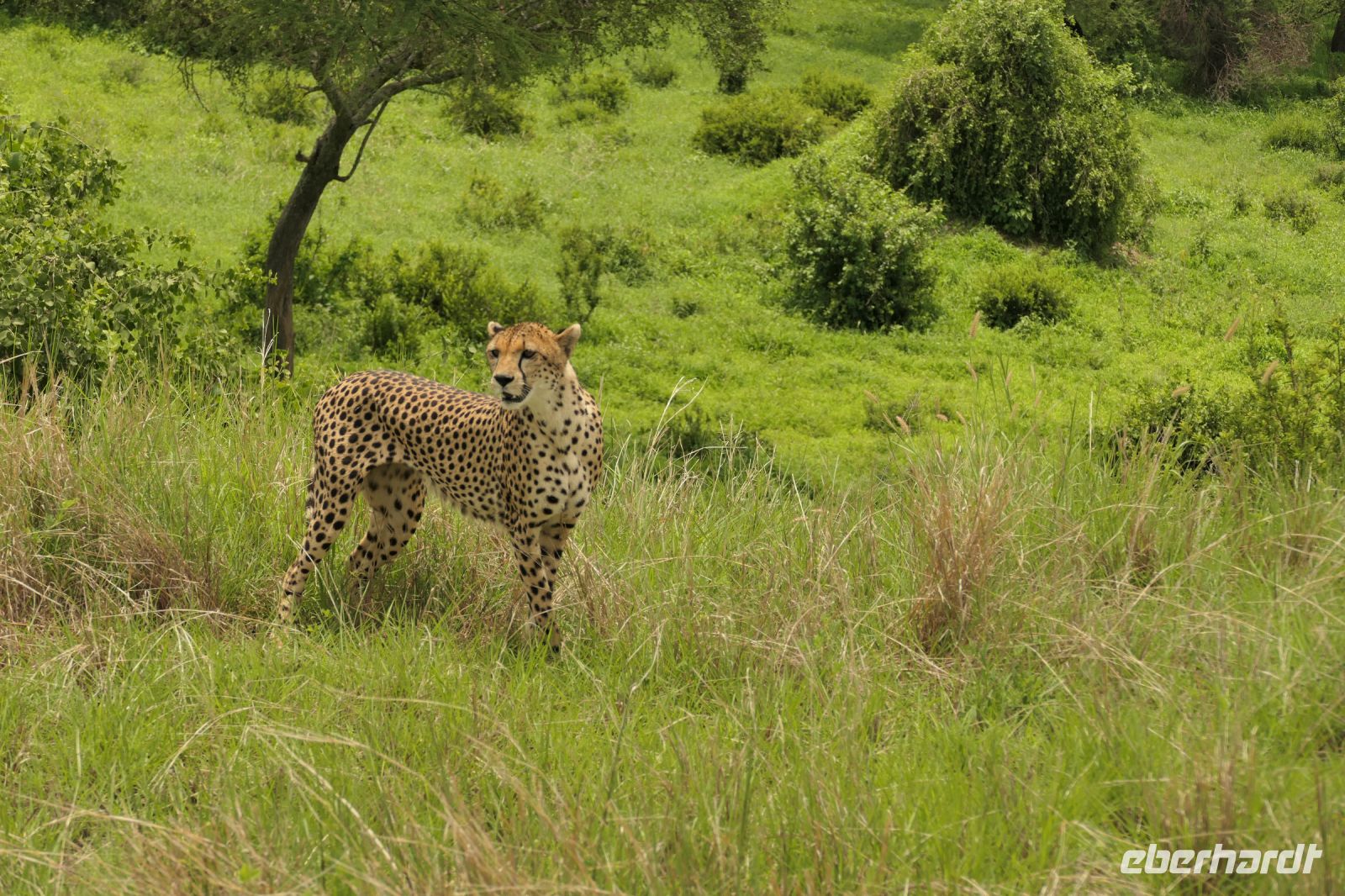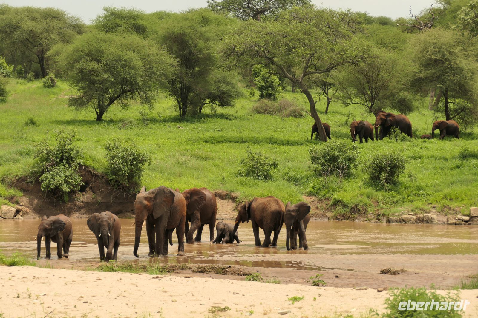 Tag 4, Nationalpark Nummer 2: der Tarangire-Nationalpark im Norden. Gegen Mittag starten wir hier unsere Safari und sehen gleich zu Beginn viele Elefanten und sogar drei Geparden. Wir sind genau zur richtigen Stelle am richtigen Ort und total begeistert. Danach geht es weiter zum Tarangiri Fluss, wo wir nochmals Unmengen an Elefanten entdecken. Gegen 17:00 Uhr erreichen wir unsere Tarangire Lodge und werden freundlich beim Check-In begrüßt. Wir erhalten eine Sicherheitseinweisung für unseren Aufenthalt, da man hier abends/nachts nicht alleine zum Zelt laufen darf, aufgrund der wilden Tiere. Die Lodge ist wunderschön und hat einen Pool. Nach dem Abendessen sitzen wir wieder gemeinsam am Lagerfeuer und schauen die Bilder und Videos der letzten beiden Safaris an.