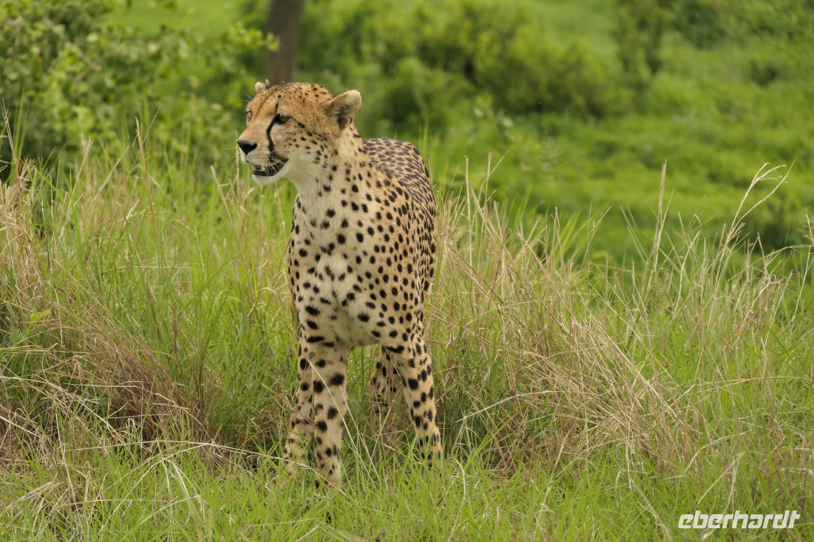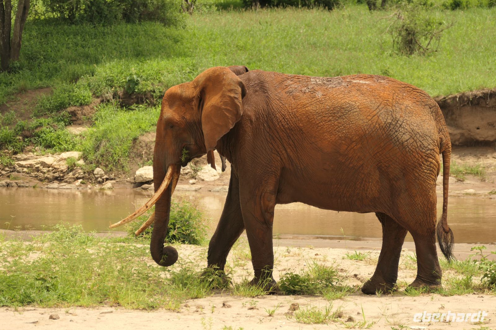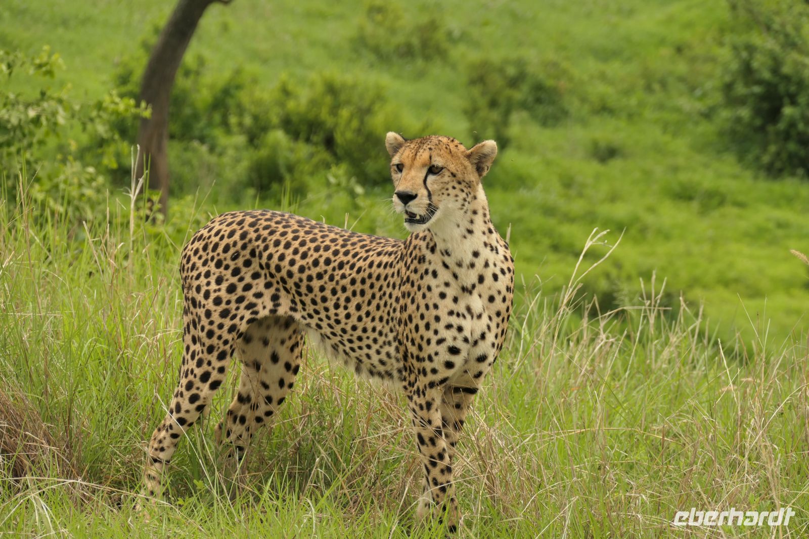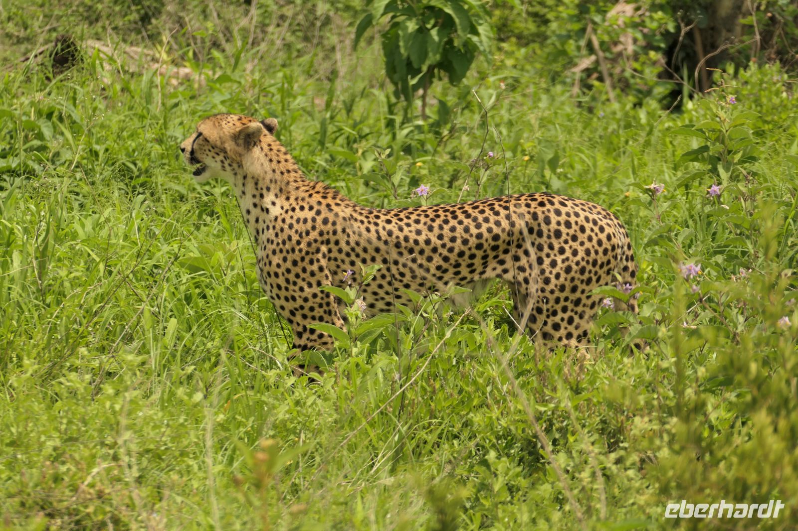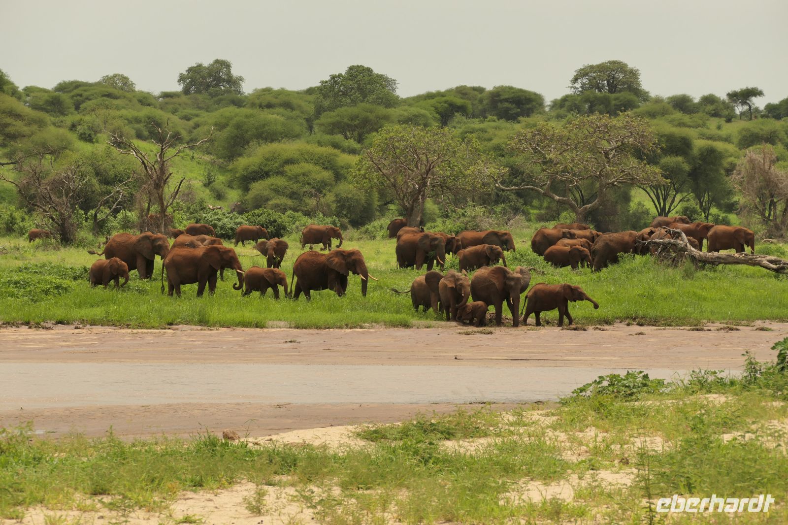 Tag 4, Nationalpark Nummer 2: der Tarangire-Nationalpark im Norden. Gegen Mittag starten wir hier unsere Safari und sehen gleich zu Beginn viele Elefanten und sogar drei Geparden. Wir sind genau zur richtigen Stelle am richtigen Ort und total begeistert. Danach geht es weiter zum Tarangiri Fluss, wo wir nochmals Unmengen an Elefanten entdecken. Gegen 17:00 Uhr erreichen wir unsere Tarangire Lodge und werden freundlich beim Check-In begrüßt. Wir erhalten eine Sicherheitseinweisung für unseren Aufenthalt, da man hier abends/nachts nicht alleine zum Zelt laufen darf, aufgrund der wilden Tiere. Die Lodge ist wunderschön und hat einen Pool. Nach dem Abendessen sitzen wir wieder gemeinsam am Lagerfeuer und schauen die Bilder und Videos der letzten beiden Safaris an.