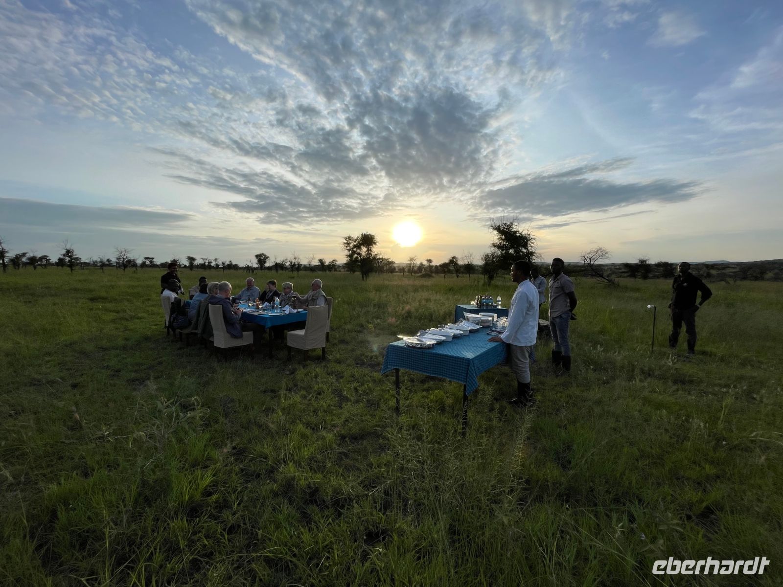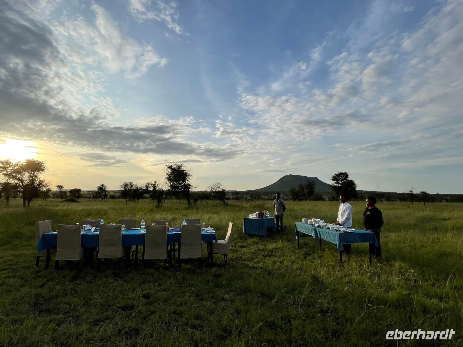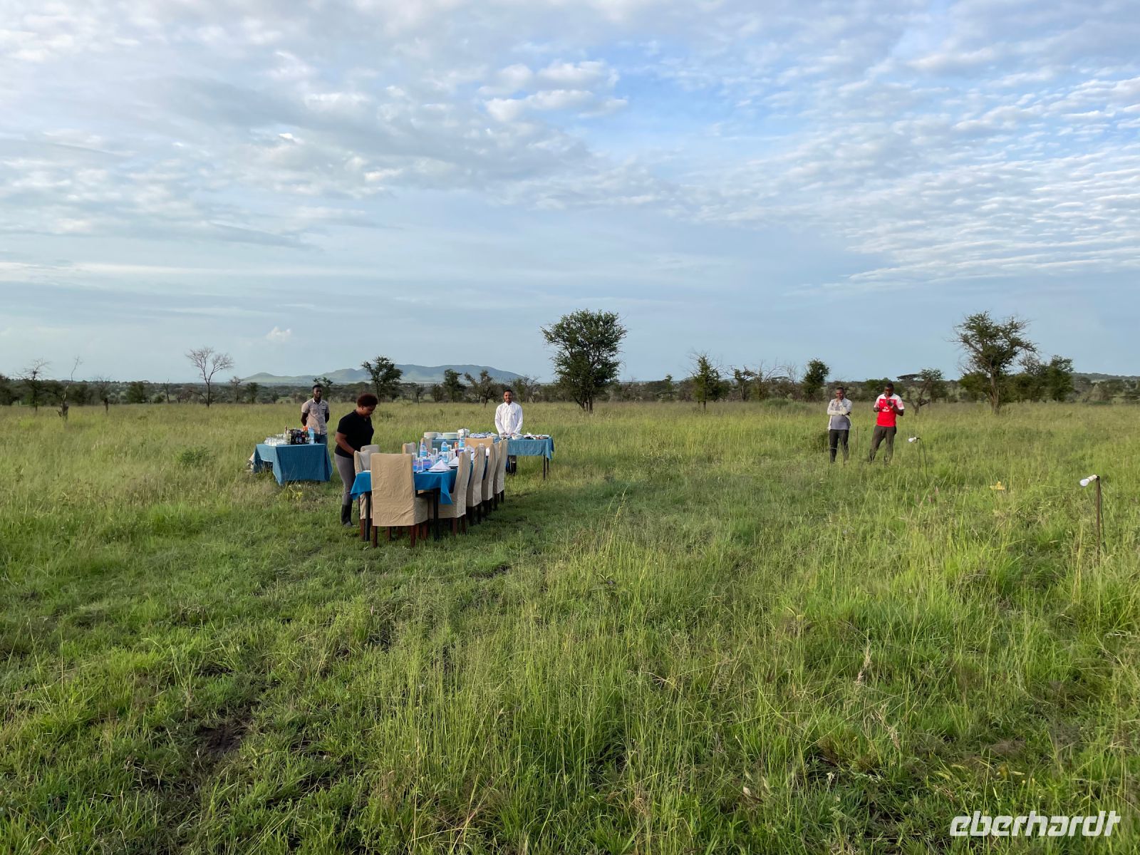 Auch heute wollen wir weiter die Serengeti erkunden und fahren direkt früh 06:00 Uhr los. Besonders am Morgen ist viel in der Tierwelt los und wir bekommen einige Elefanten, Büffel, Paviane und Co. vor die Linse. Um 11:00 Uhr genießen wir noch einen ausgiebigen Brunch, bevor es am Nachmittag weiter auf die nächste Entdeckungstour geht, bei der wir auch wieder zahlreiche afrikanische Vierbeiner bestaunen dürfen. Auf dem Speiseplan für das Abendessen steht heute ein Buschdinner. Wir bekommen ein leckeres Abendessen inmitten der Savanne, was für ein einmaliges Erlebnis.