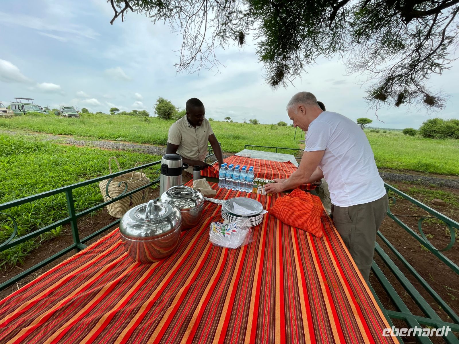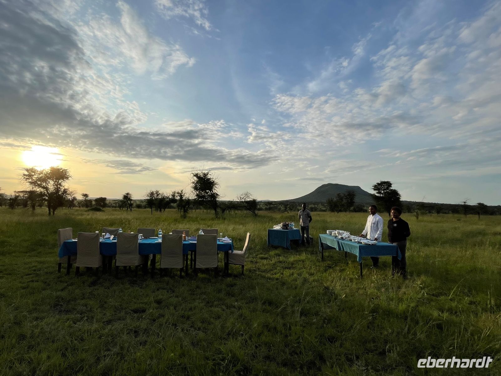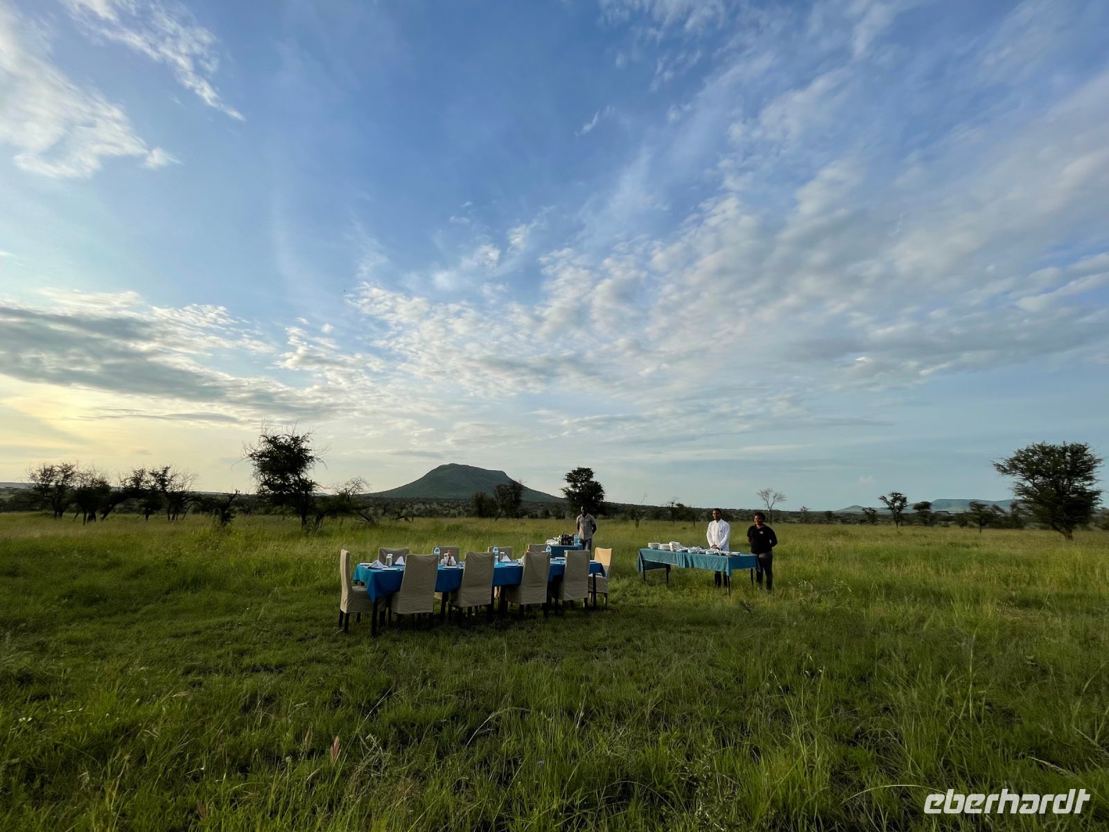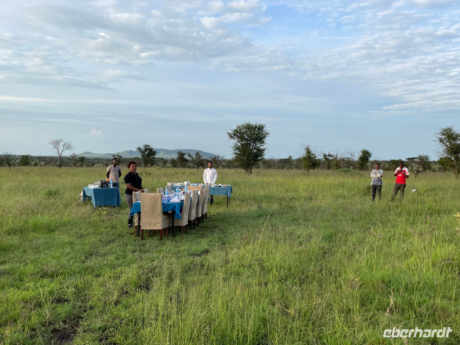 Auch heute wollen wir weiter die Serengeti erkunden und fahren direkt früh 06:00 Uhr los. Besonders am Morgen ist viel in der Tierwelt los und wir bekommen einige Elefanten, Büffel, Paviane und Co. vor die Linse. Um 11:00 Uhr genießen wir noch einen ausgiebigen Brunch, bevor es am Nachmittag weiter auf die nächste Entdeckungstour geht, bei der wir auch wieder zahlreiche afrikanische Vierbeiner bestaunen dürfen. Auf dem Speiseplan für das Abendessen steht heute ein Buschdinner. Wir bekommen ein leckeres Abendessen inmitten der Savanne, was für ein einmaliges Erlebnis.
