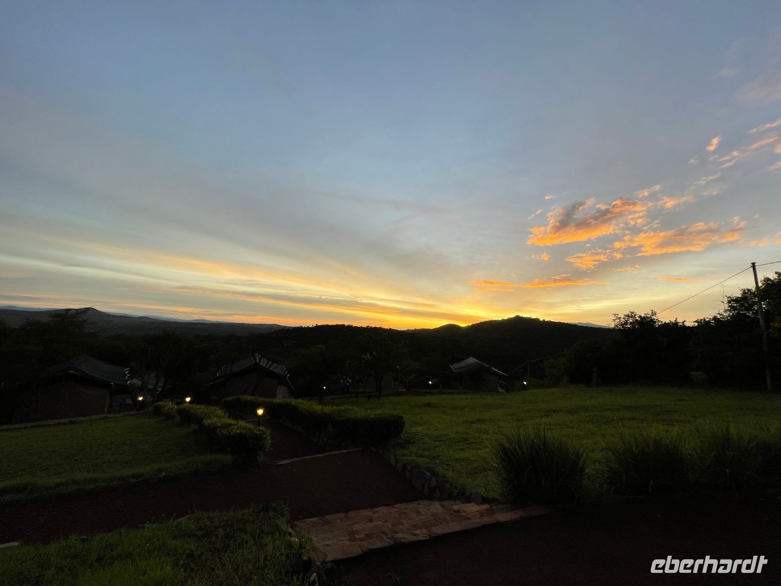 Ein langer Tag liegt vor uns. Bereits früh 04:00 Uhr trifft sich die Reisegruppe am Berliner Flughafen. Aufgrund der aktuellen Situation und den damit verbundenen Gesundheitsnachweisen benötigen wir etwas mehr Zeit. Es verlief aber alles problemlos, sodass wir 06:00 Uhr losfliegen. Nach einem kurzen Zwischenstopp in Amsterdam, geht es auf einem 8-stündigen Flug weiter zum Kilimandscharo Airport. 23:30 Uhr heißt es dann endlich “Karibu sana”! Wir werden freundlich durch unser Guides Charles und Furaha. Gemeinsam fahren wir zur Unterkunft. Unser Tag endet kurz nach Mitternacht mit dem Check-in in die Mount Meru Game Lodge.
