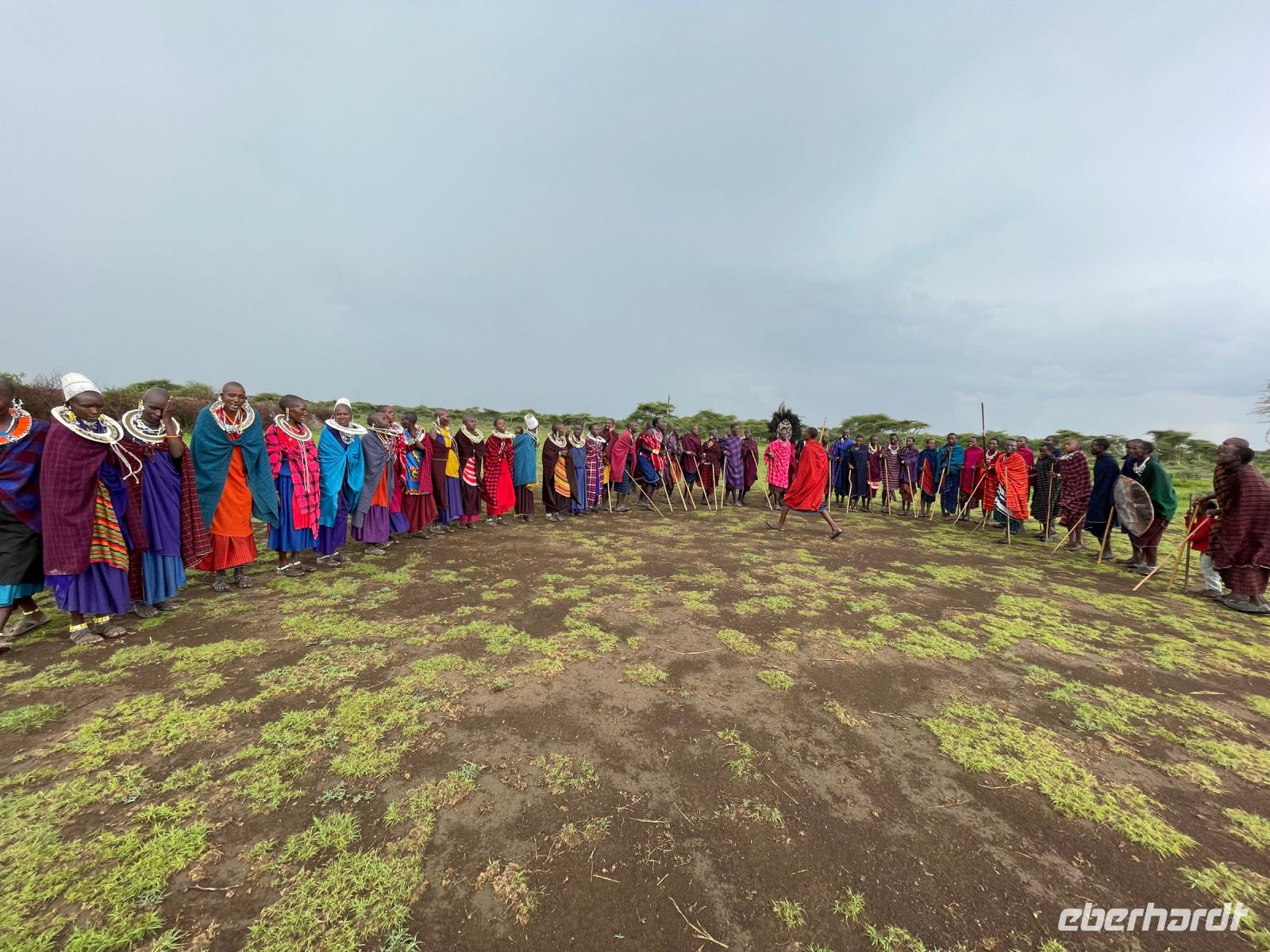 An Tag 8 geht es für die Gruppe weiter nach Serengeti. Als Zwischenstopp auf der Fahrt besuchen wir das Oldupai Museum oberhalb der Olduvai Schlucht und halten am Nachmittag im Massai Dorf. Dort überraschen uns die Dorfbewohner mit Begrüßungstanz, bevor wir uns die Hütten und die örtliche Schule anschauen dürfen. Zum Schluss wird uns noch gezeigt, wie die Massai Feuer machen. Diesen Besuch werden wie nicht so schnell vergessen. Die Einwohner leben noch fast wie in der Steinzeit, ohne fließend Wasser, ohne Strom, ohne sonstigen Luxus. Sie leben fast ausschließlich von ihren Tieren und von der Natur. Da geht es uns in Deutschland wirklich sehr gut. Aber wir haben nicht den Eindruck, dass die Menschen dort unglücklich sind. Jedoch für uns eine komplett andere Welt. Auf der anschließenden Weiterfahrt in die Serengeti erhaschen wir wieder Blicke auf Geparden und Löwen. Um 18:30 Uhr checken wir schließlich in der Aganta Camp Lodge ein und genießen noch ein gemeinsames Abendessen, bevor wir ins Bett fallen.