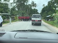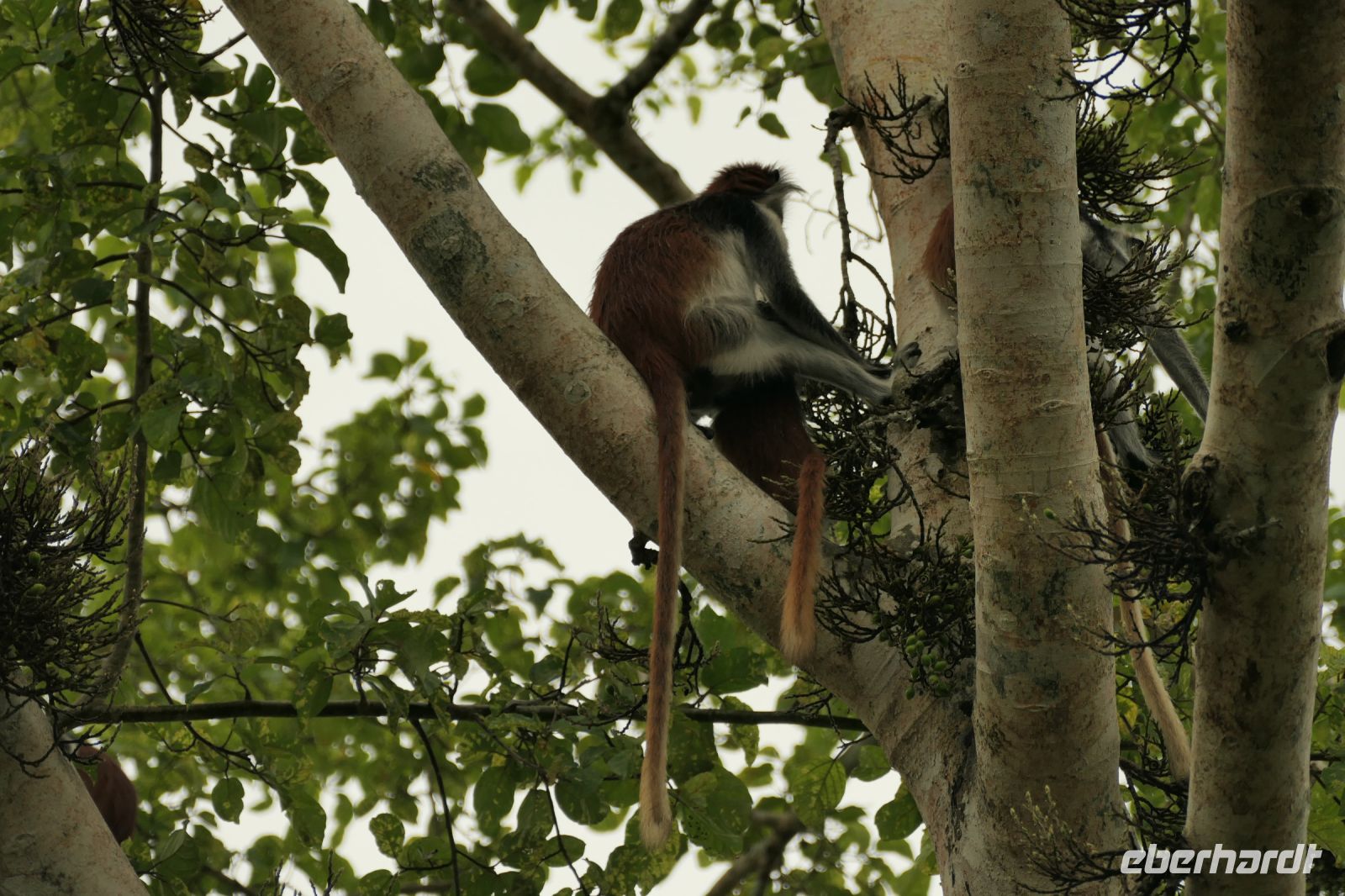 Der Jozani Forest Nationalpark ist der einzige Nationalpark von Sansibar und liegt zentral im Inselinneren. Nach einer einstündigen Autofahrt sind wir gegen 10:00Uhr vor Ort und starten mit einem Rundgang durch den Wald, wo wir die roten Columbus Affen sehen und fotografieren können. Auch hier führt uns ein deutschsprachiger Guide umher. Leider regnet es anfangs wieder einmal, weshalb sich die Affen noch verstecken. Kurze Zeit später, klärt es sich auf und die Affen zeigen sich von ihrer schönsten Seite. Danach besuchen wir noch den nahegelegenen Mangrovenwald, wo wir gemeinsam eine kleine Runde spazieren gehen. Gegen Mittag erreichen wir wieder unser Hotel wo wir noch Zeit zum Baden haben. Abends treffen wir uns zum Abschieds-Abendessen im Strandrestaurant. Das Hotel hat uns einen schönen Tisch eingedeckt und wir Essen heute a la carte. Es schmeckt hervorragend und alle sind begeistert. :)